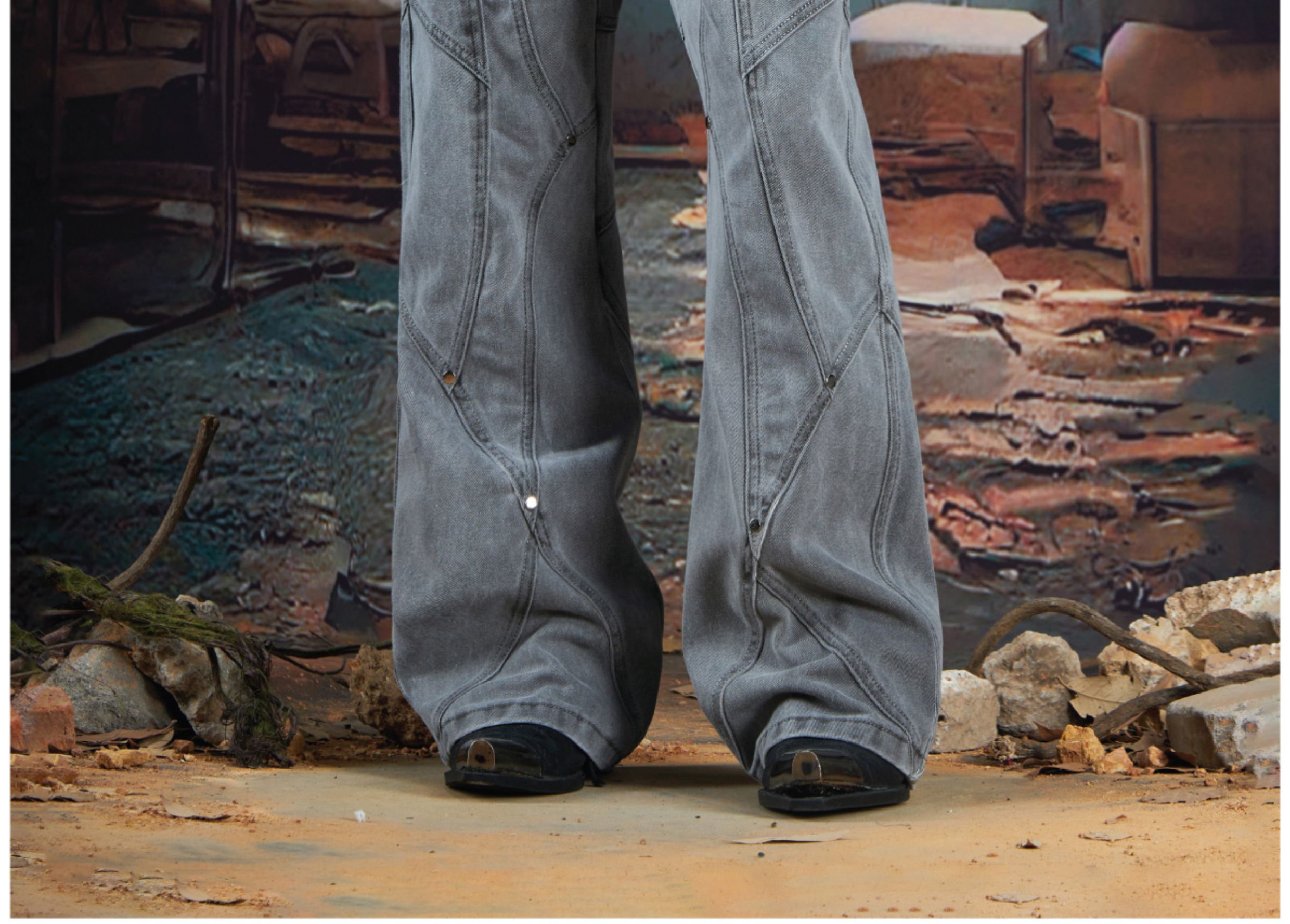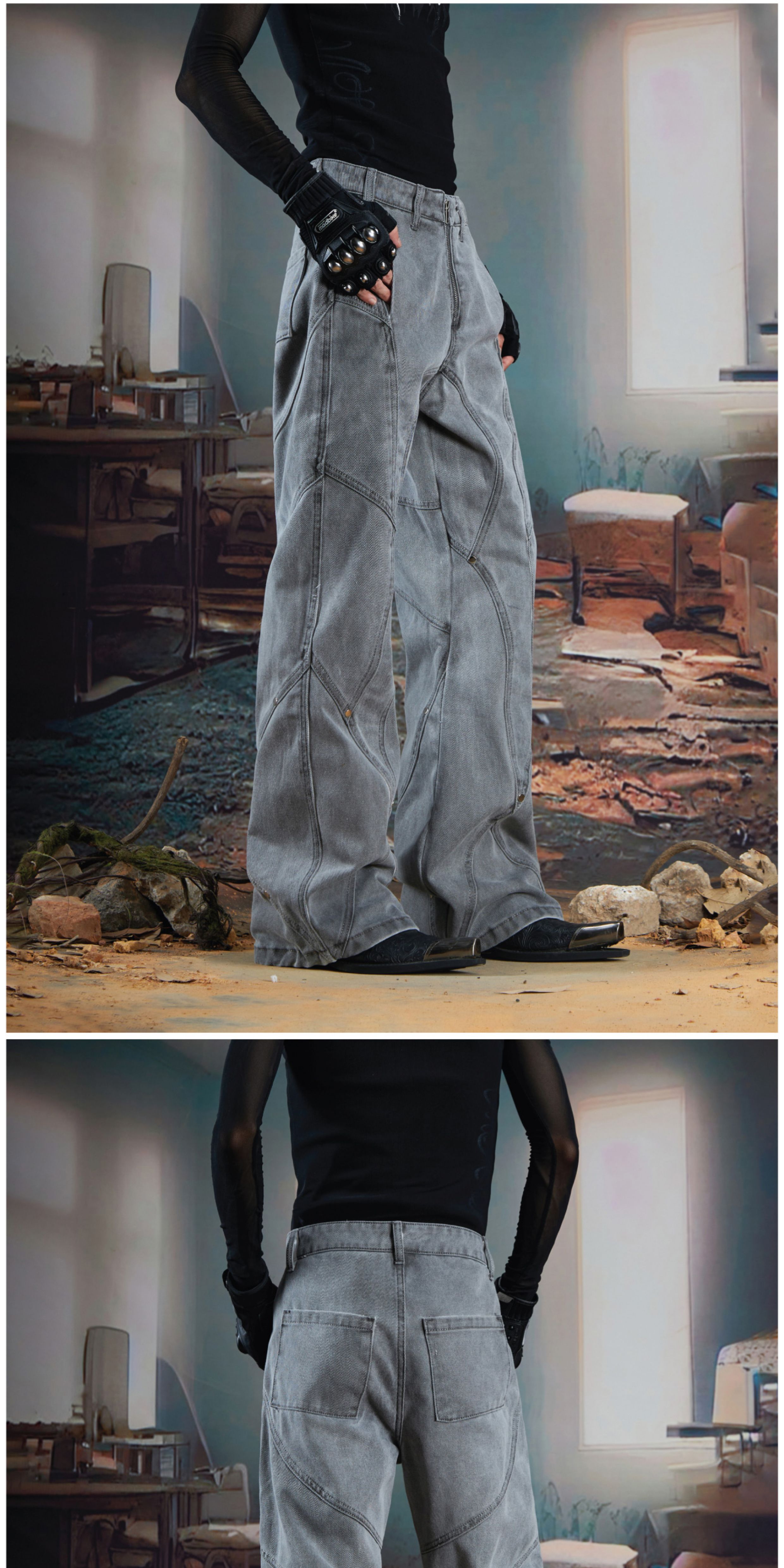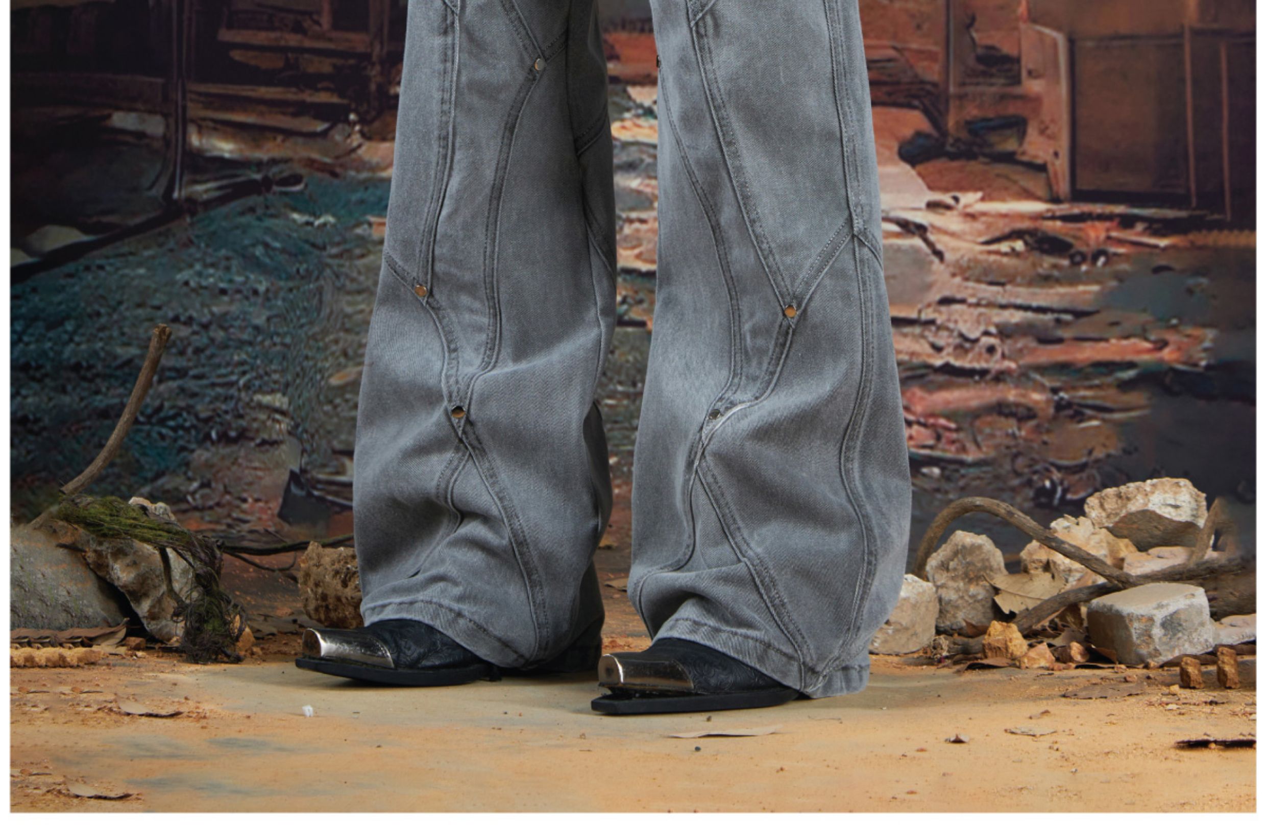 Studs Deconstruction Washed Damage Flare Denim Jeans WN21364