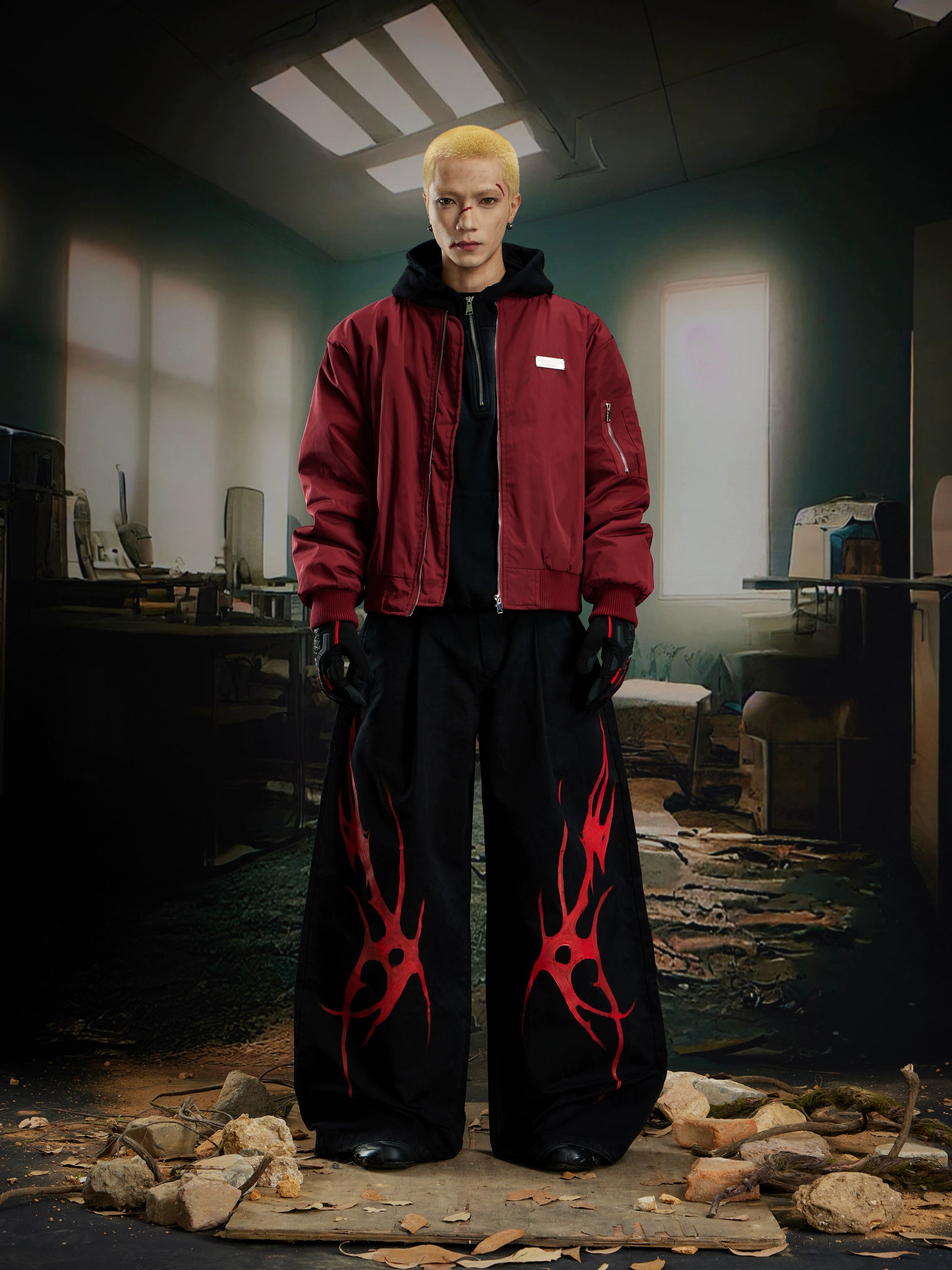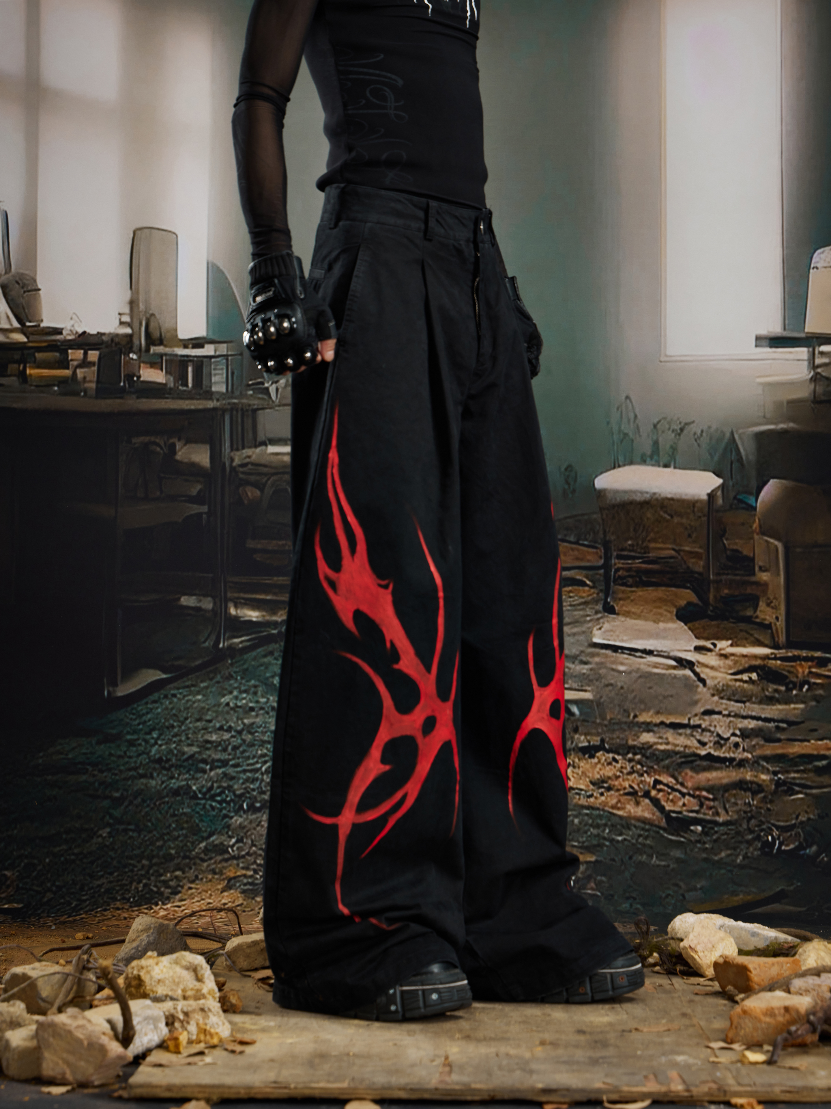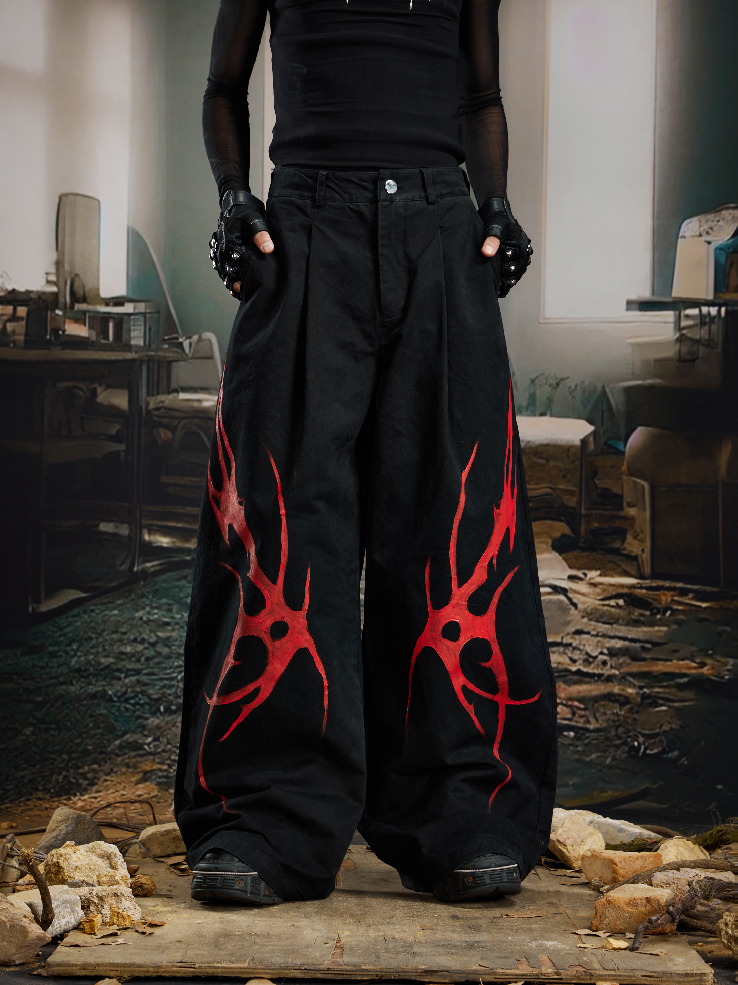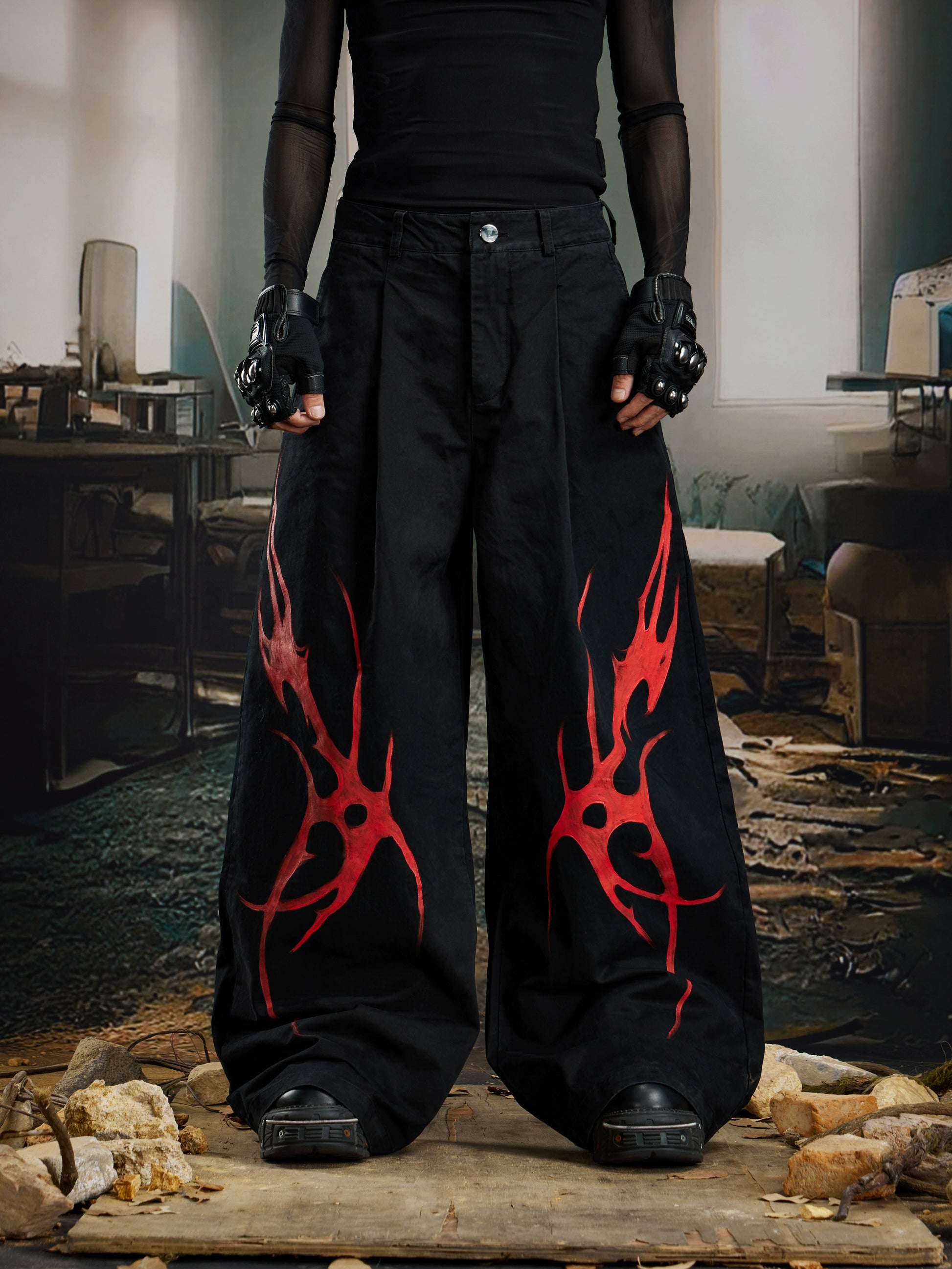 Paint Graffiti Pleats Washed Wide Leg Denim Jeans WN21379