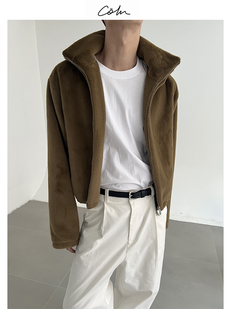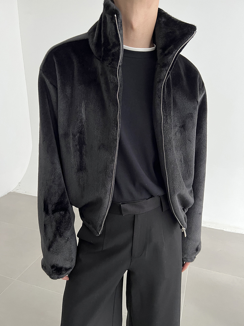 Fake Fur Stand Collar Zipper Jacket WN21585