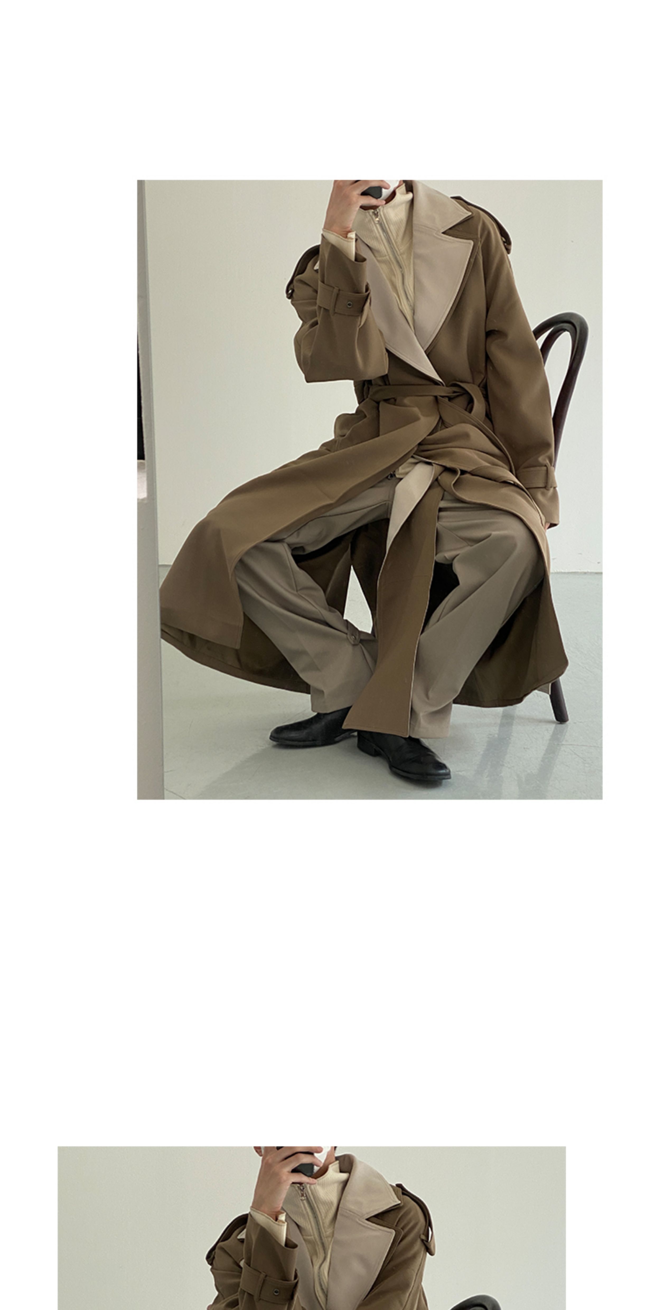 Colorblock Double Layer Long Coat WN21603