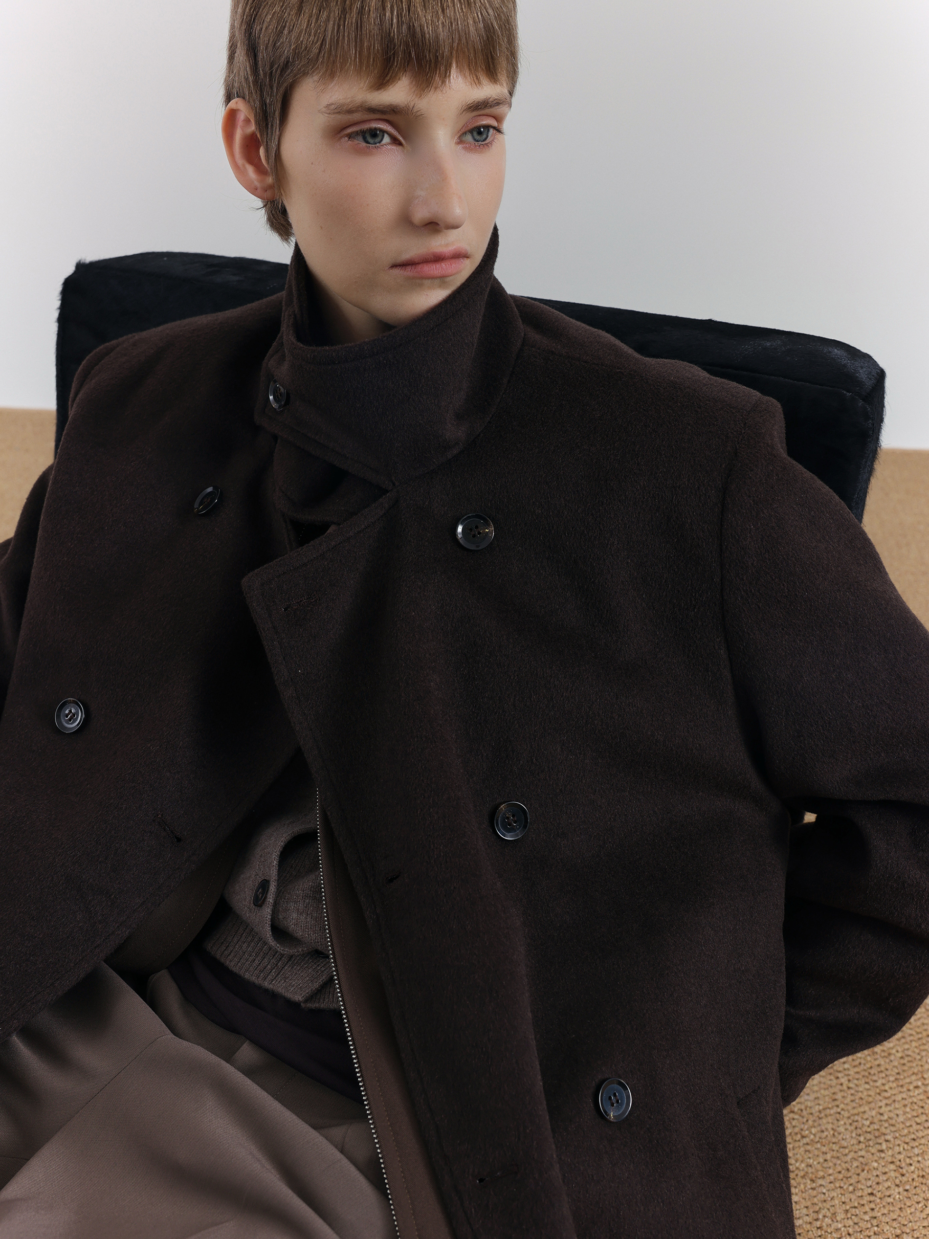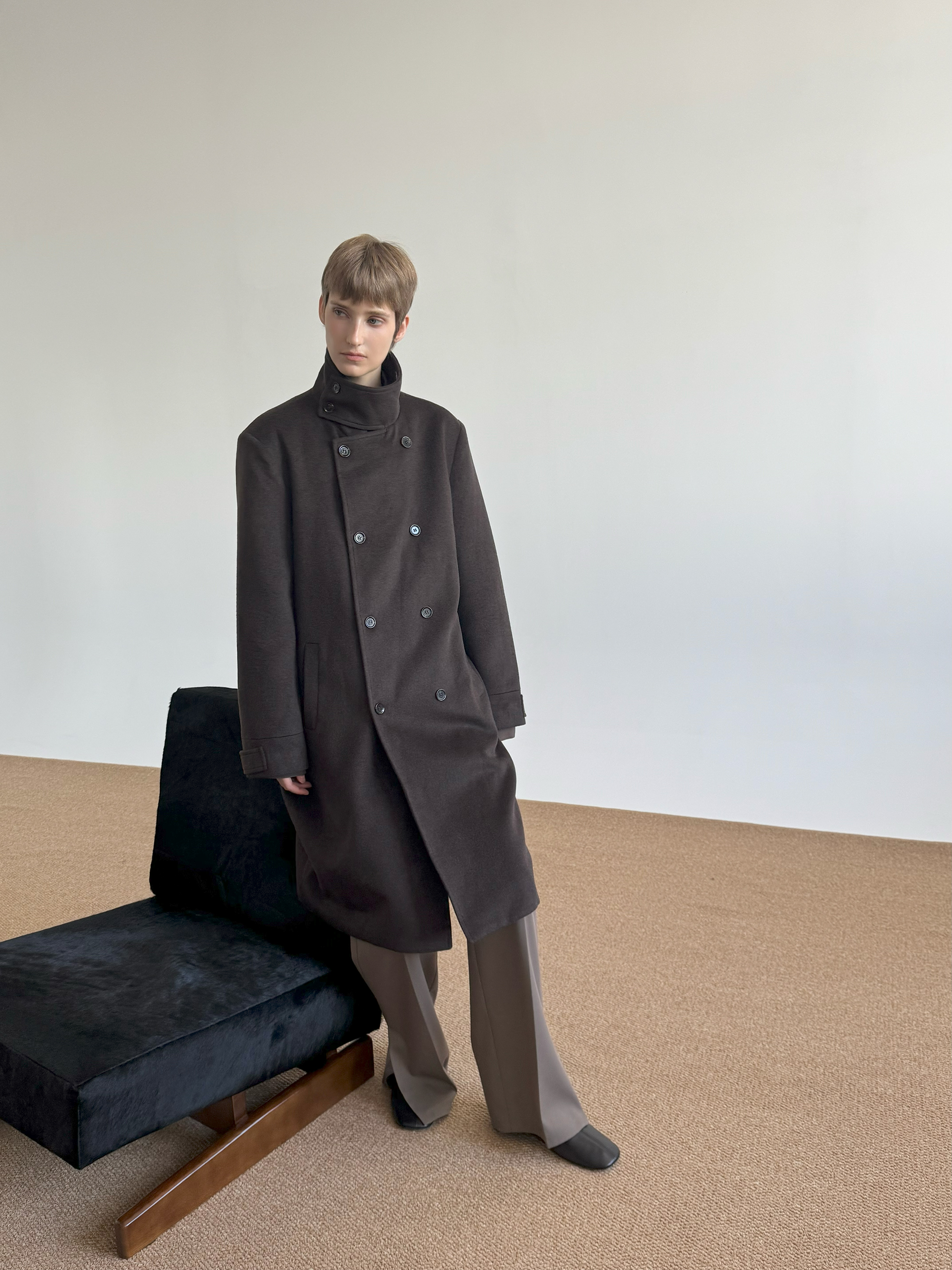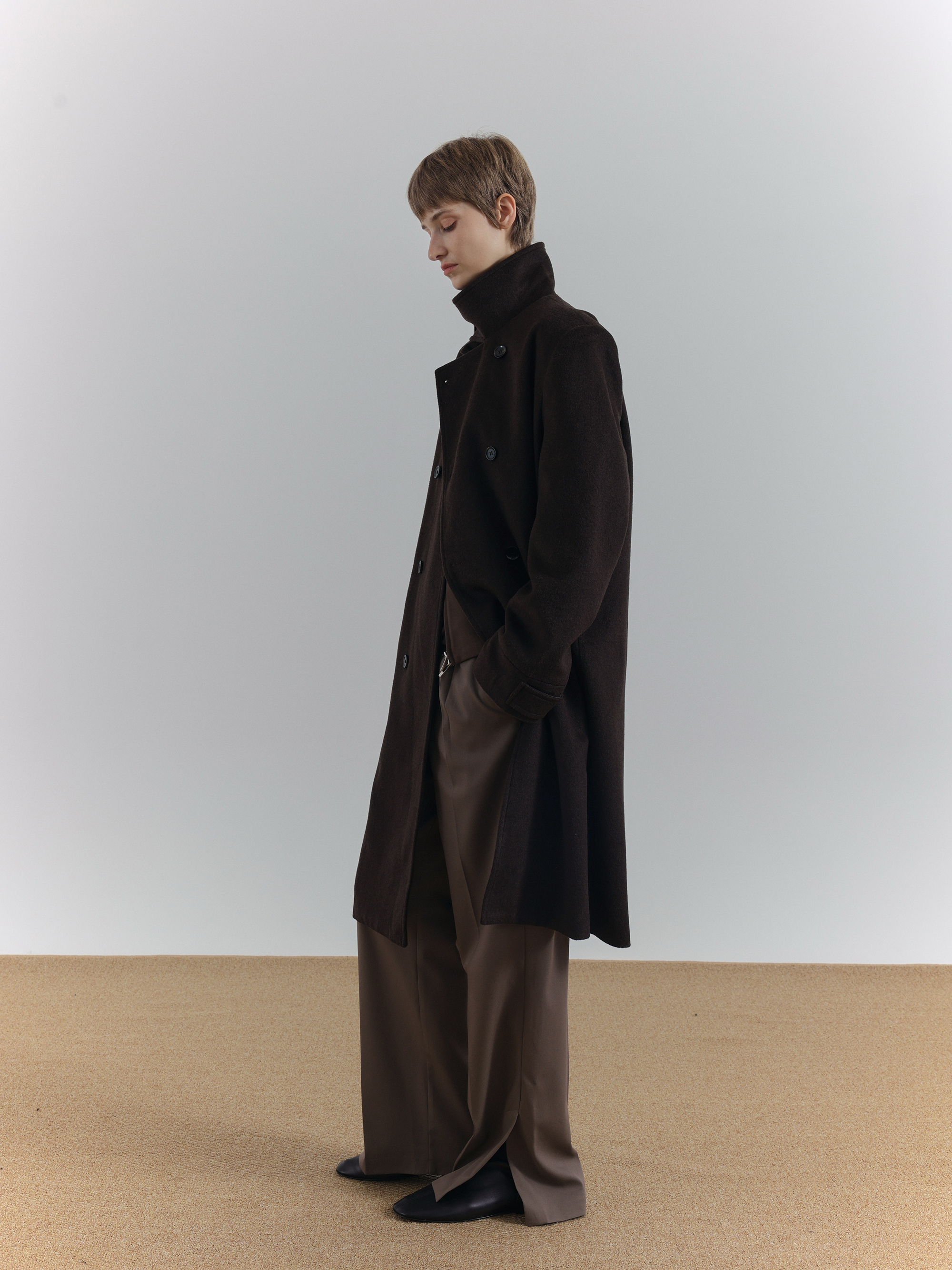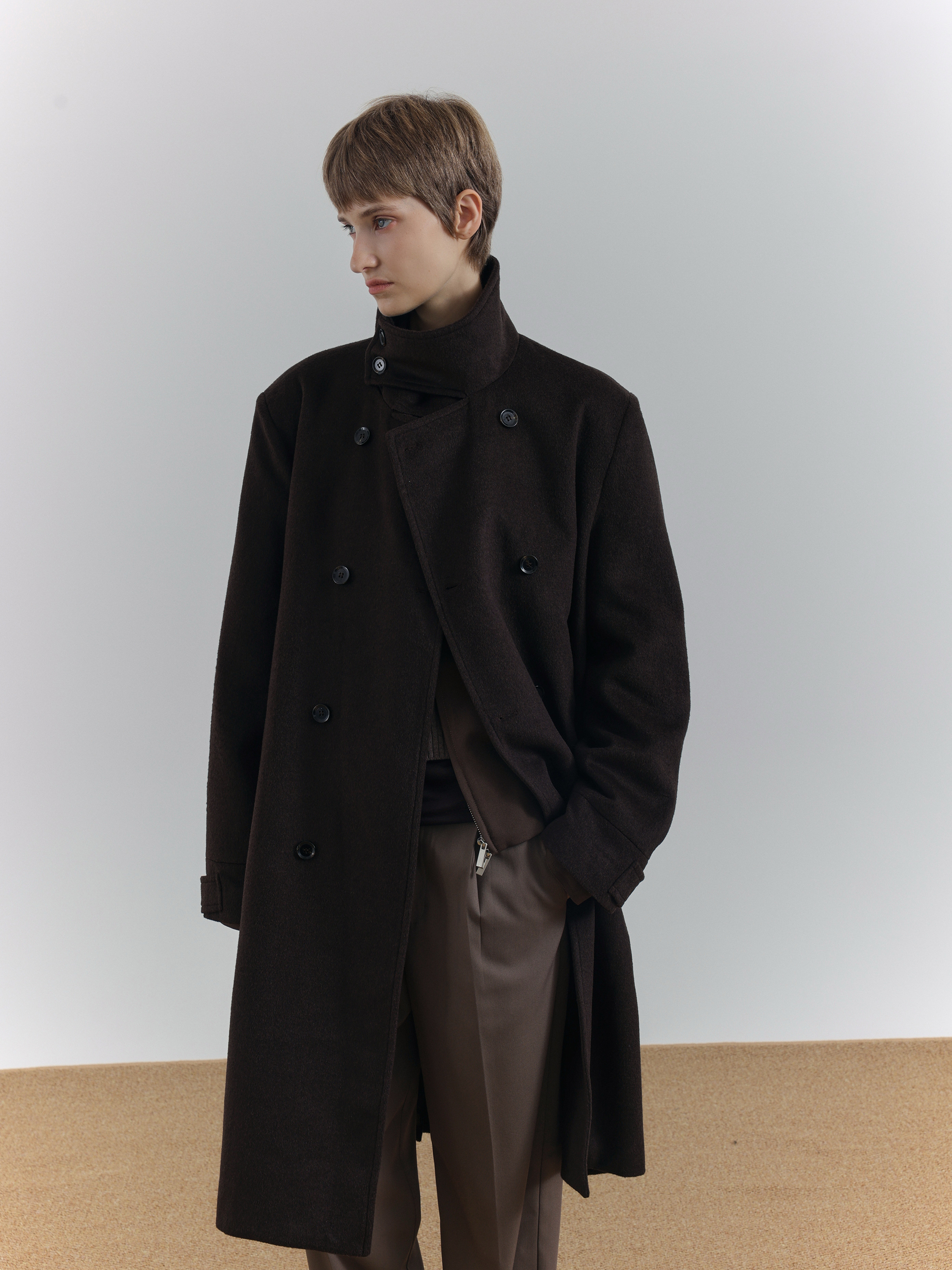 Standing-Collar Double-Breasted Wool Coat WN21642