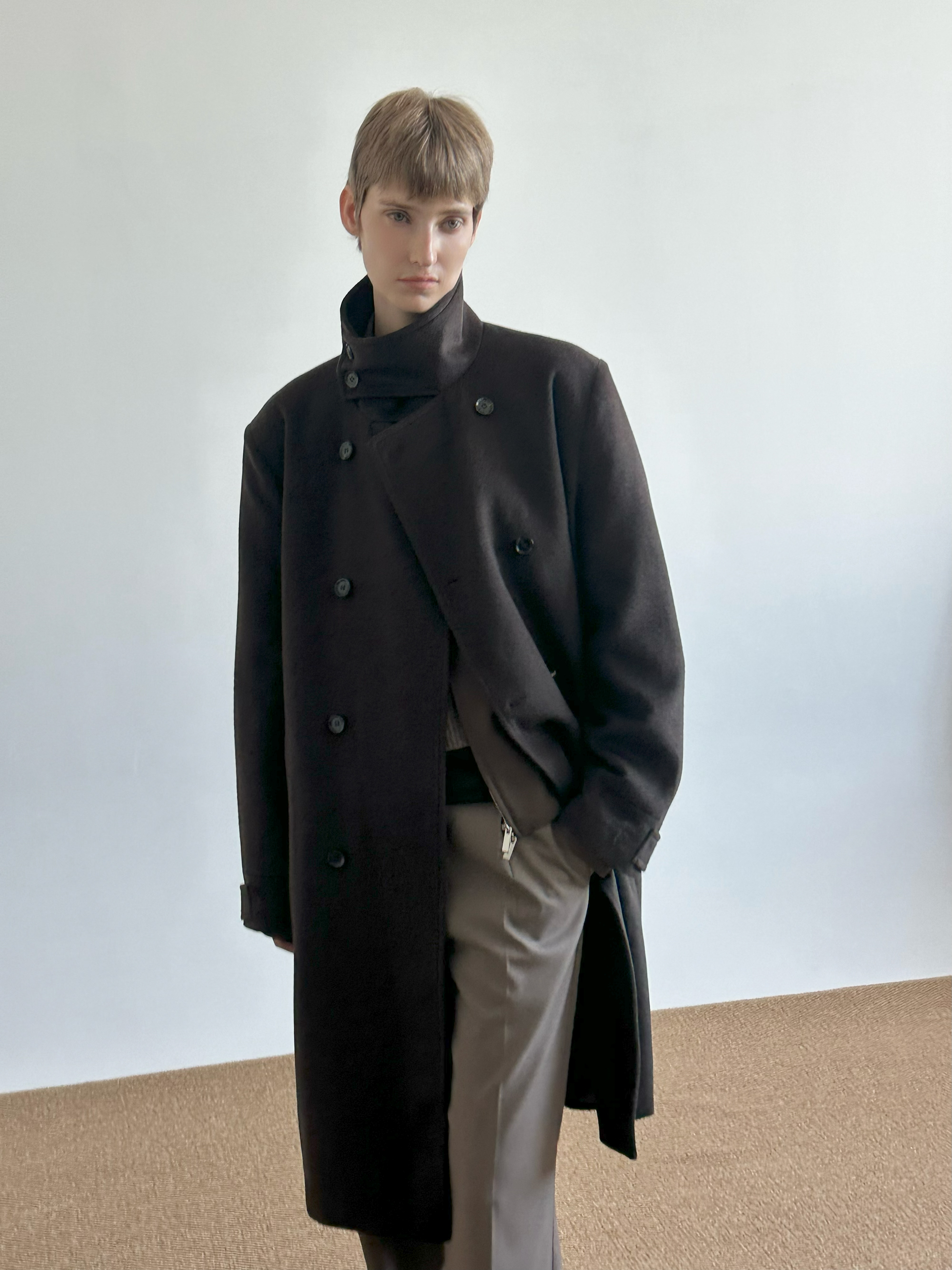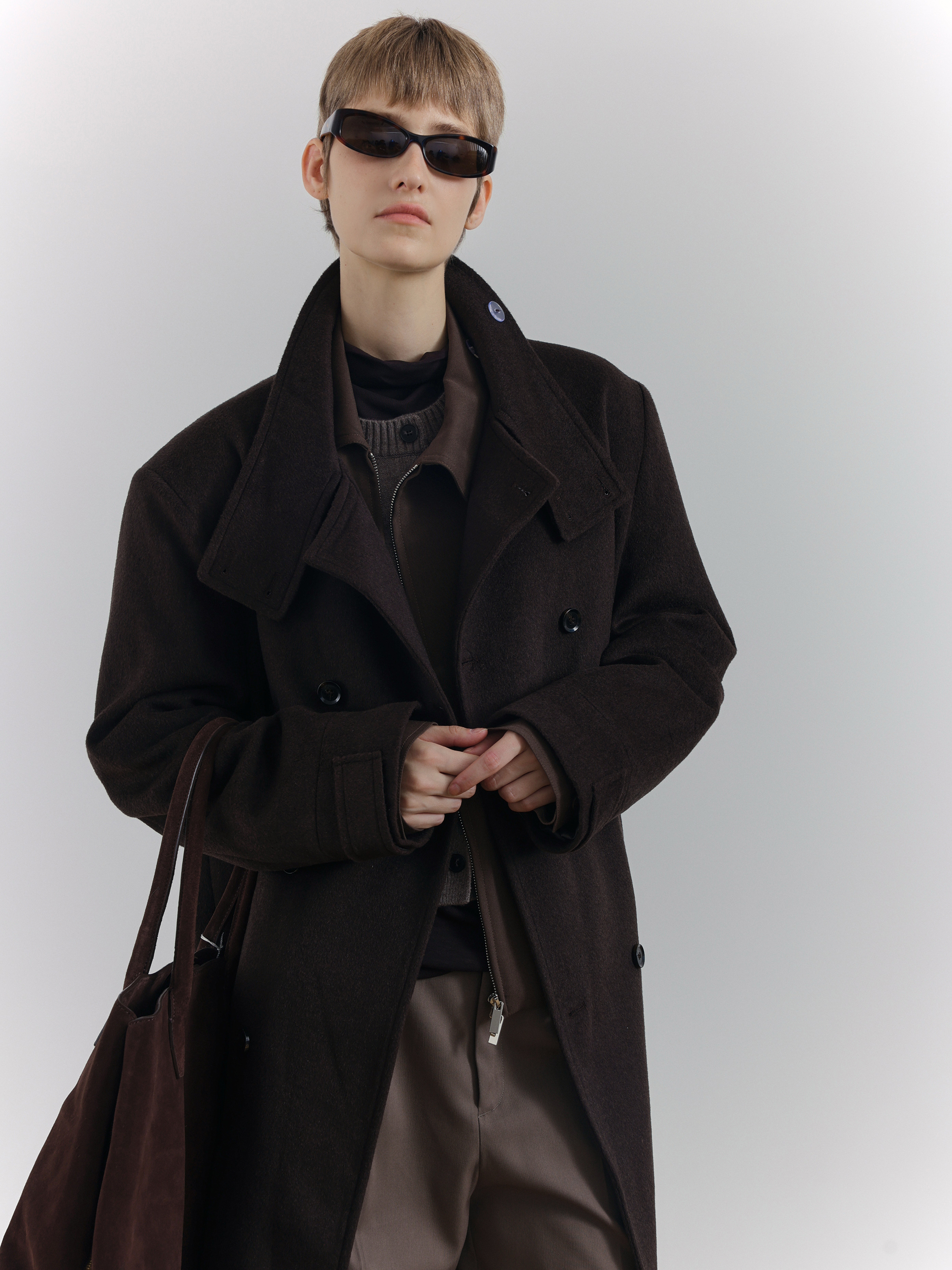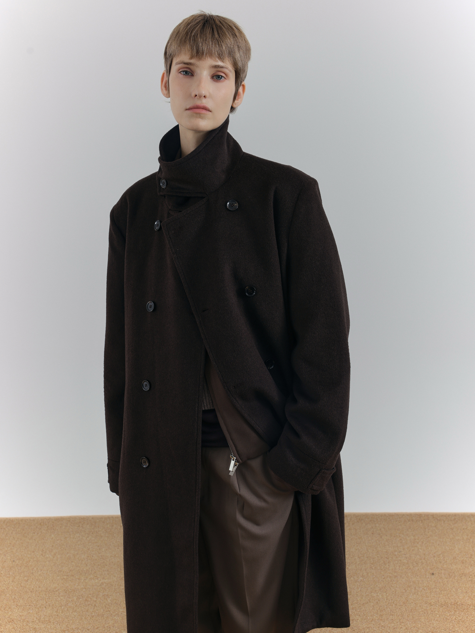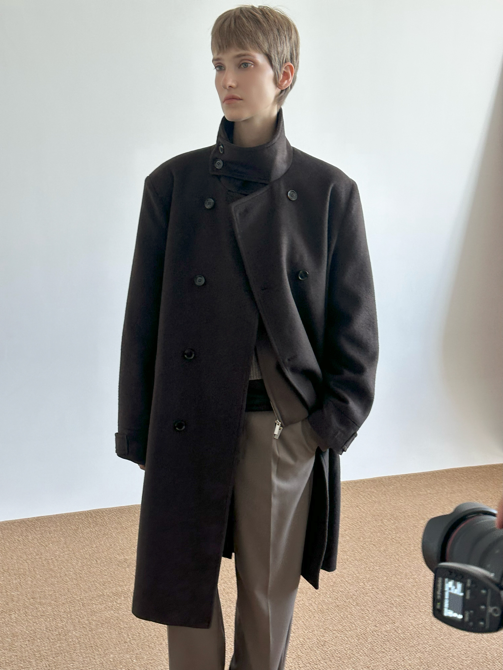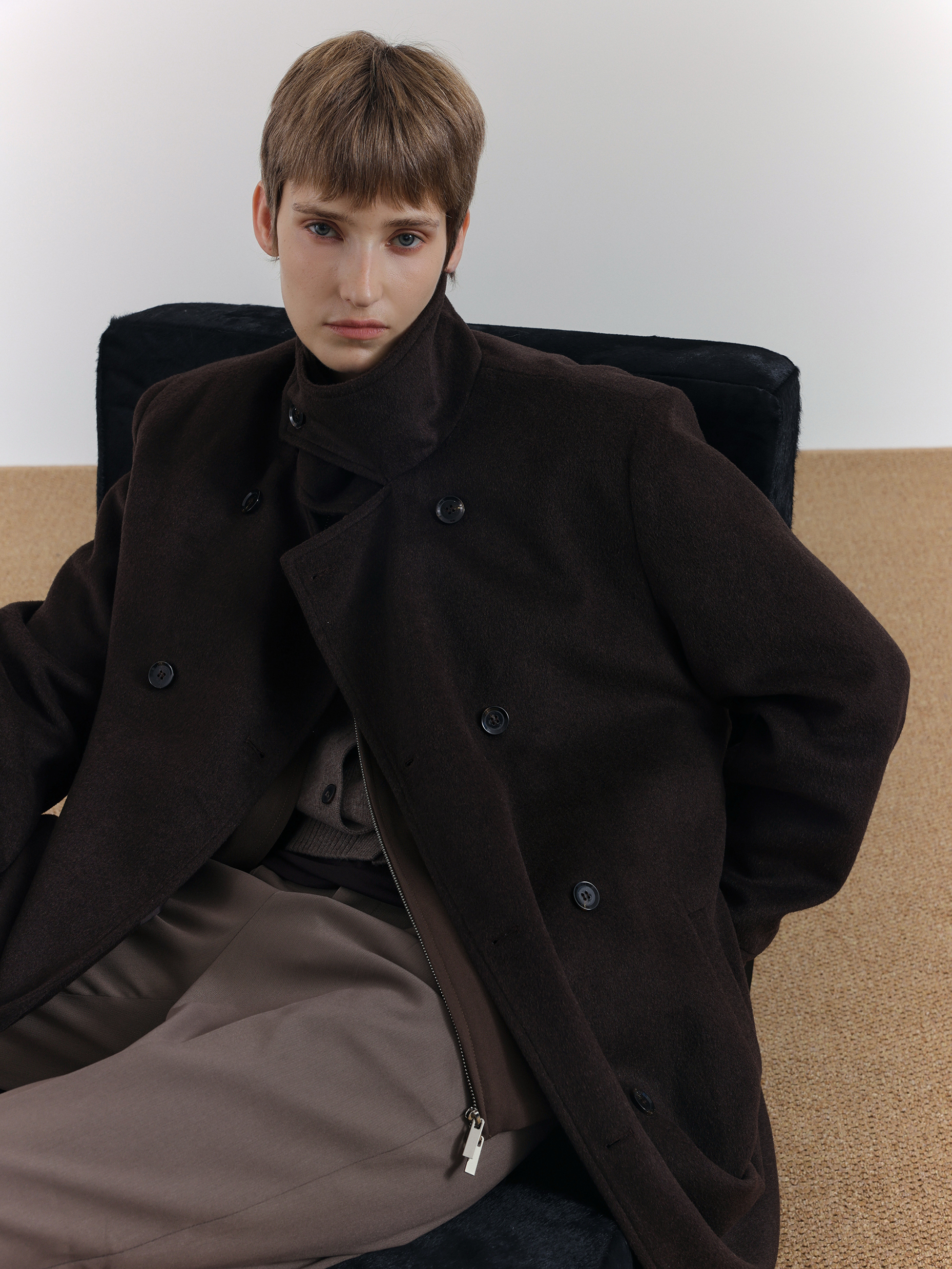 Standing-Collar Double-Breasted Wool Coat WN21642