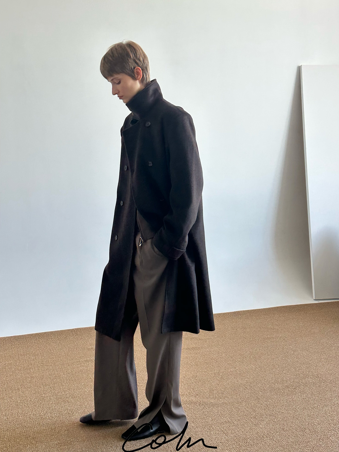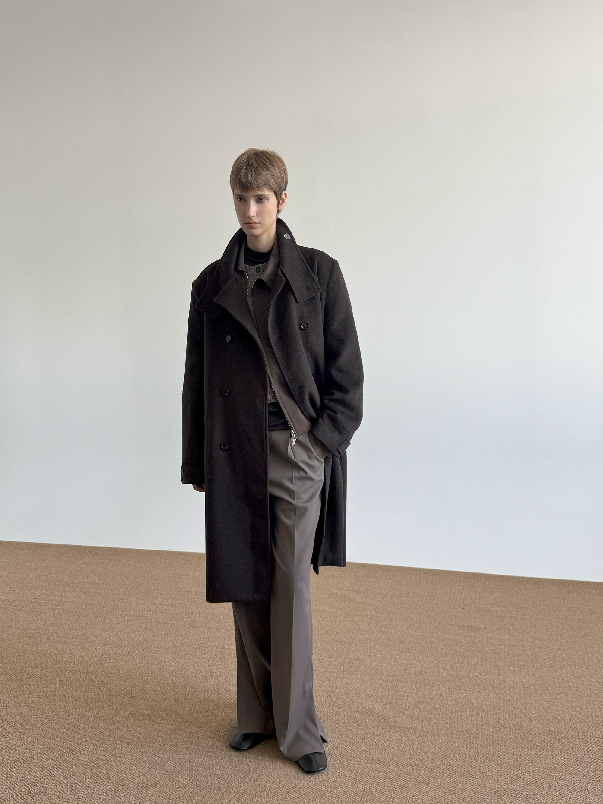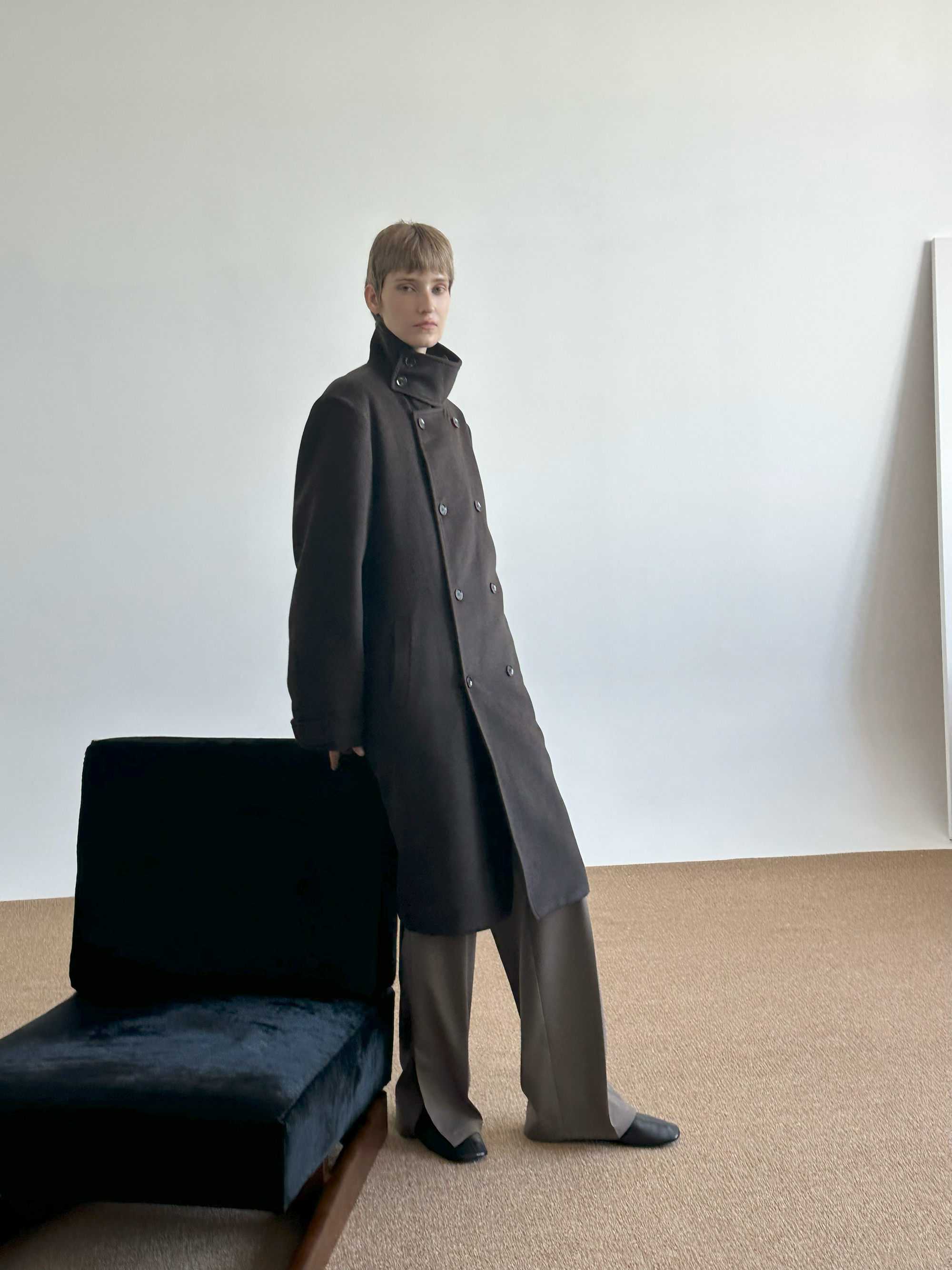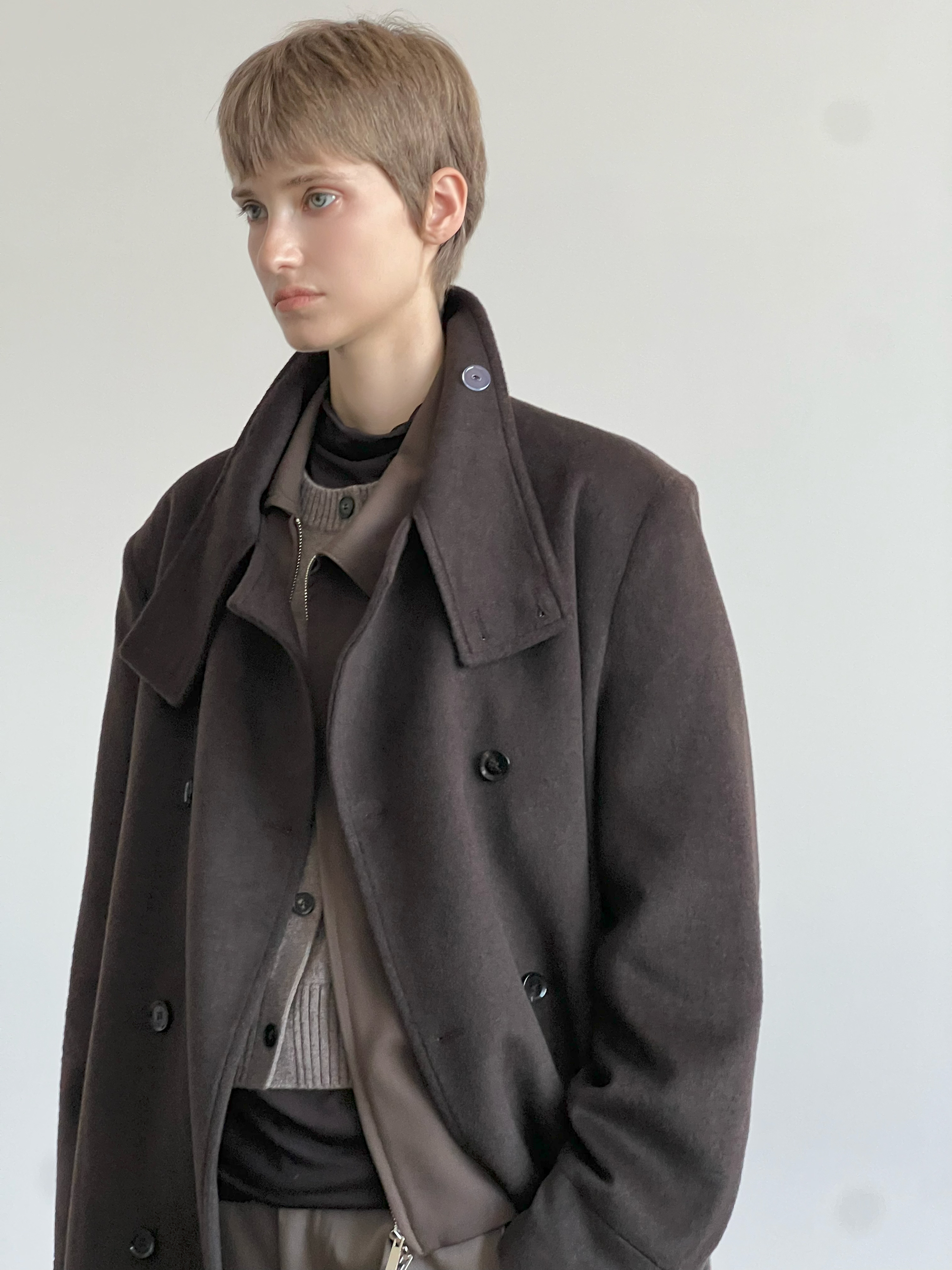 Standing-Collar Double-Breasted Wool Coat WN21642