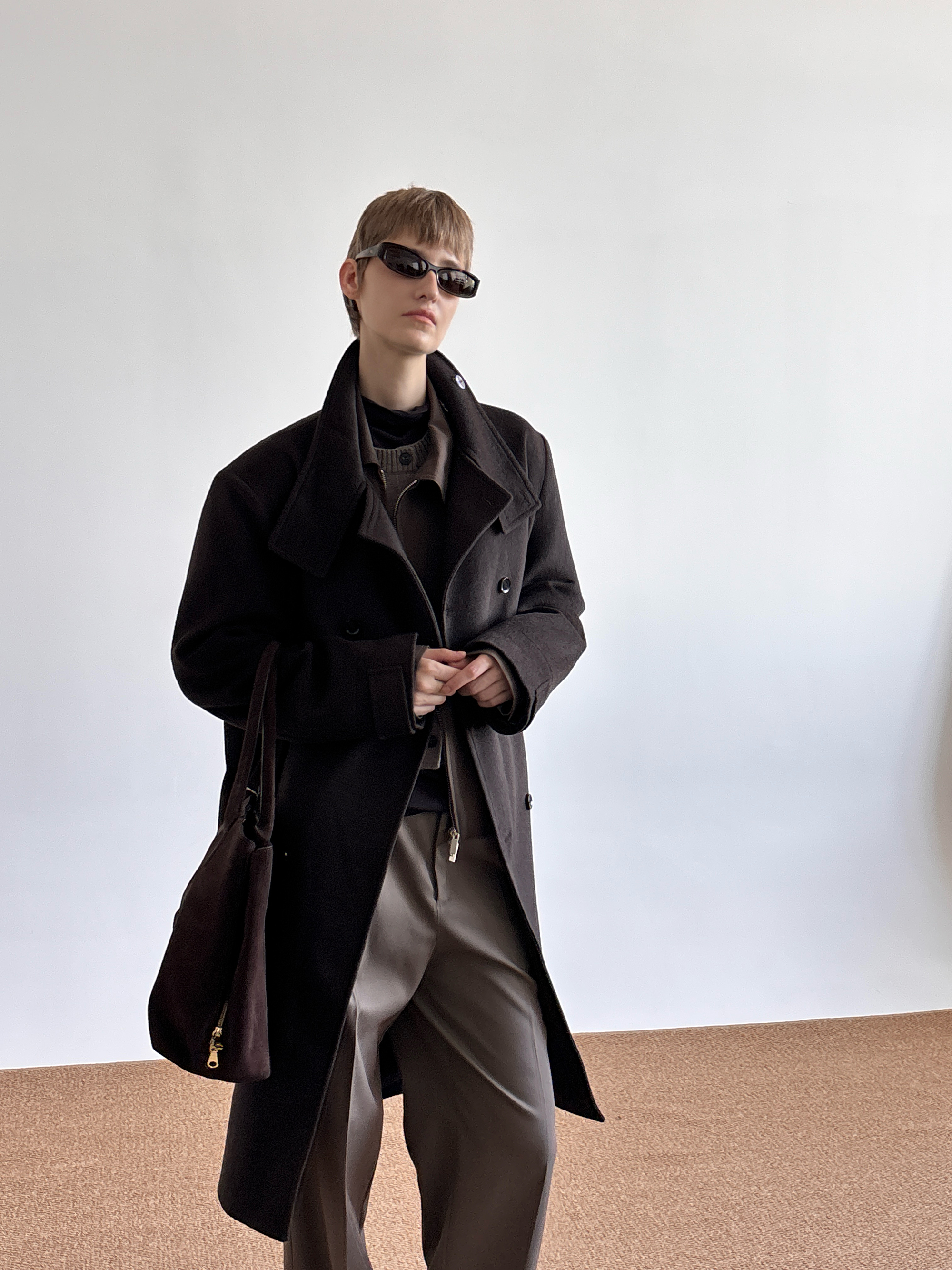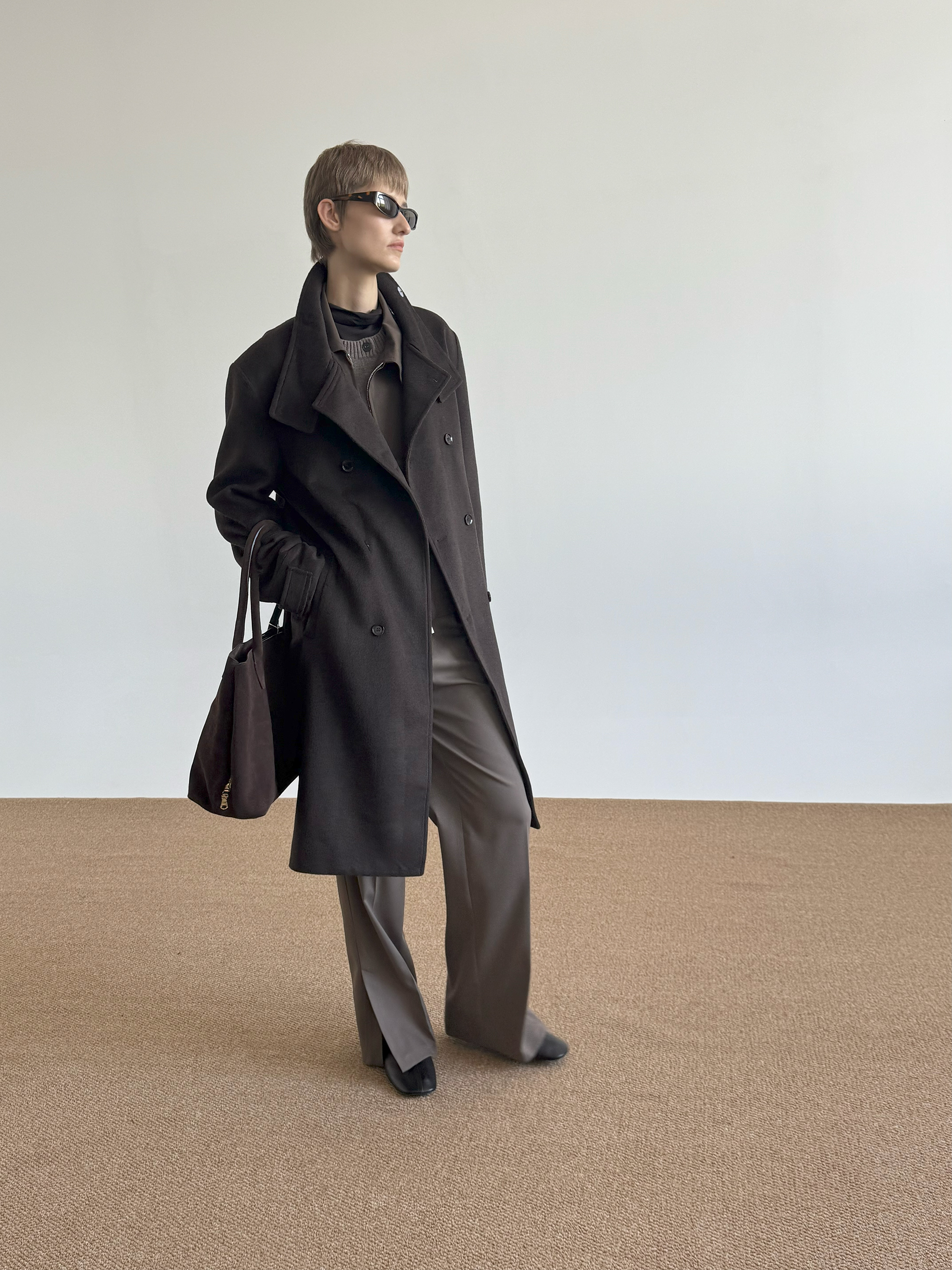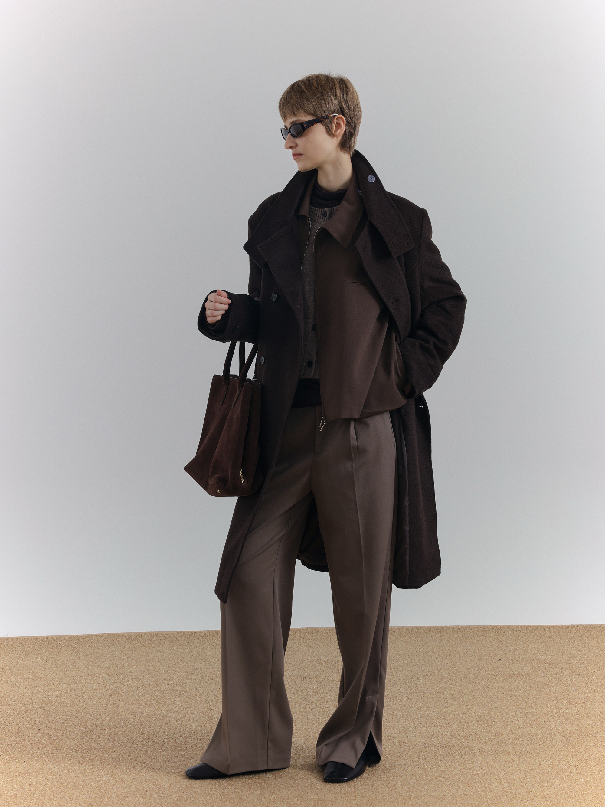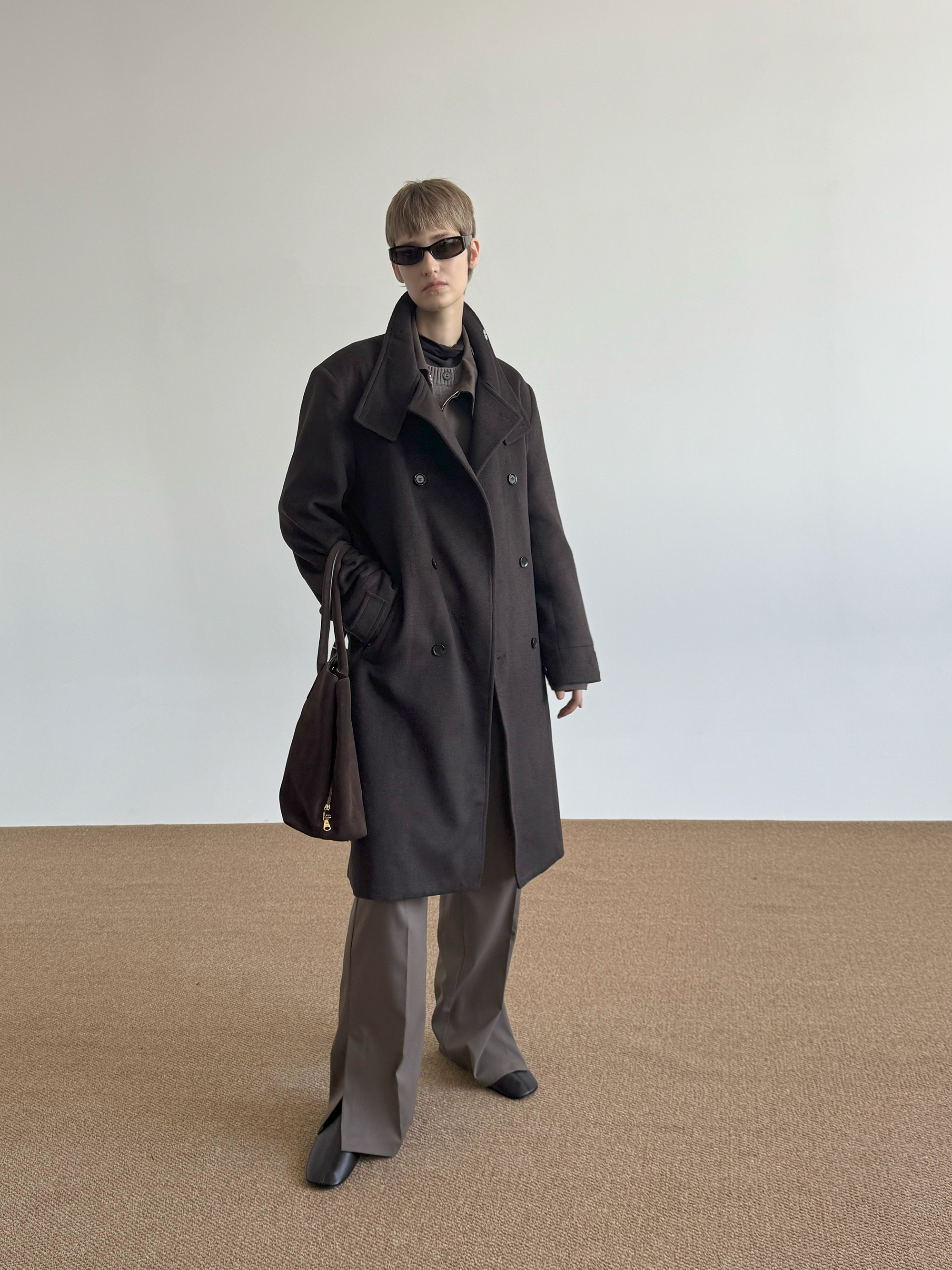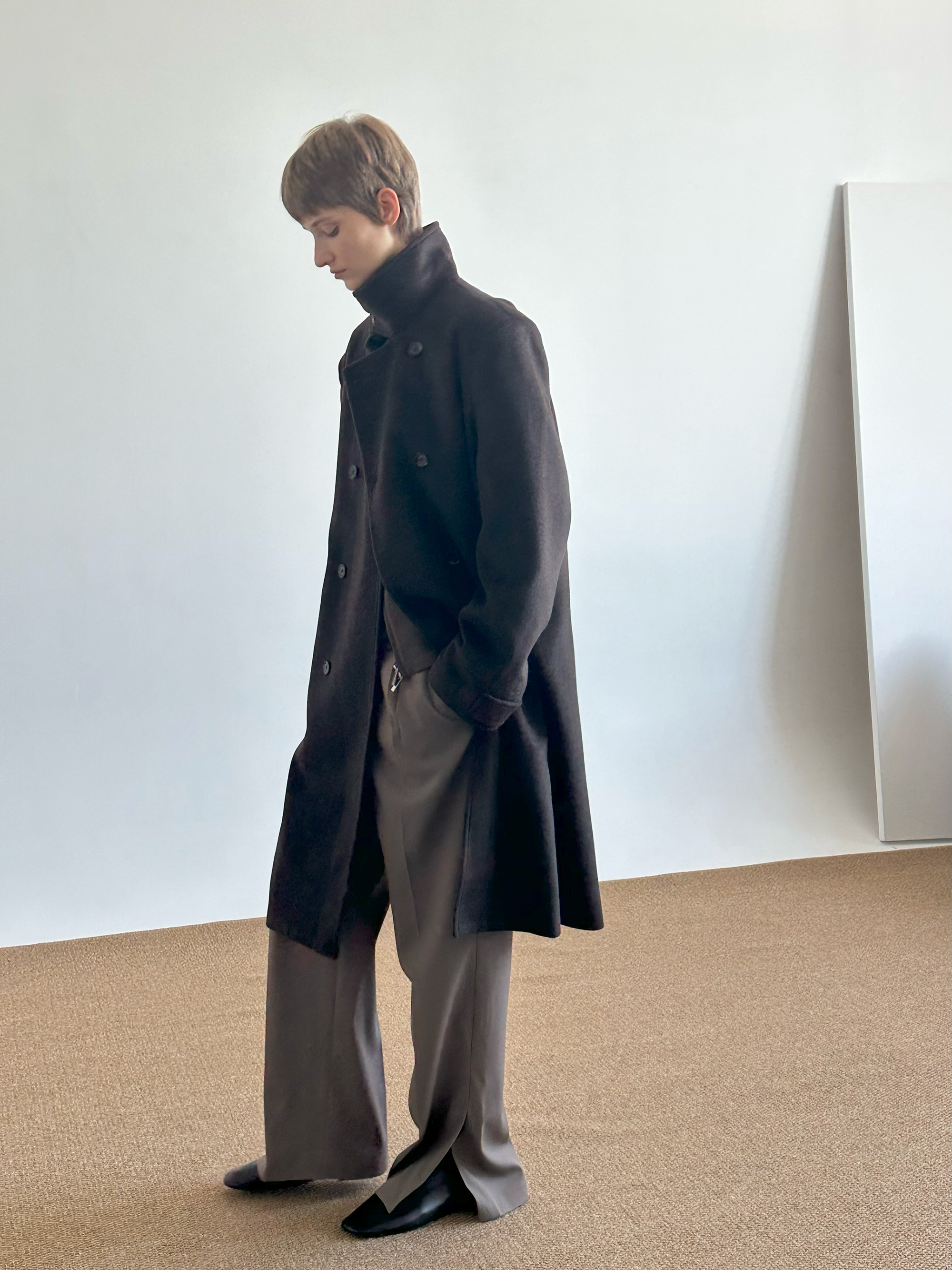 Standing-Collar Double-Breasted Wool Coat WN21642