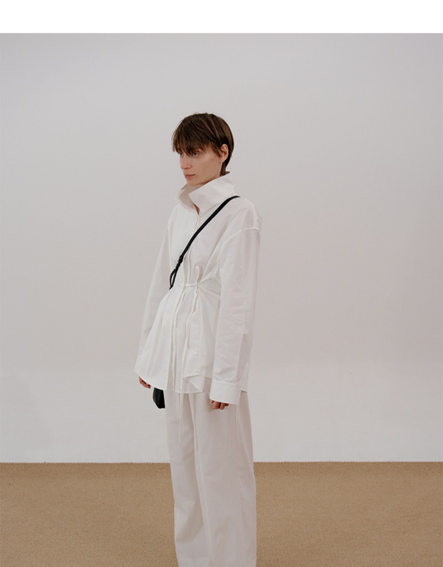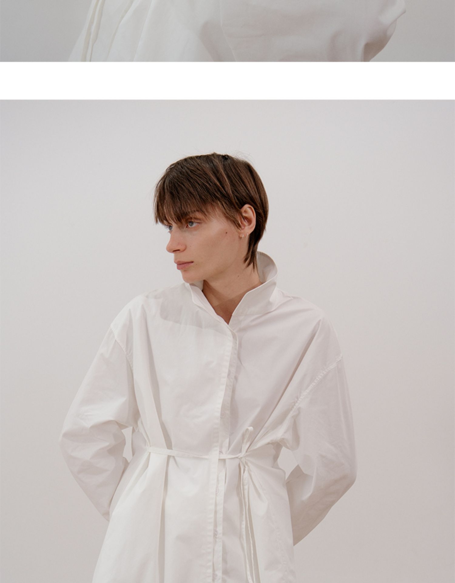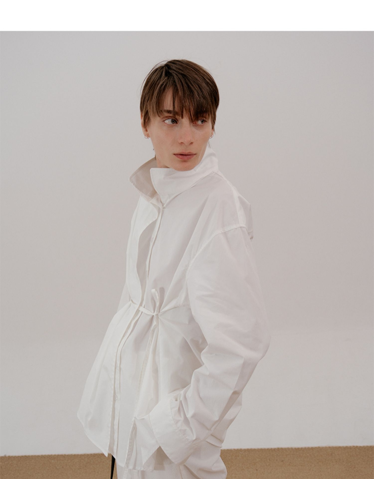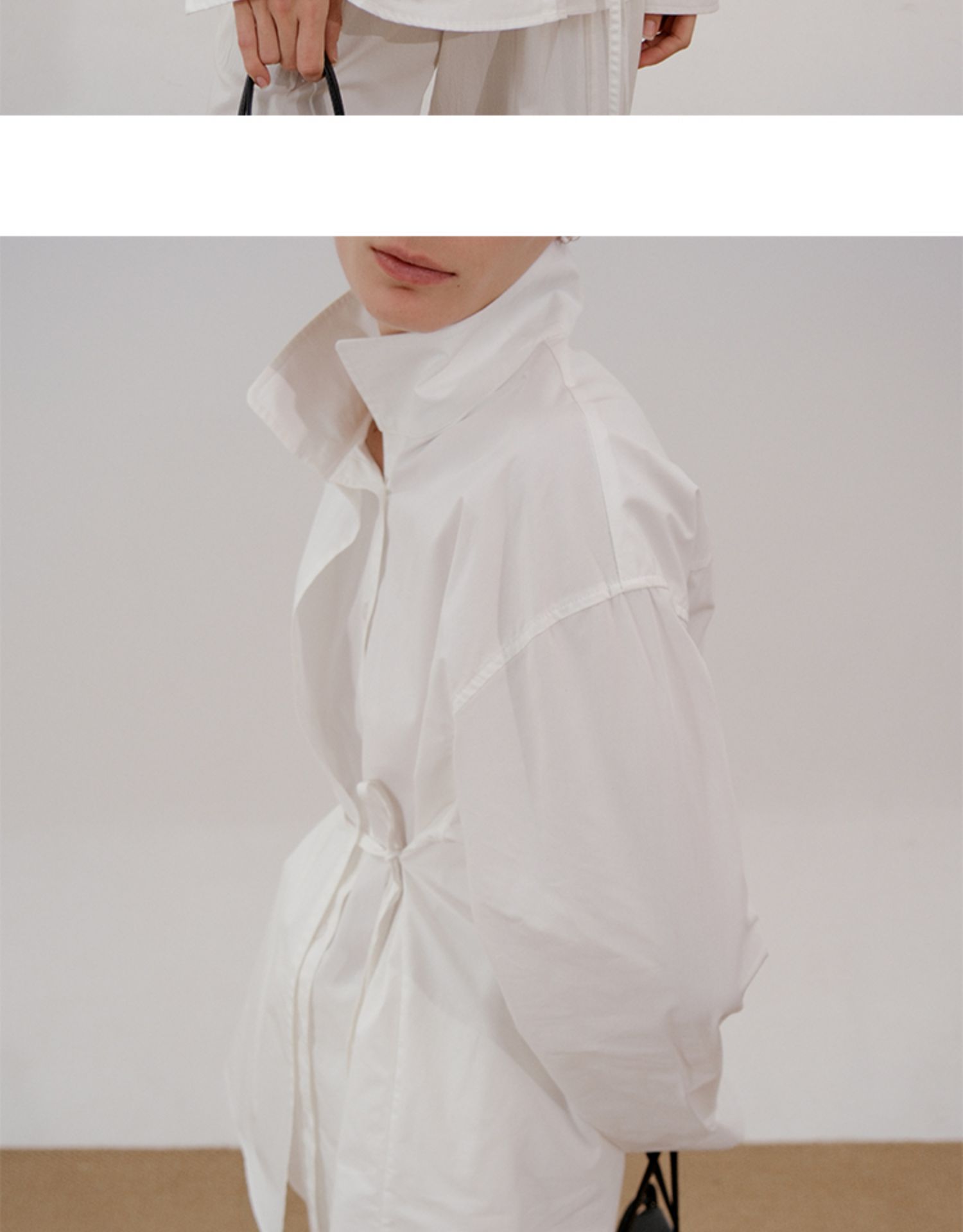 Belted Stand Collar Long Sleeve Shirt WN21648