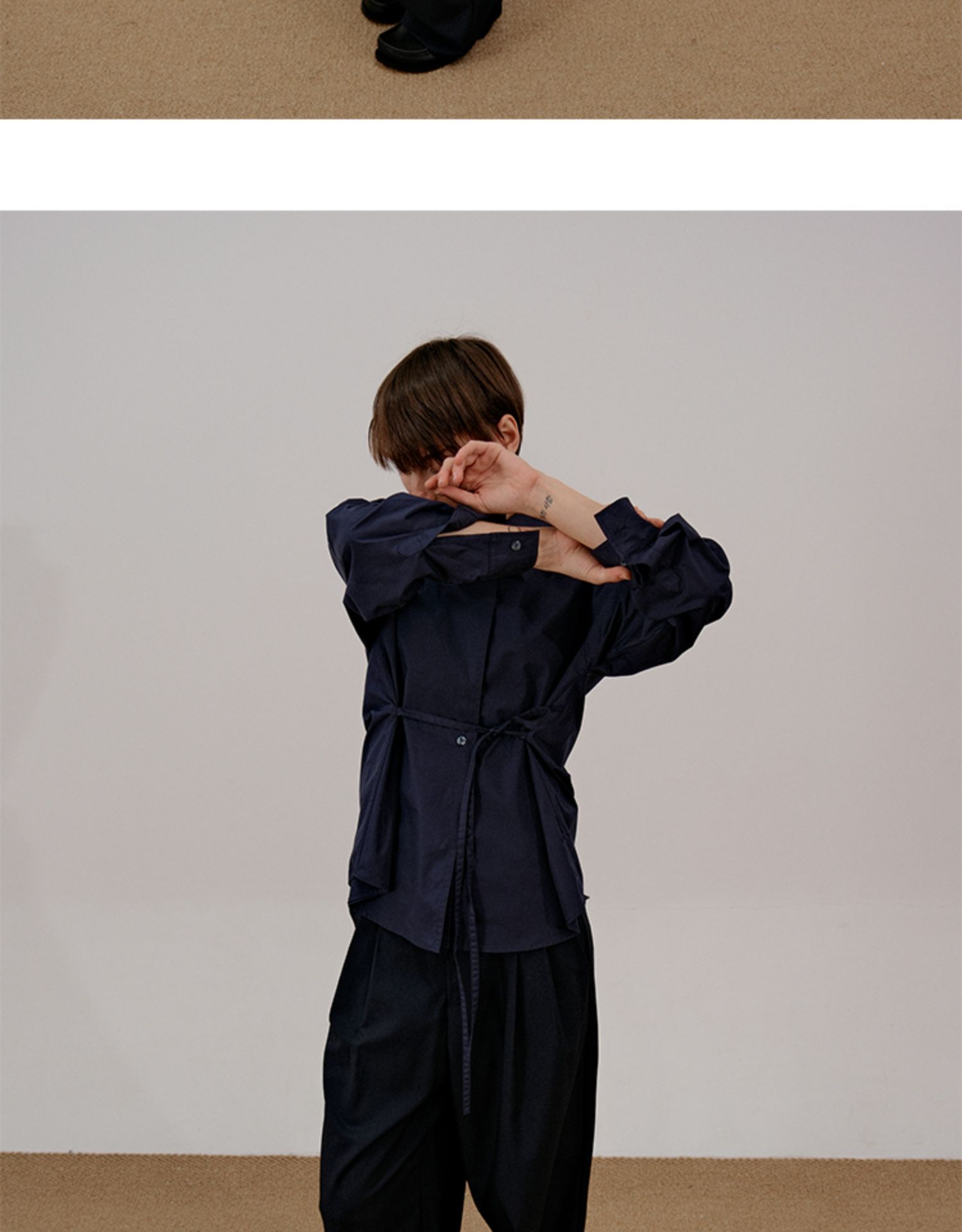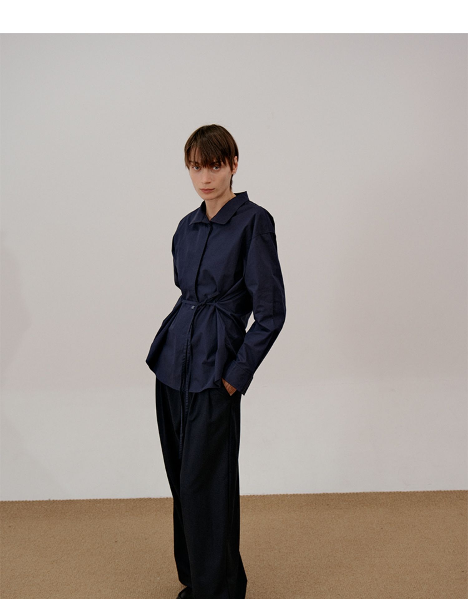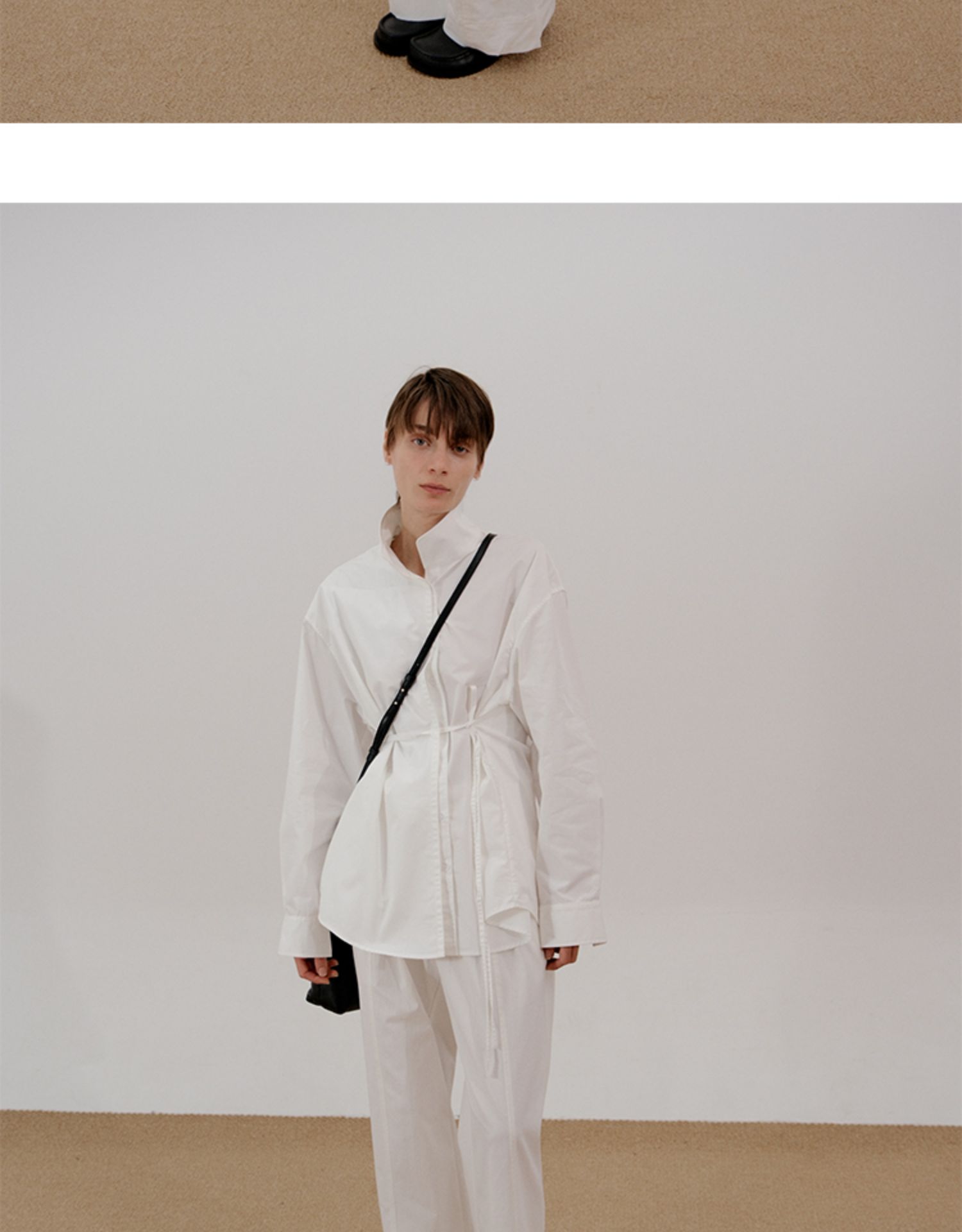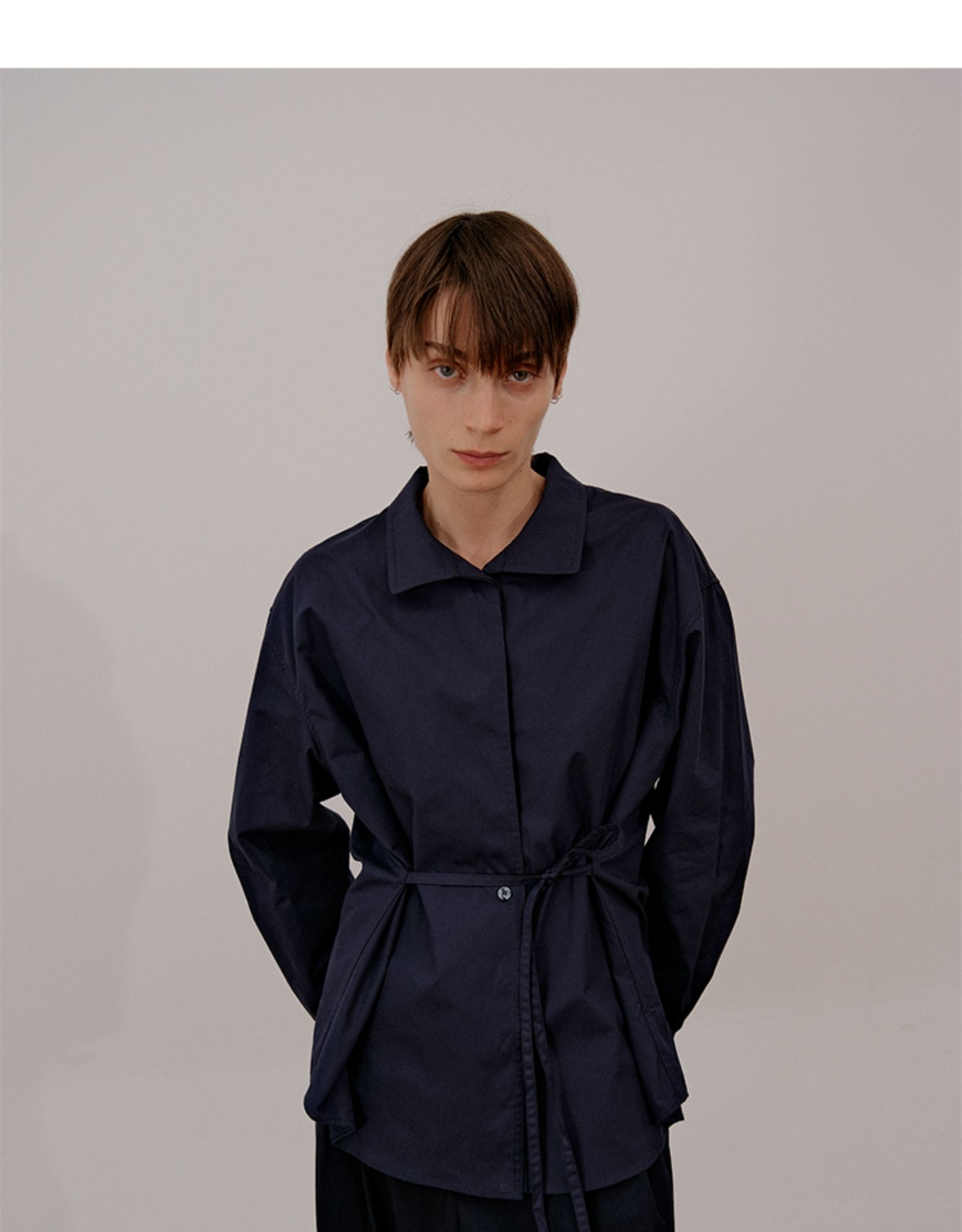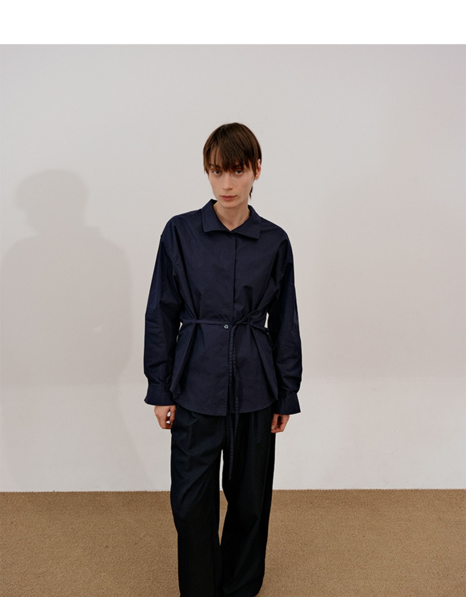 Belted Stand Collar Long Sleeve Shirt WN21648