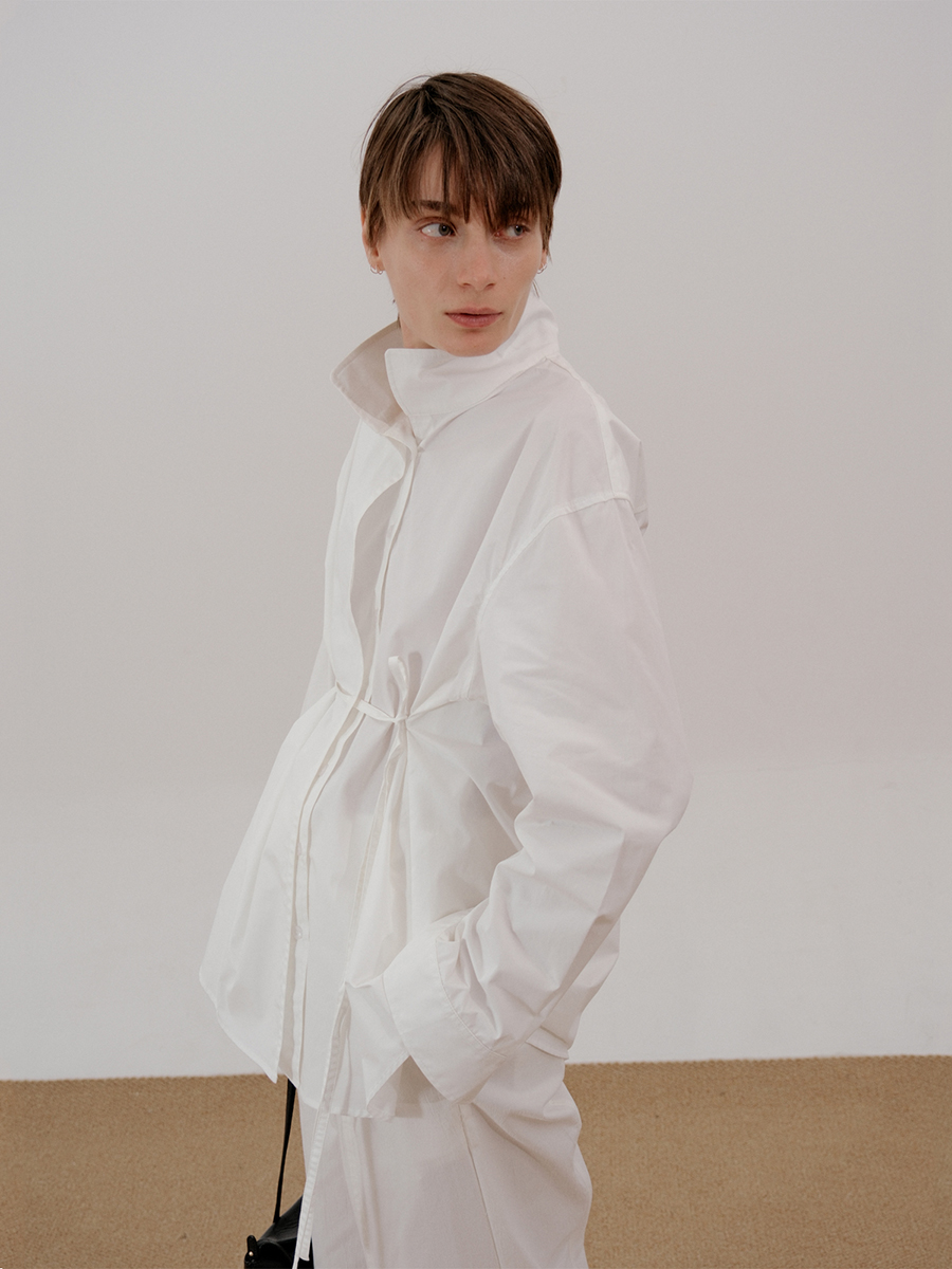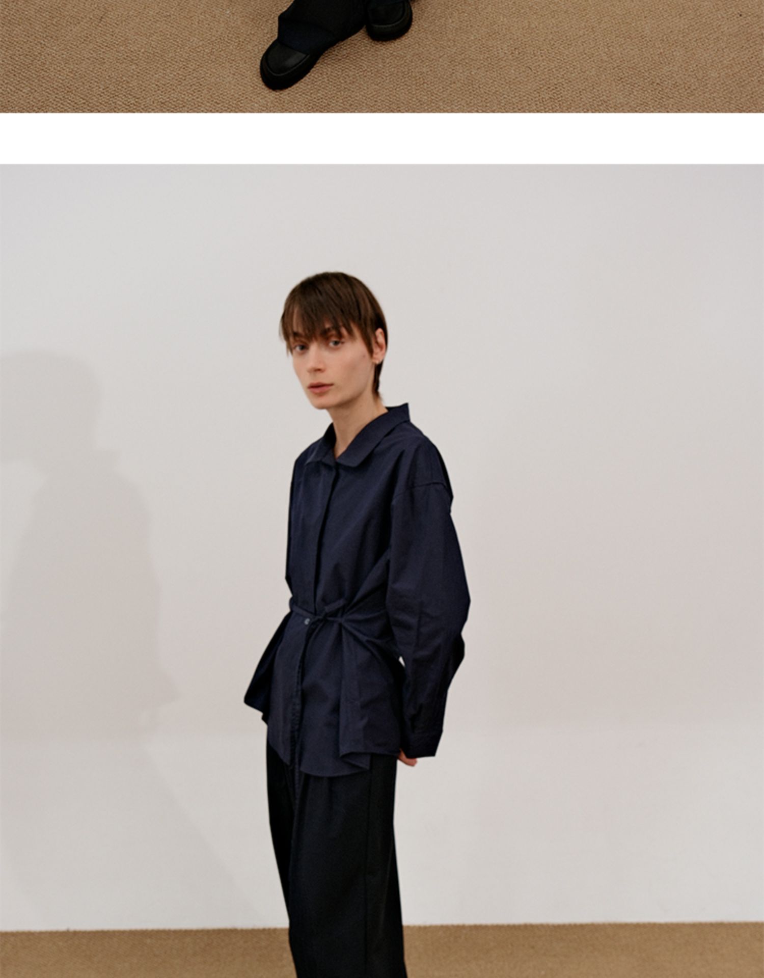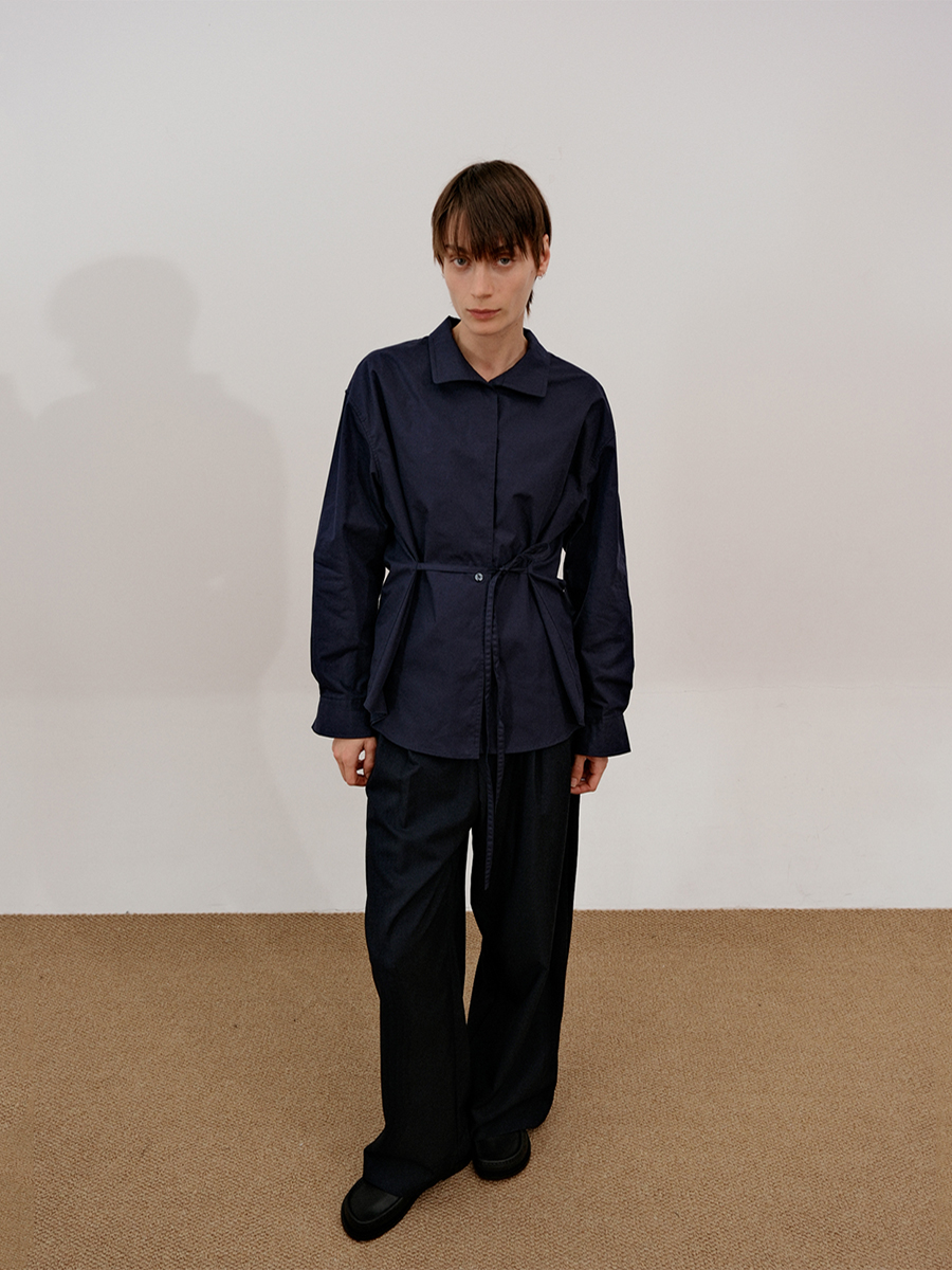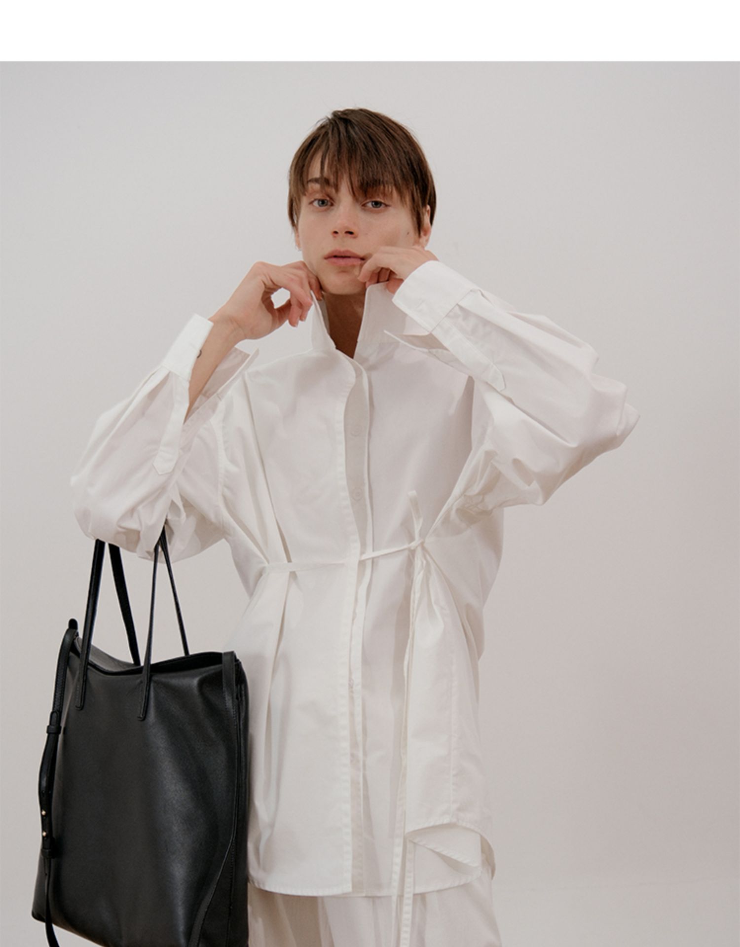 Belted Stand Collar Long Sleeve Shirt WN21648