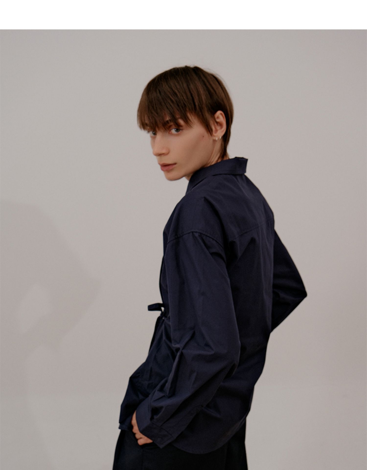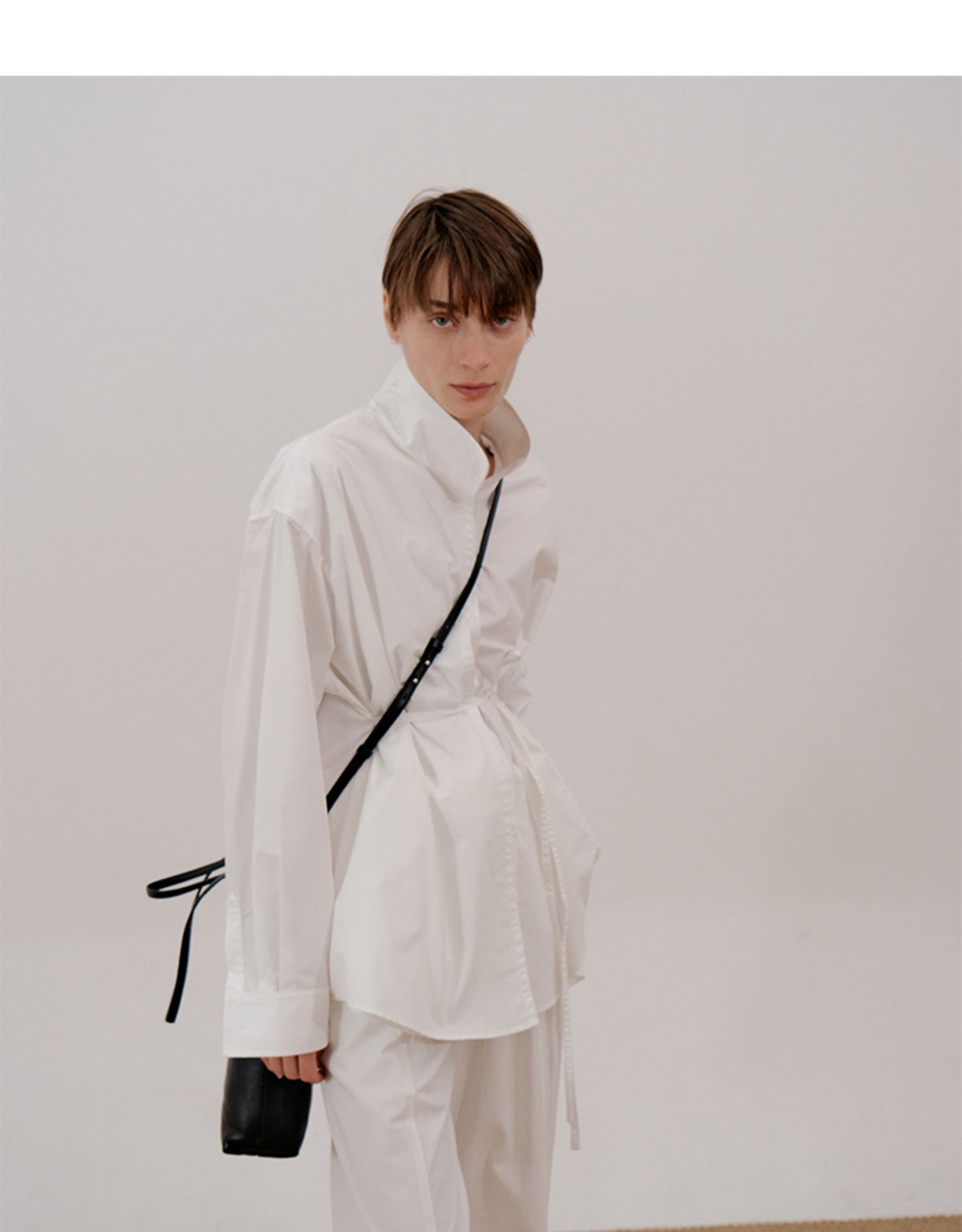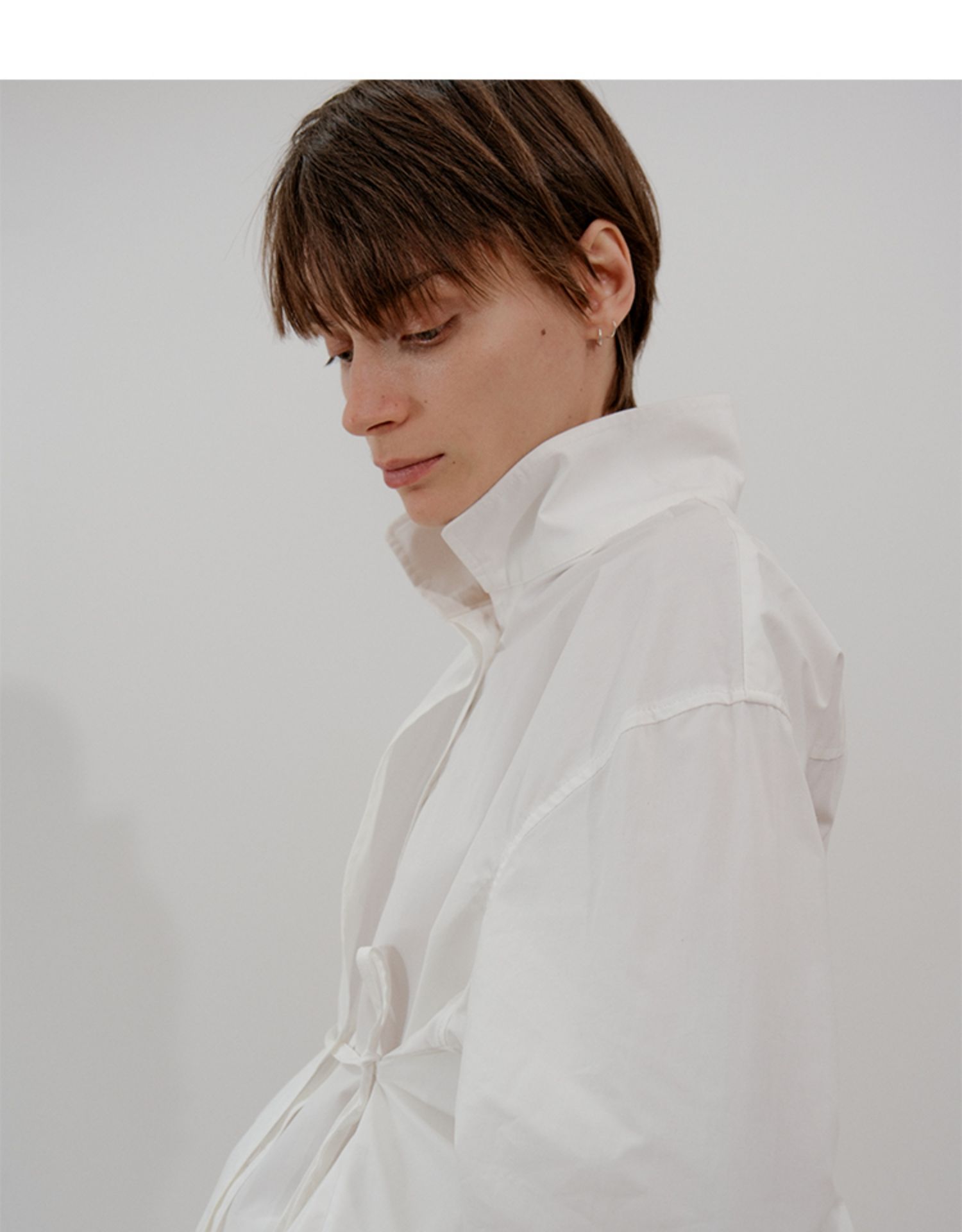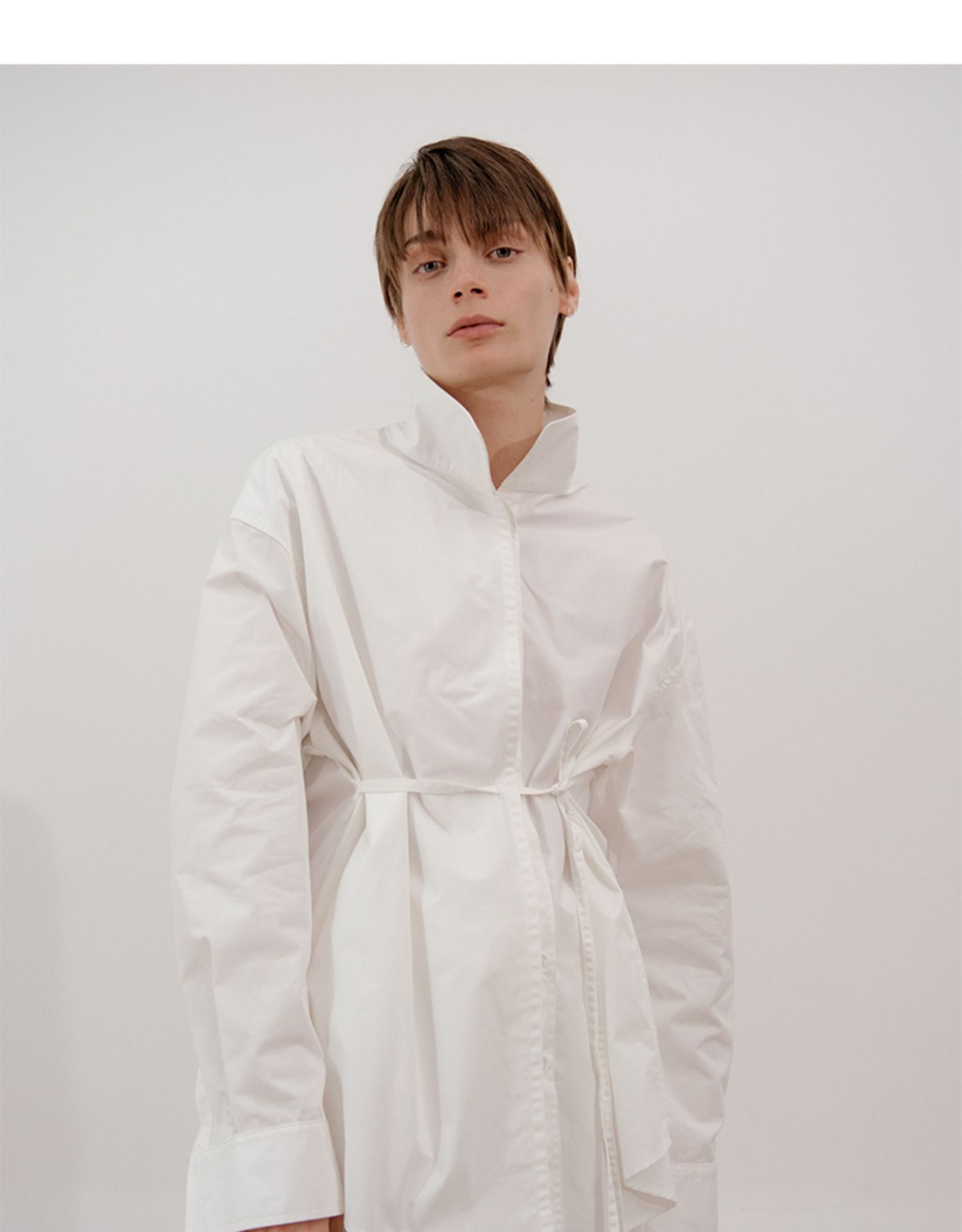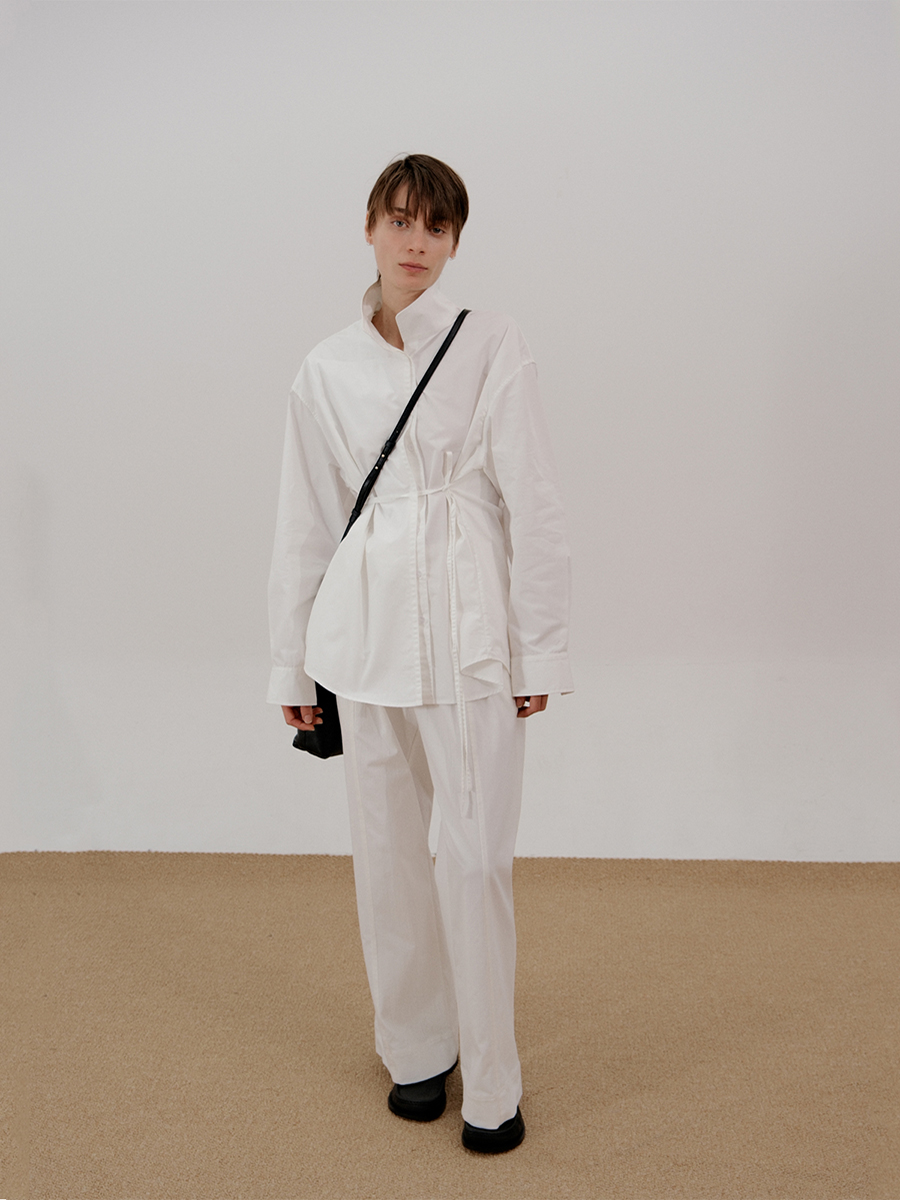 Belted Stand Collar Long Sleeve Shirt WN21648