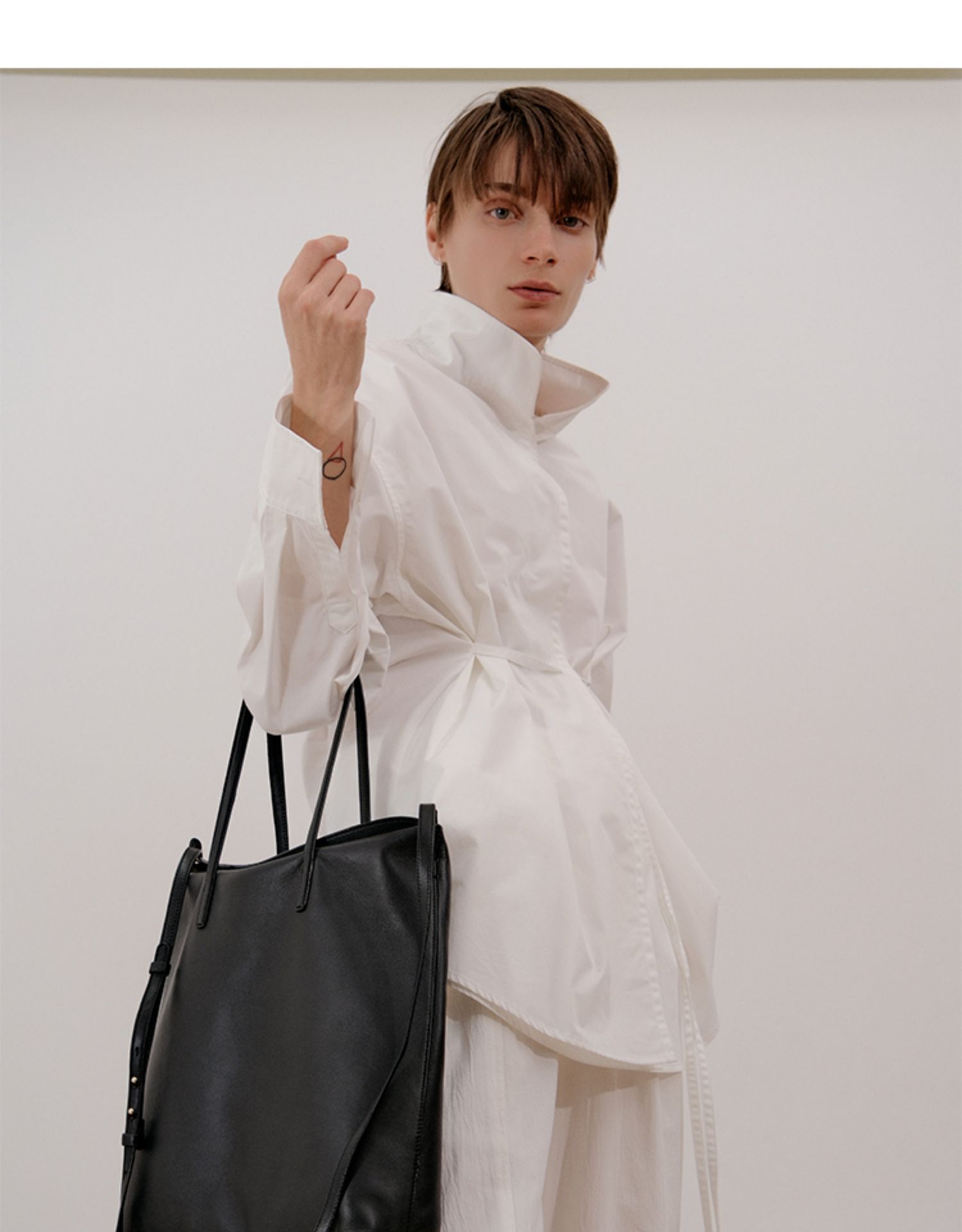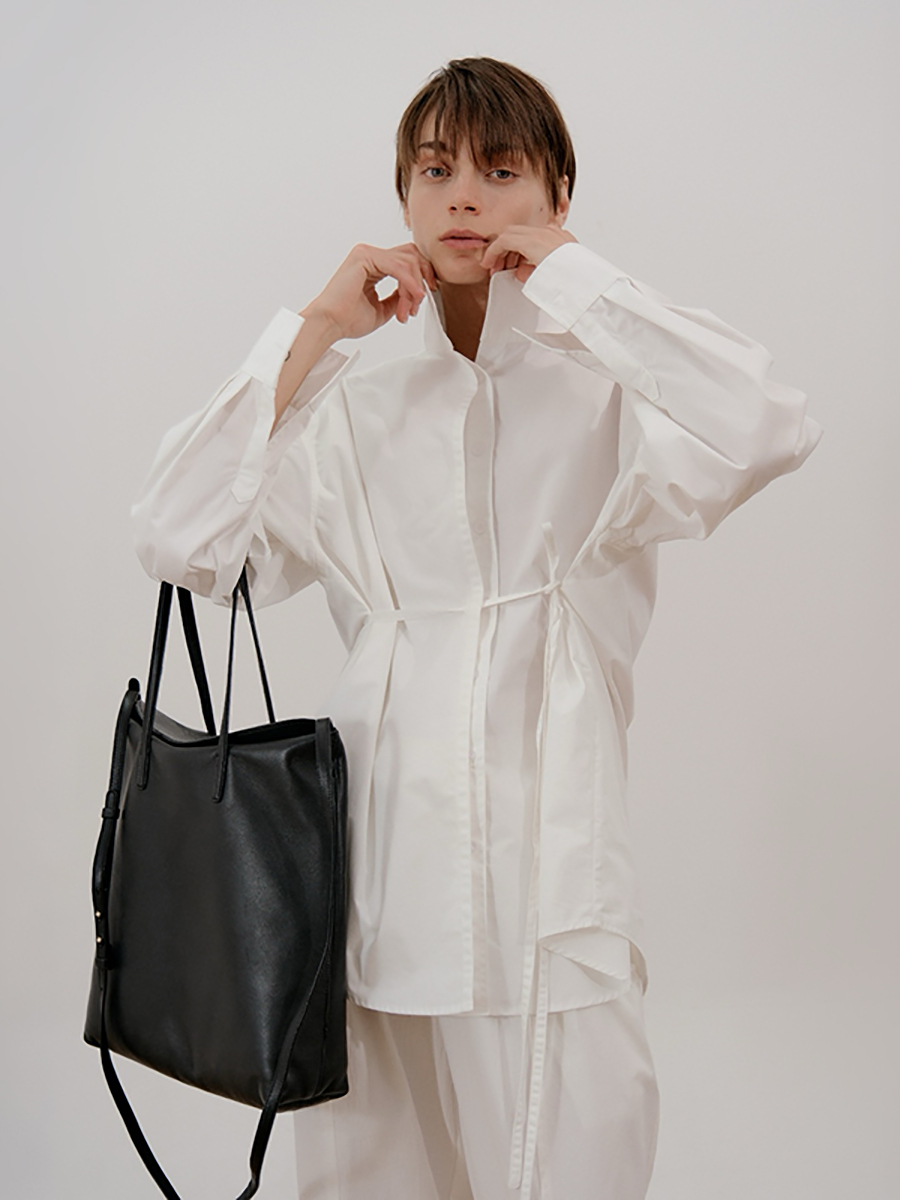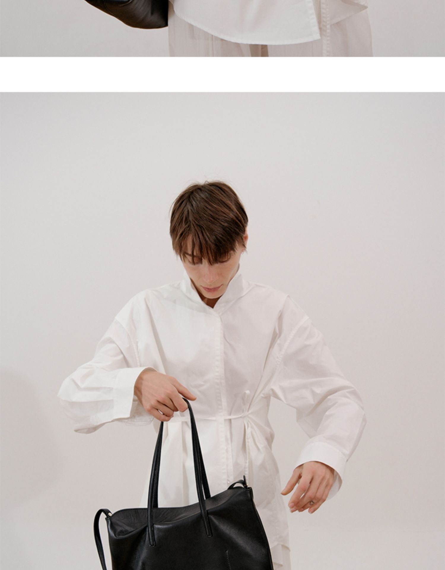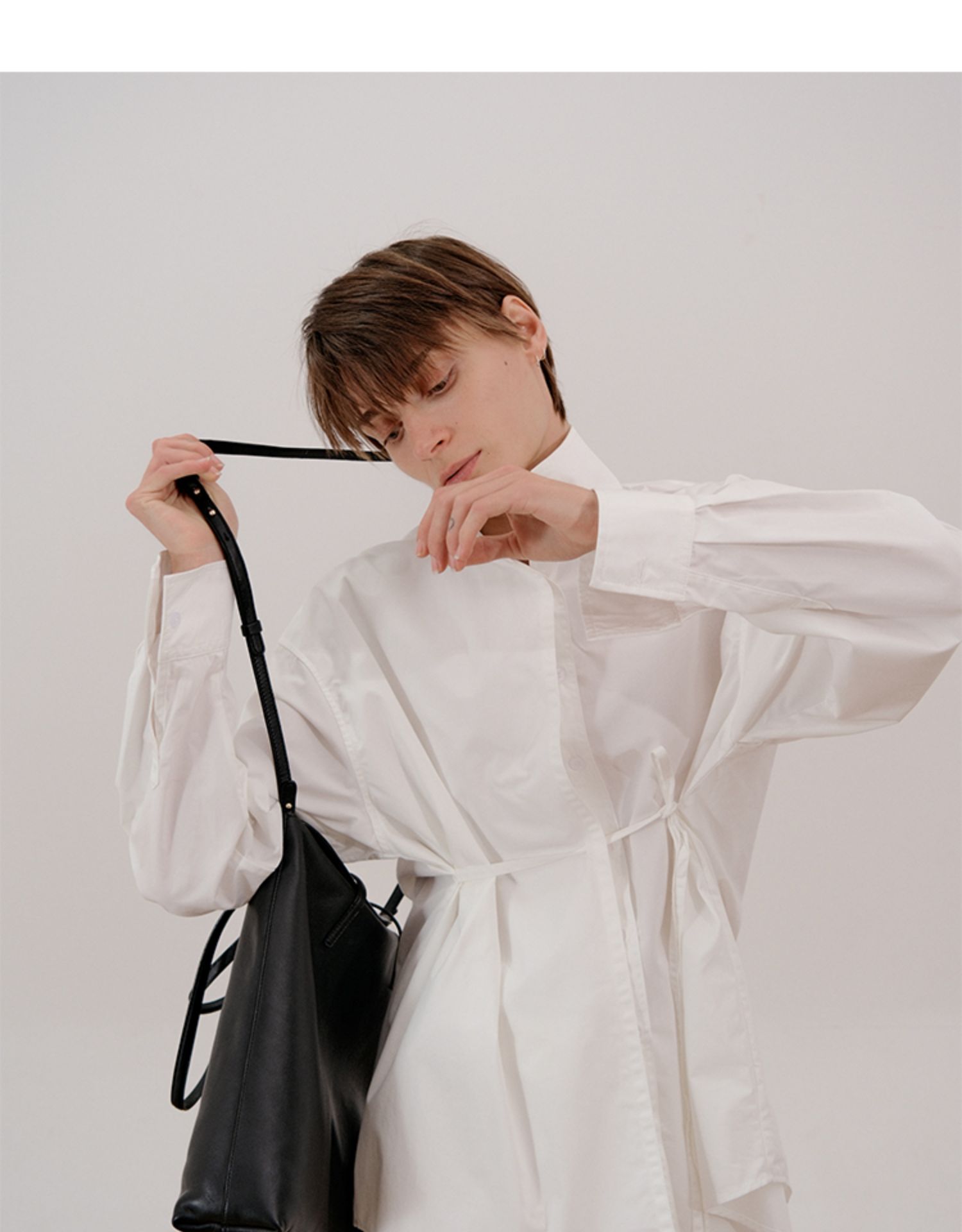 Belted Stand Collar Long Sleeve Shirt WN21648