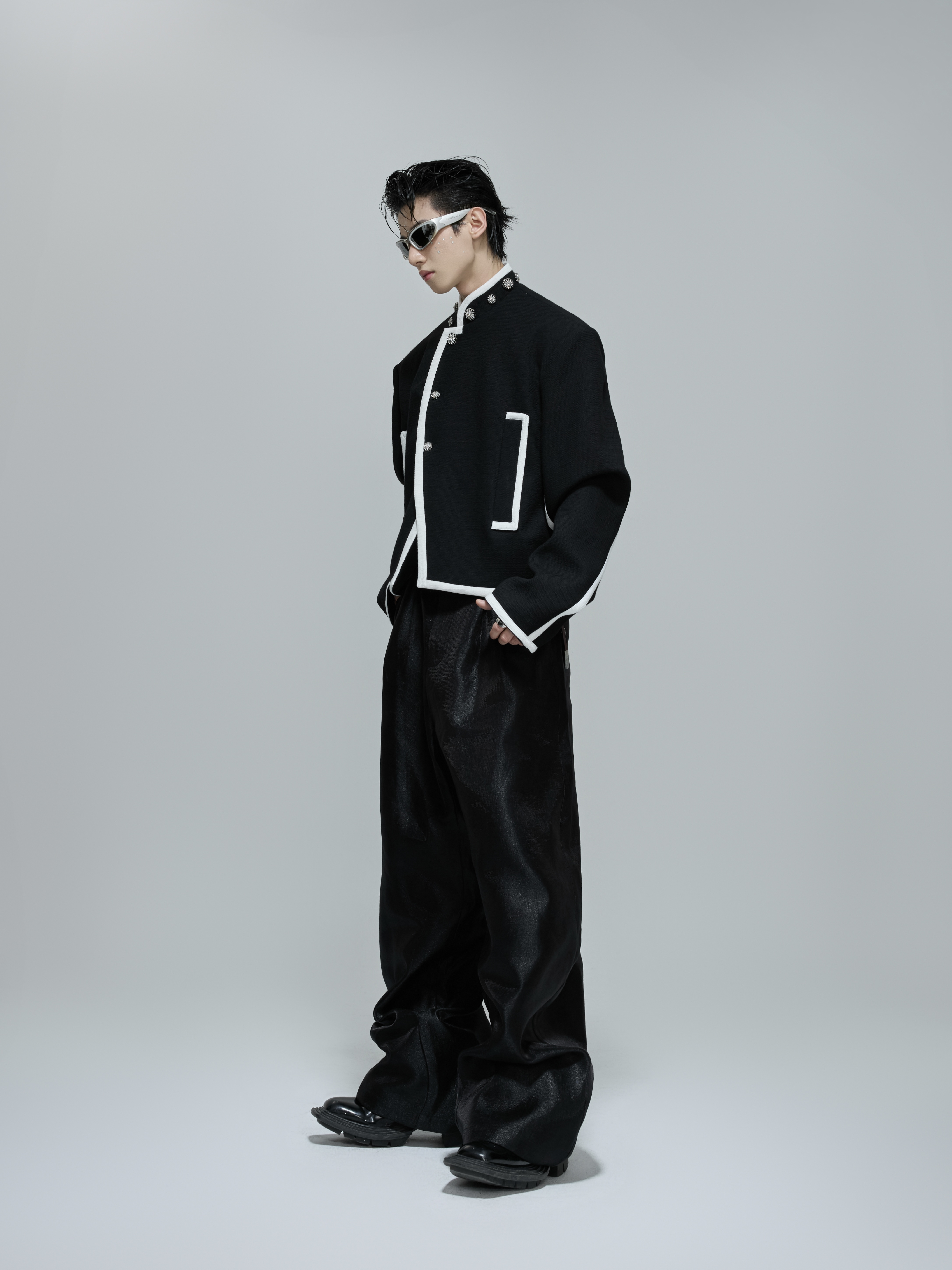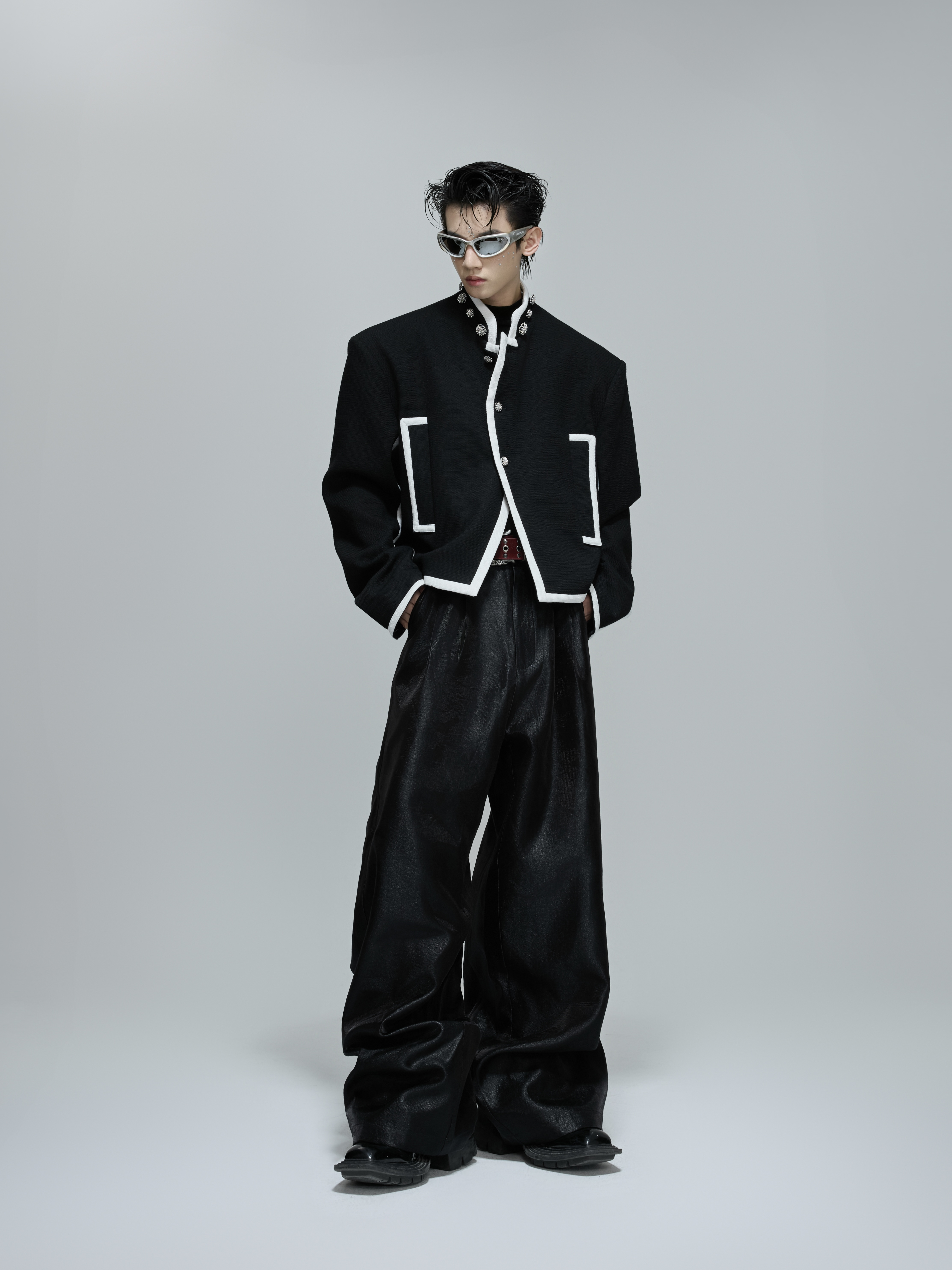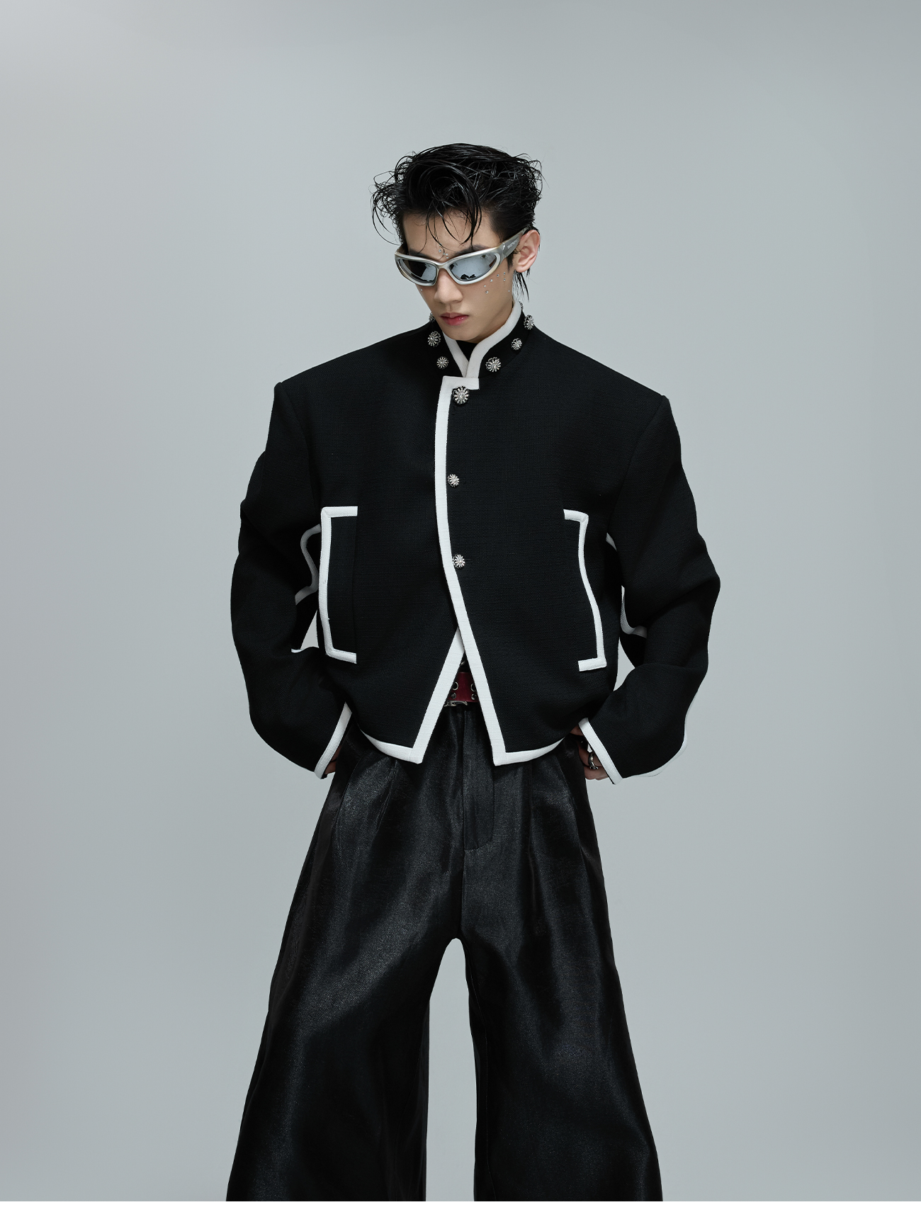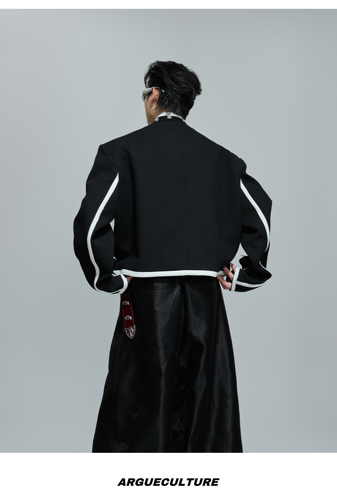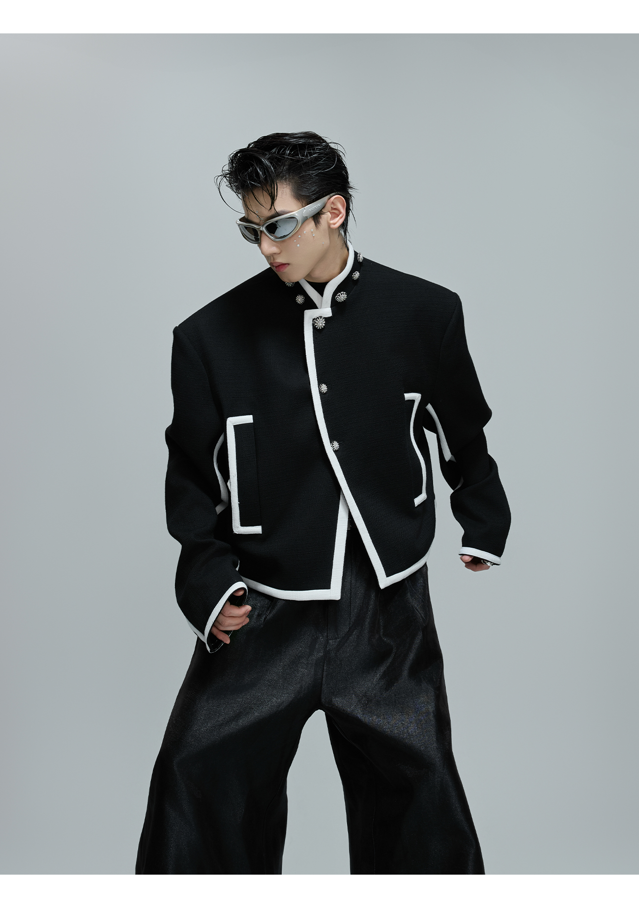 Standing-Collar Colorblock Shoulder-Pad Short Jacket WN21690