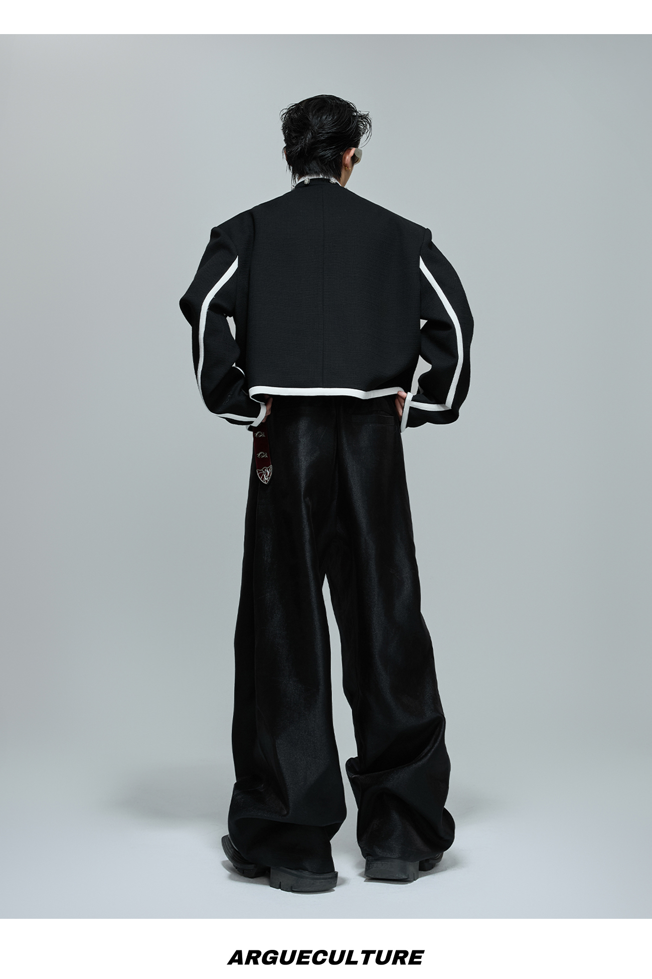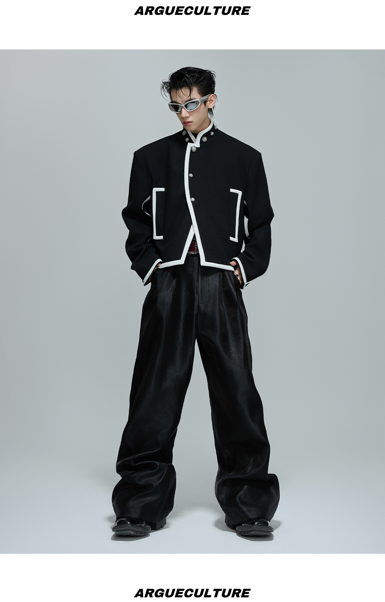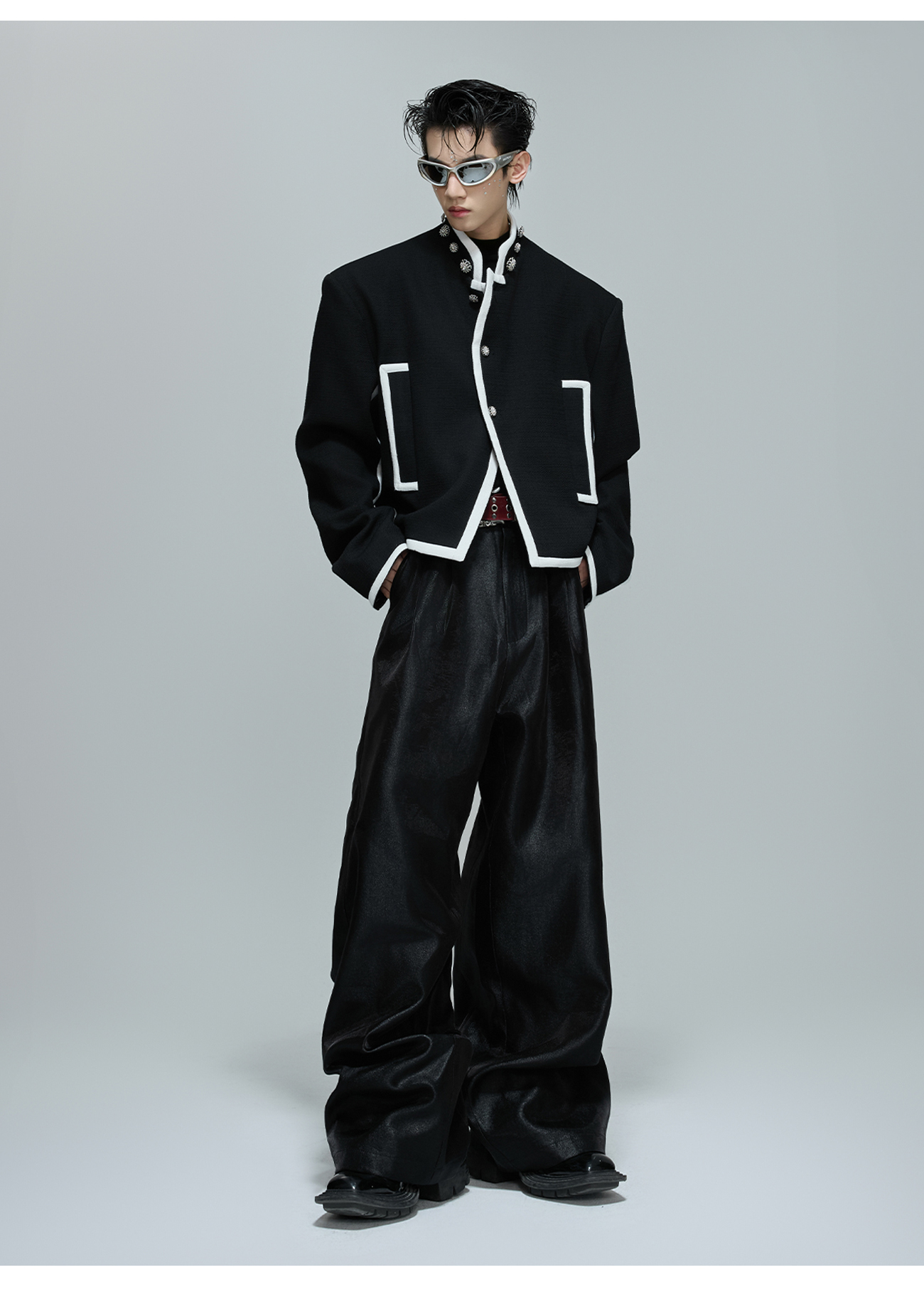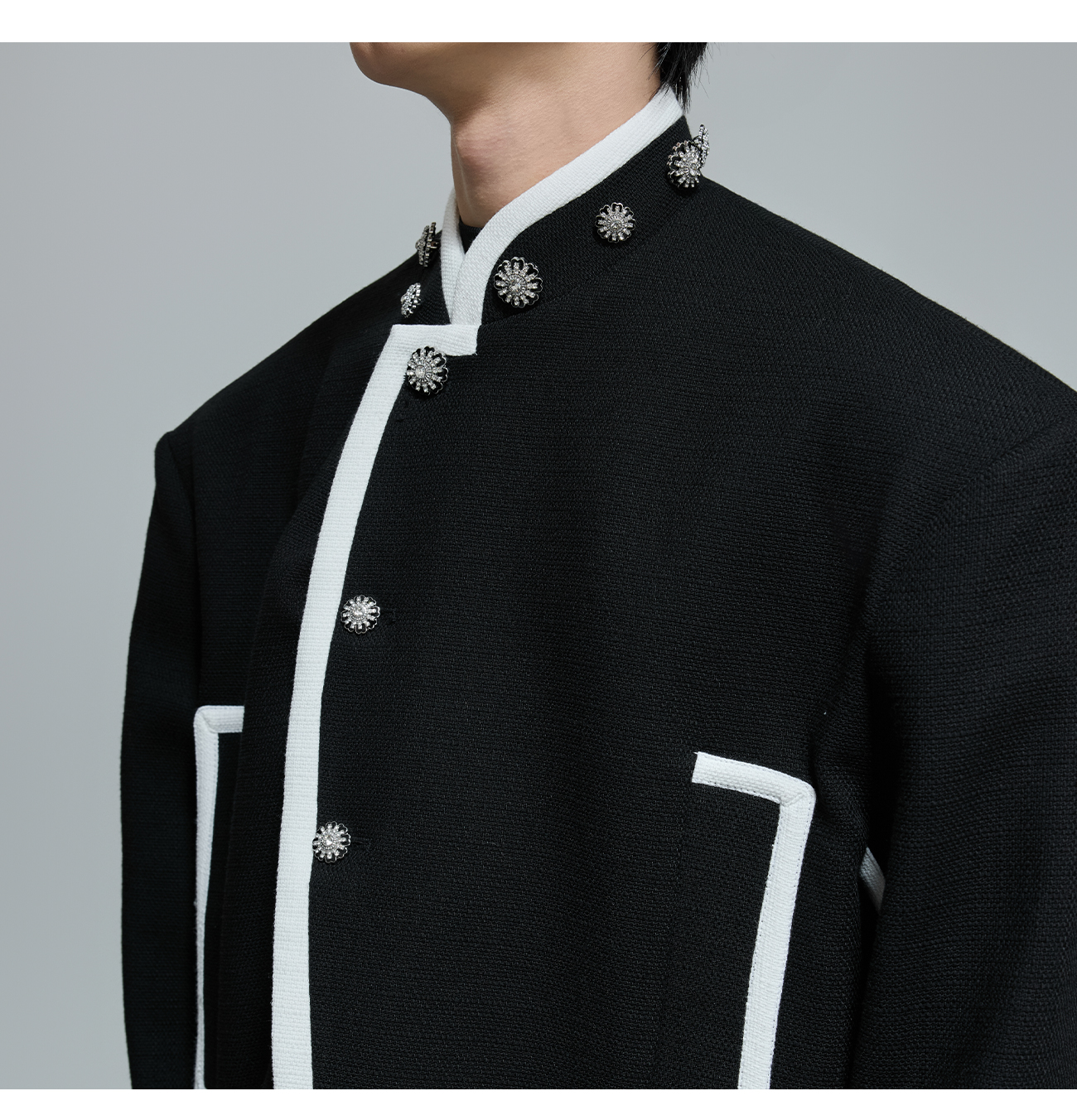 Standing-Collar Colorblock Shoulder-Pad Short Jacket WN21690
