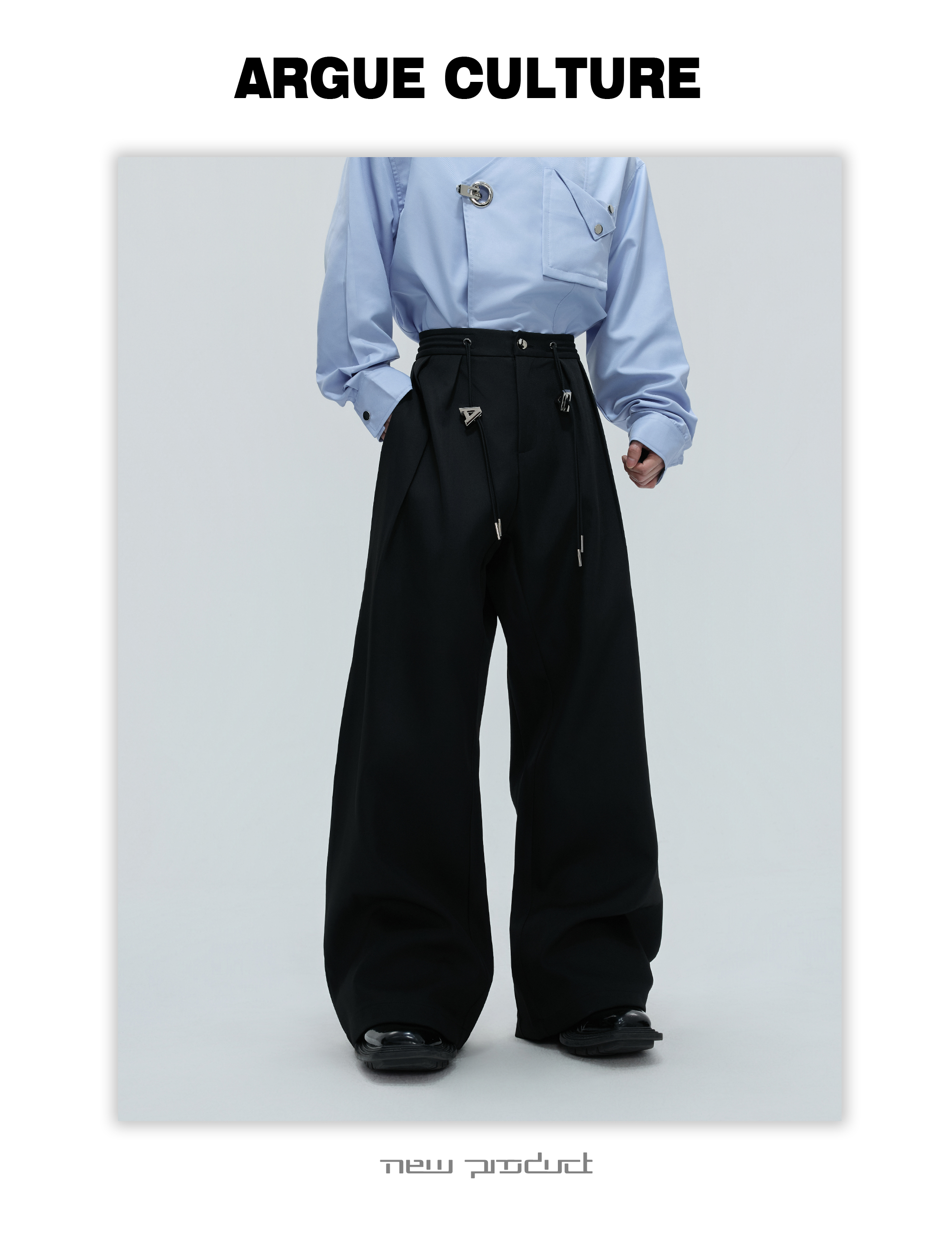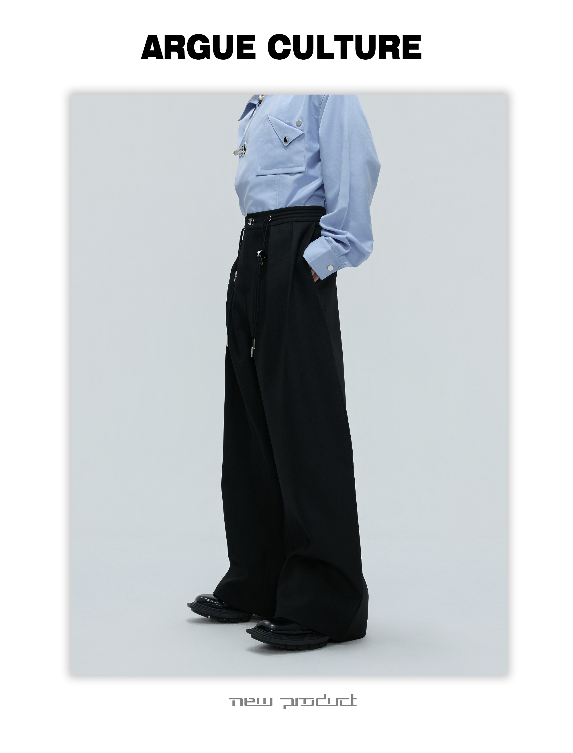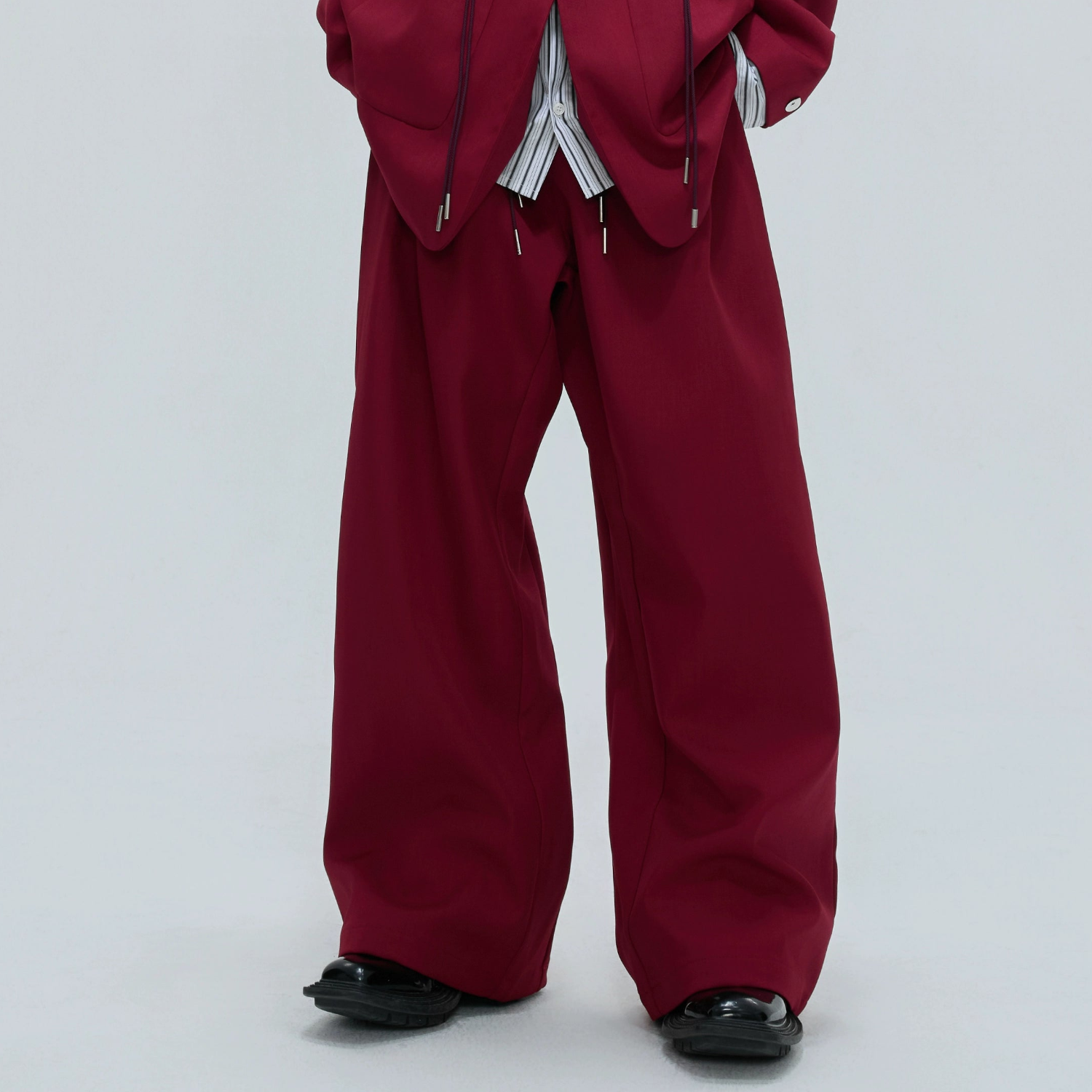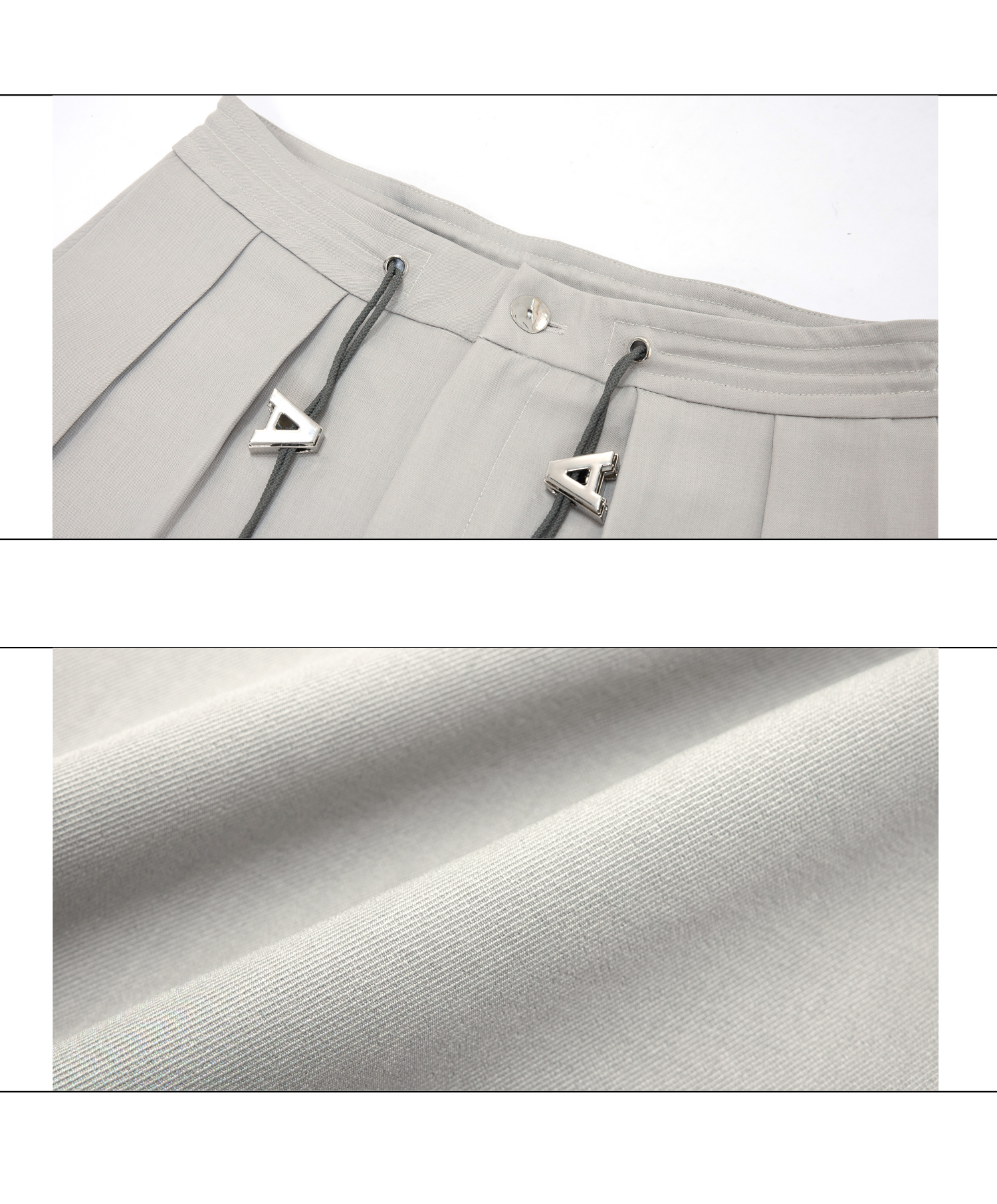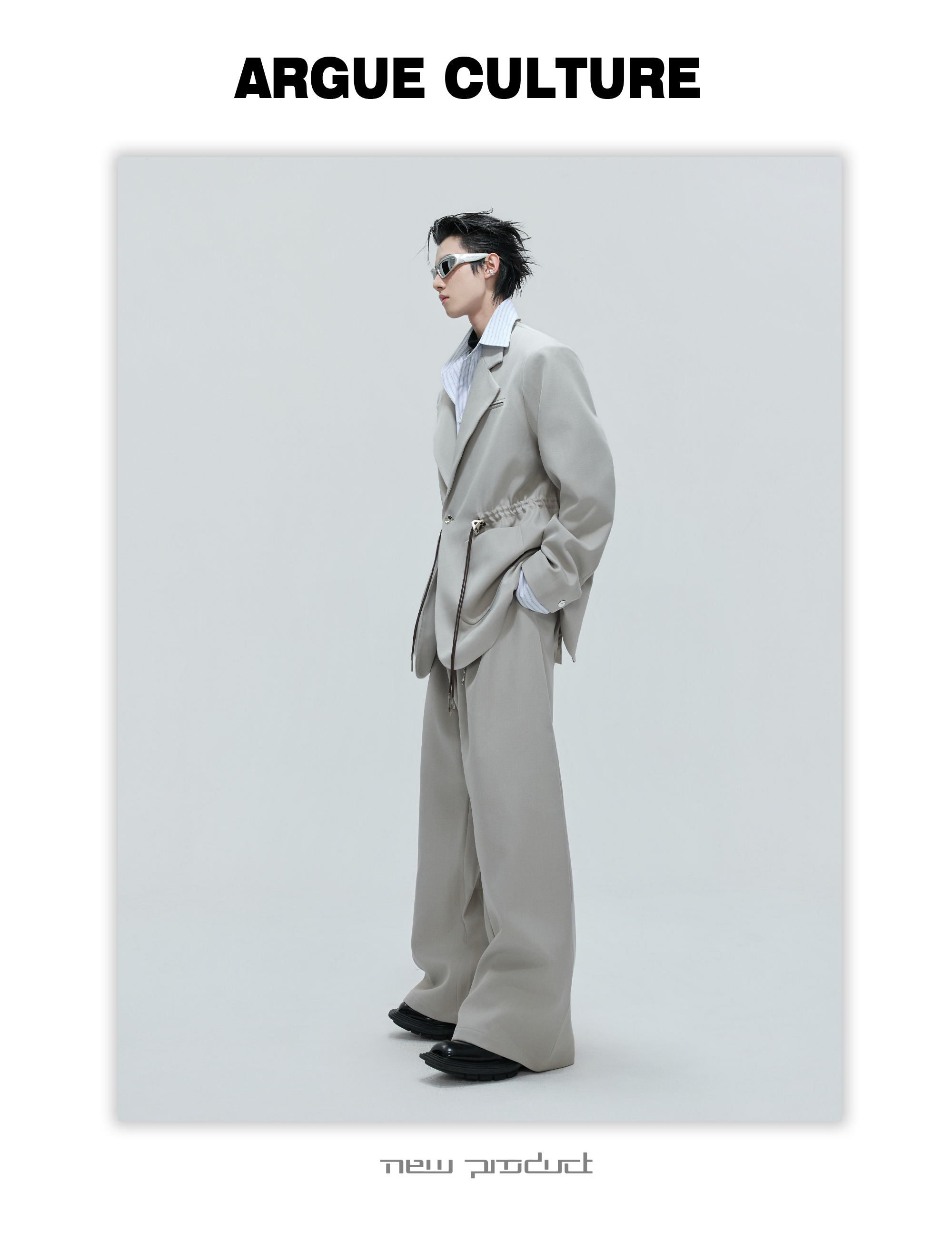 Stripe Shirt Fake Layered Drawstring Waist Shoulder-Pad Tailored Jacket & Trousers Setup WN21731