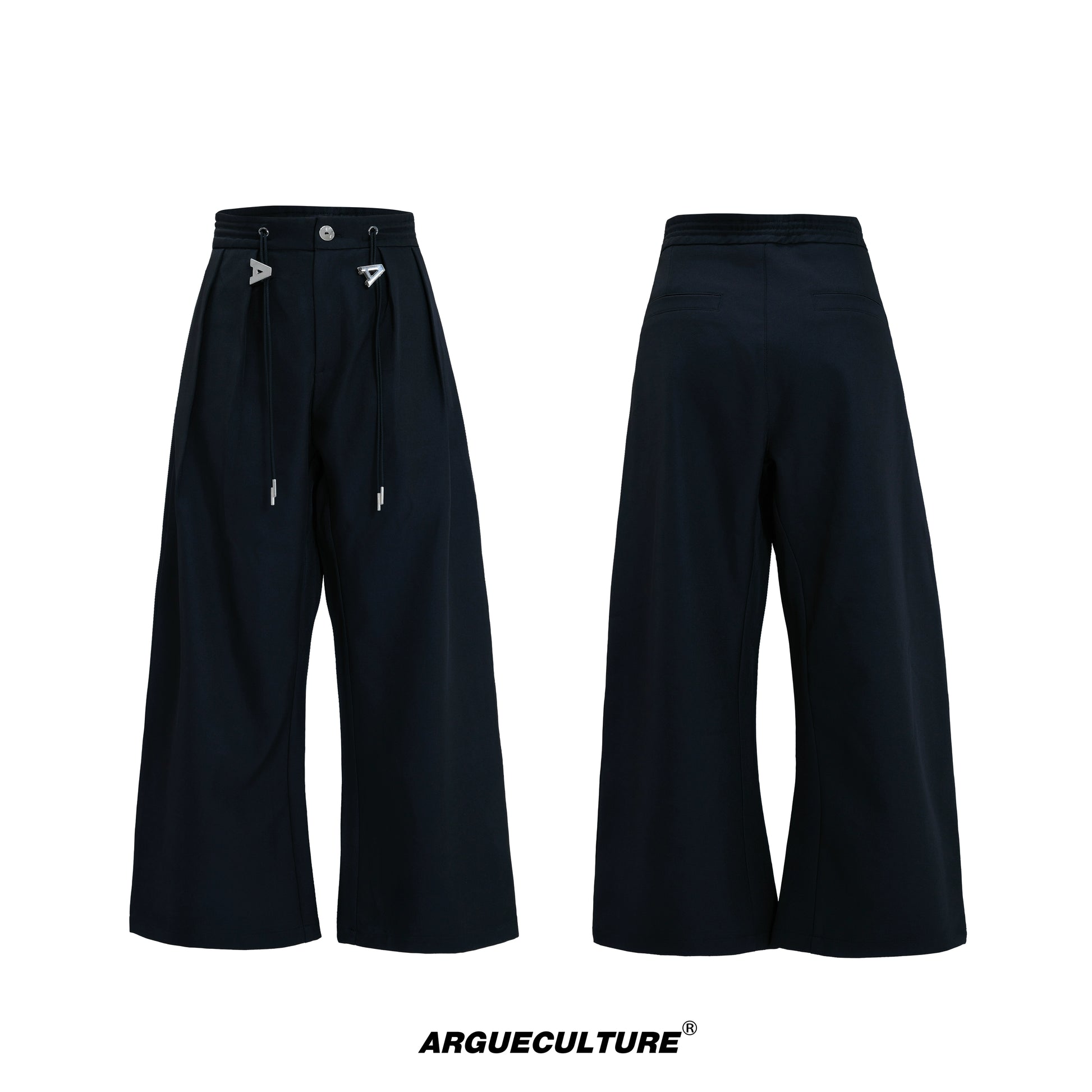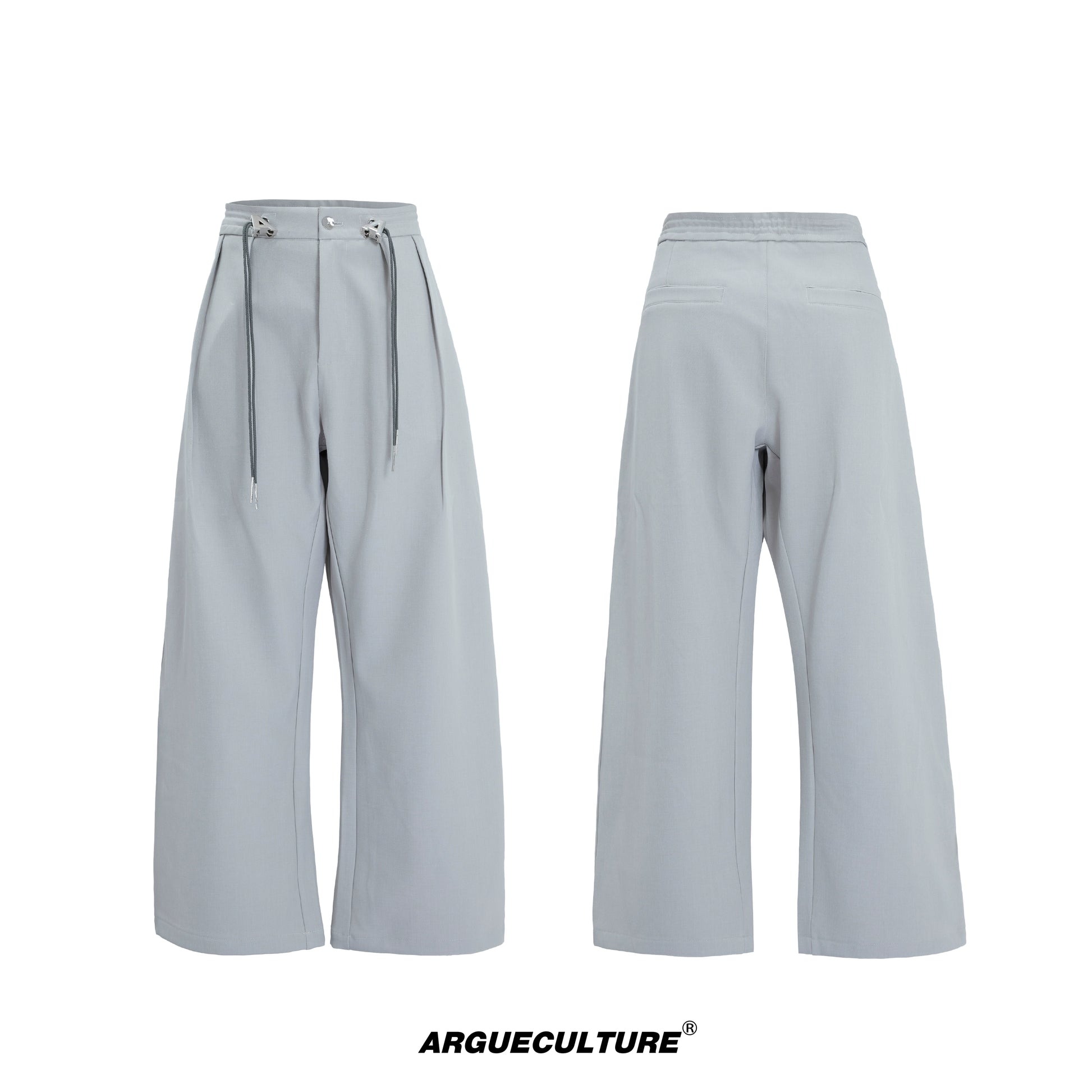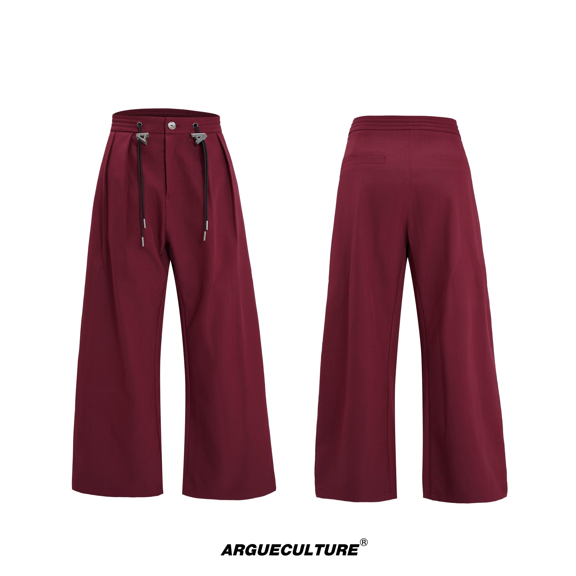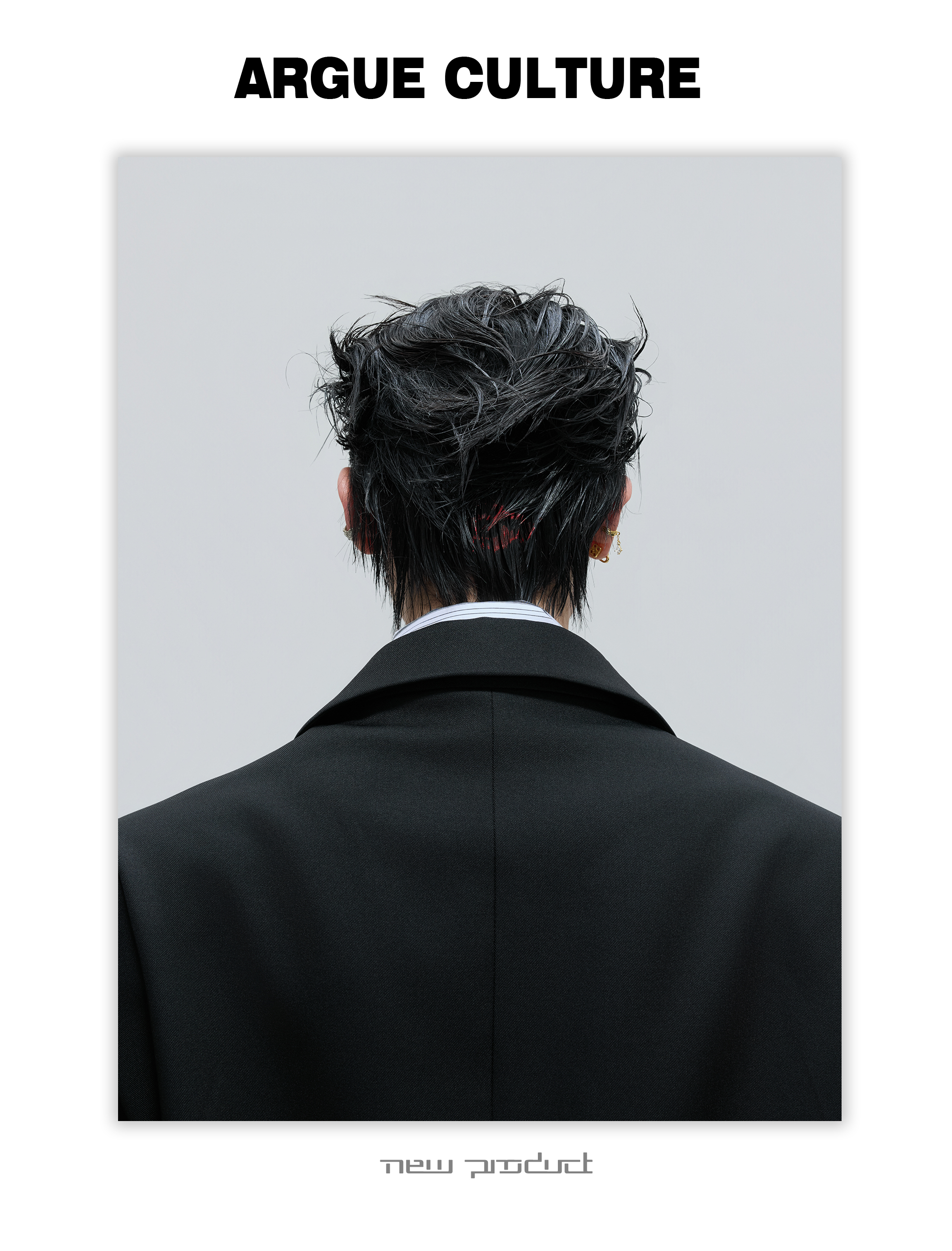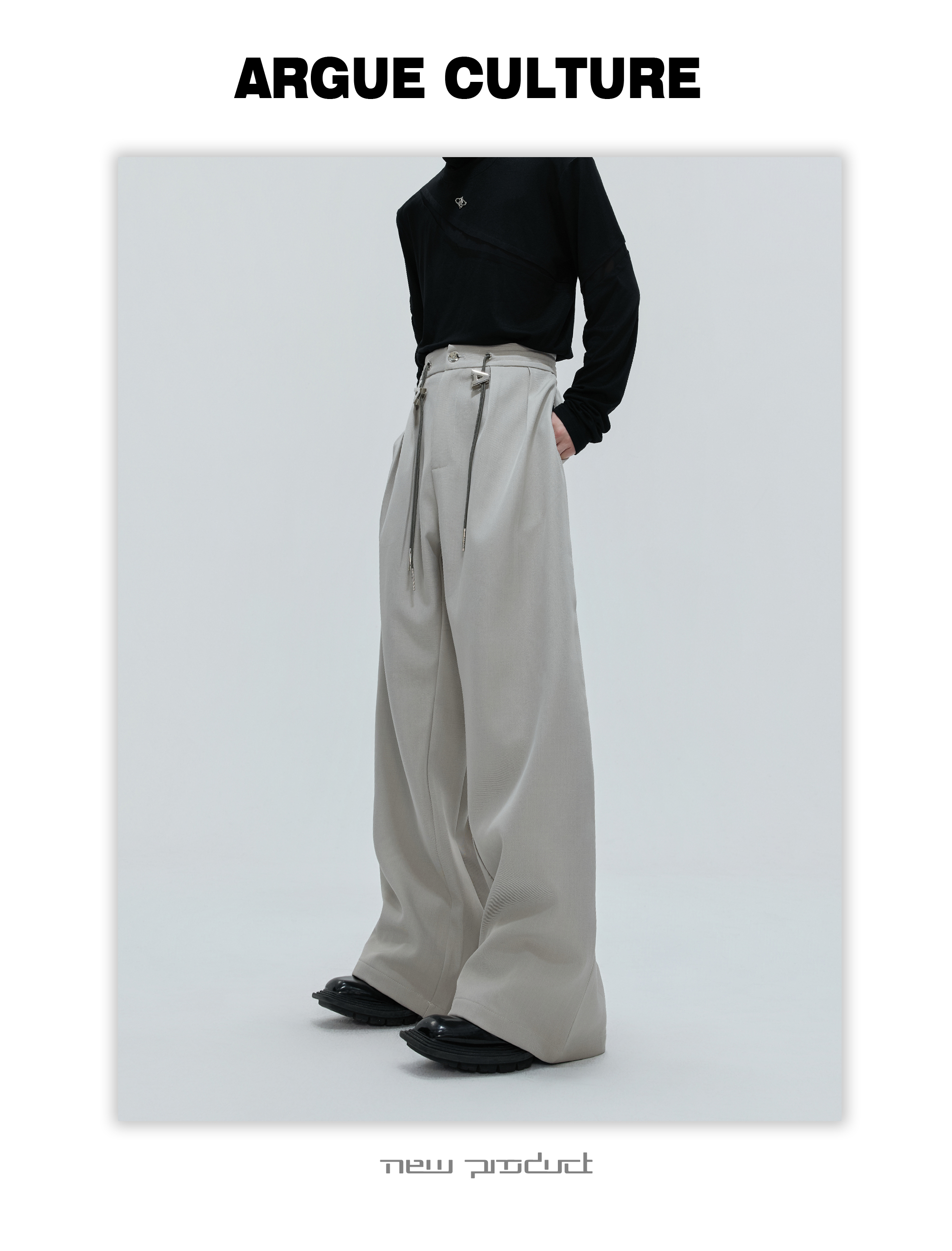 Stripe Shirt Fake Layered Drawstring Waist Shoulder-Pad Tailored Jacket & Trousers Setup WN21731