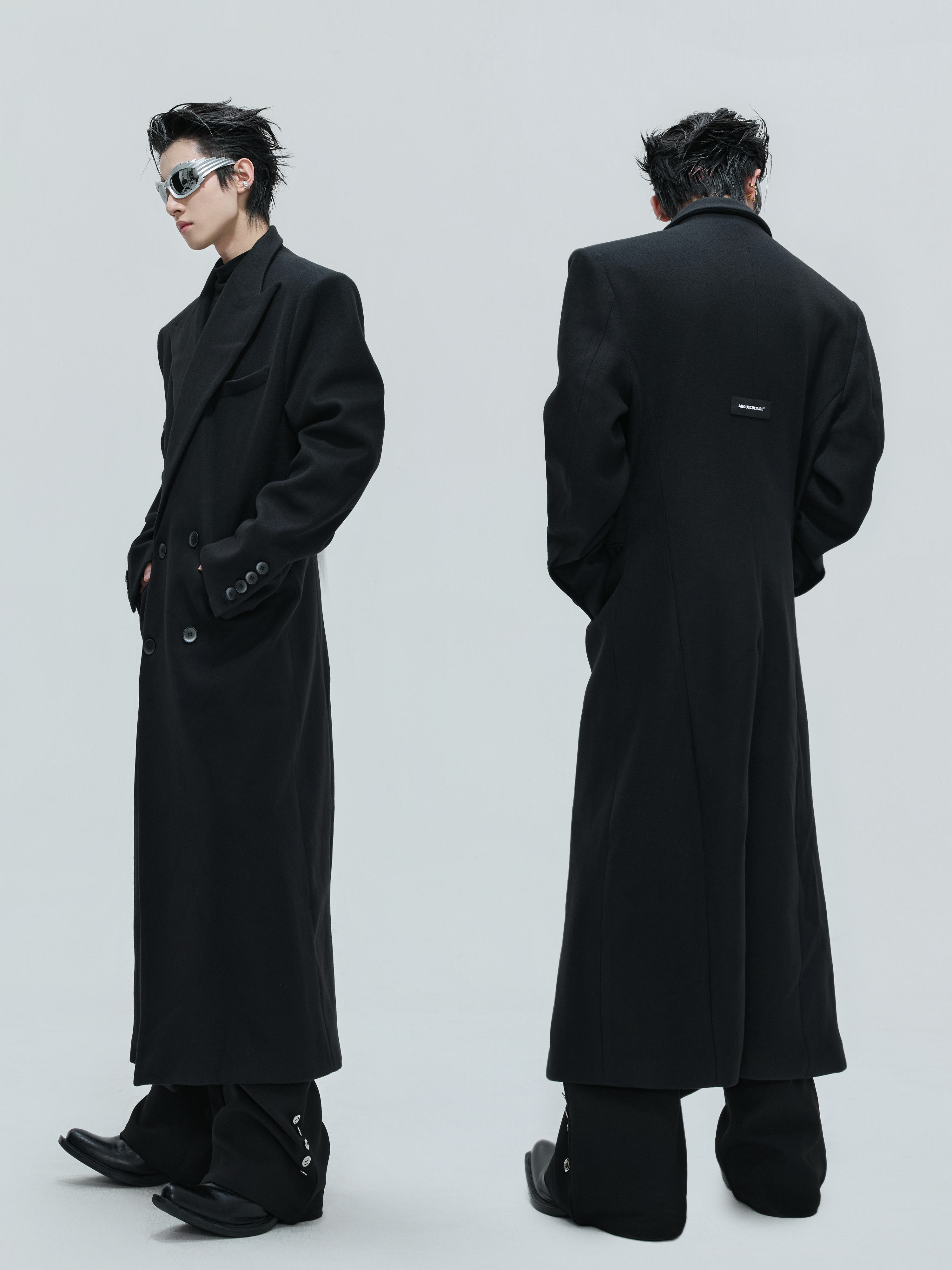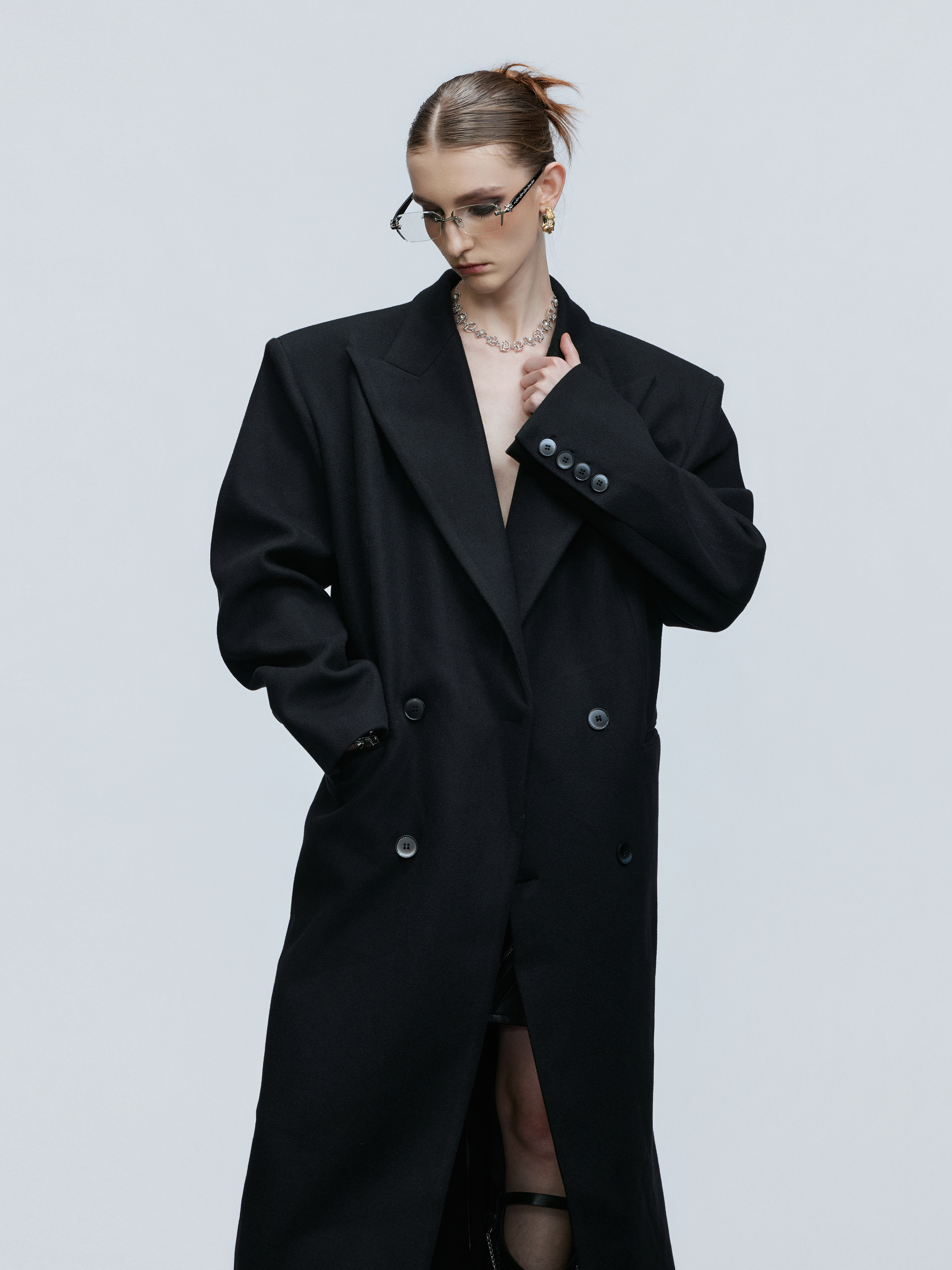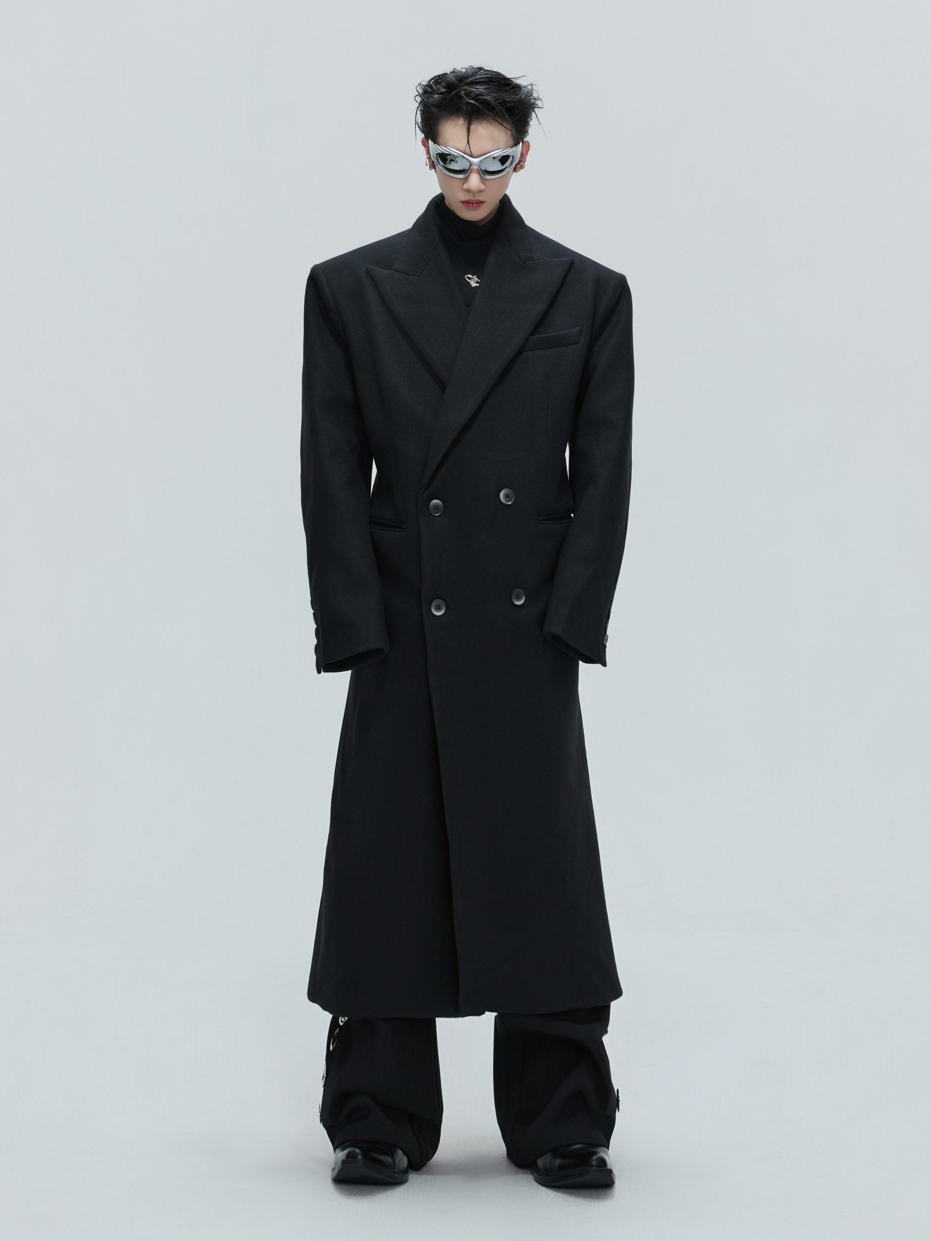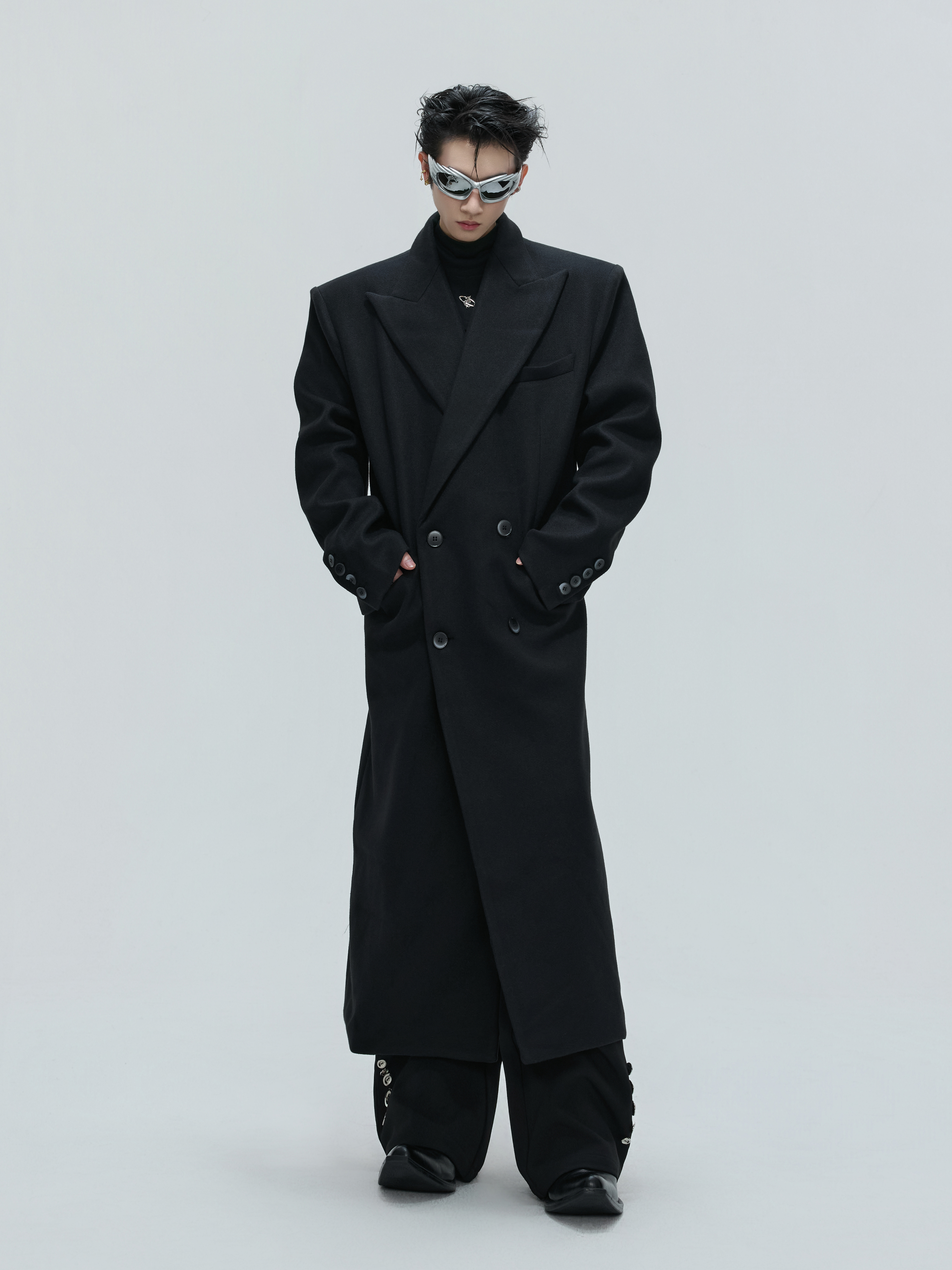 Shoulder-Pad Waist-Fitted Thick Long Trench Coat WN21737