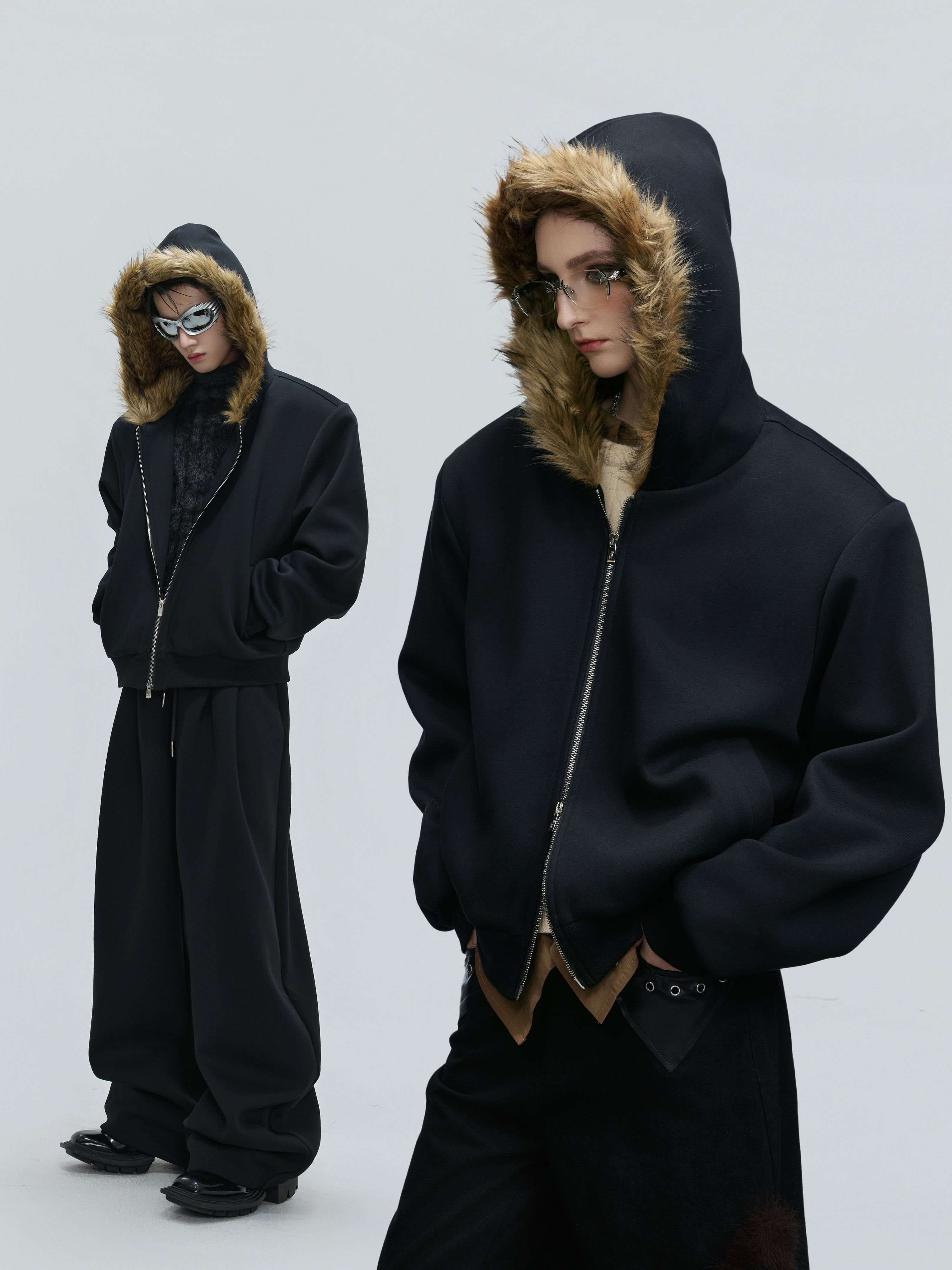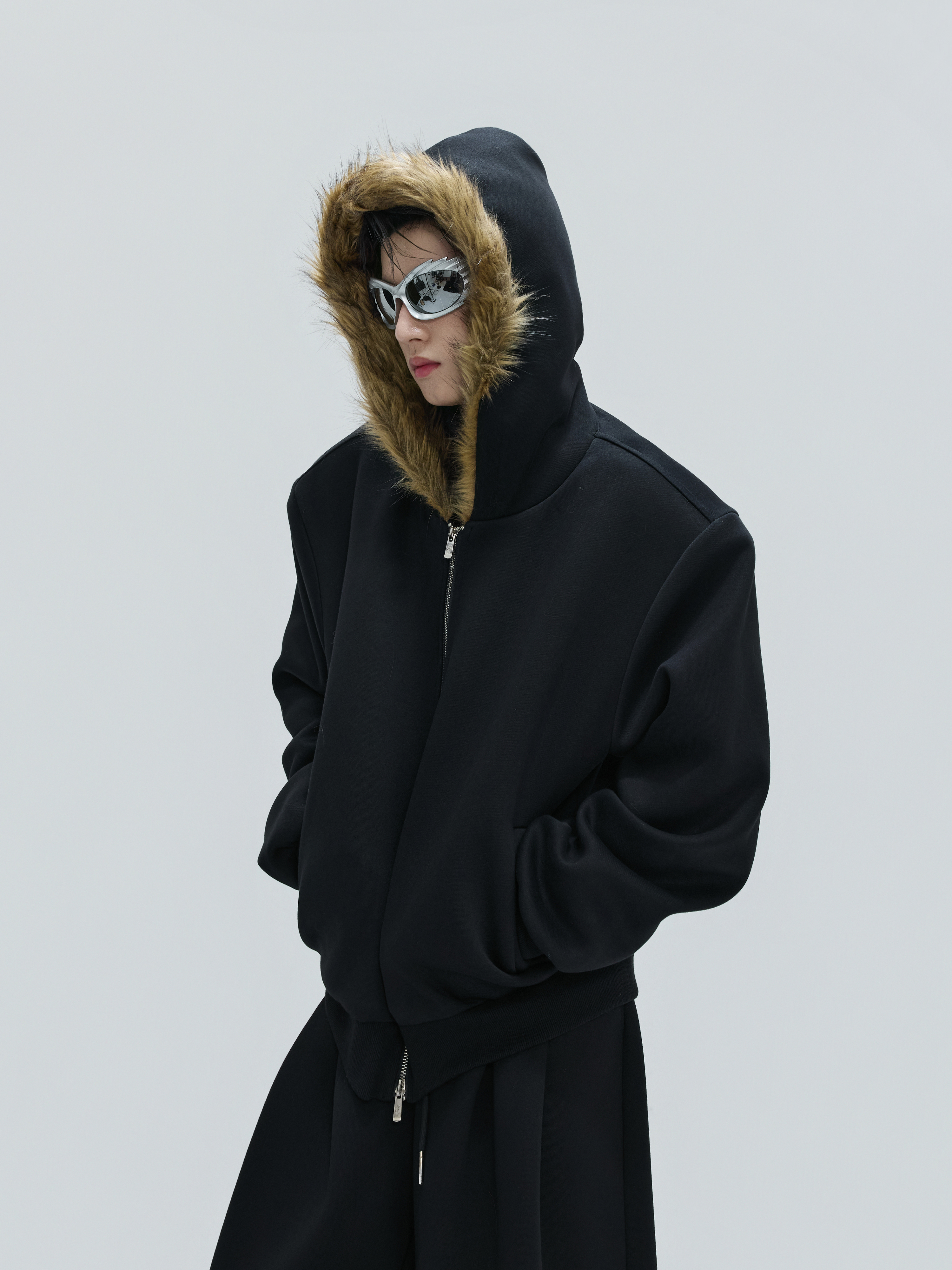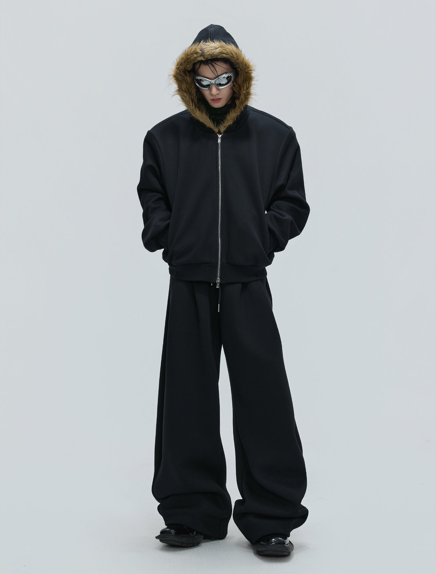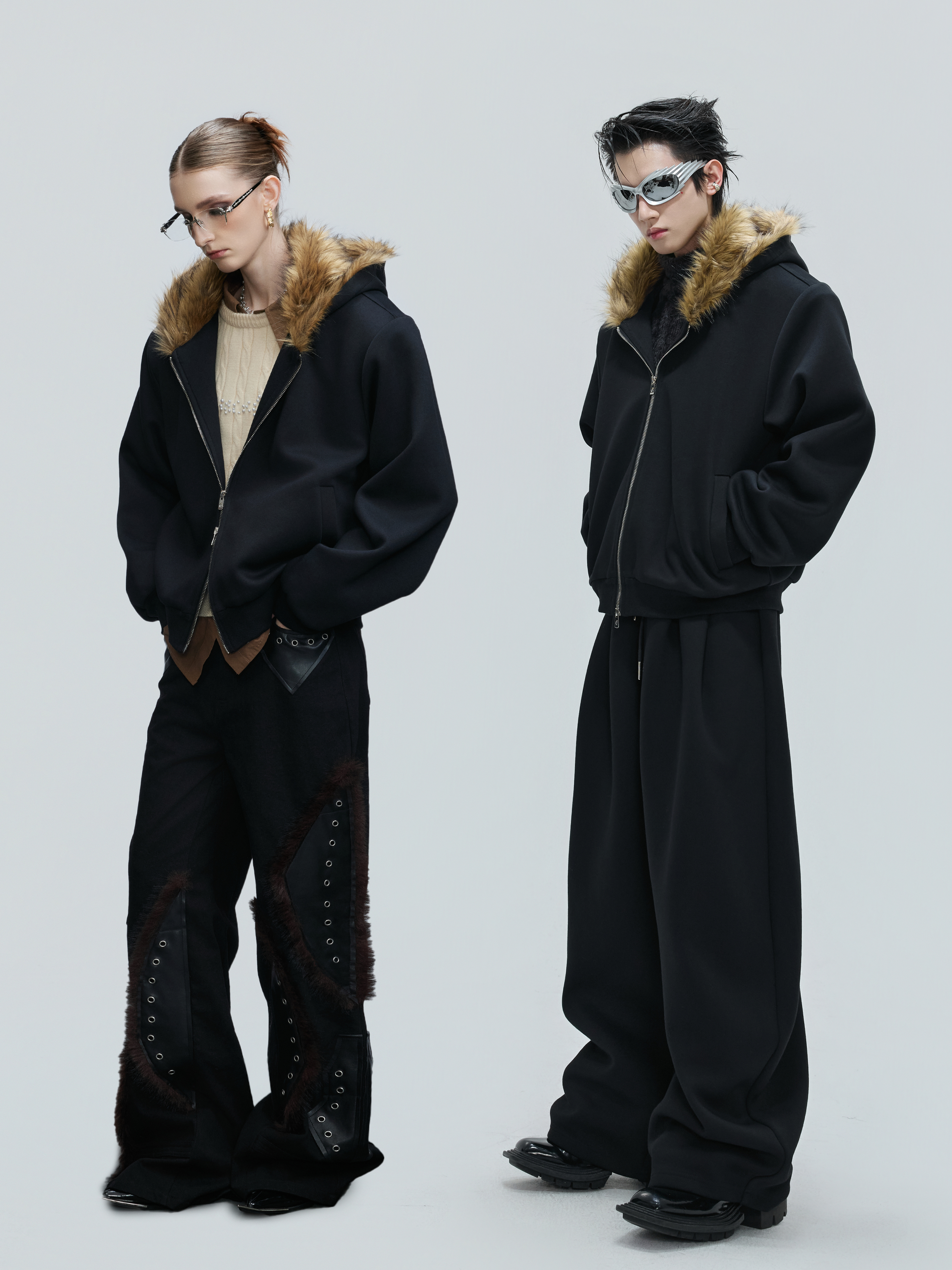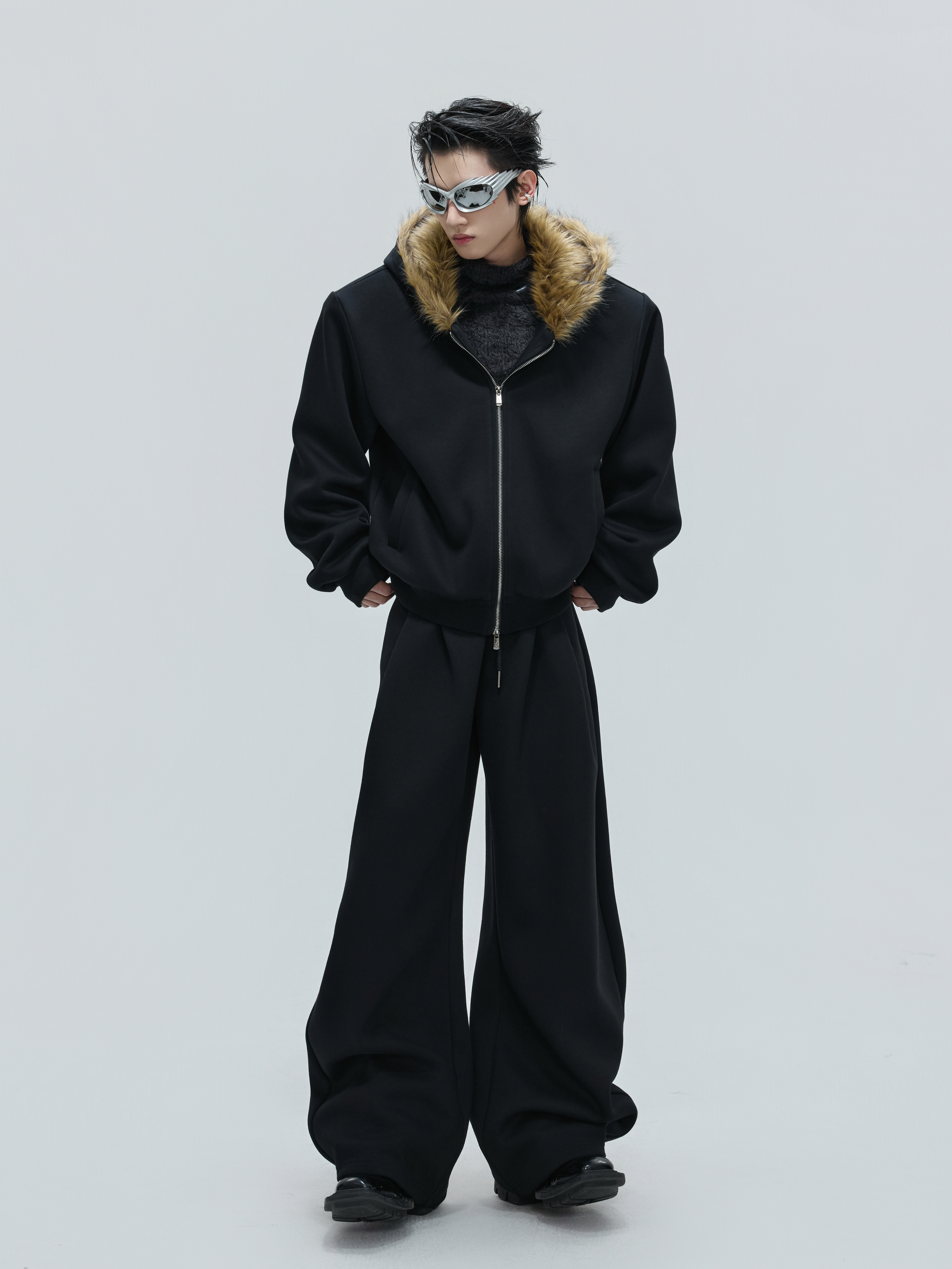 Fur Collar Zipper Hoodie & Sweatpants Setup WN21744