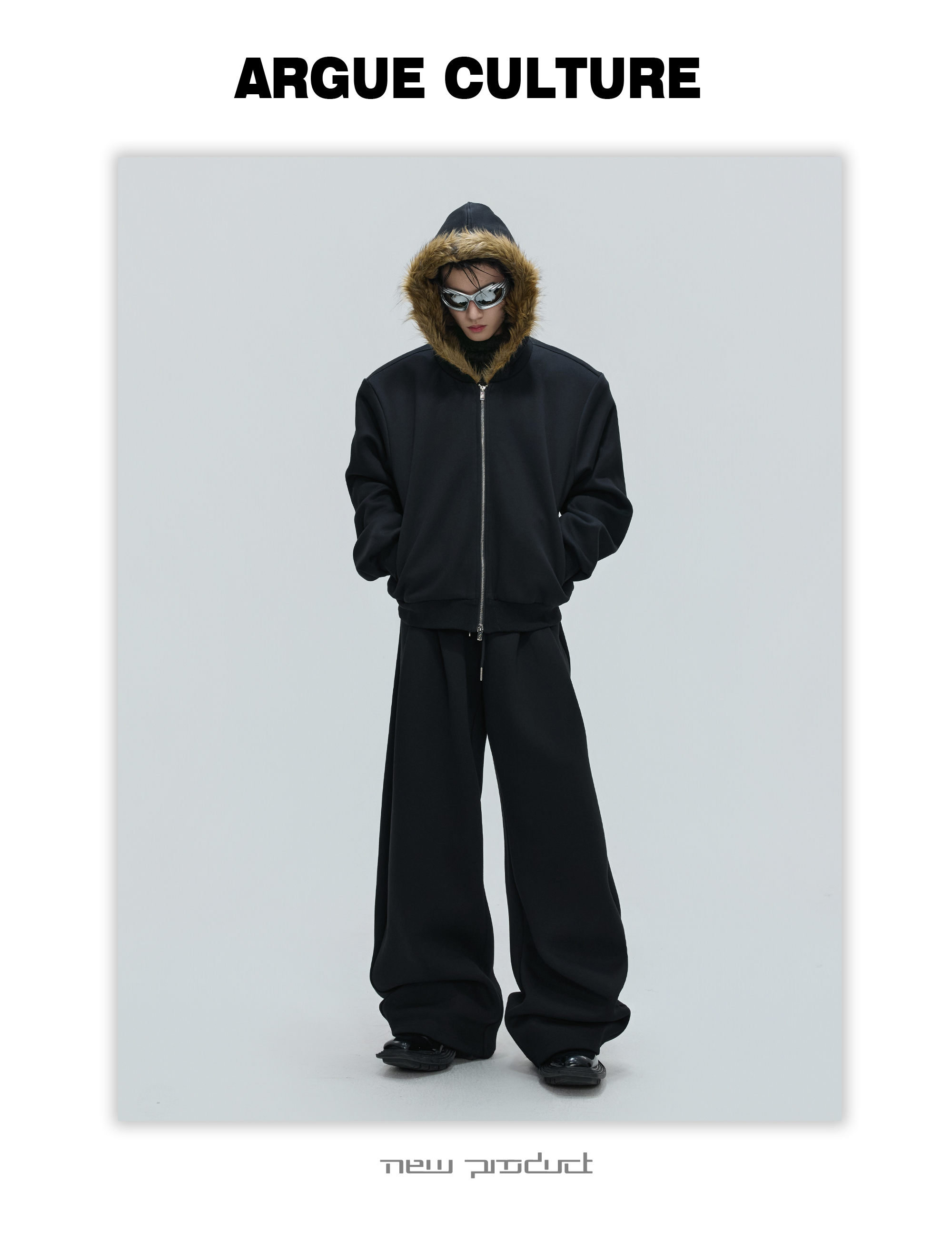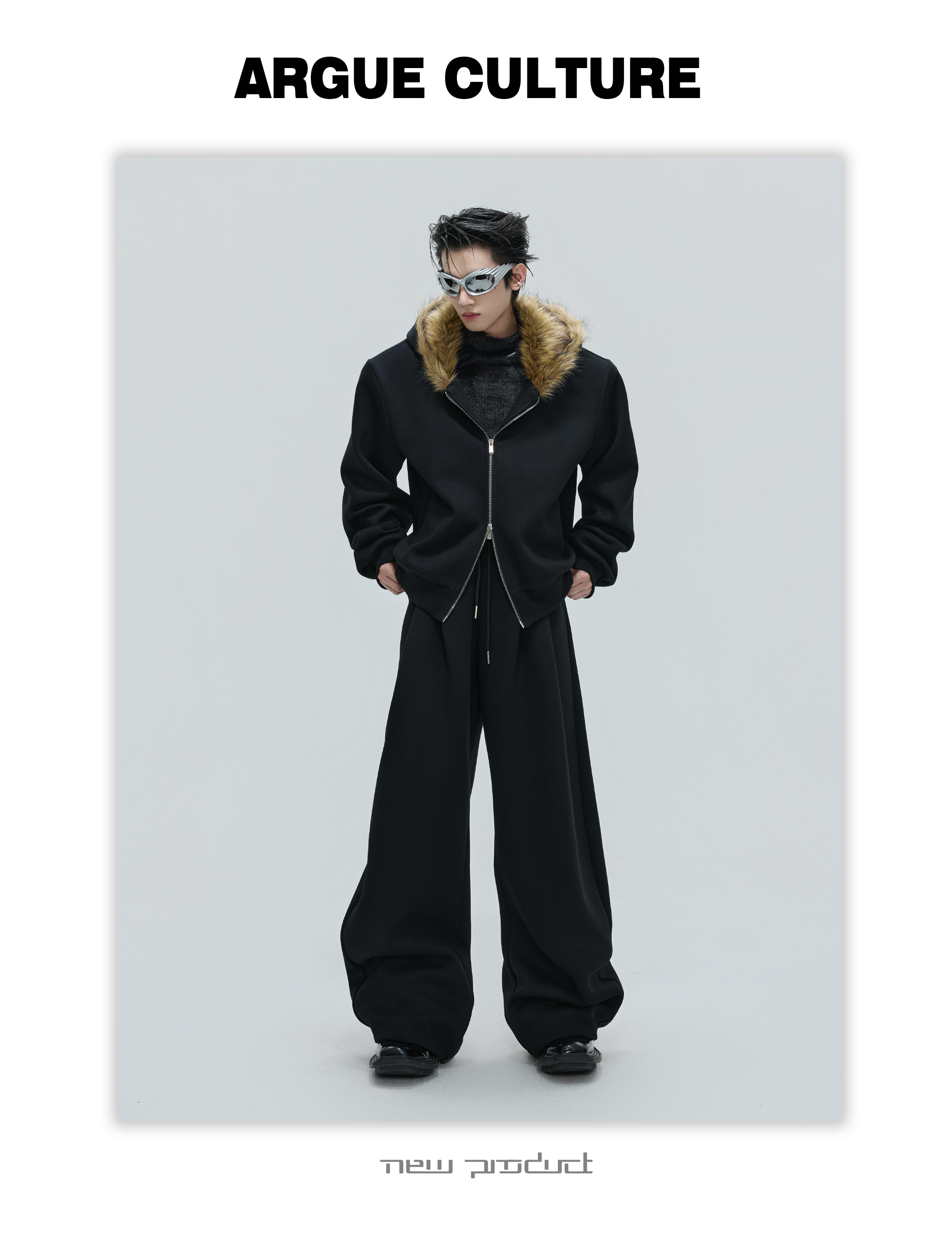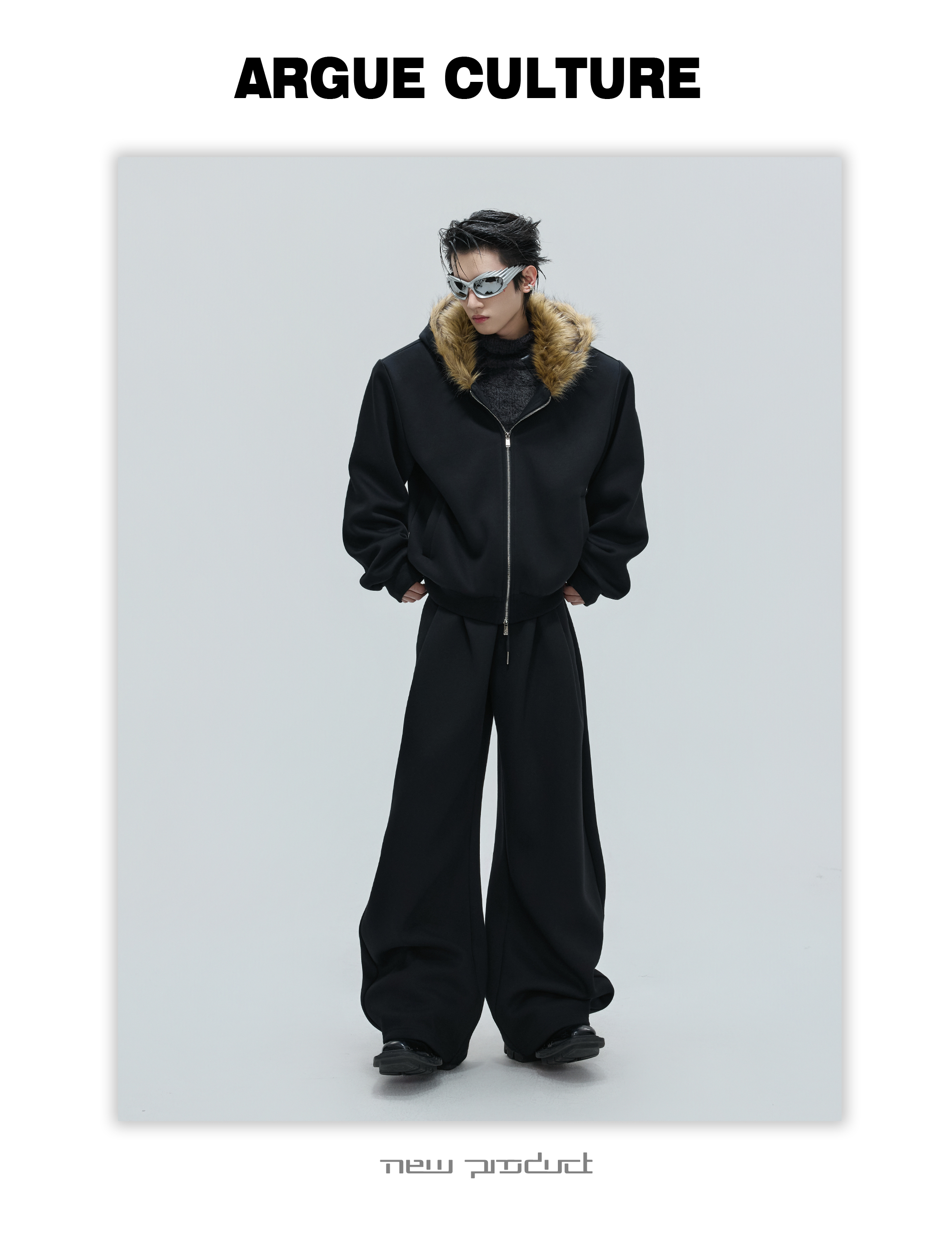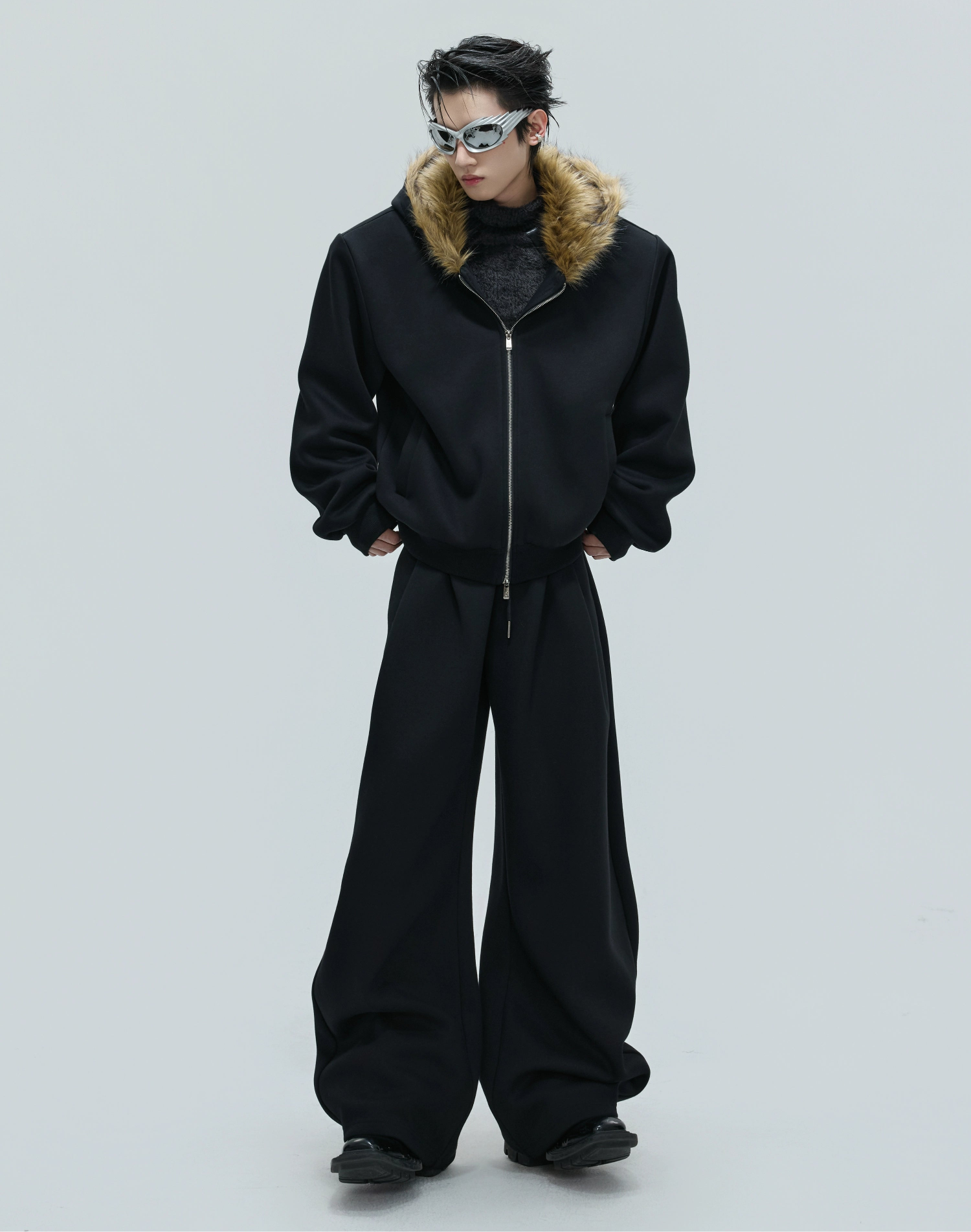 Fur Collar Zipper Hoodie & Sweatpants Setup WN21744