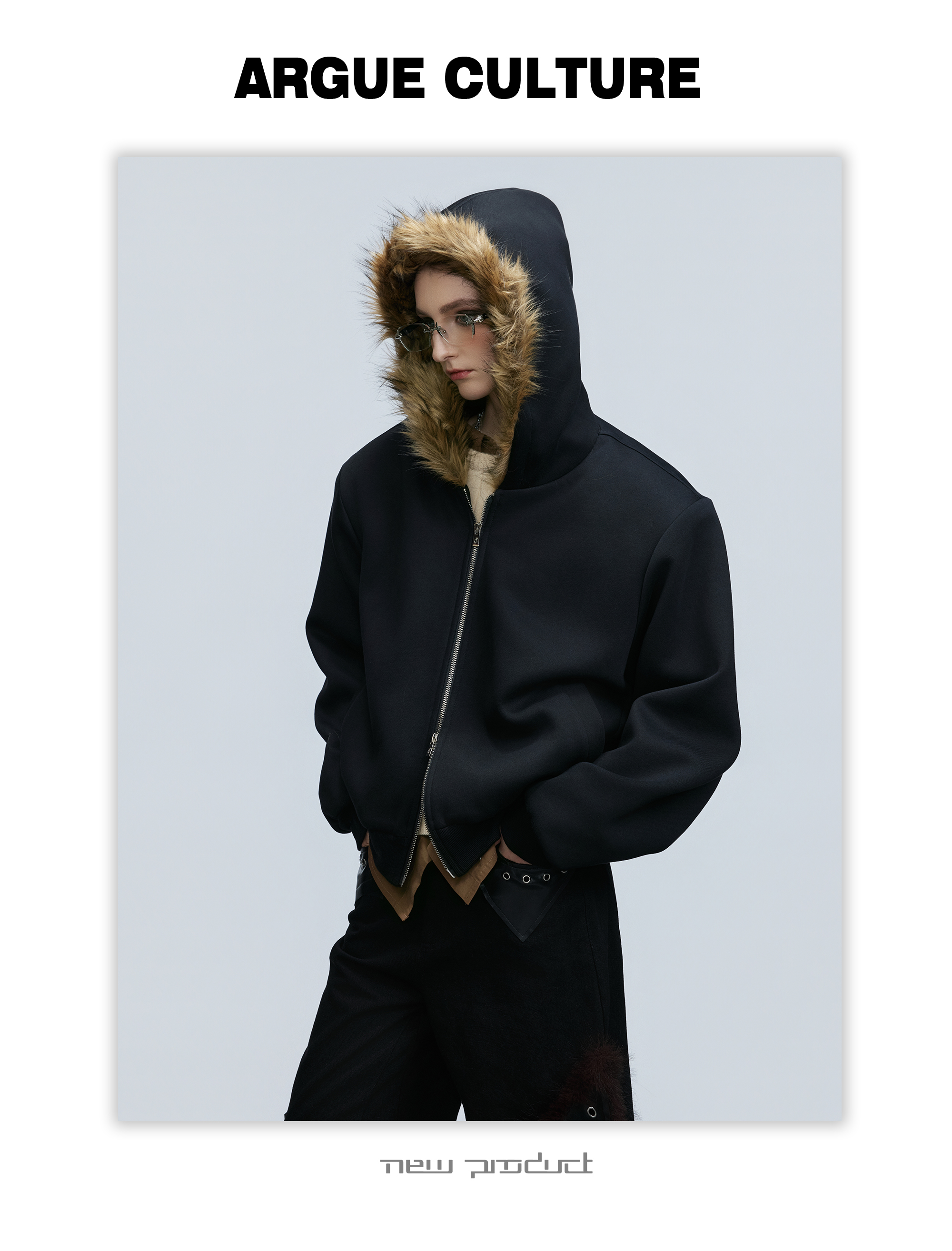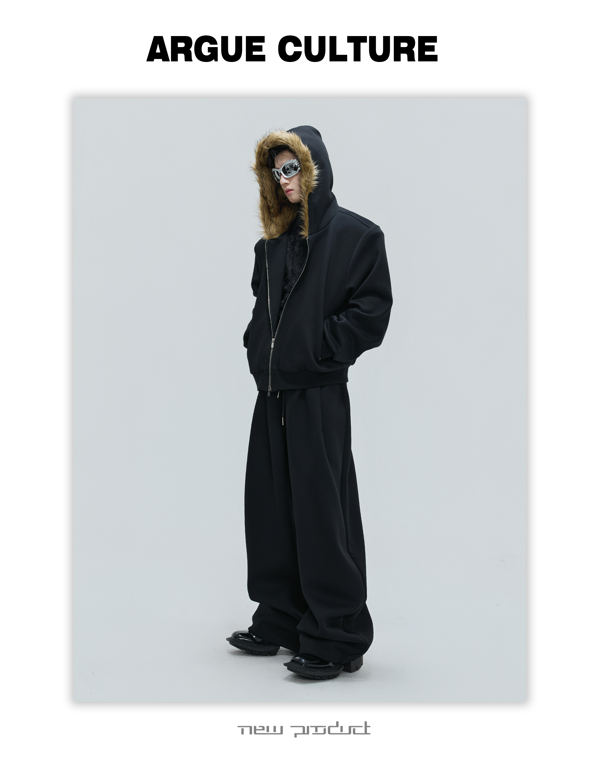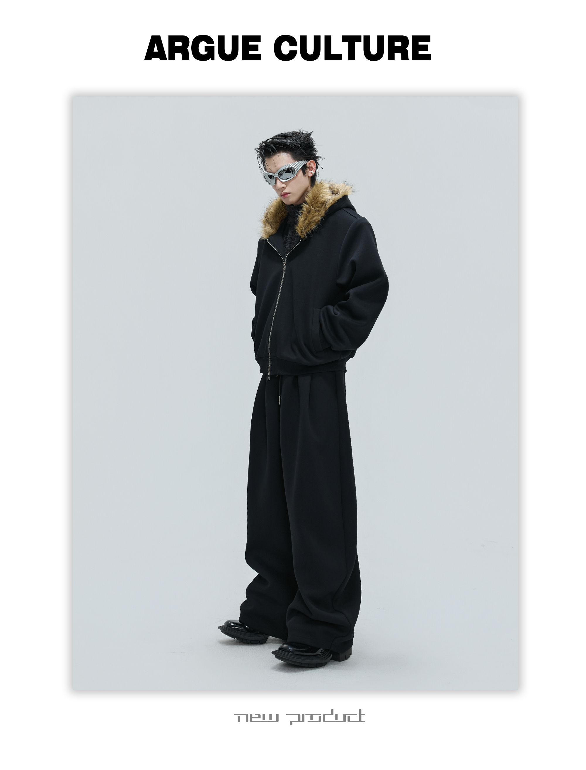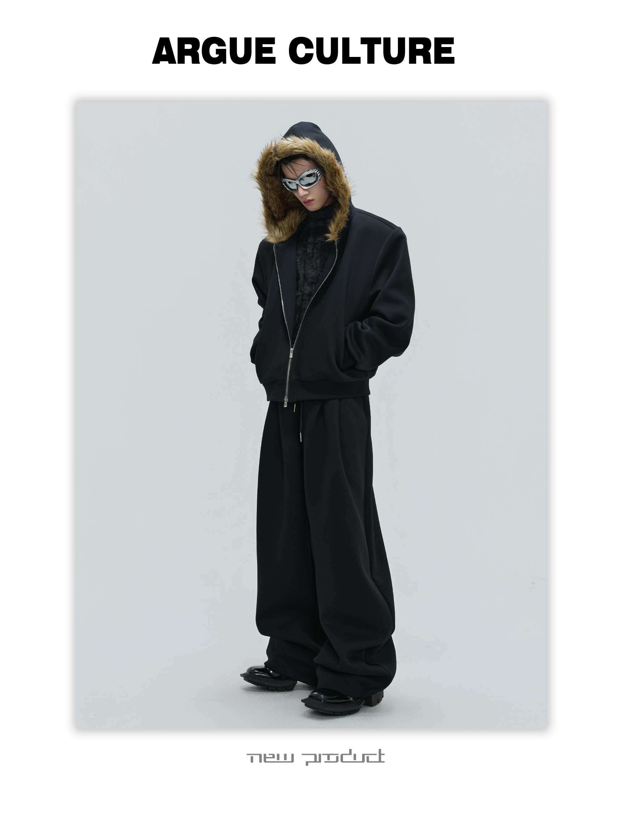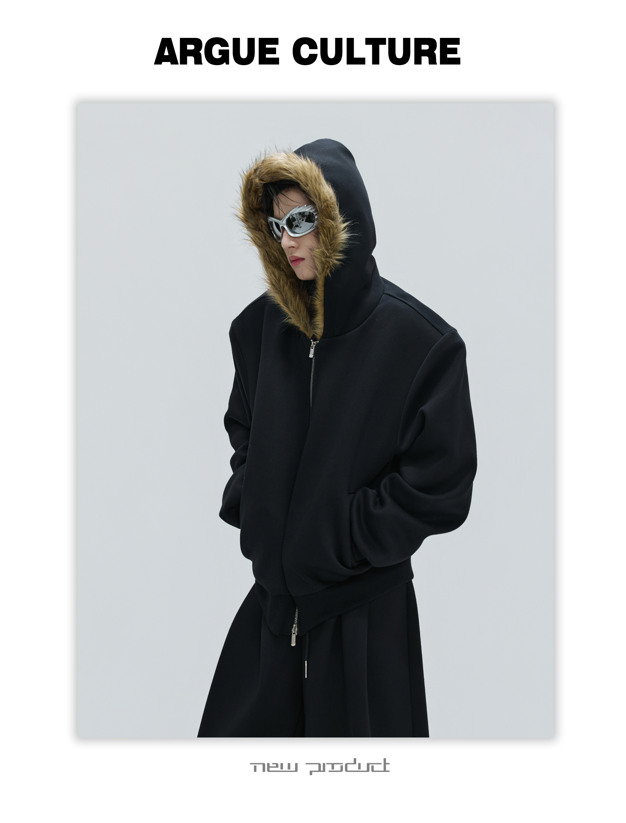 Fur Collar Zipper Hoodie & Sweatpants Setup WN21744