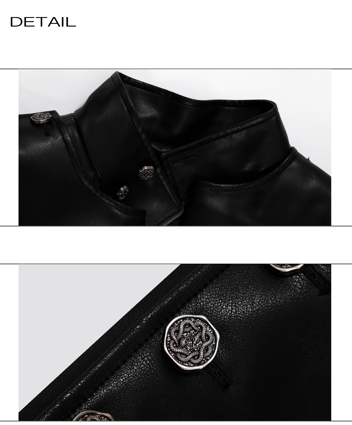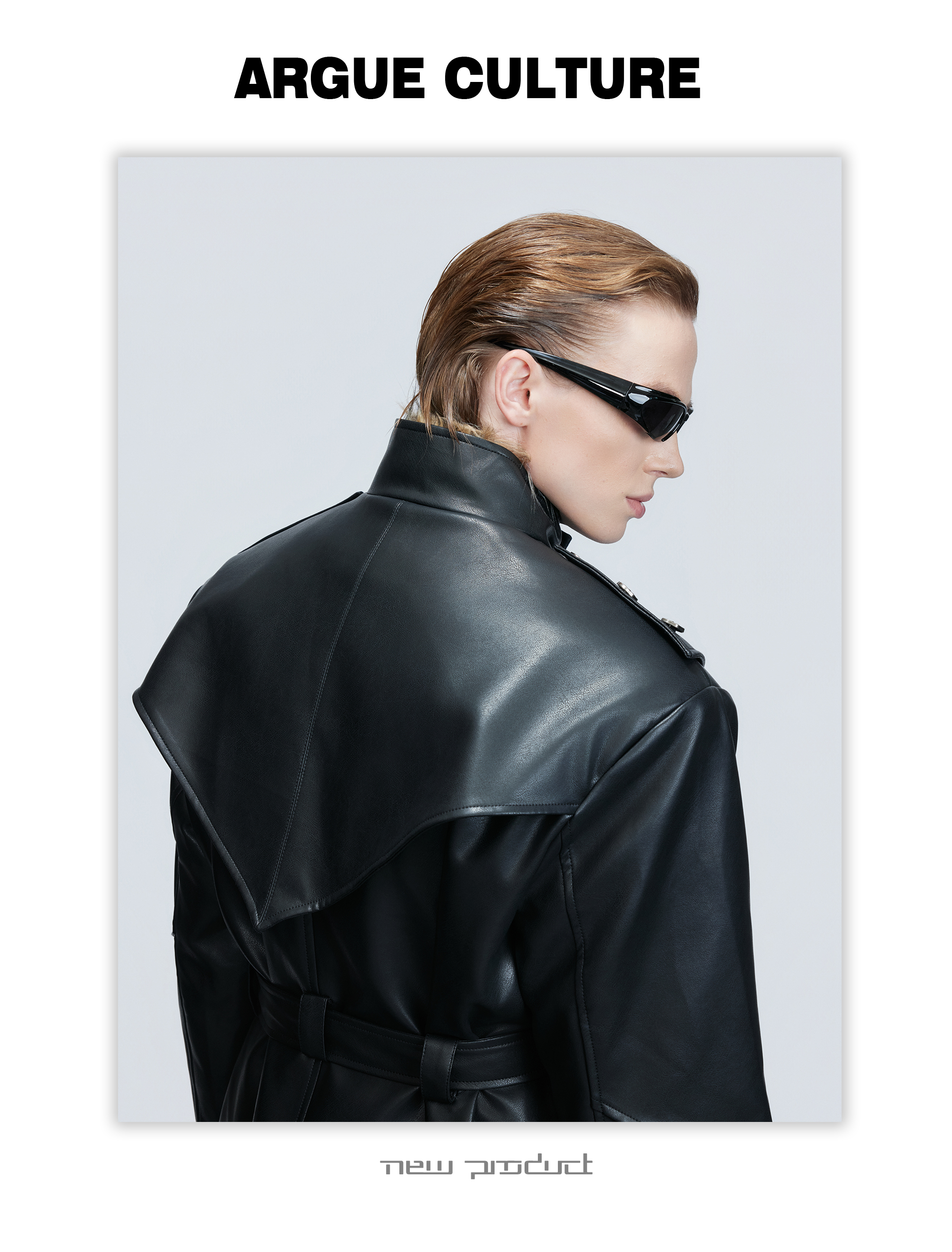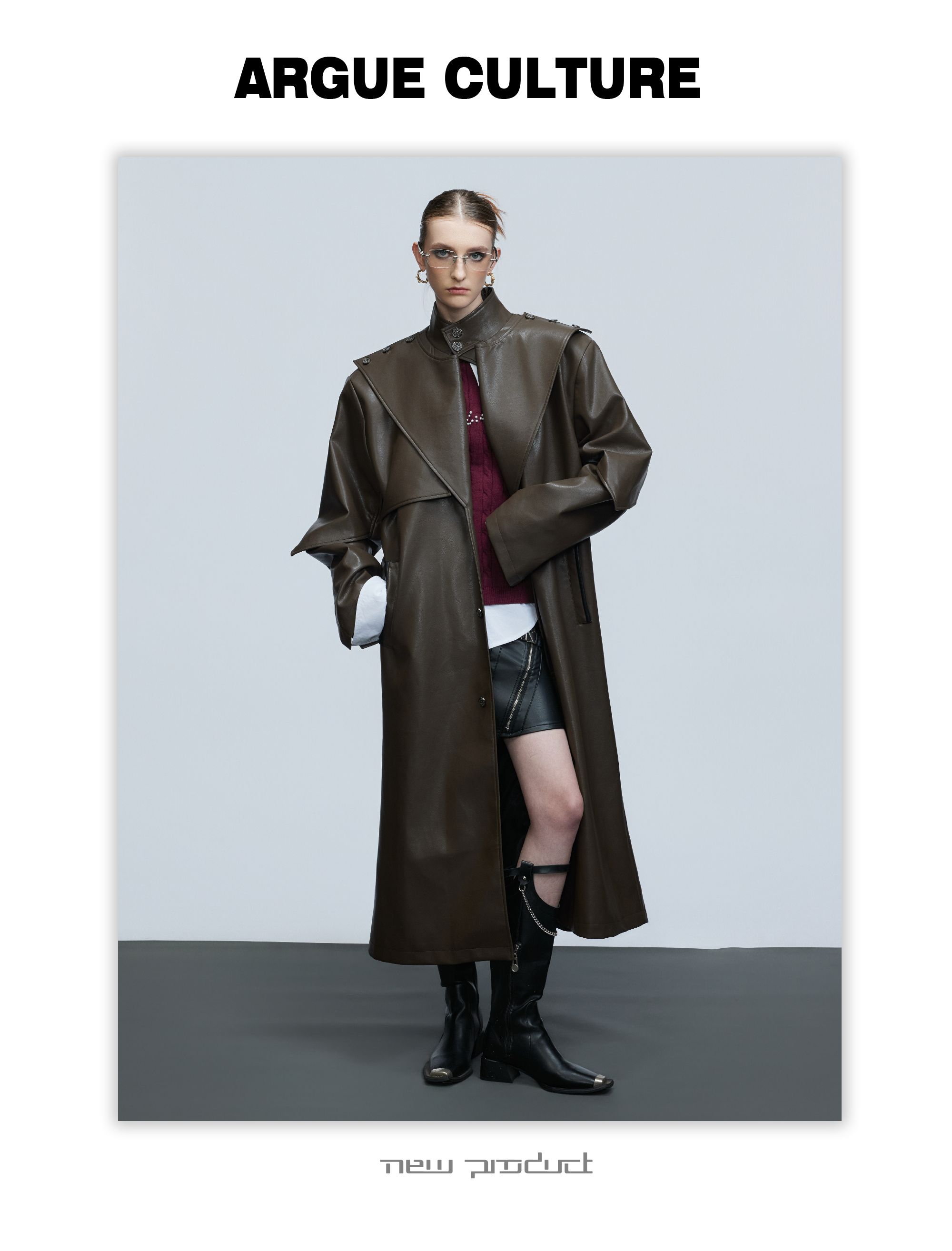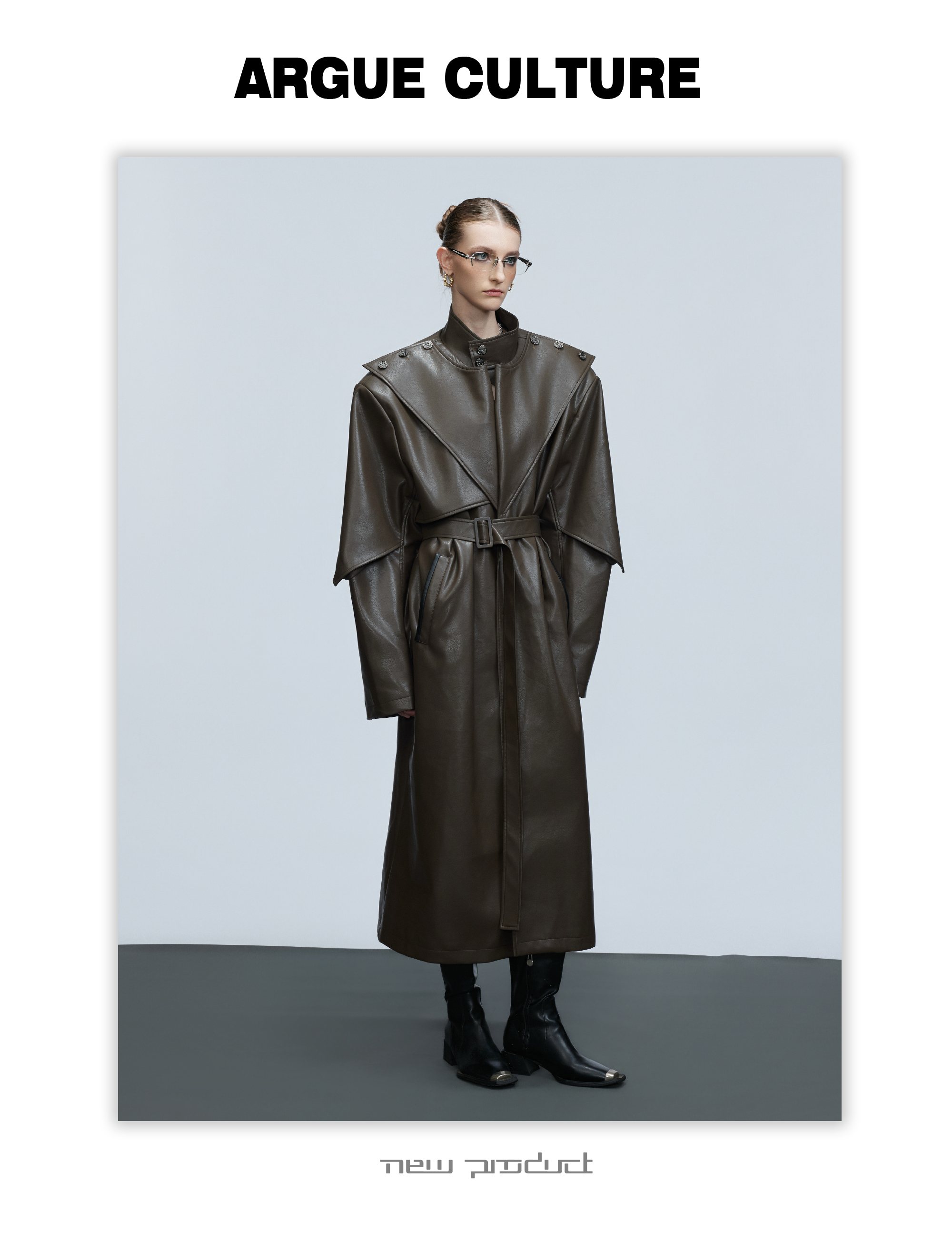 Standing-Collar Belted PU Leather Long Coat WN21748