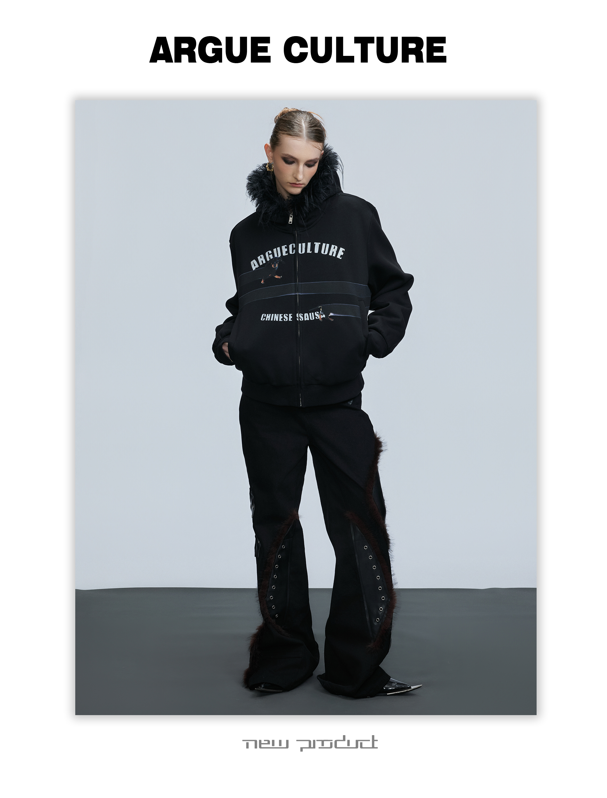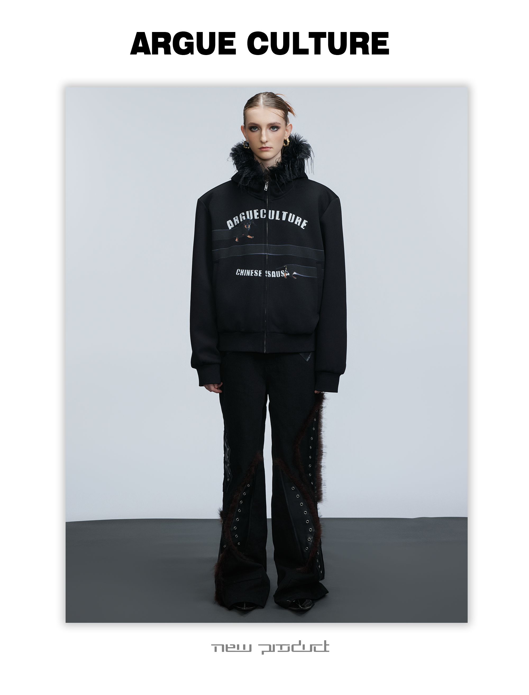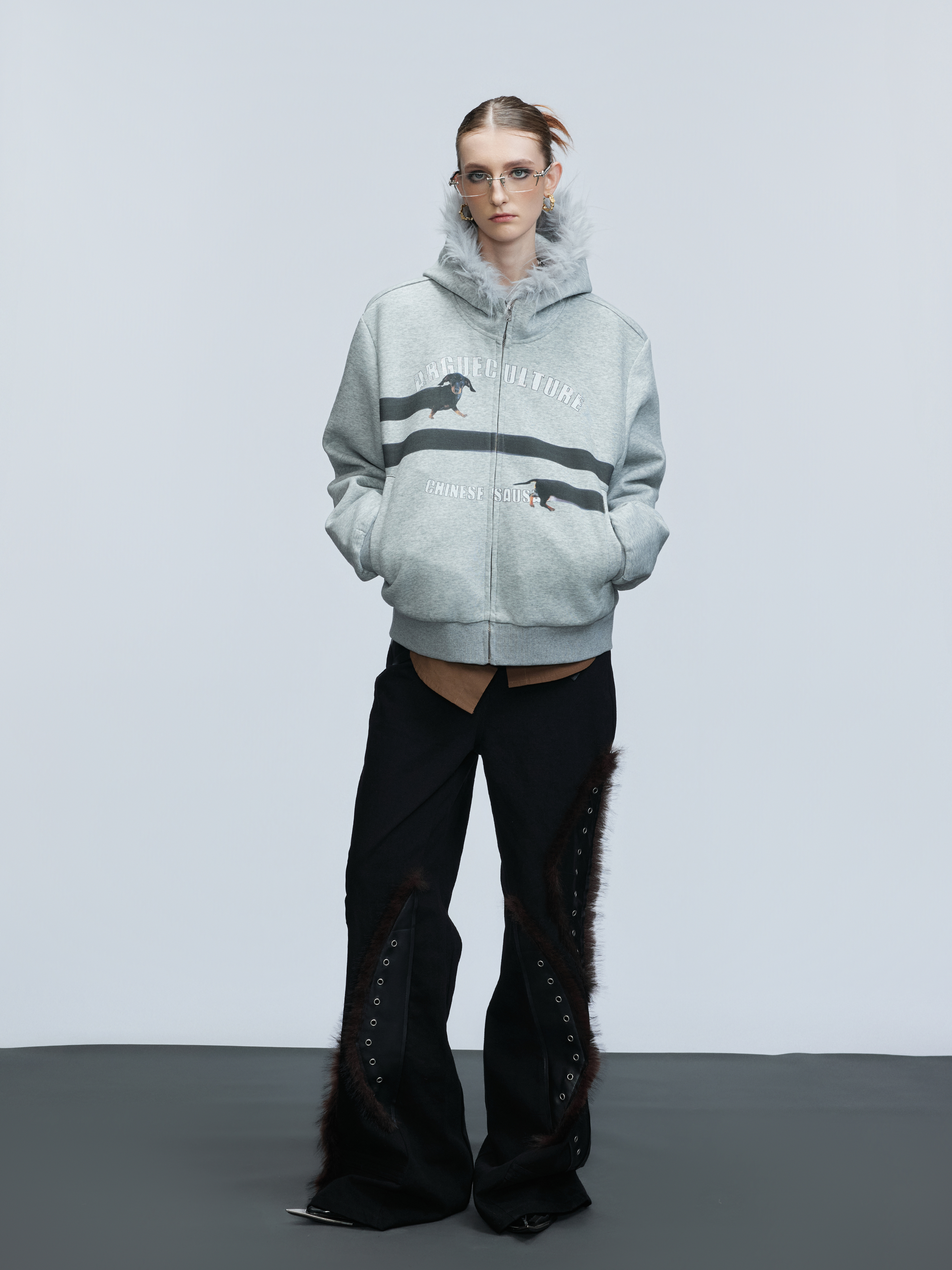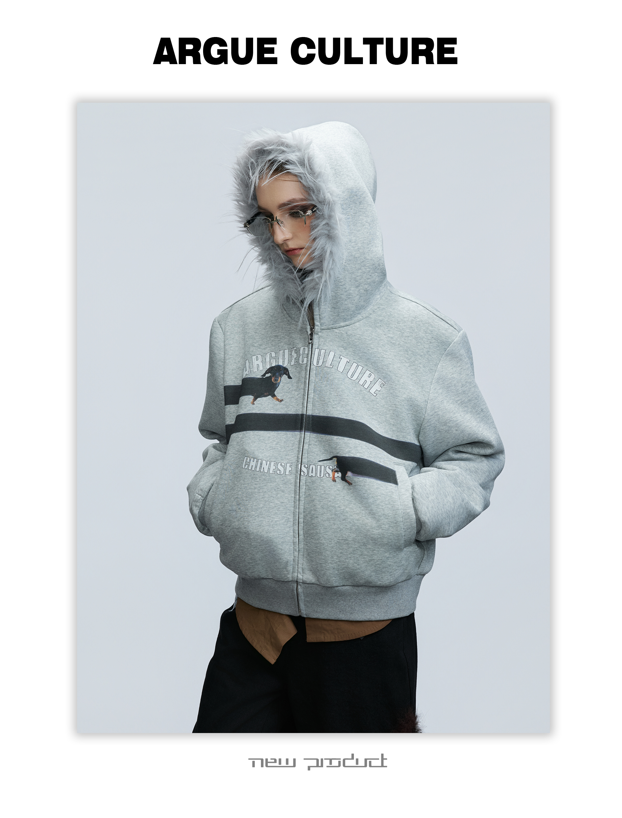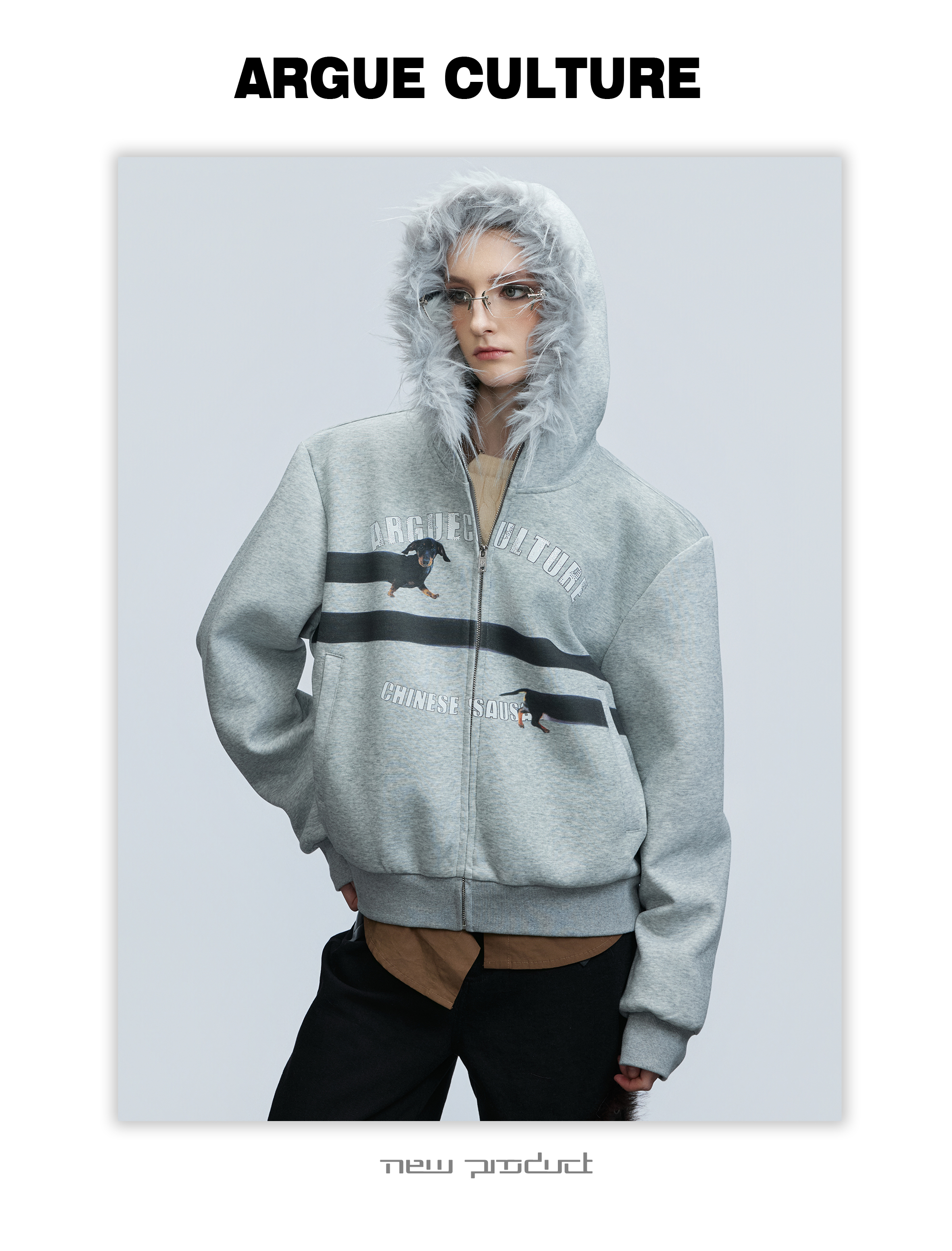 Fake Fur Collar Letter Print Zipper Hoodie WN21749