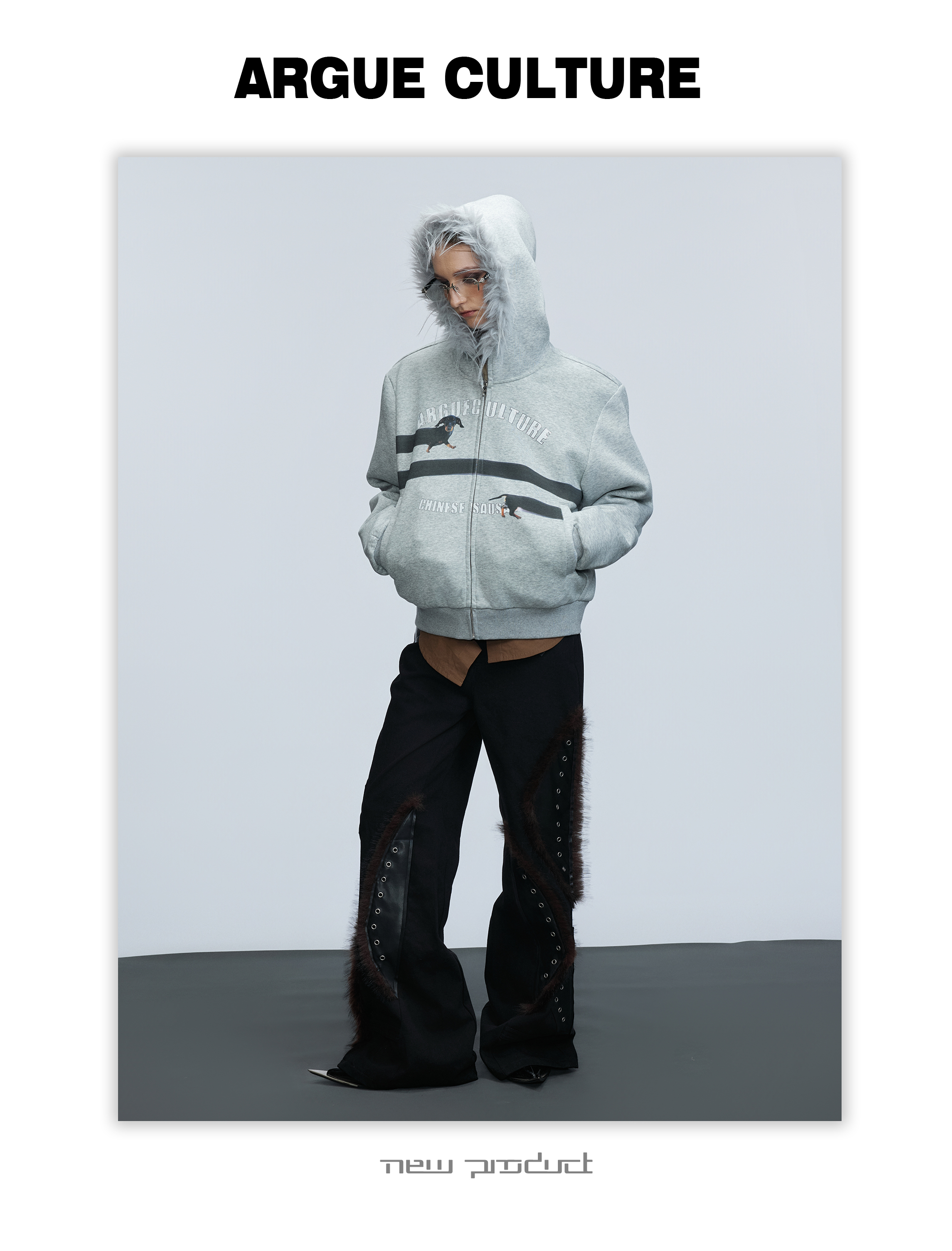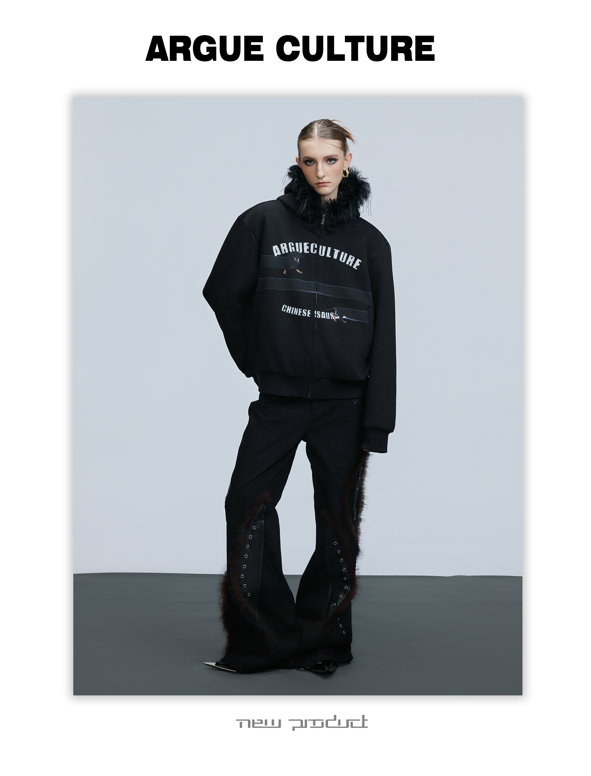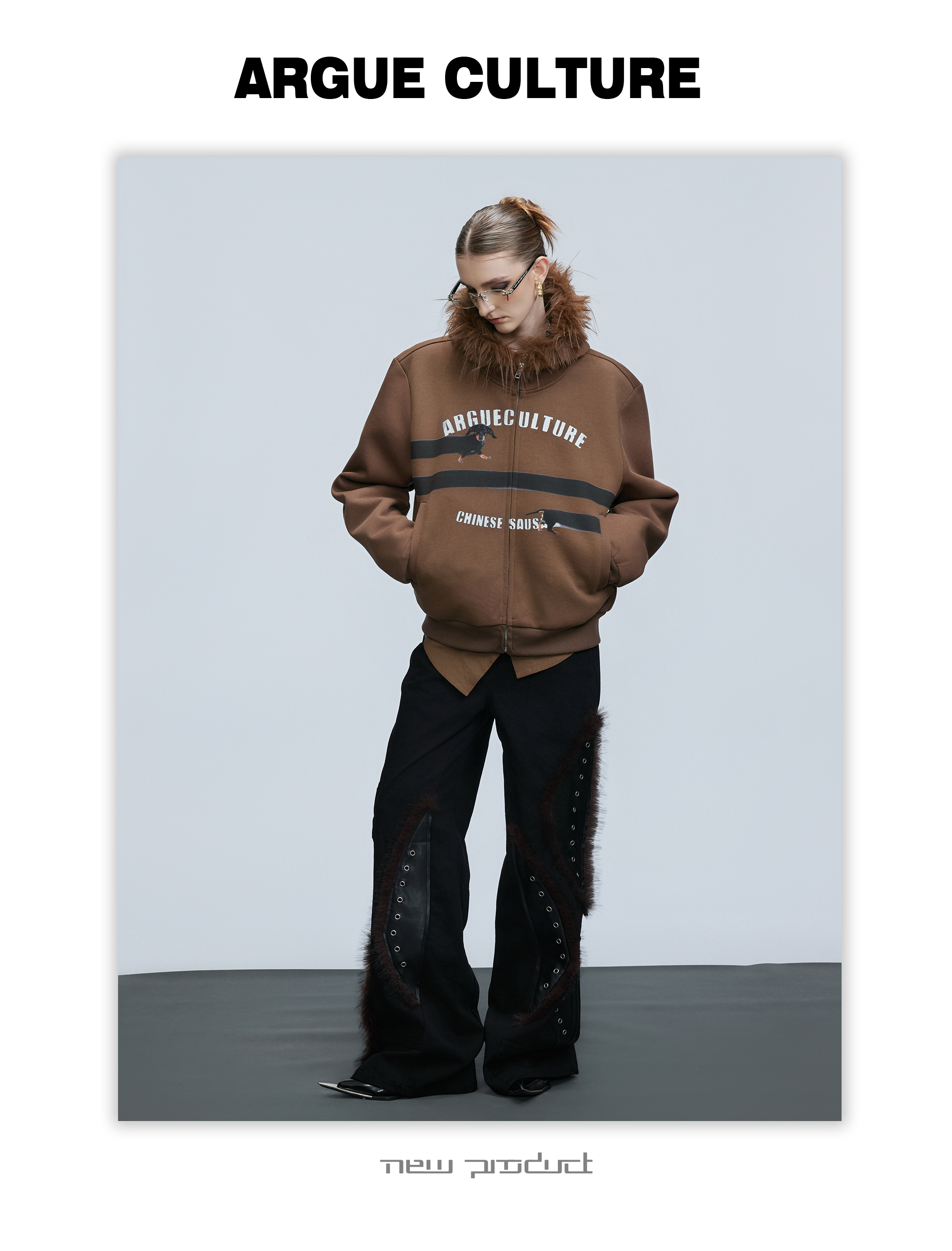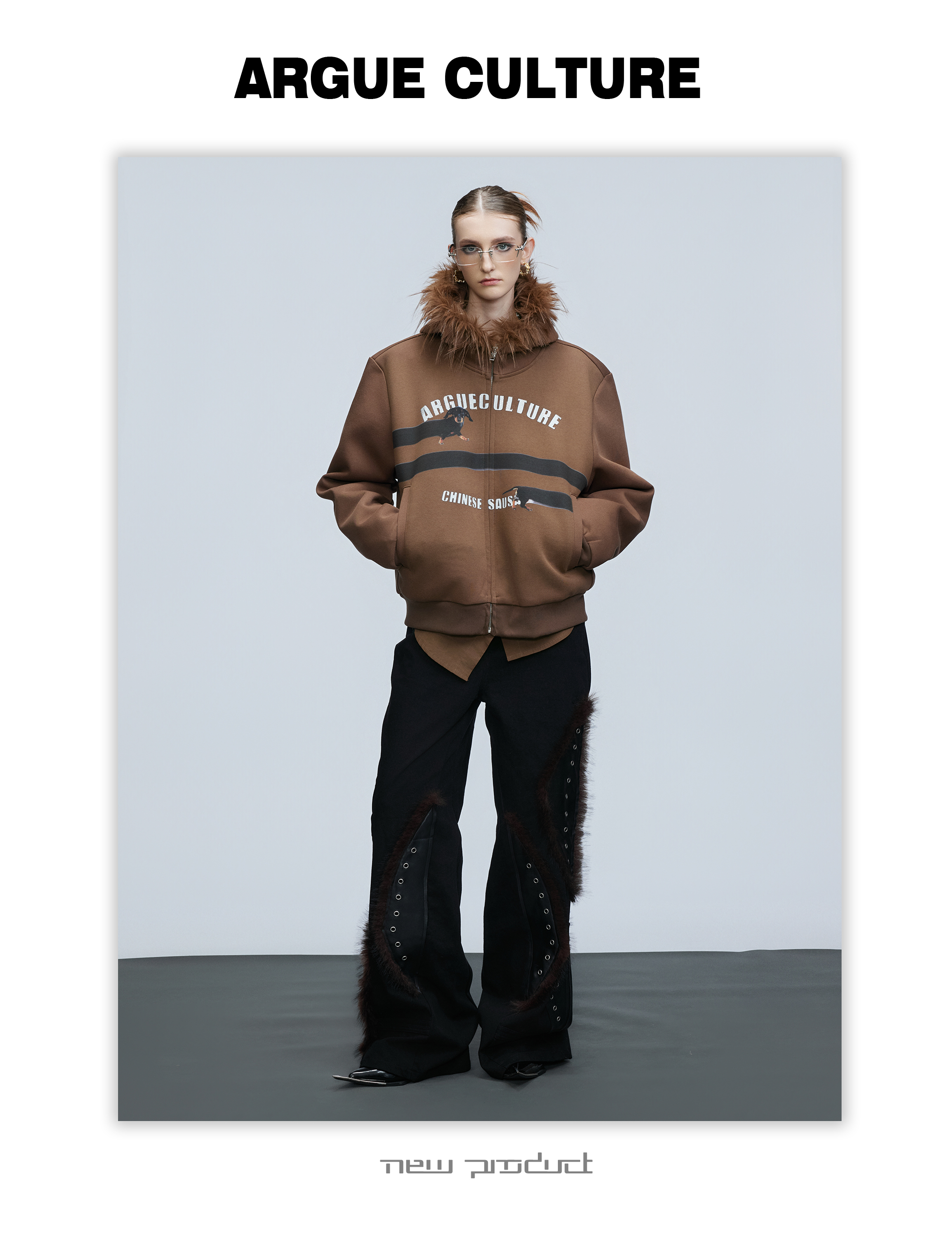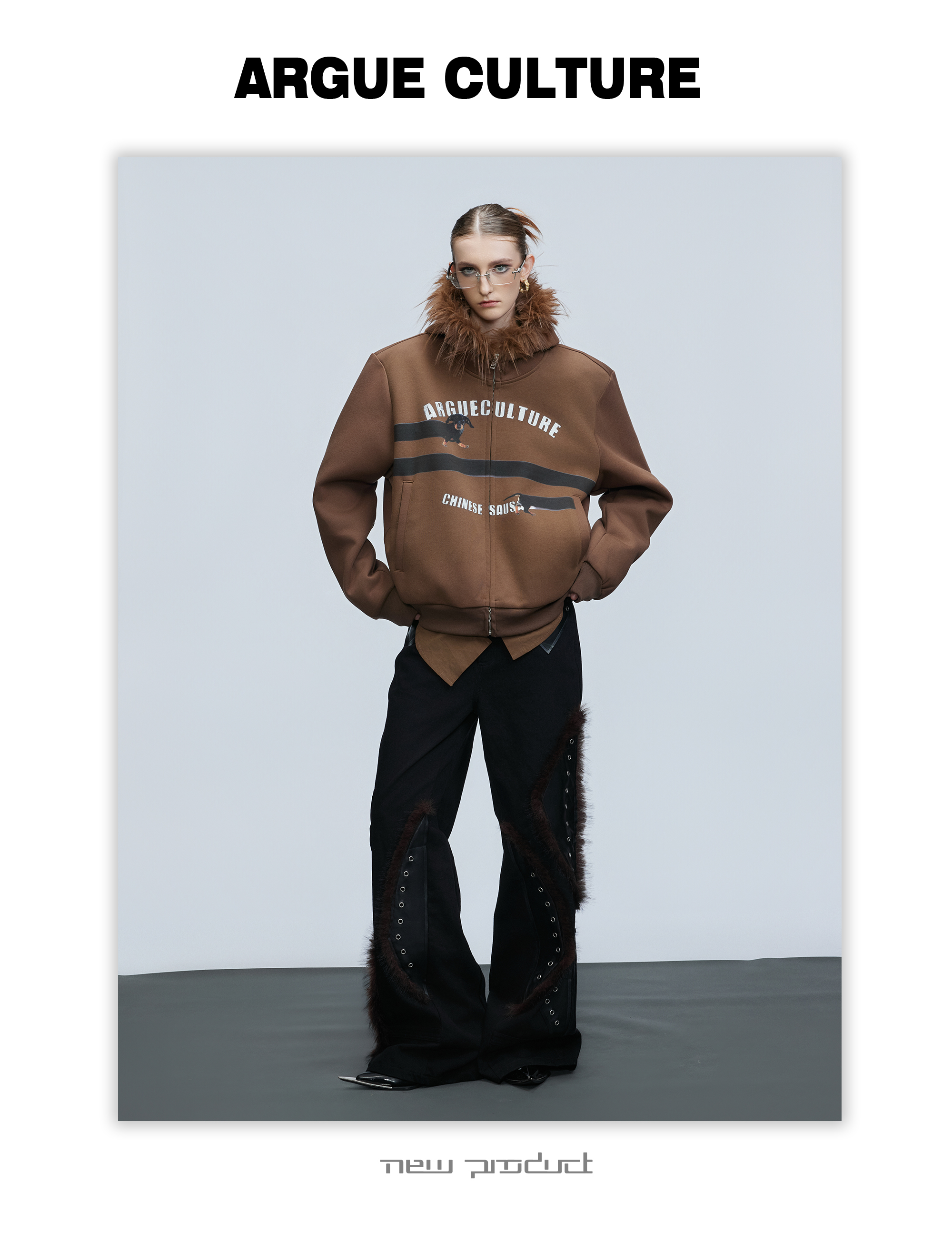 Fake Fur Collar Letter Print Zipper Hoodie WN21749