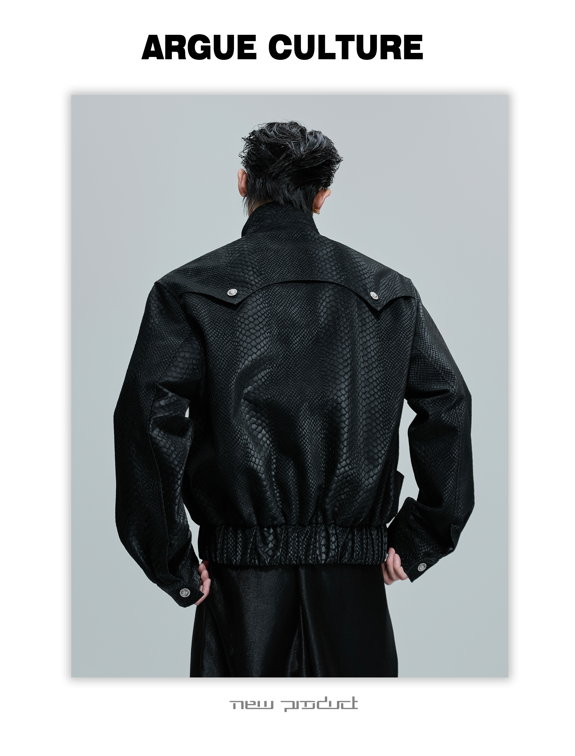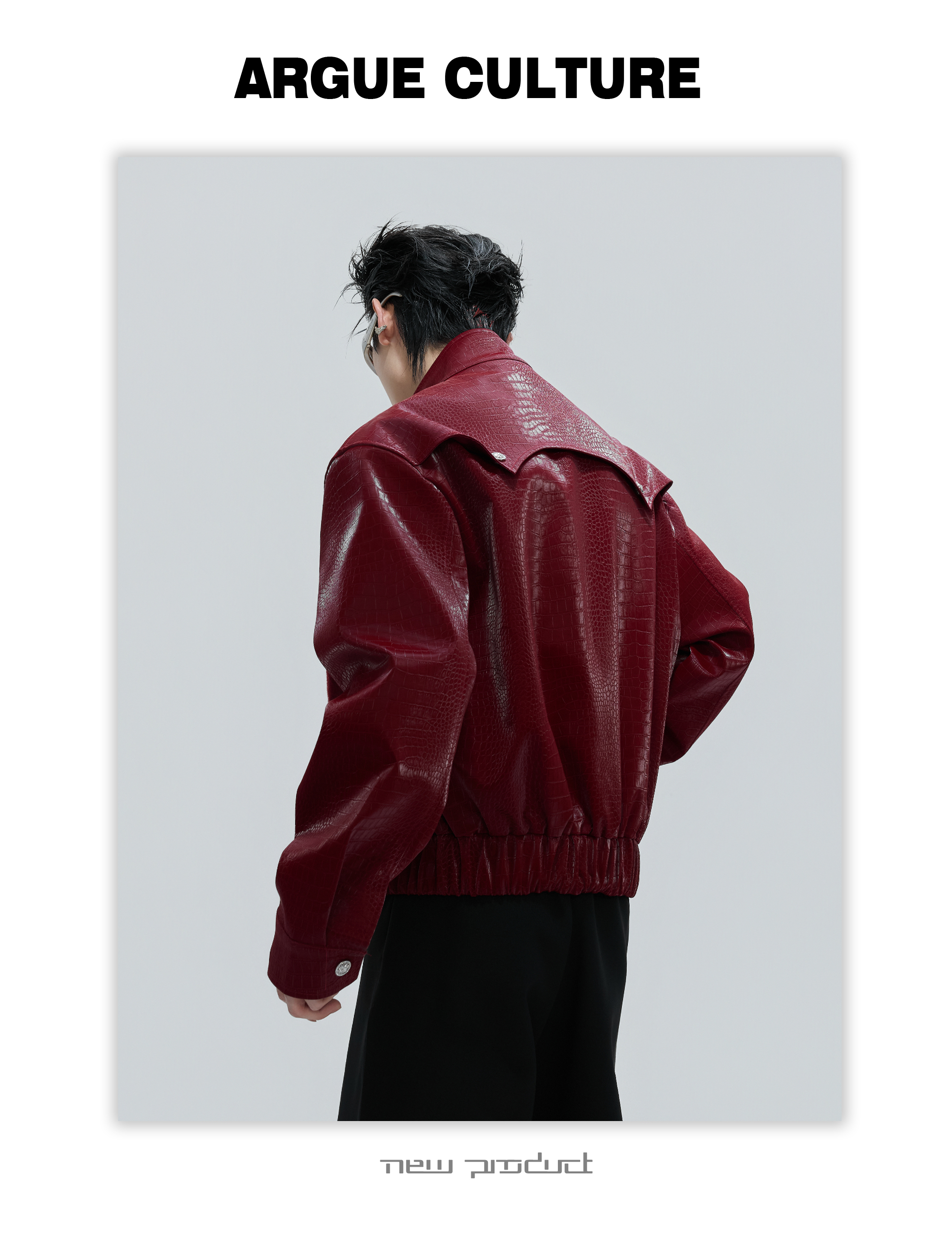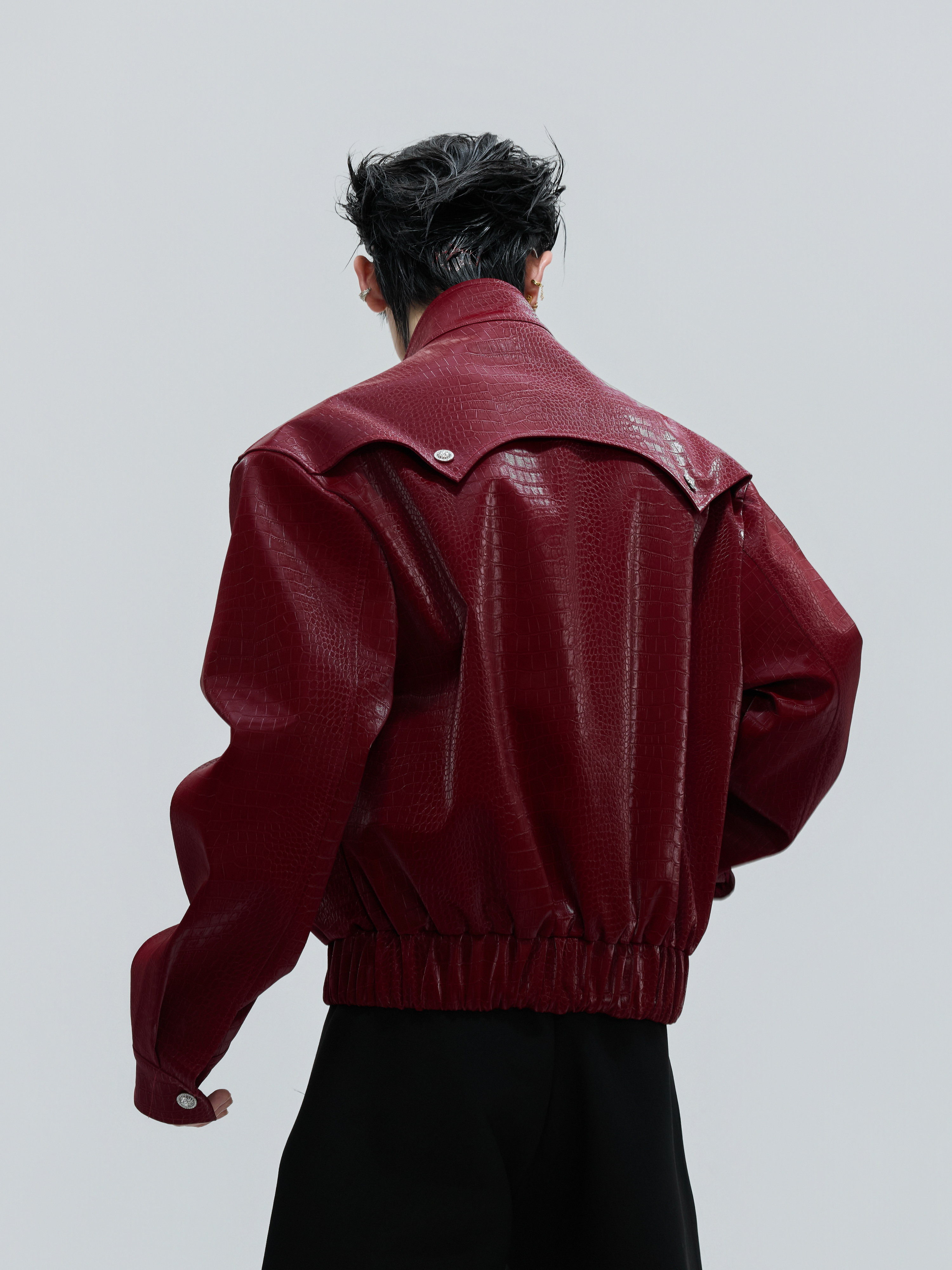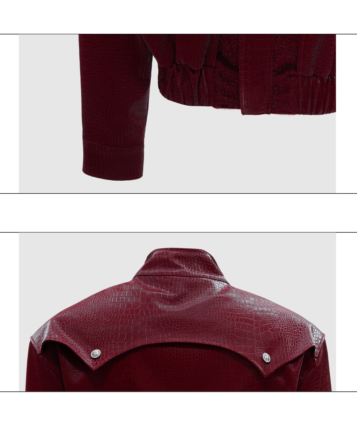 Crocodile Texture Standing-Collar PU Leather Jacket WN21752