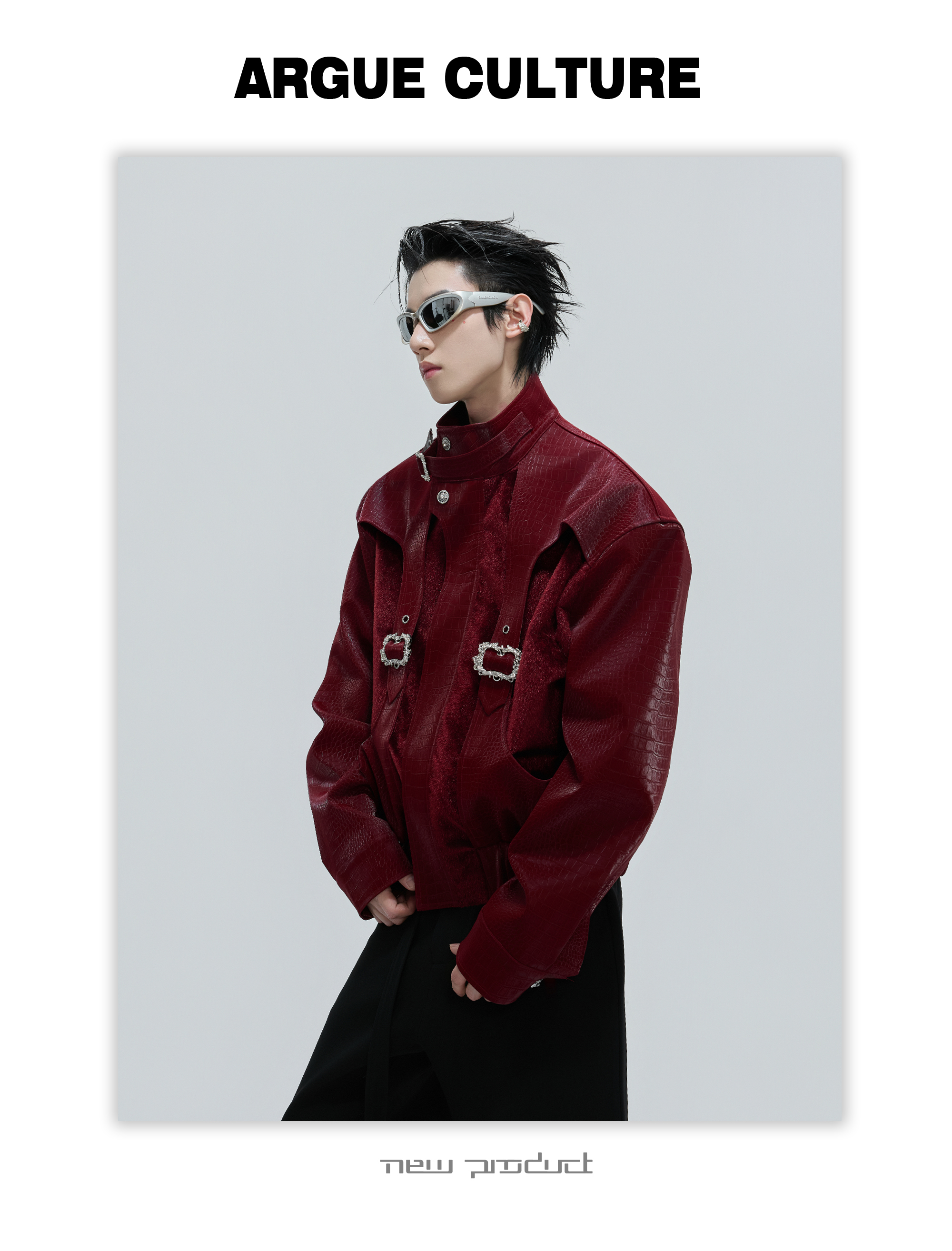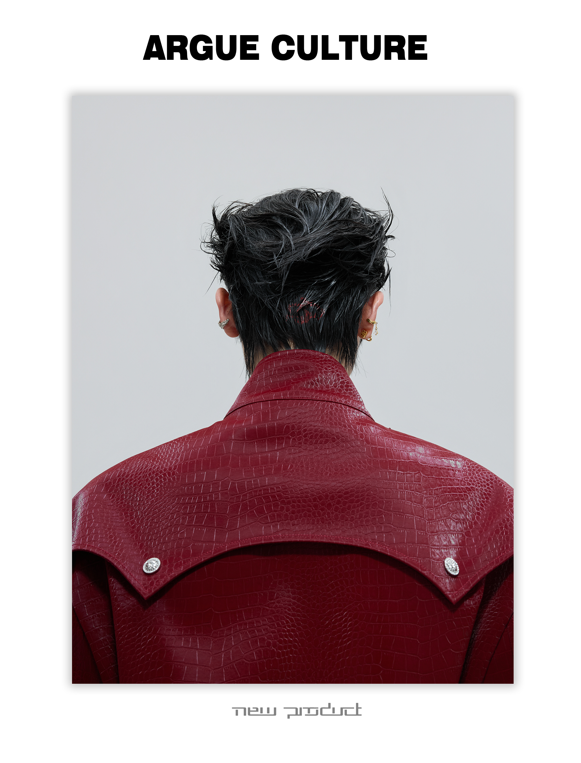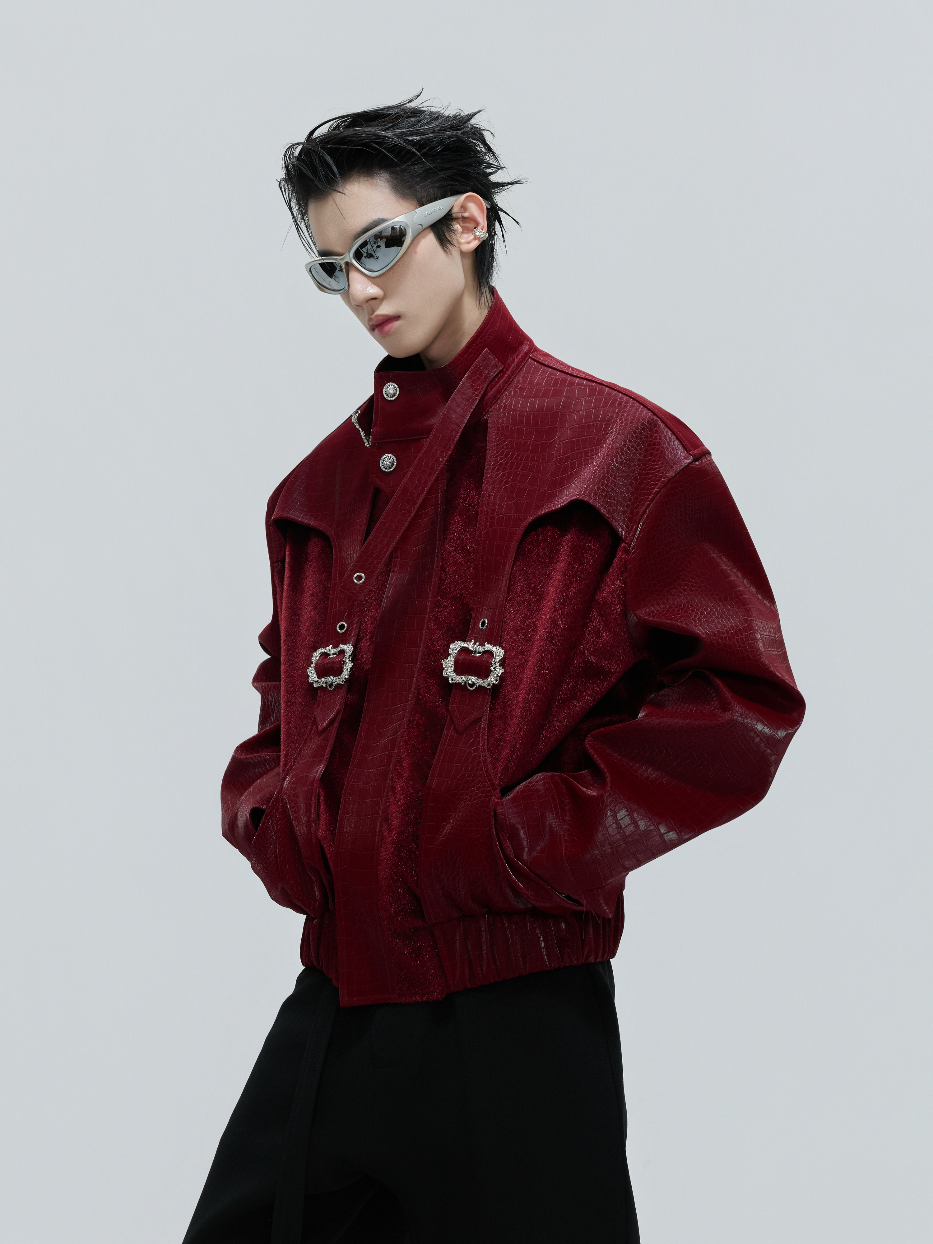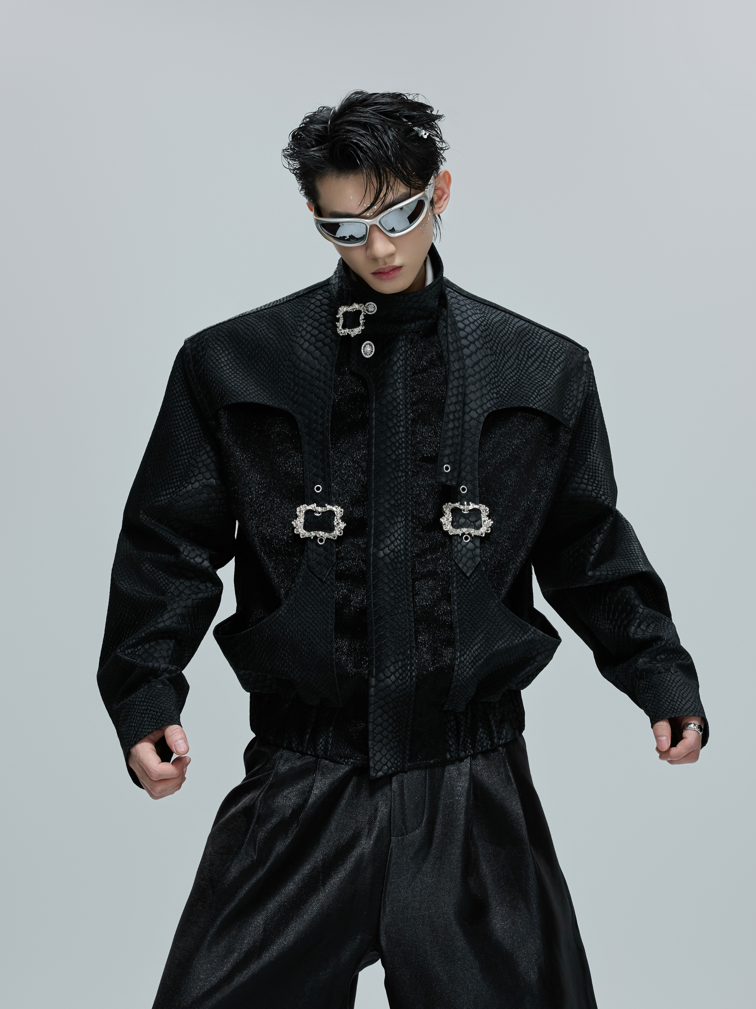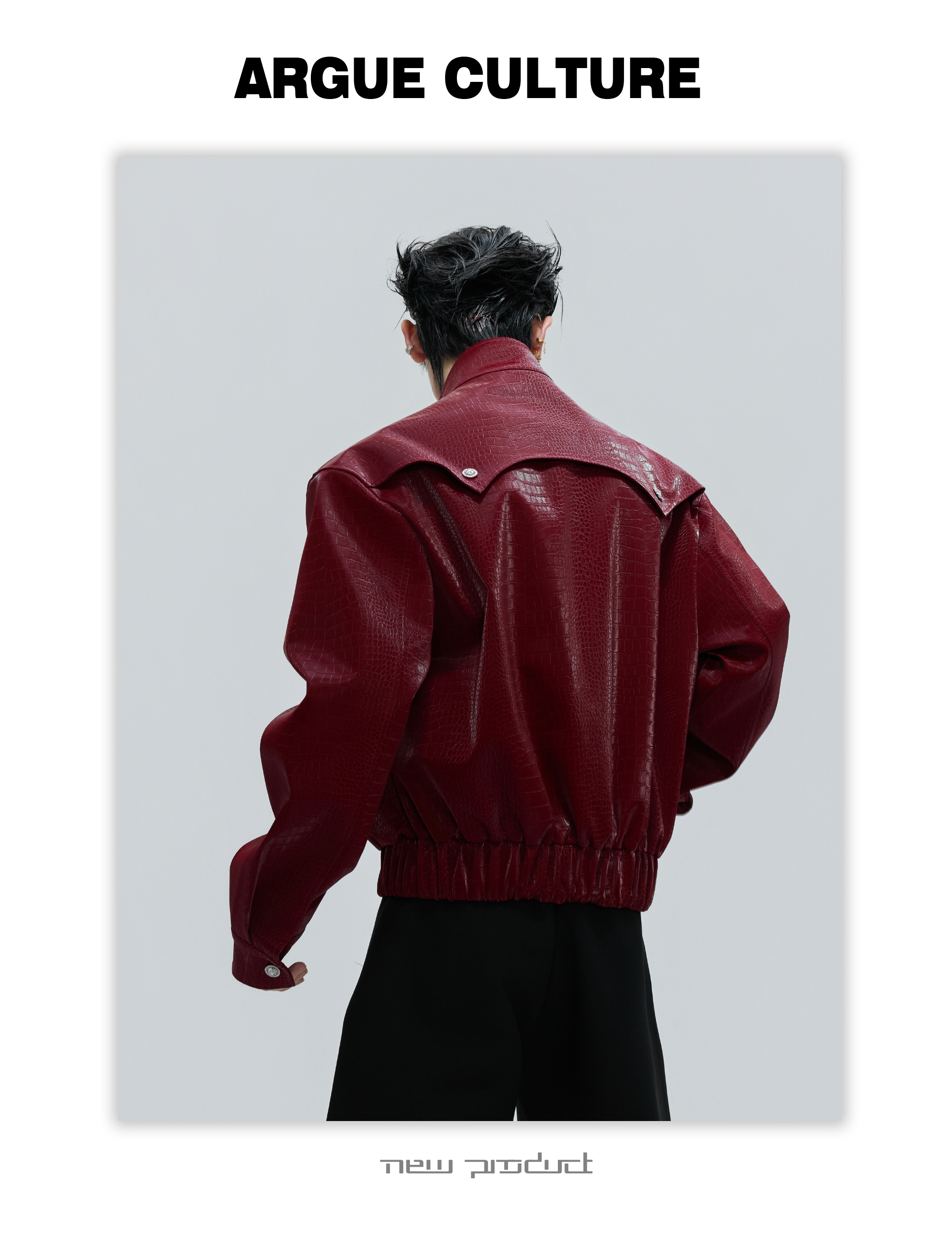 Crocodile Texture Standing-Collar PU Leather Jacket WN21752