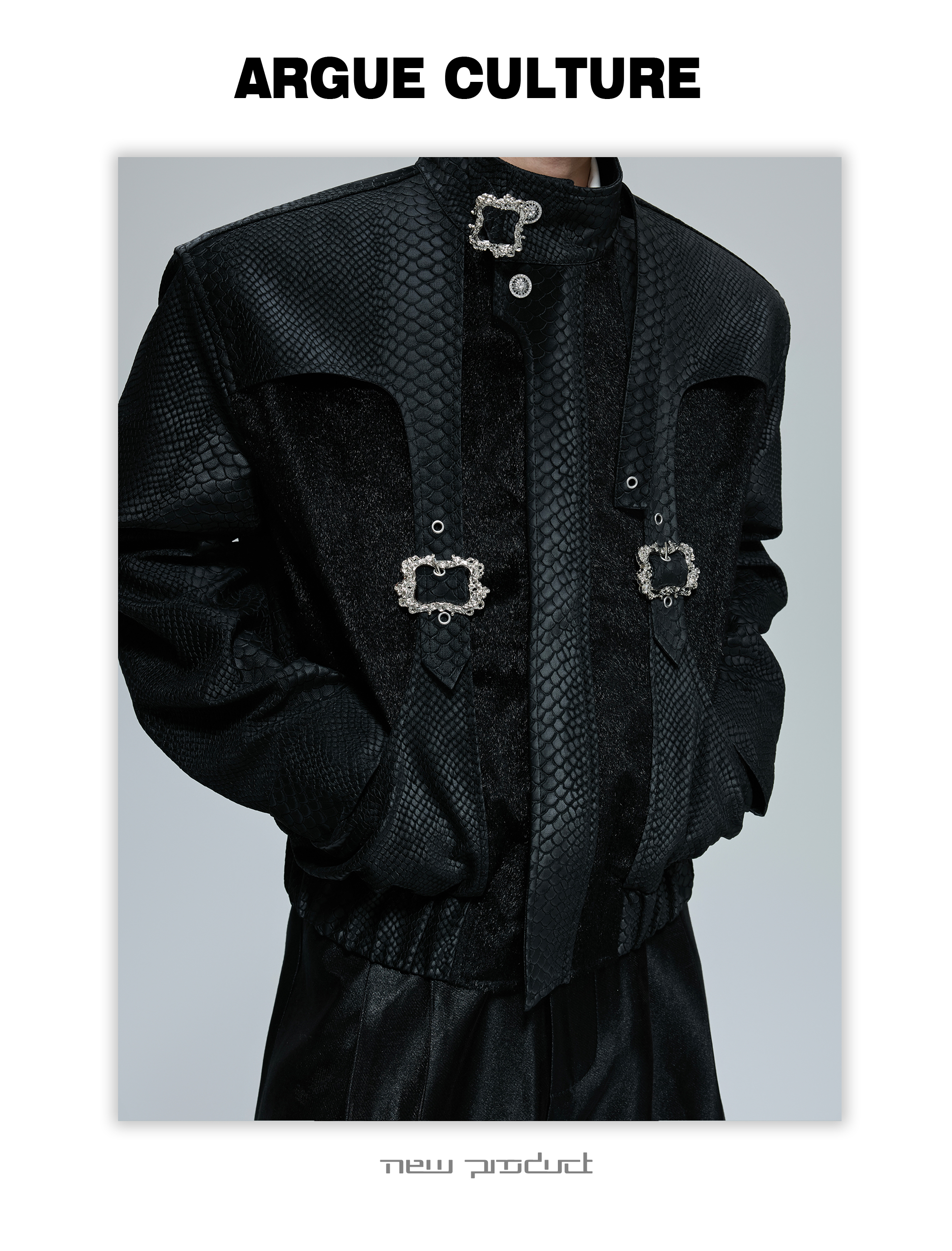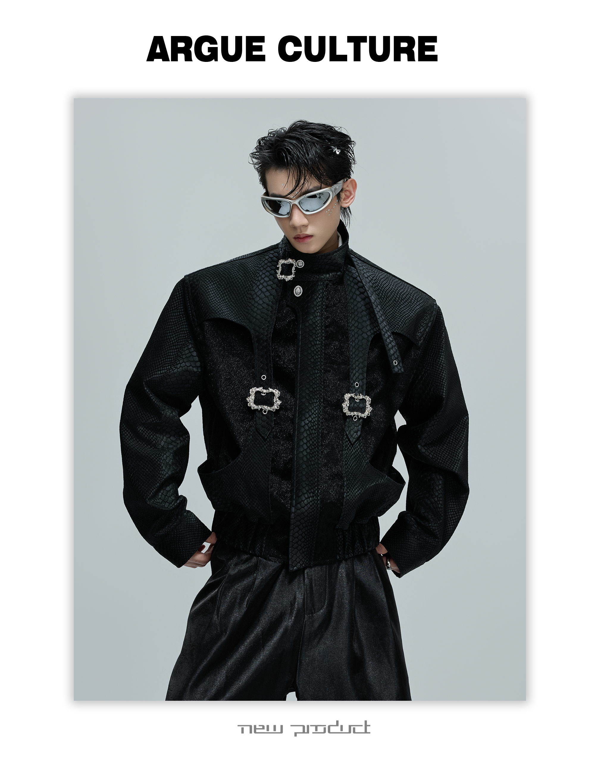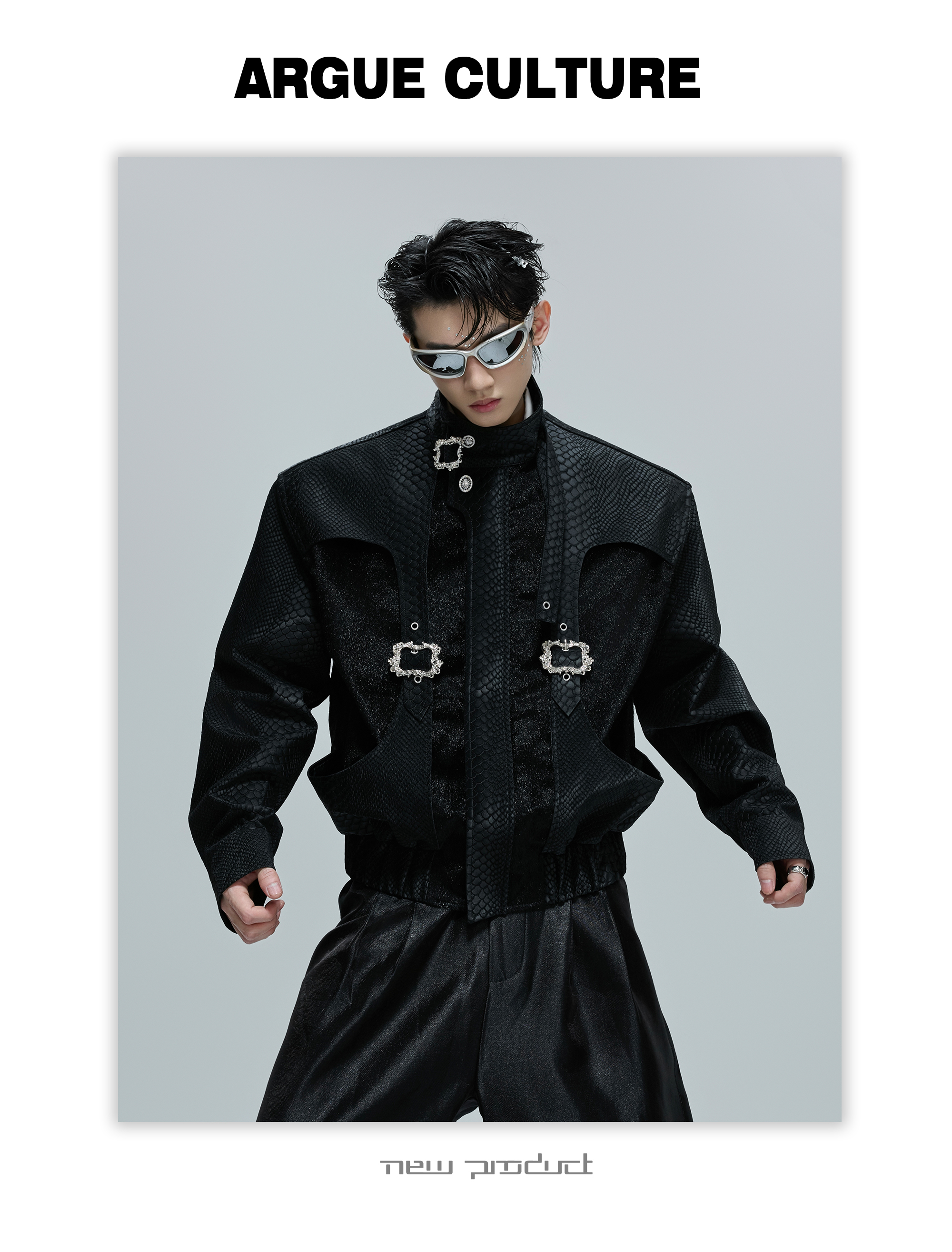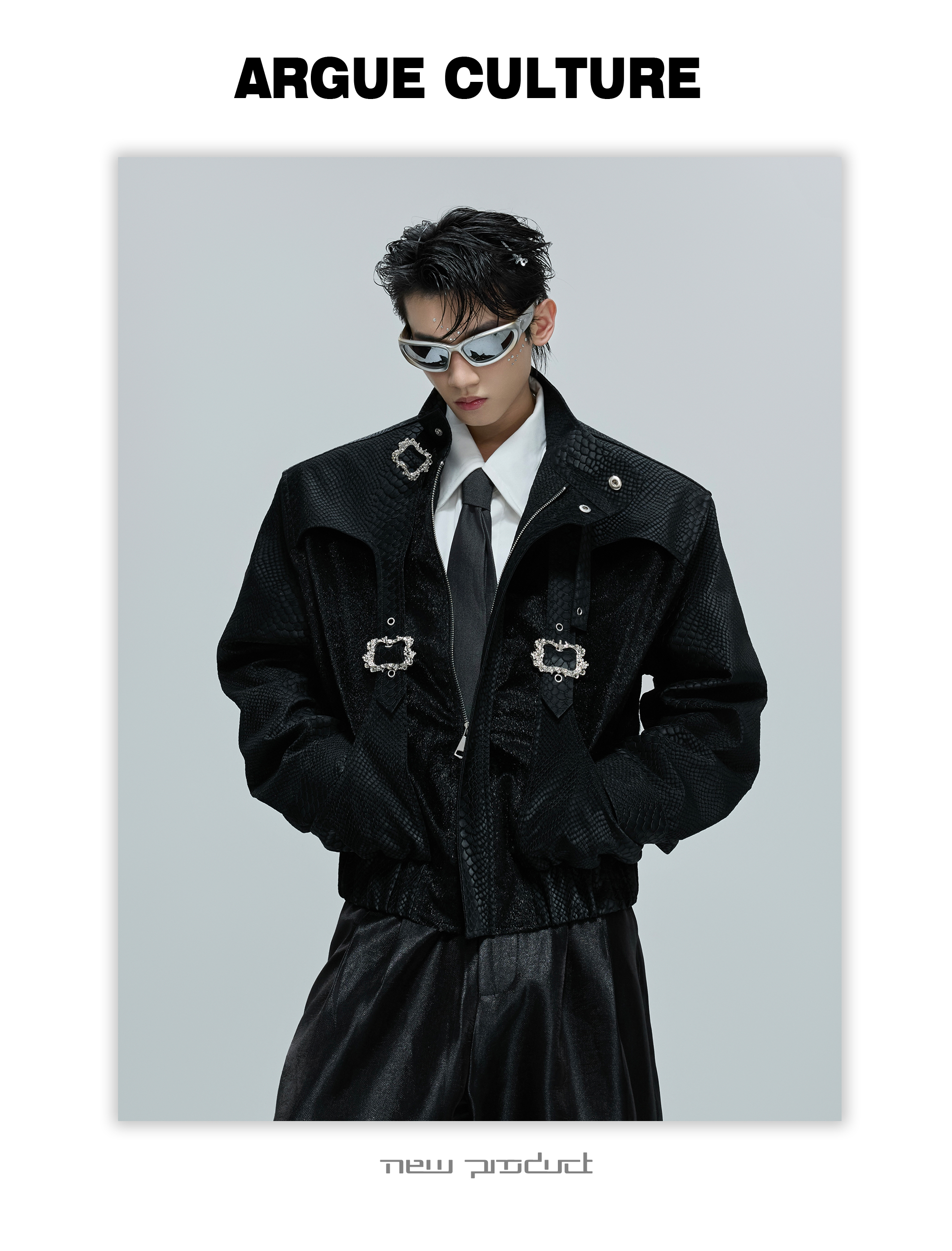 Crocodile Texture Standing-Collar PU Leather Jacket WN21752