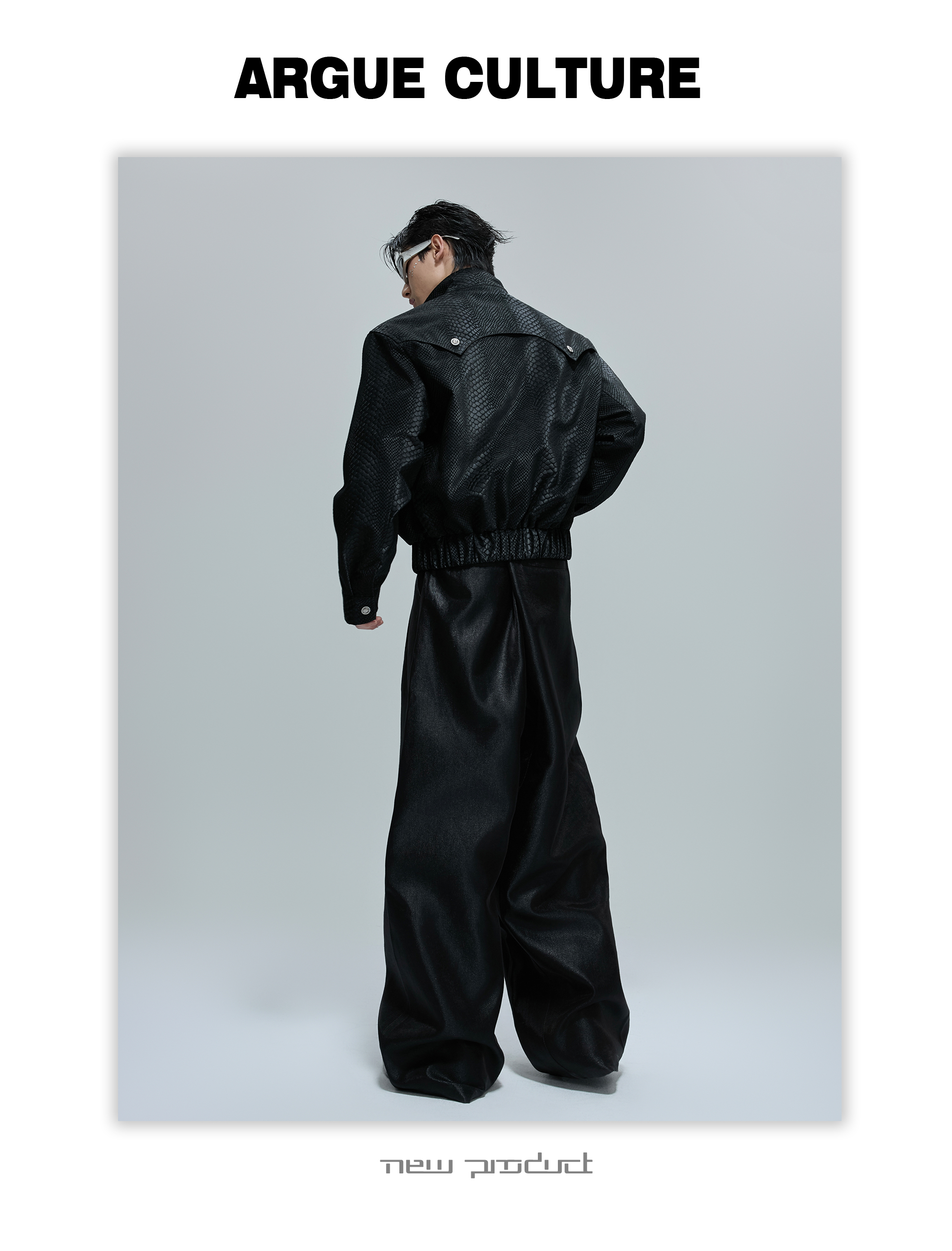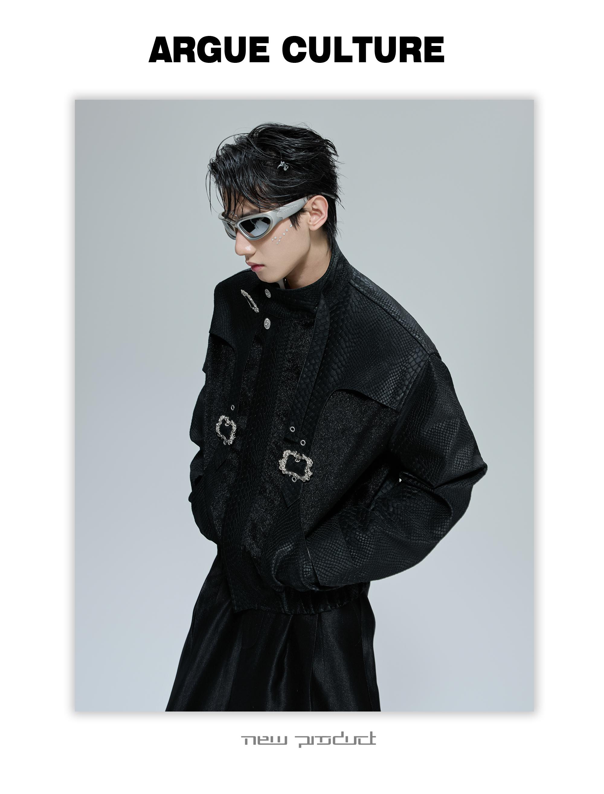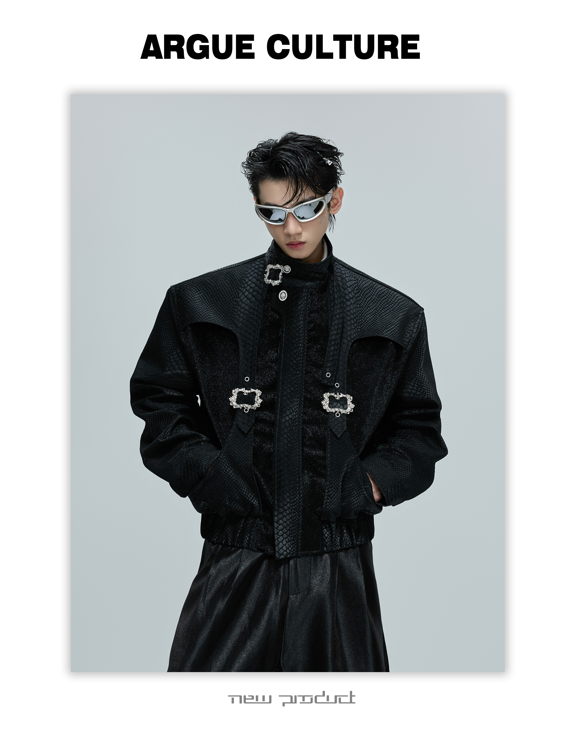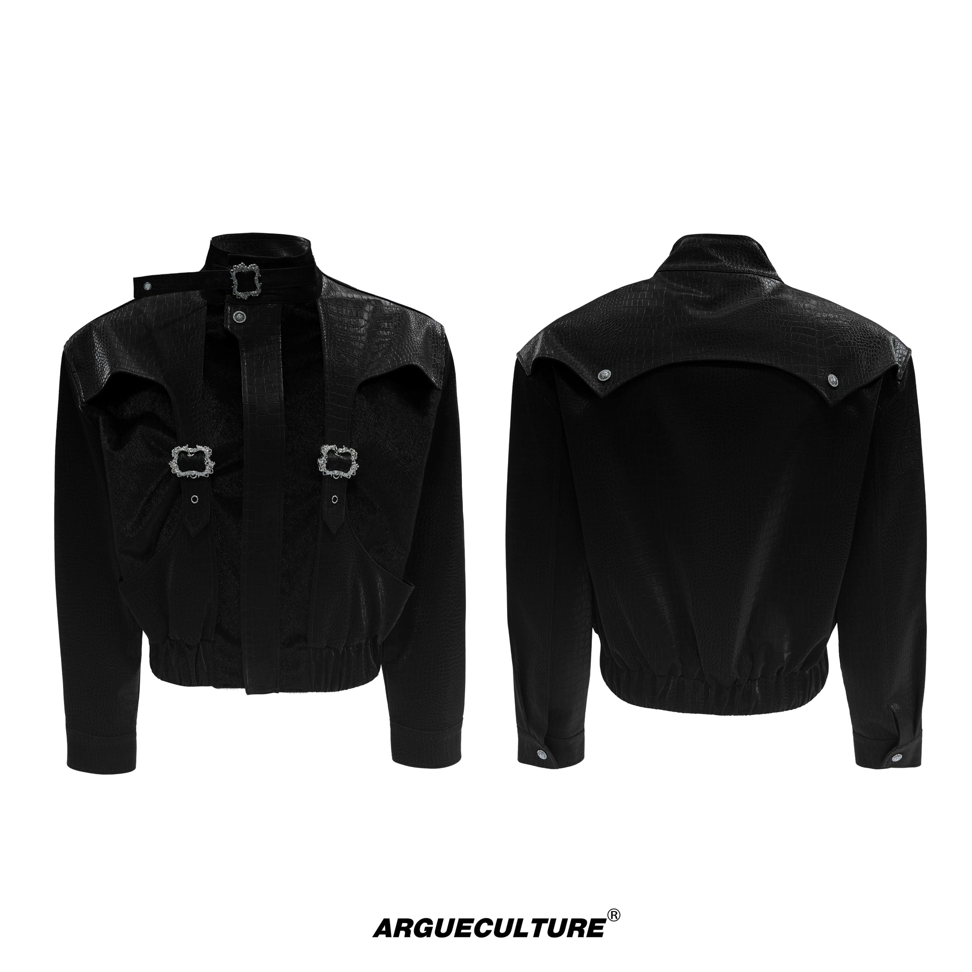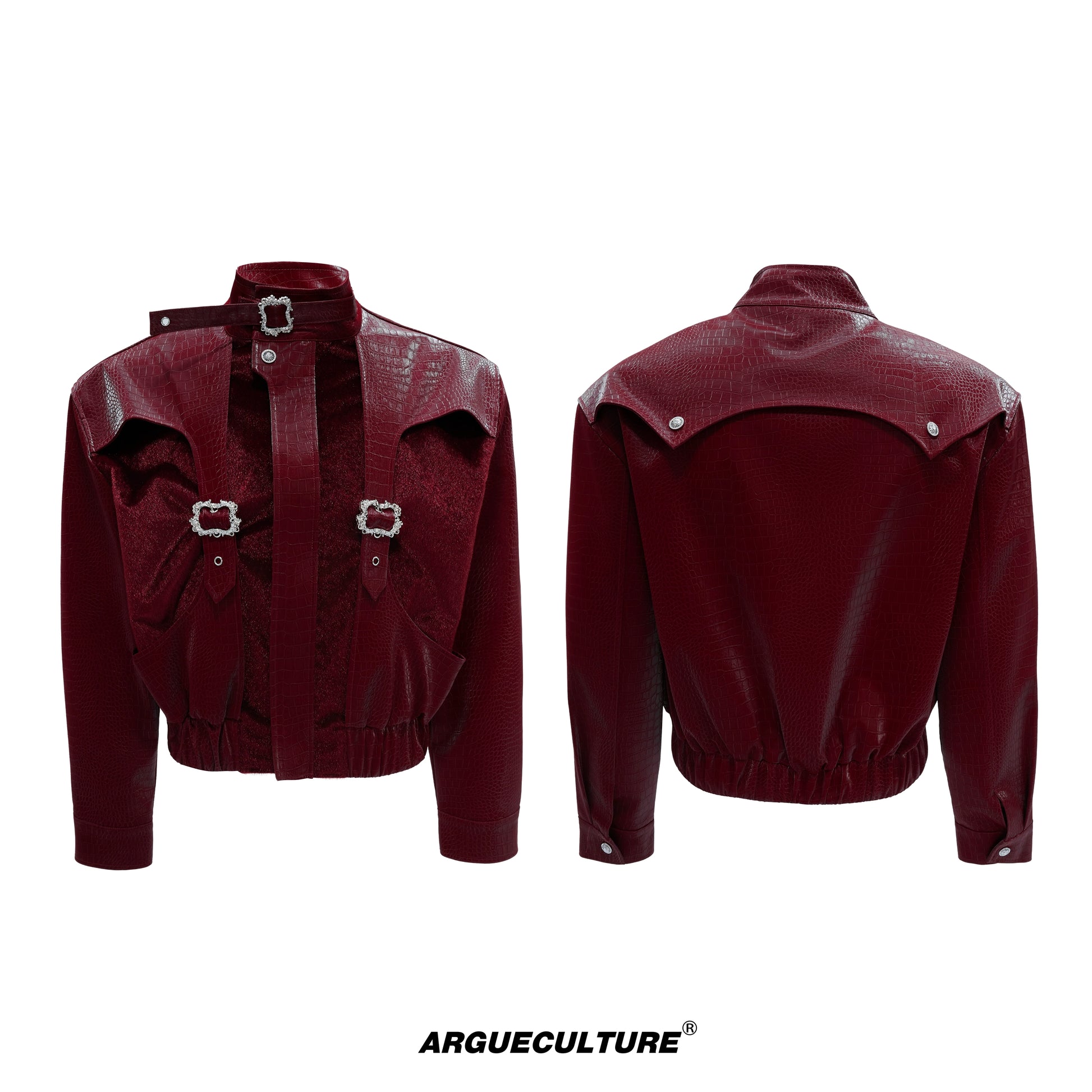 Crocodile Texture Standing-Collar PU Leather Jacket WN21752