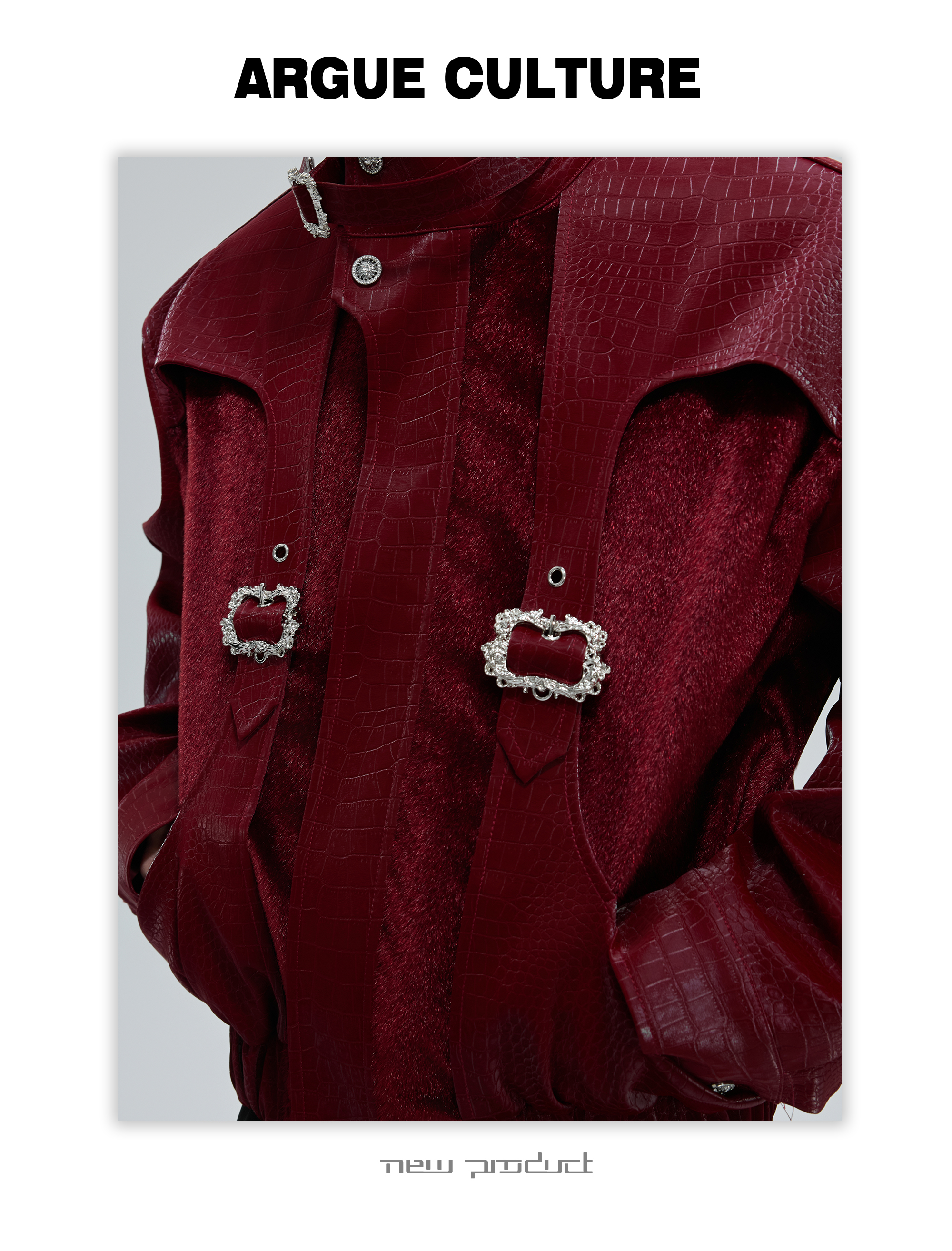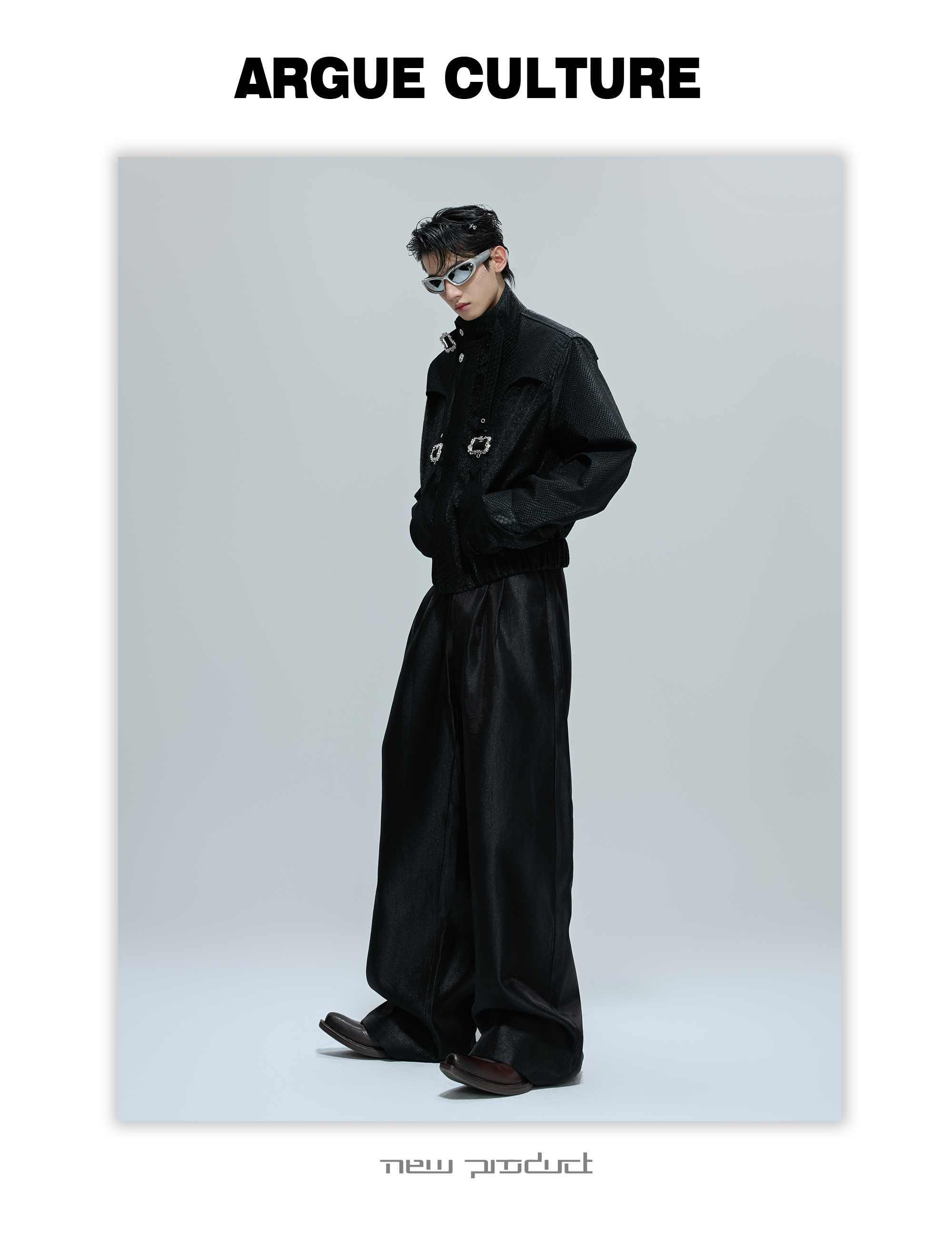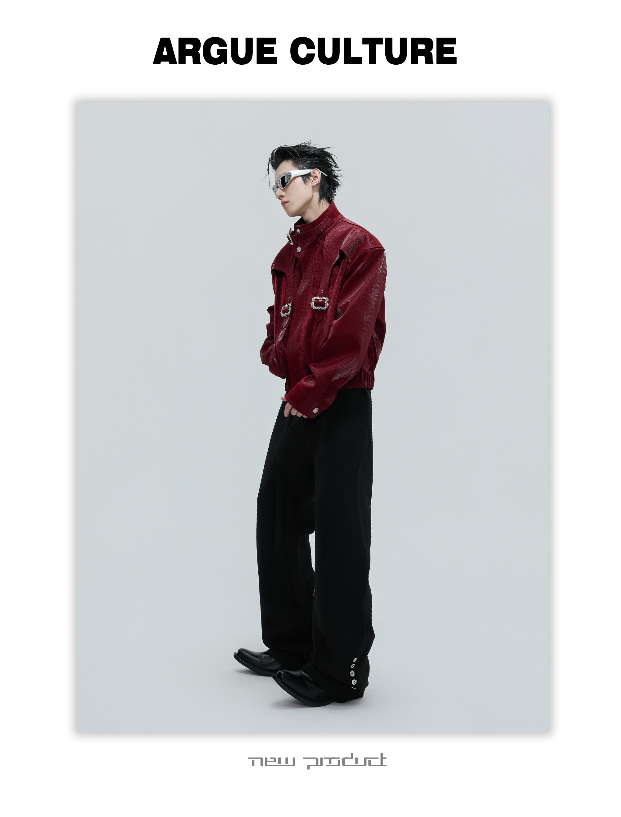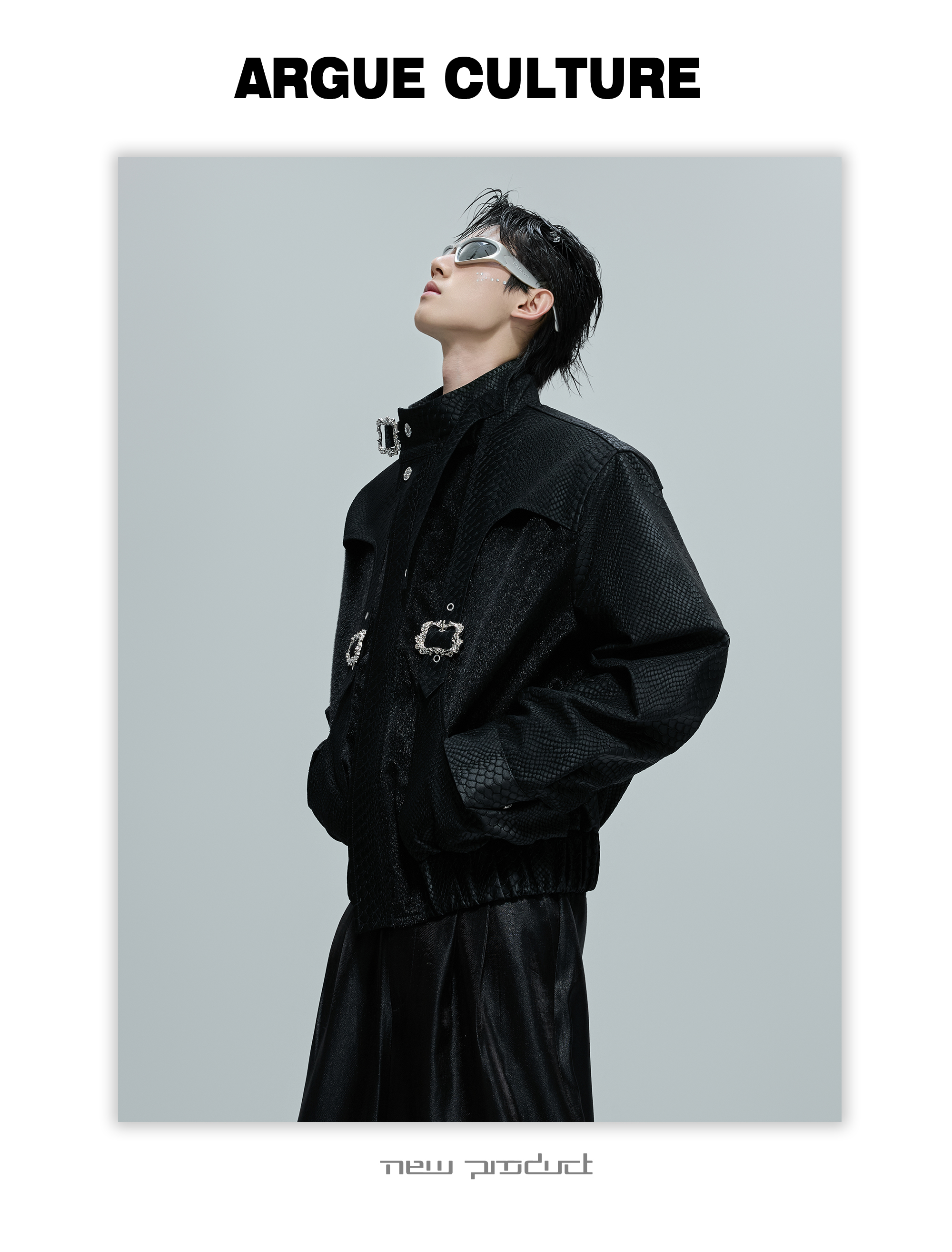 Crocodile Texture Standing-Collar PU Leather Jacket WN21752