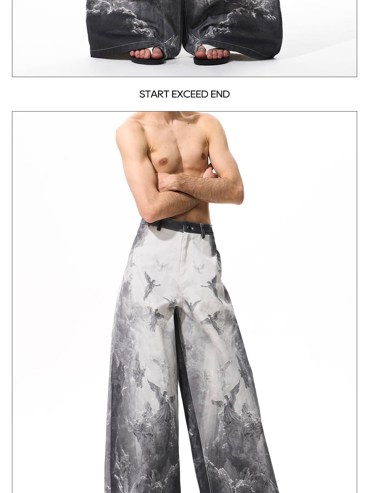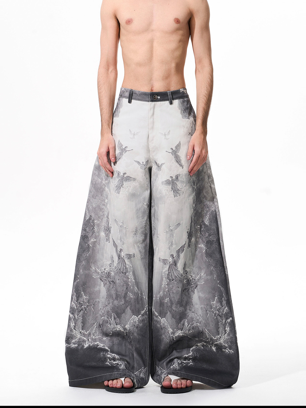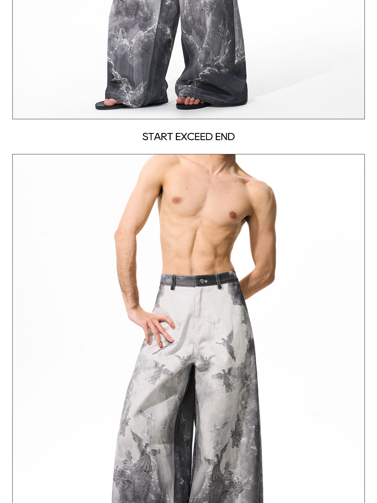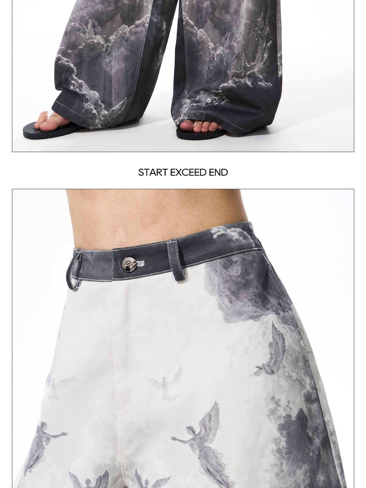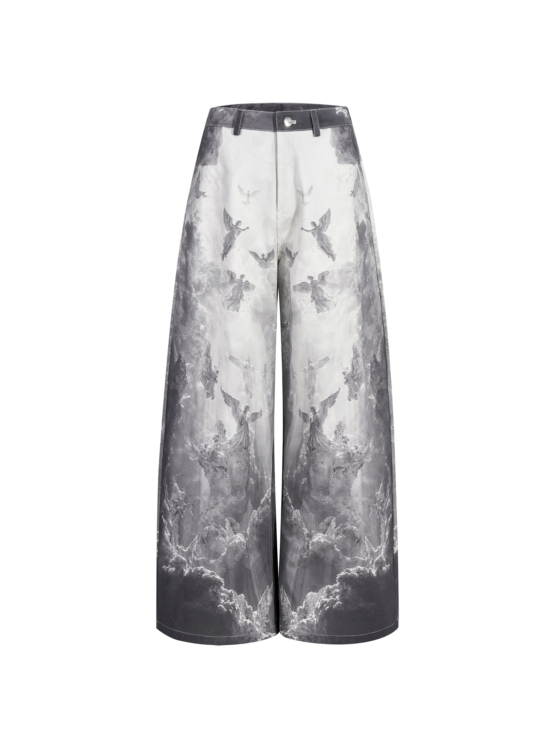 3D Print Low Waist Wide Leg Denim Jeans WN21778