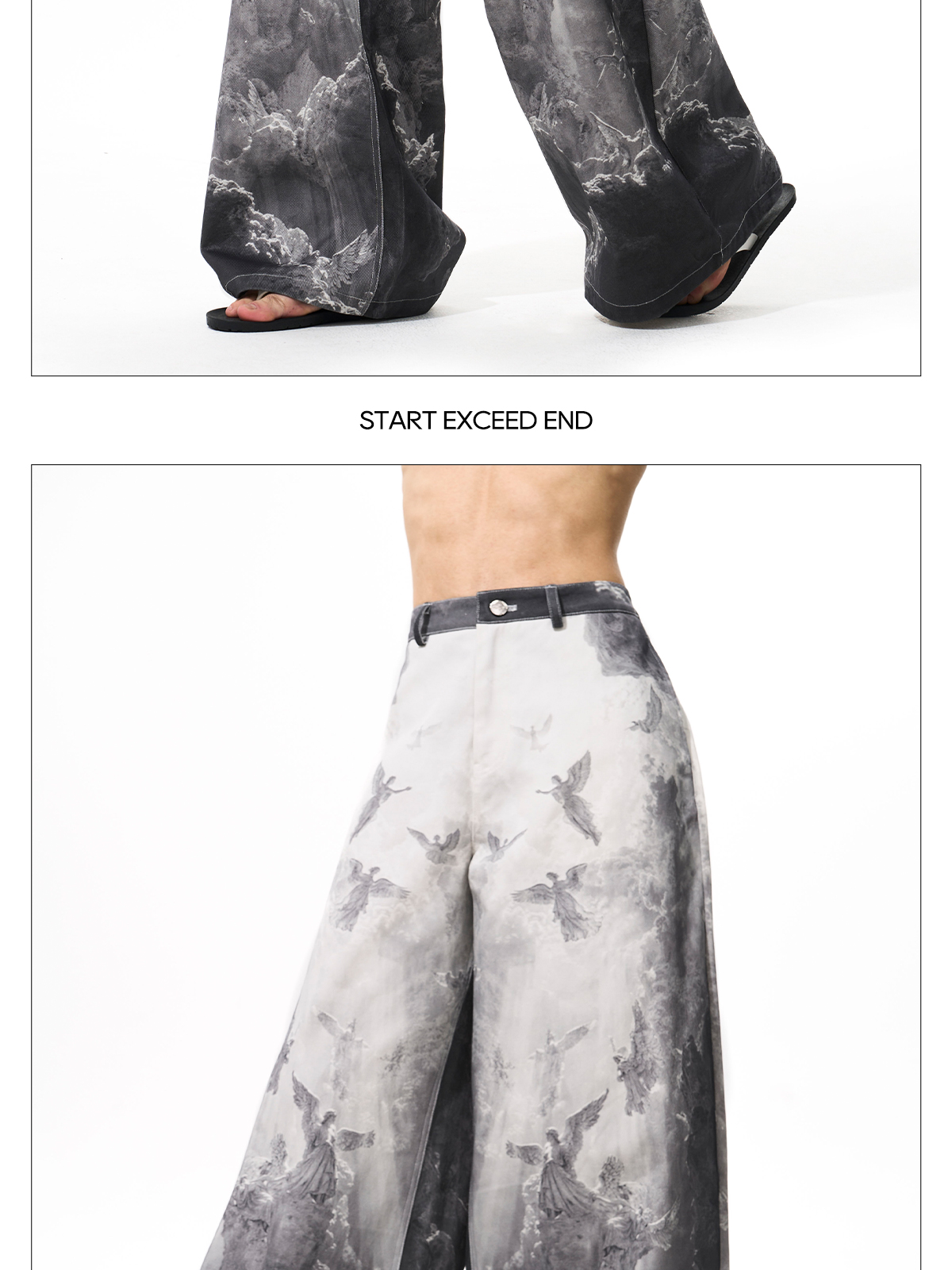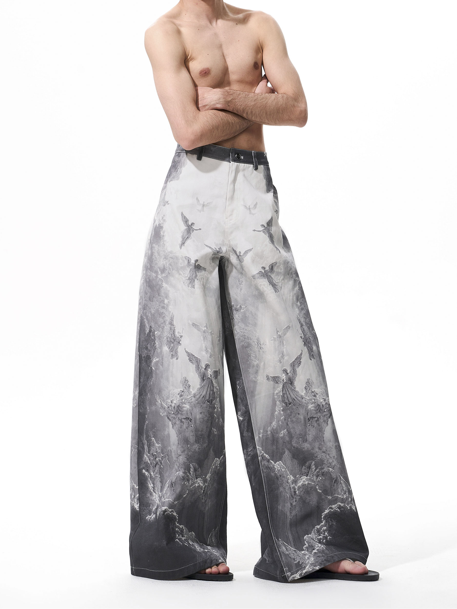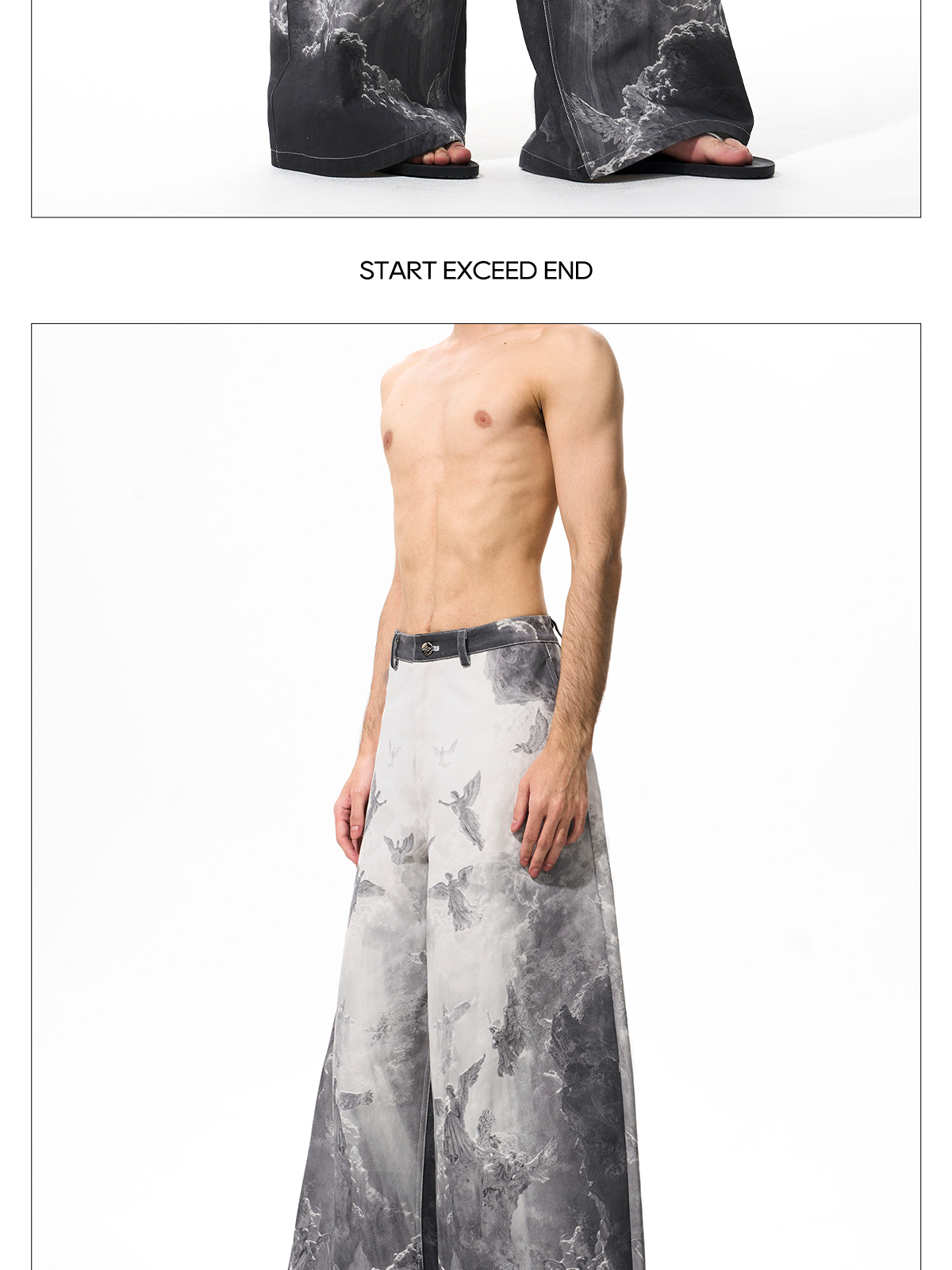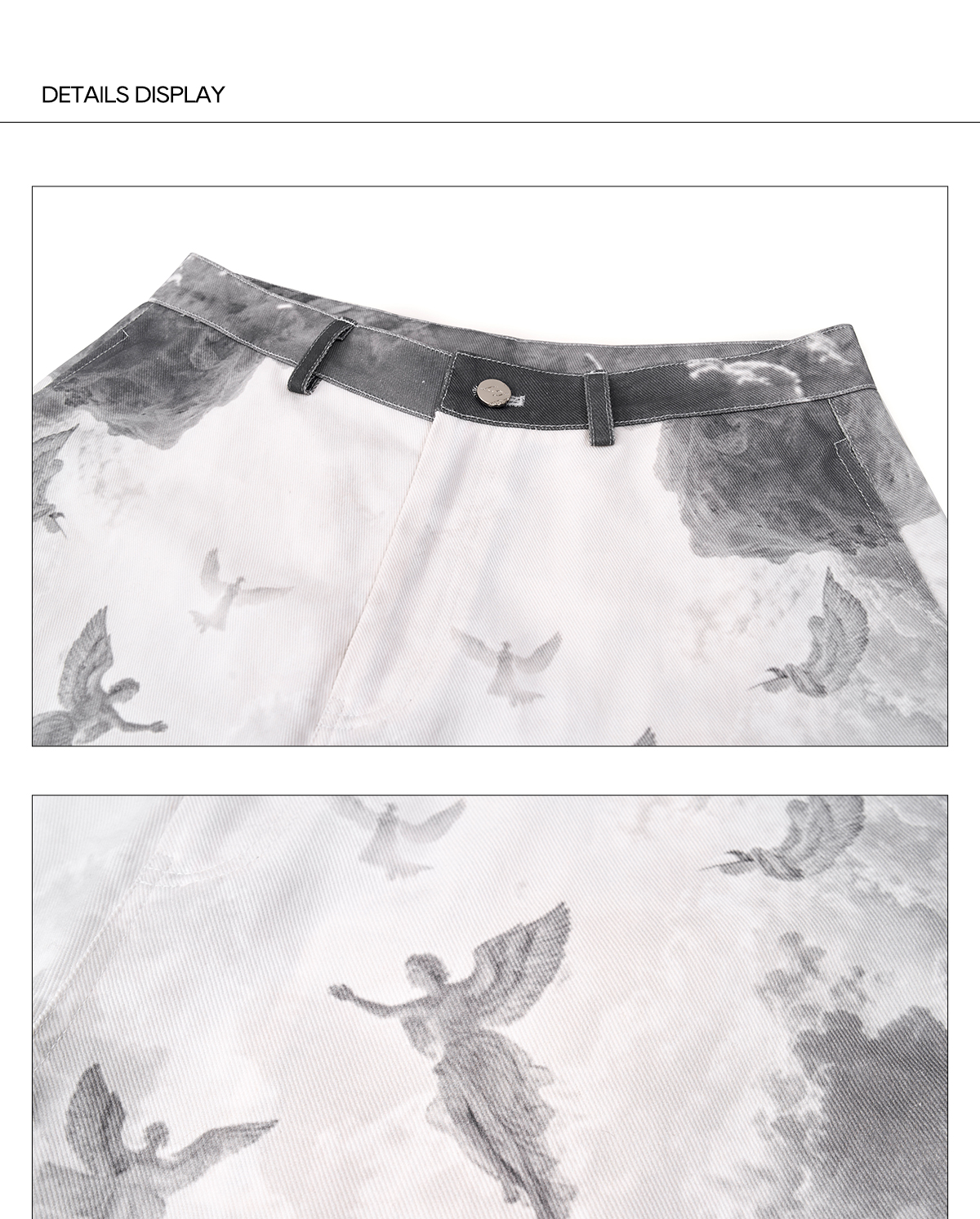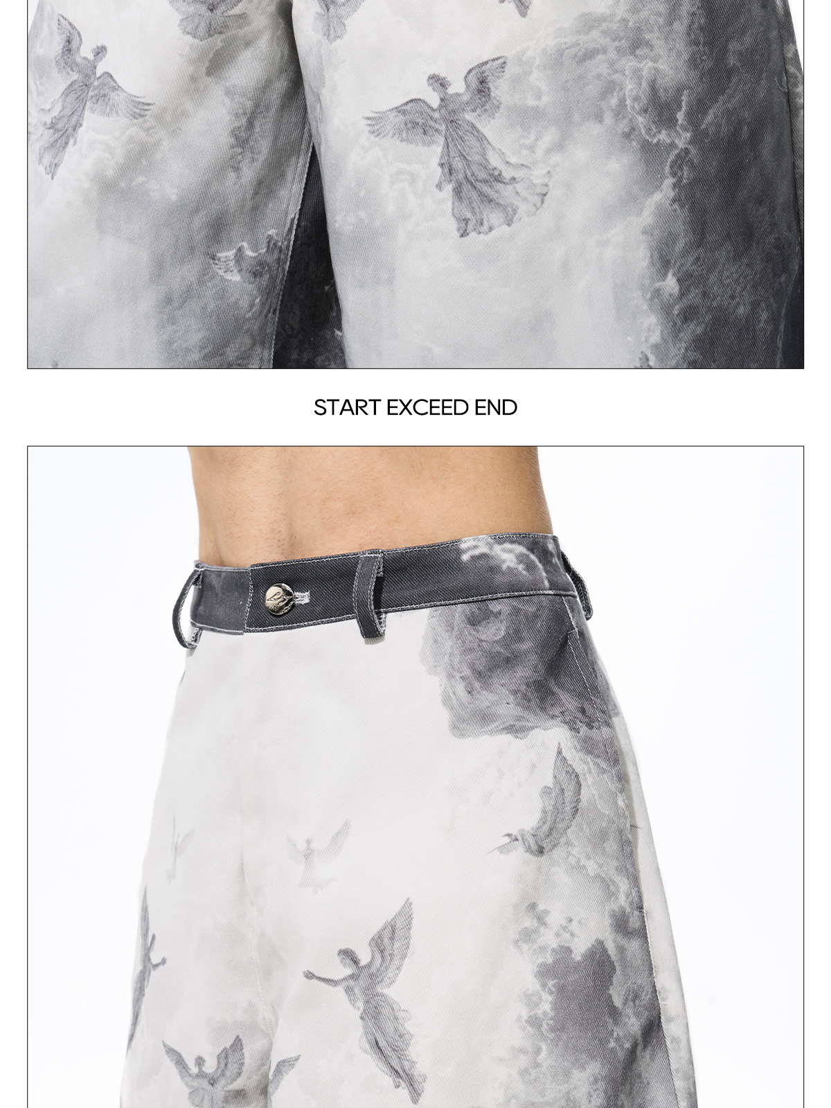 3D Print Low Waist Wide Leg Denim Jeans WN21778