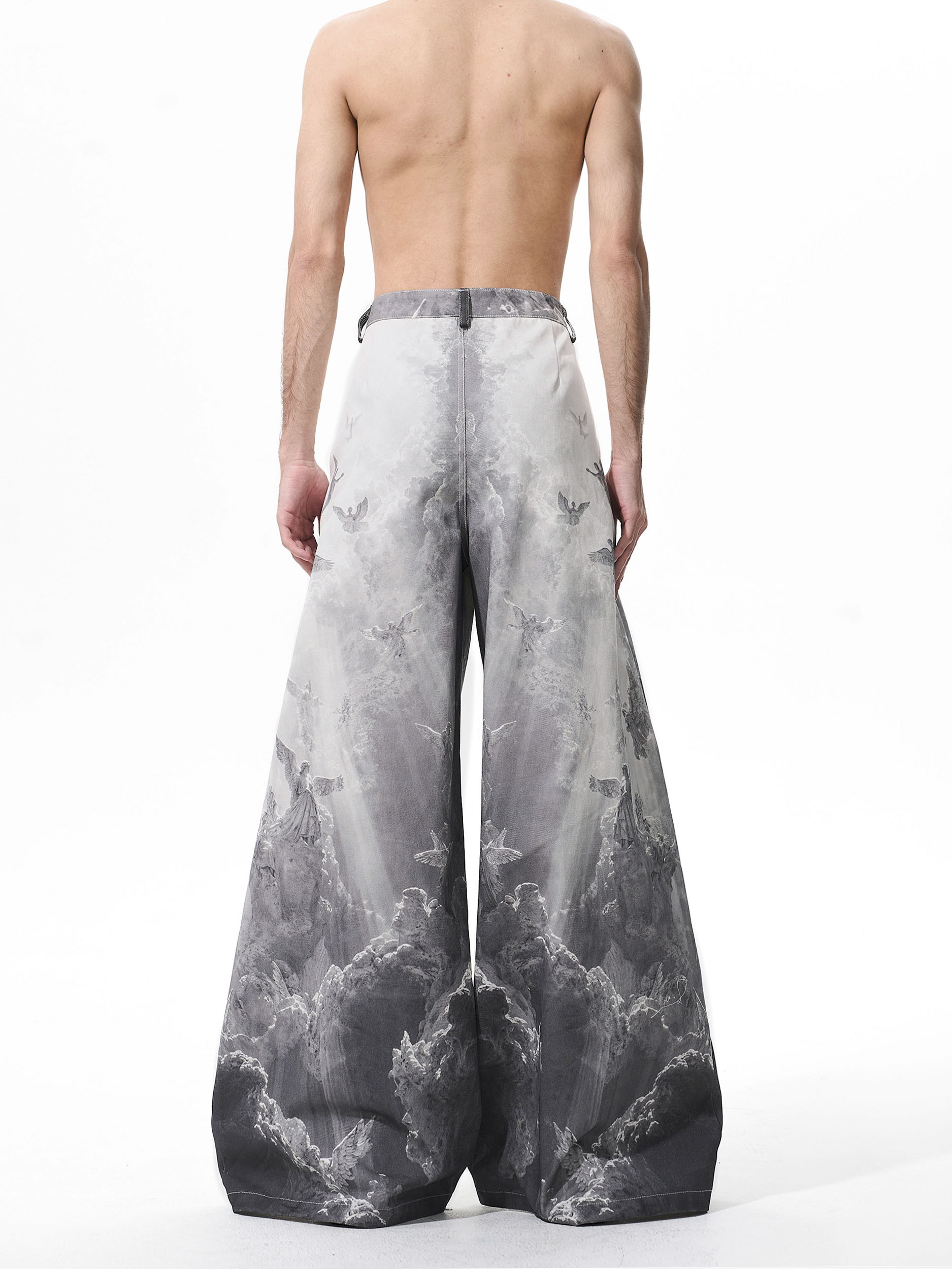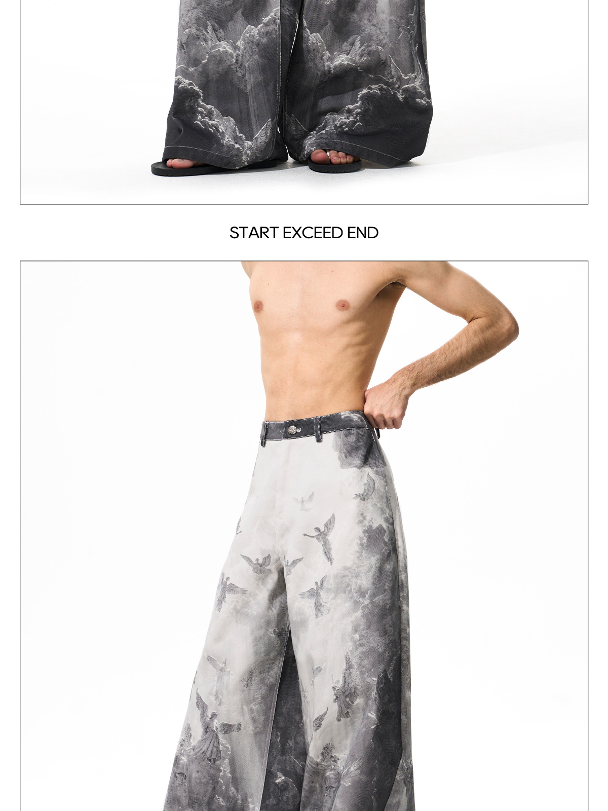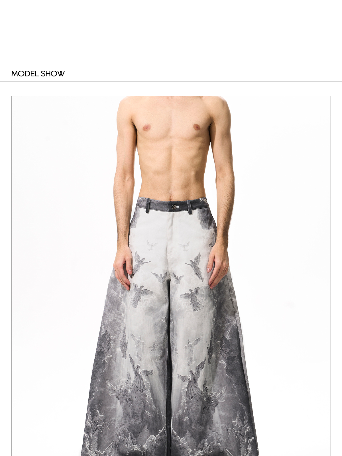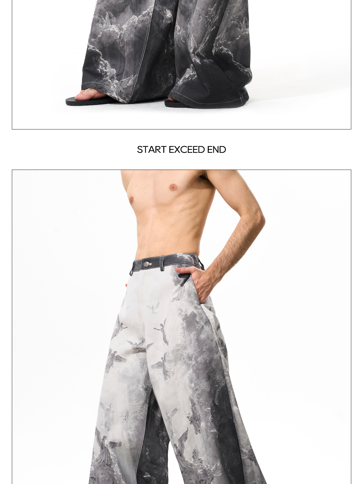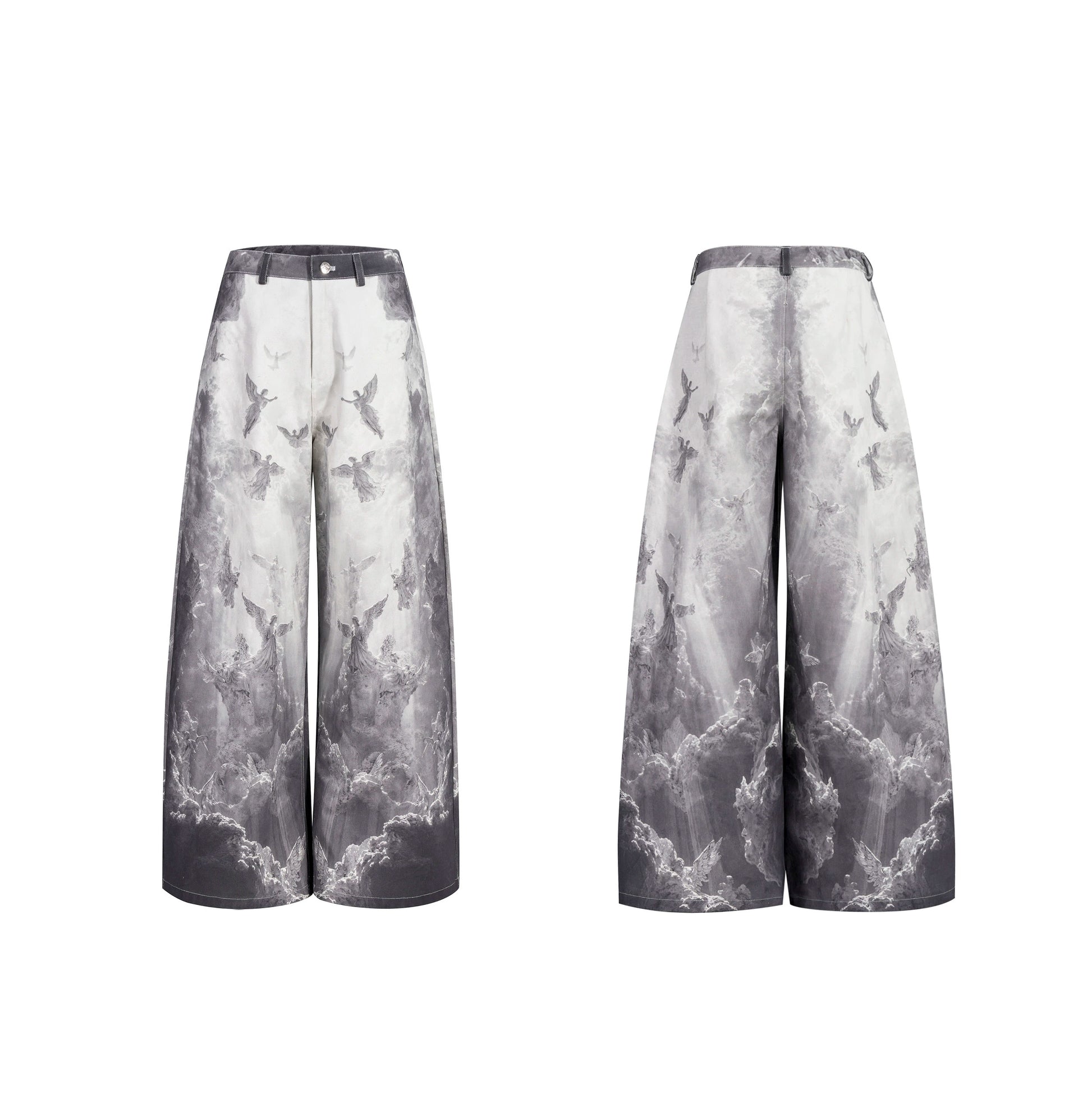 3D Print Low Waist Wide Leg Denim Jeans WN21778