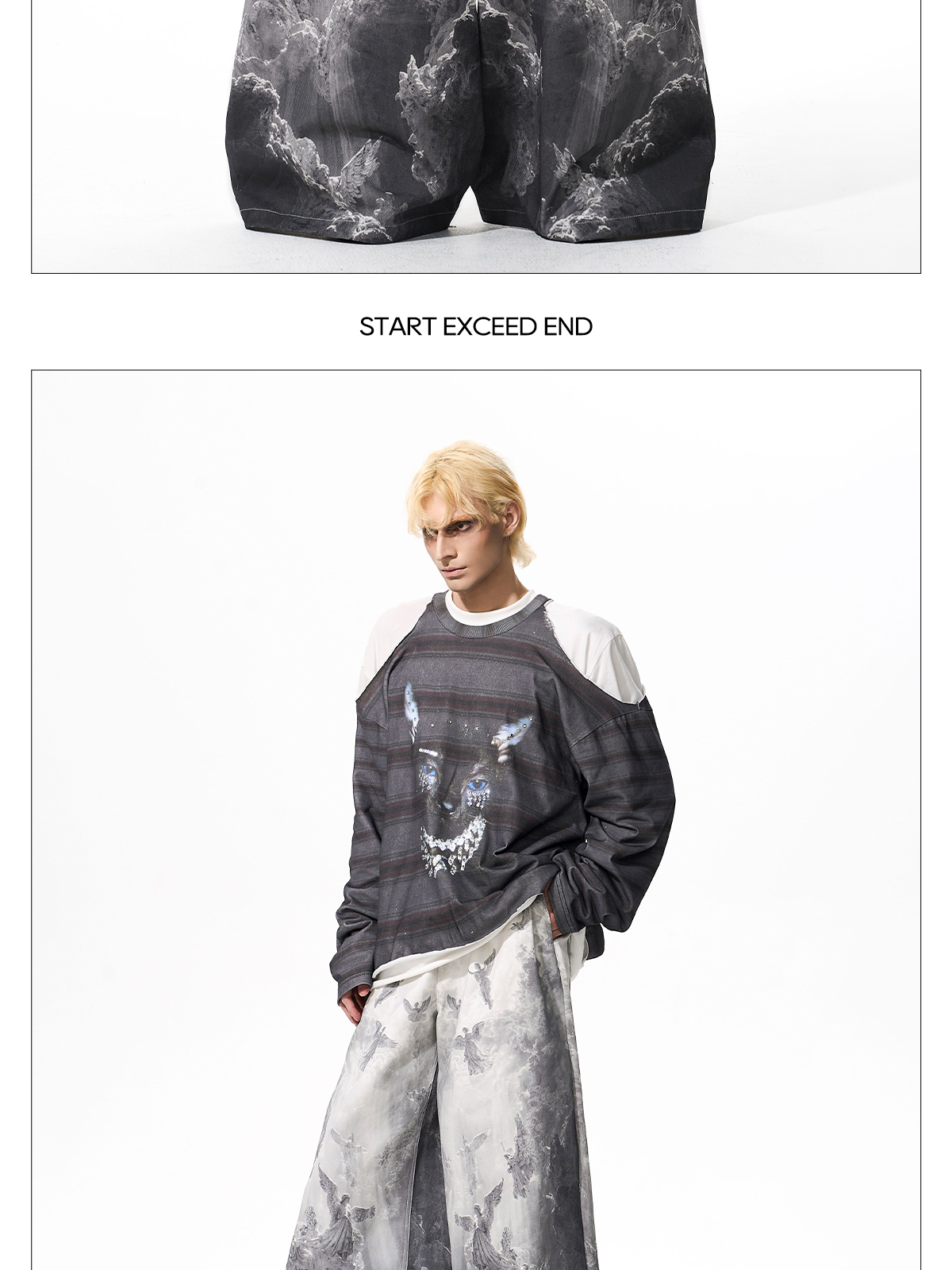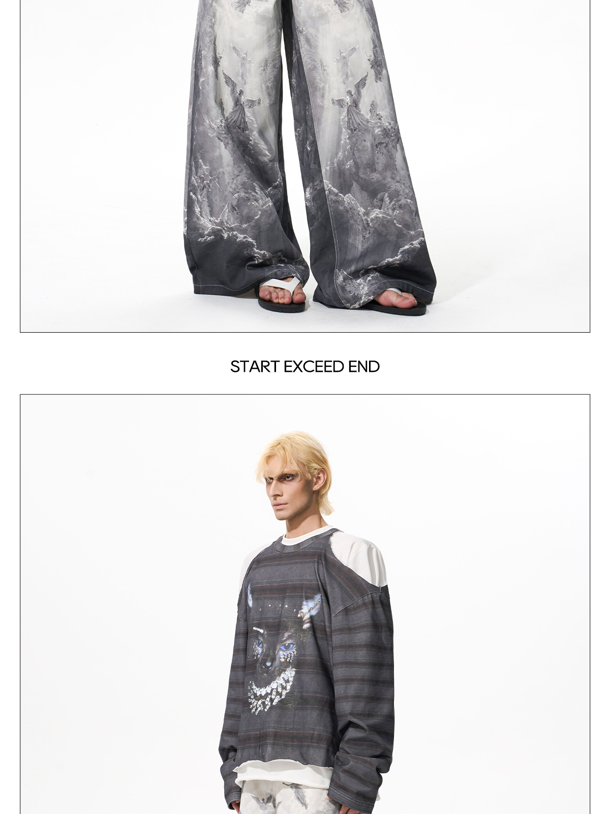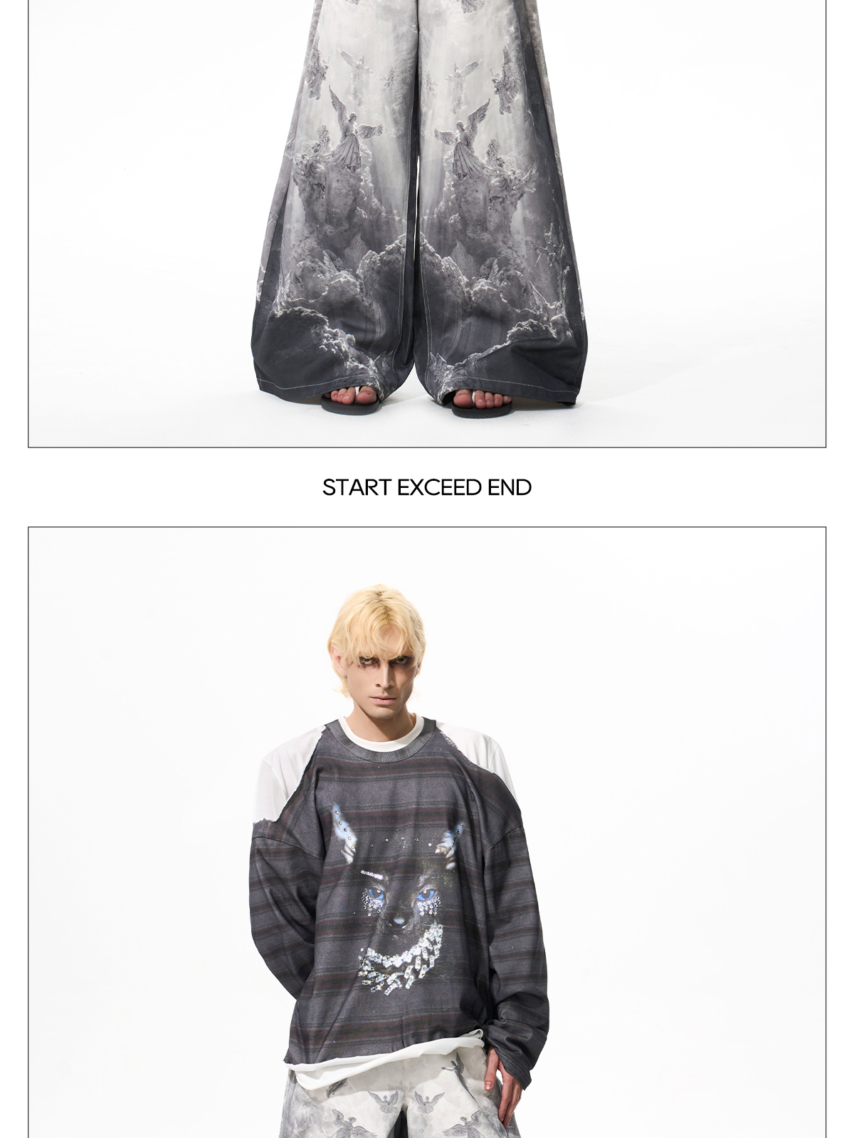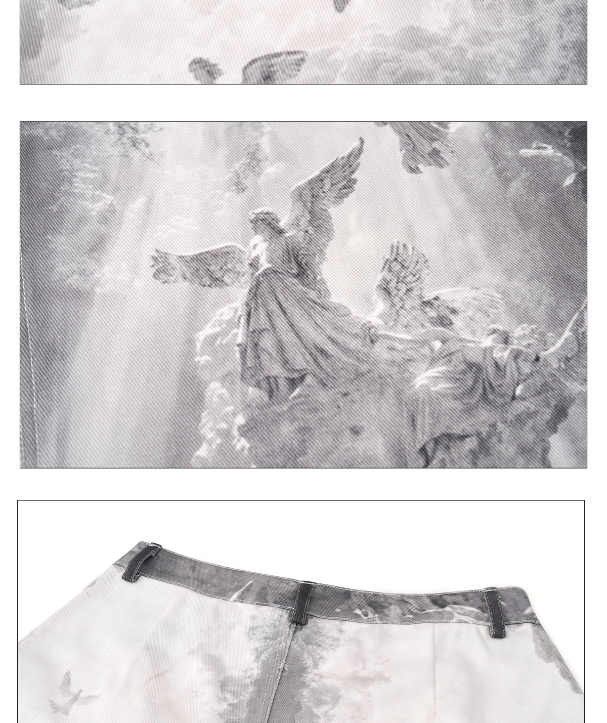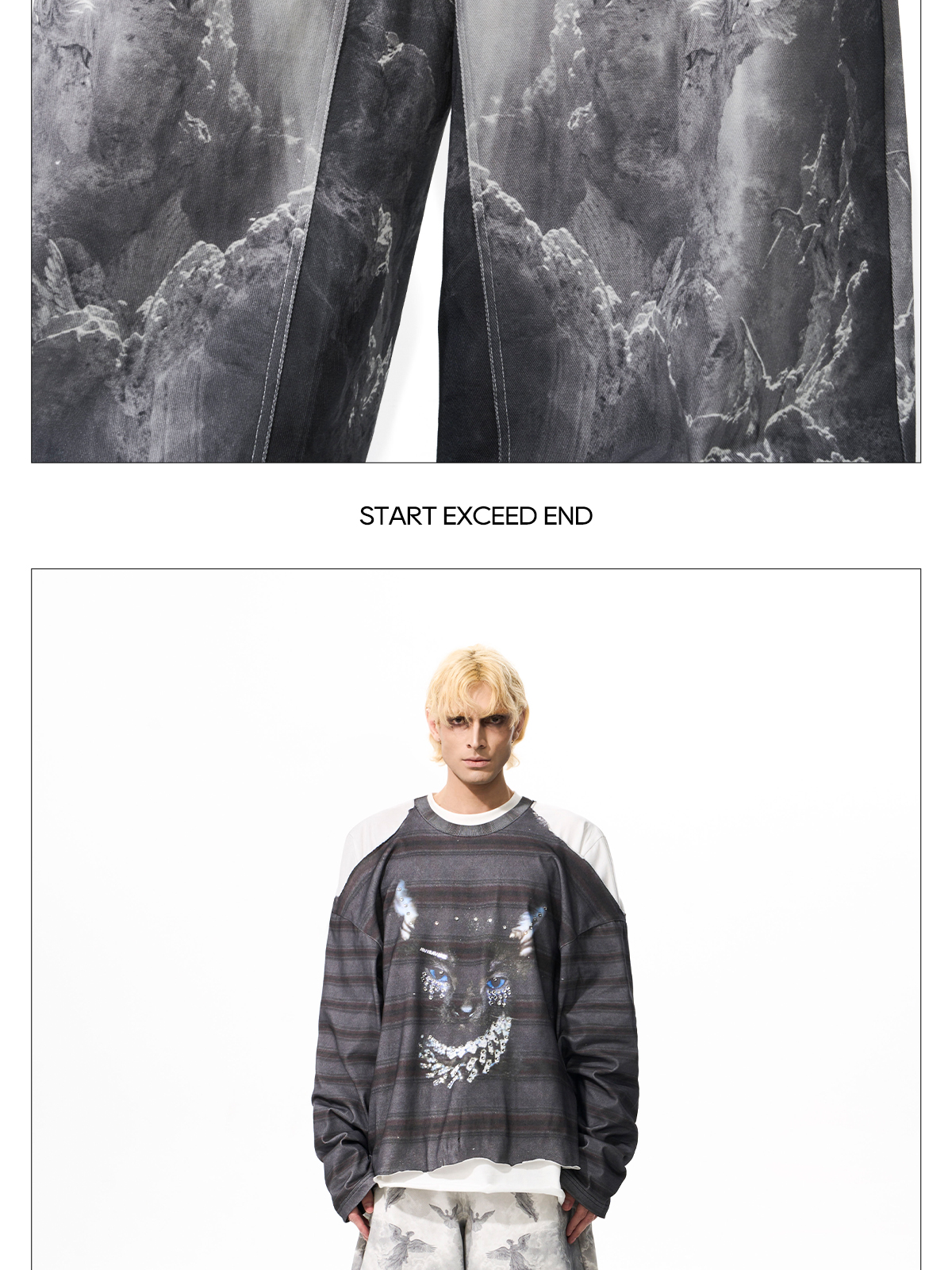 3D Print Low Waist Wide Leg Denim Jeans WN21778
