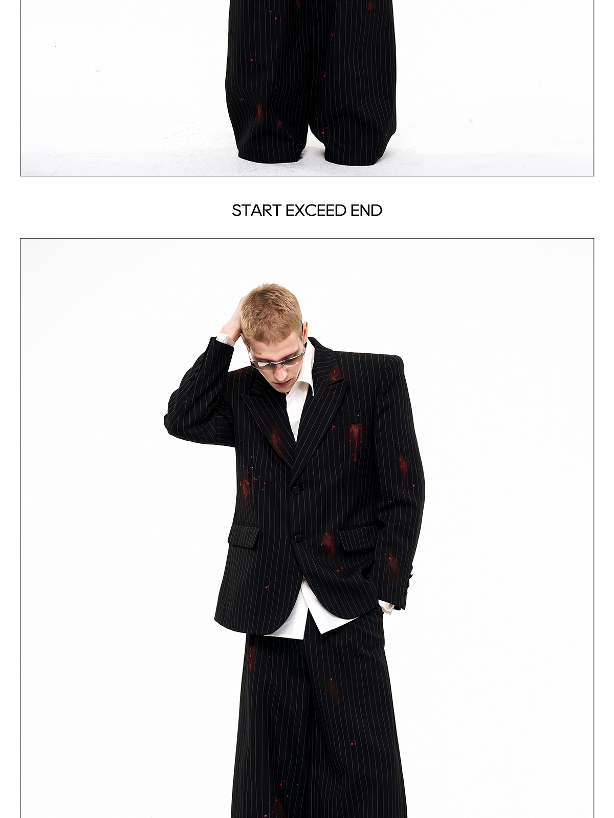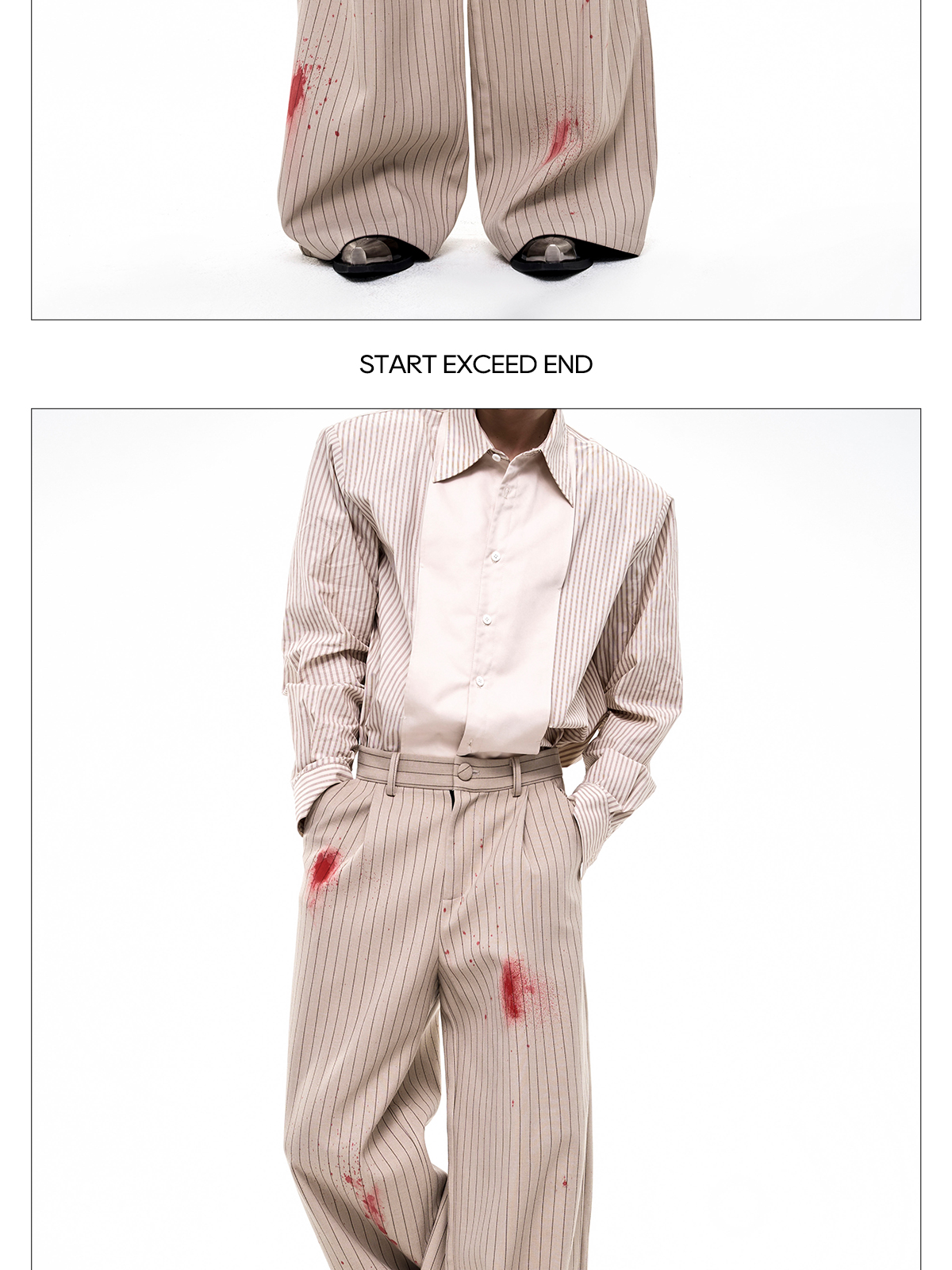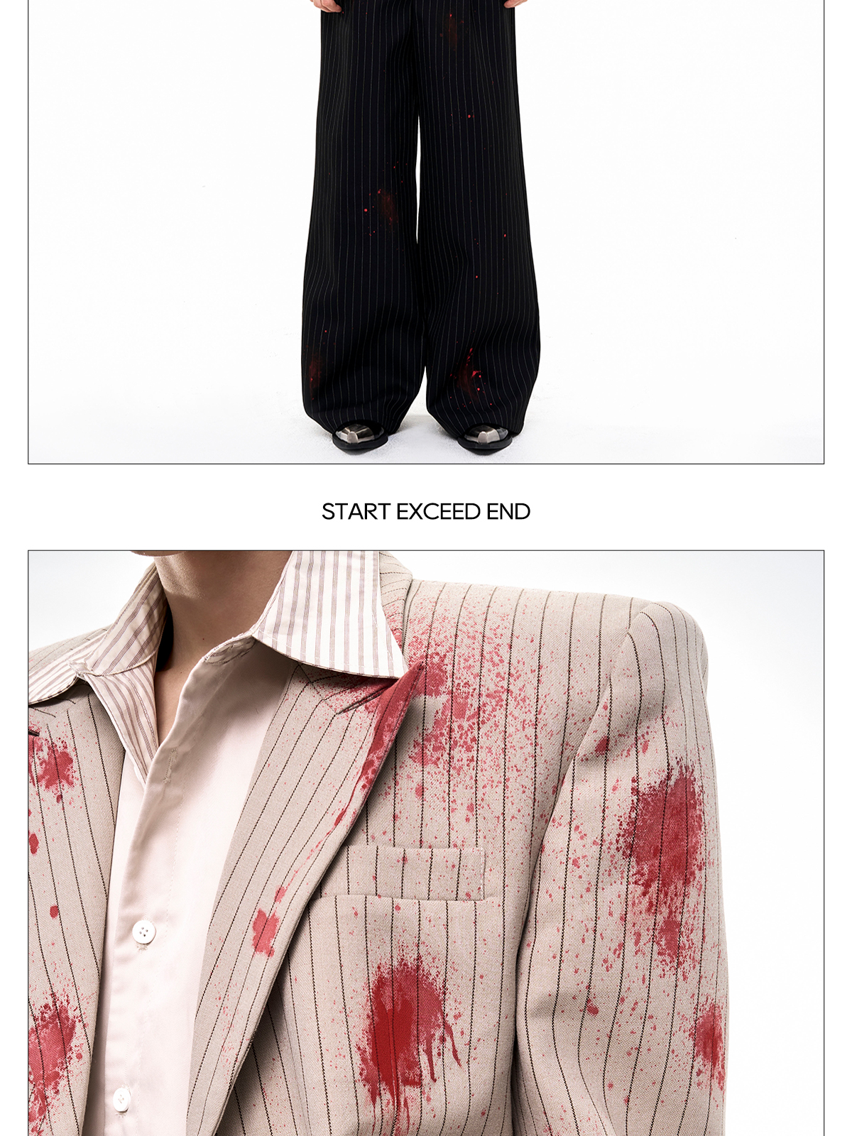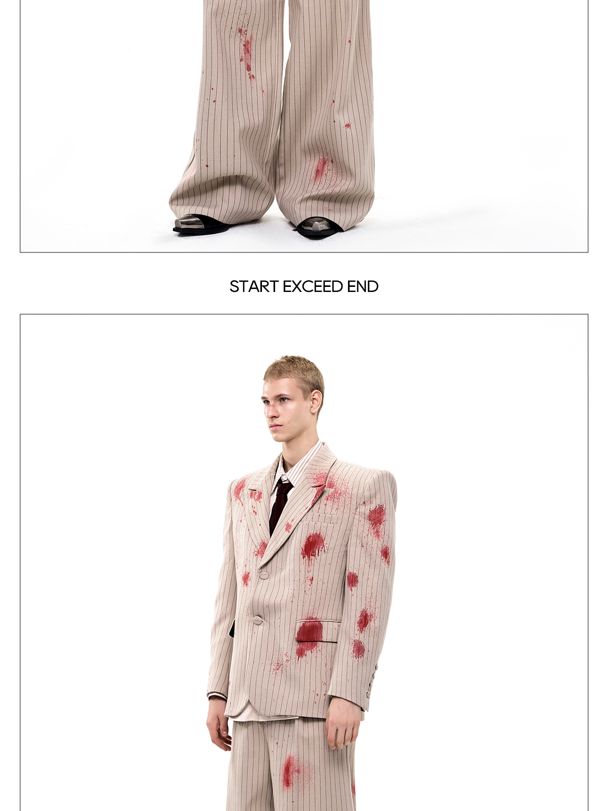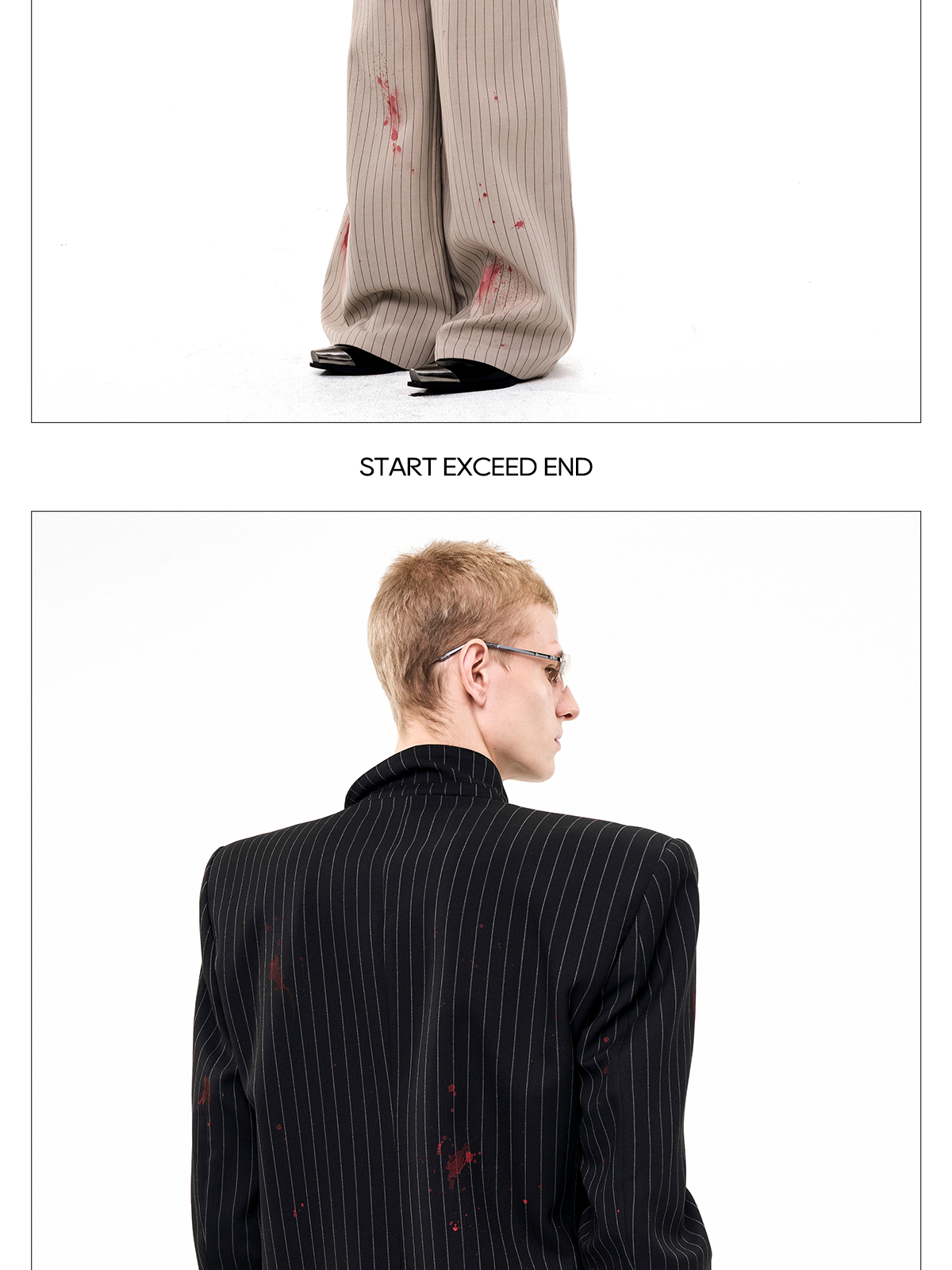 Striped Shoulder-Pad Fake Bloodstain Tailored Jacket & Trousers Setup WN21805