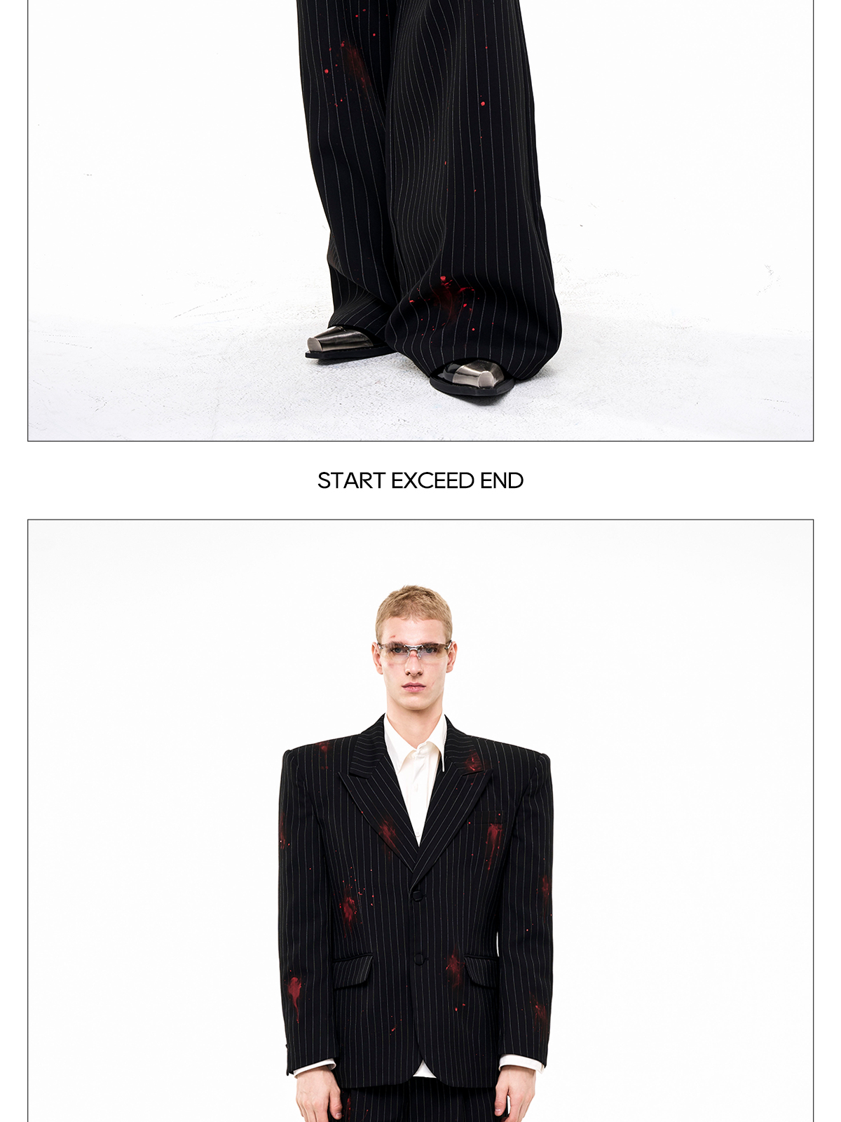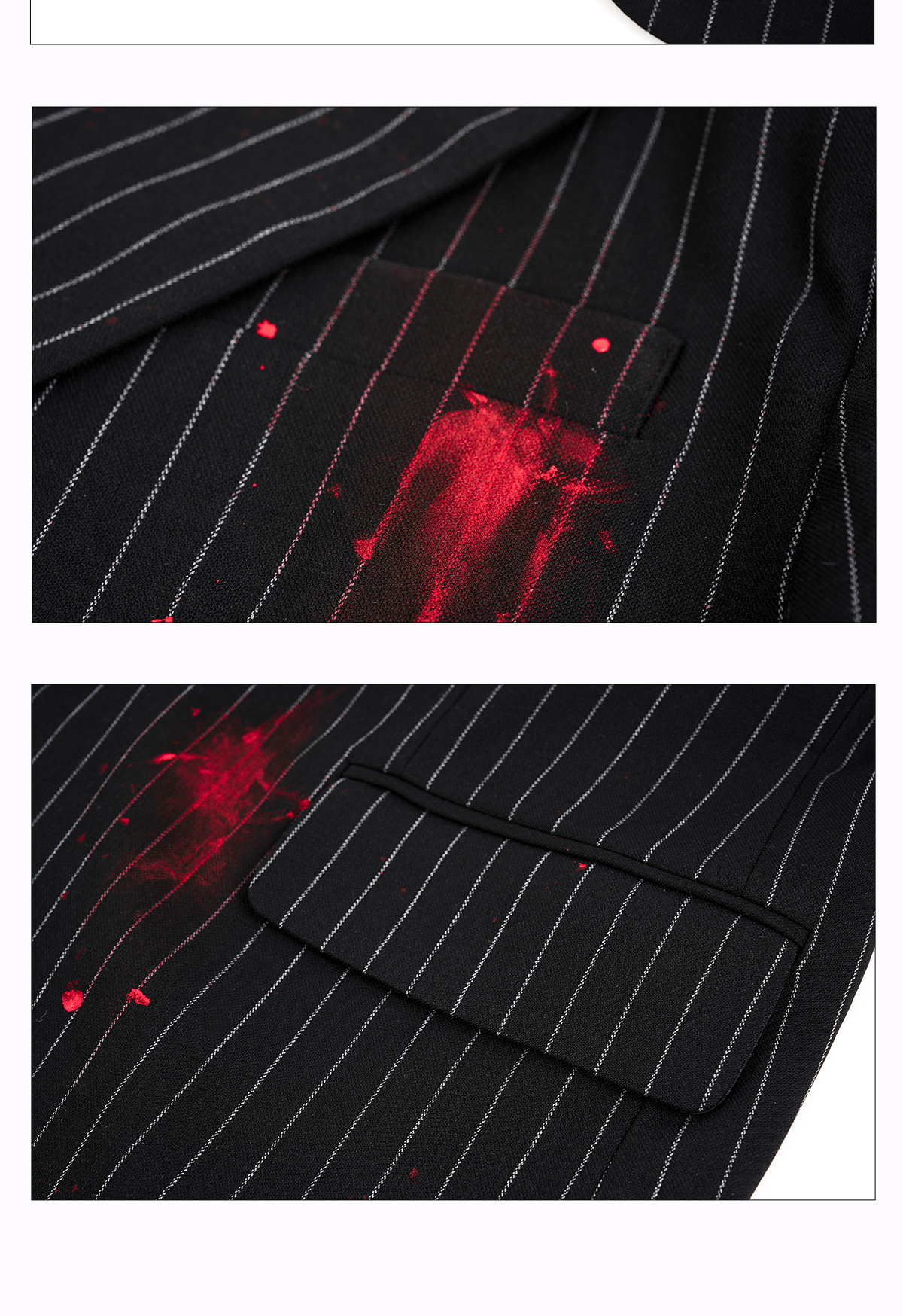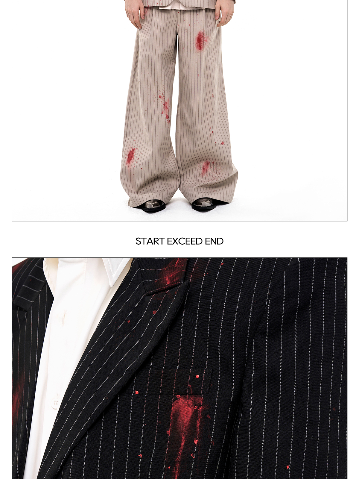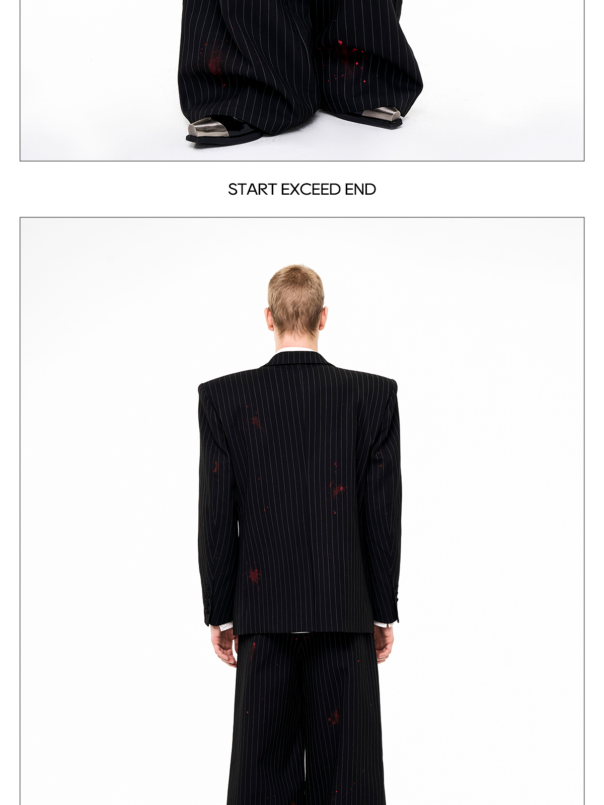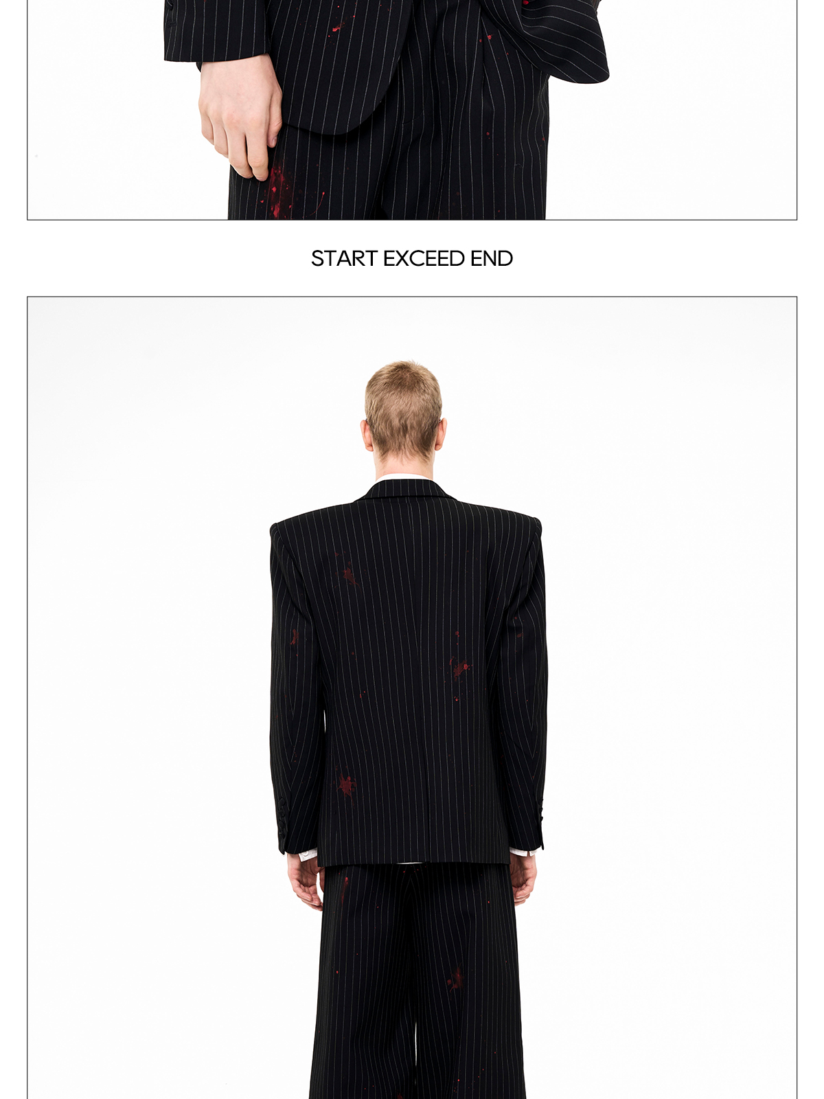 Striped Shoulder-Pad Fake Bloodstain Tailored Jacket & Trousers Setup WN21805