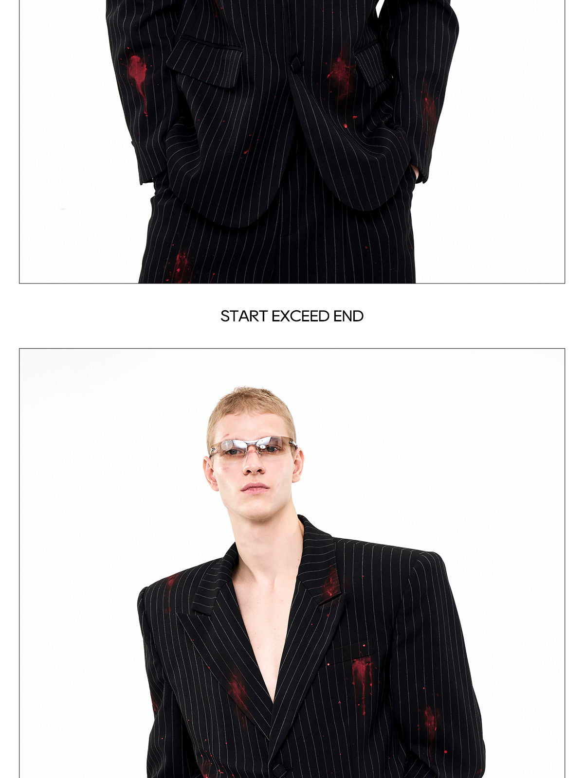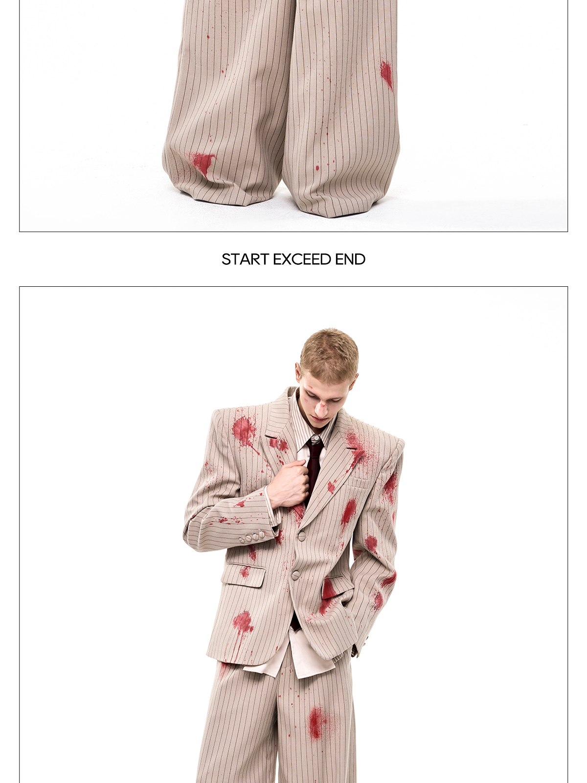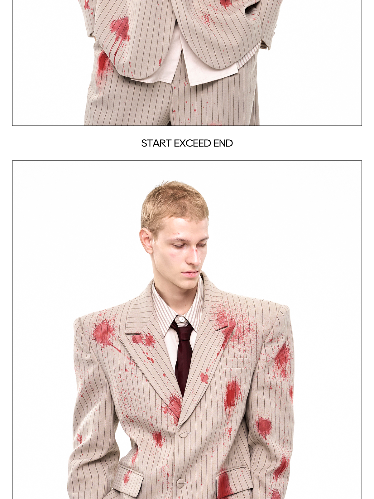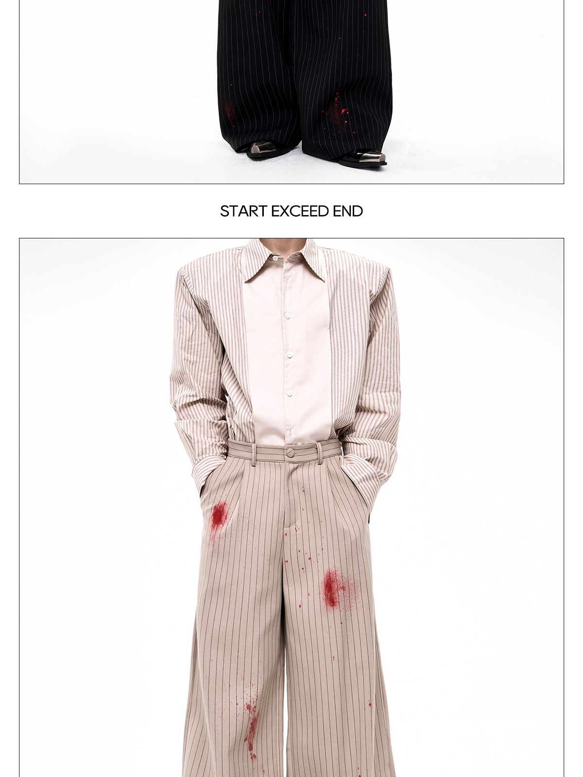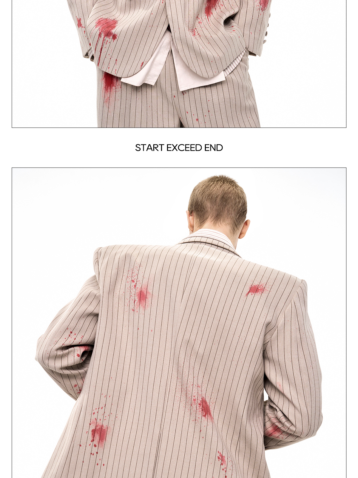 Striped Shoulder-Pad Fake Bloodstain Tailored Jacket & Trousers Setup WN21805
