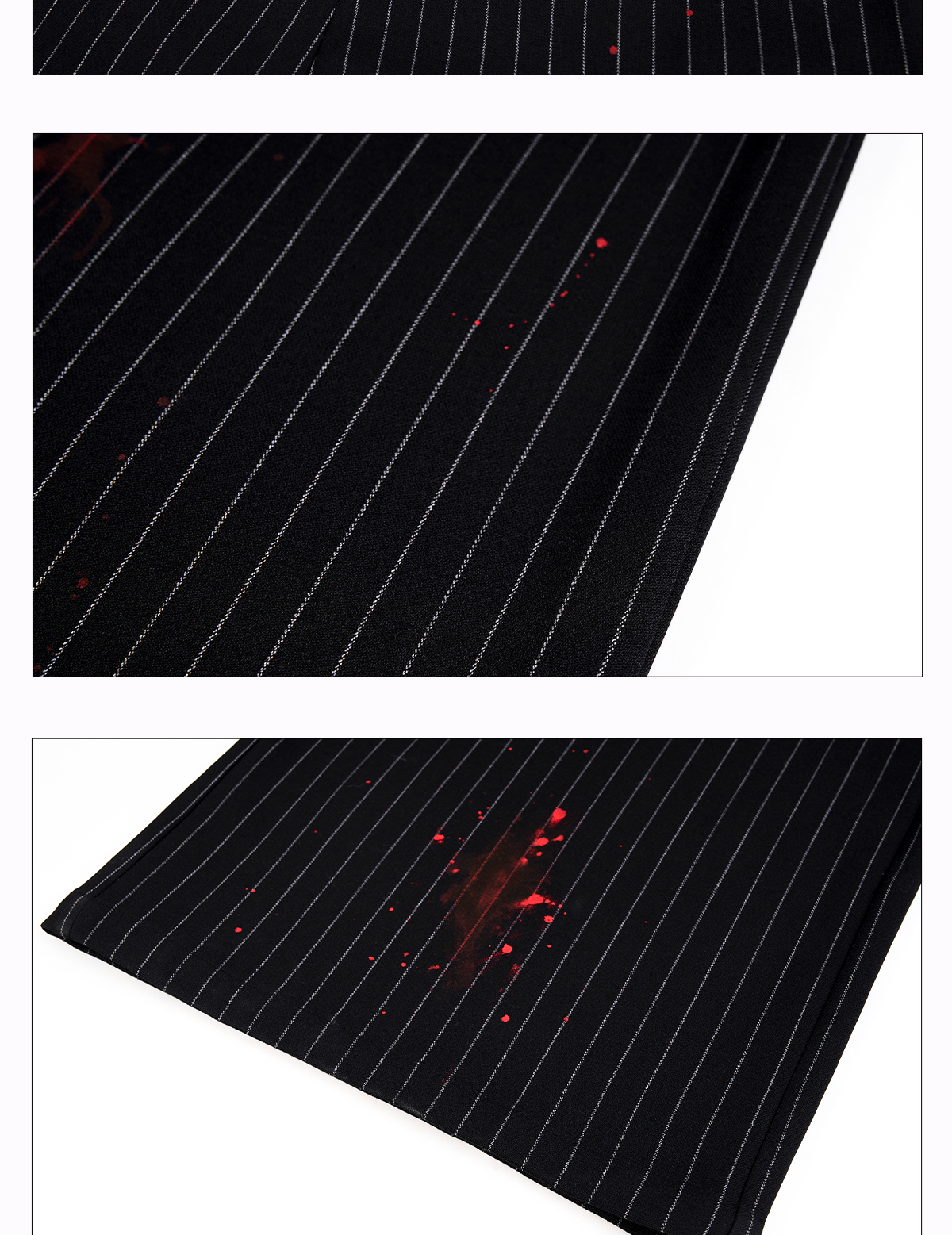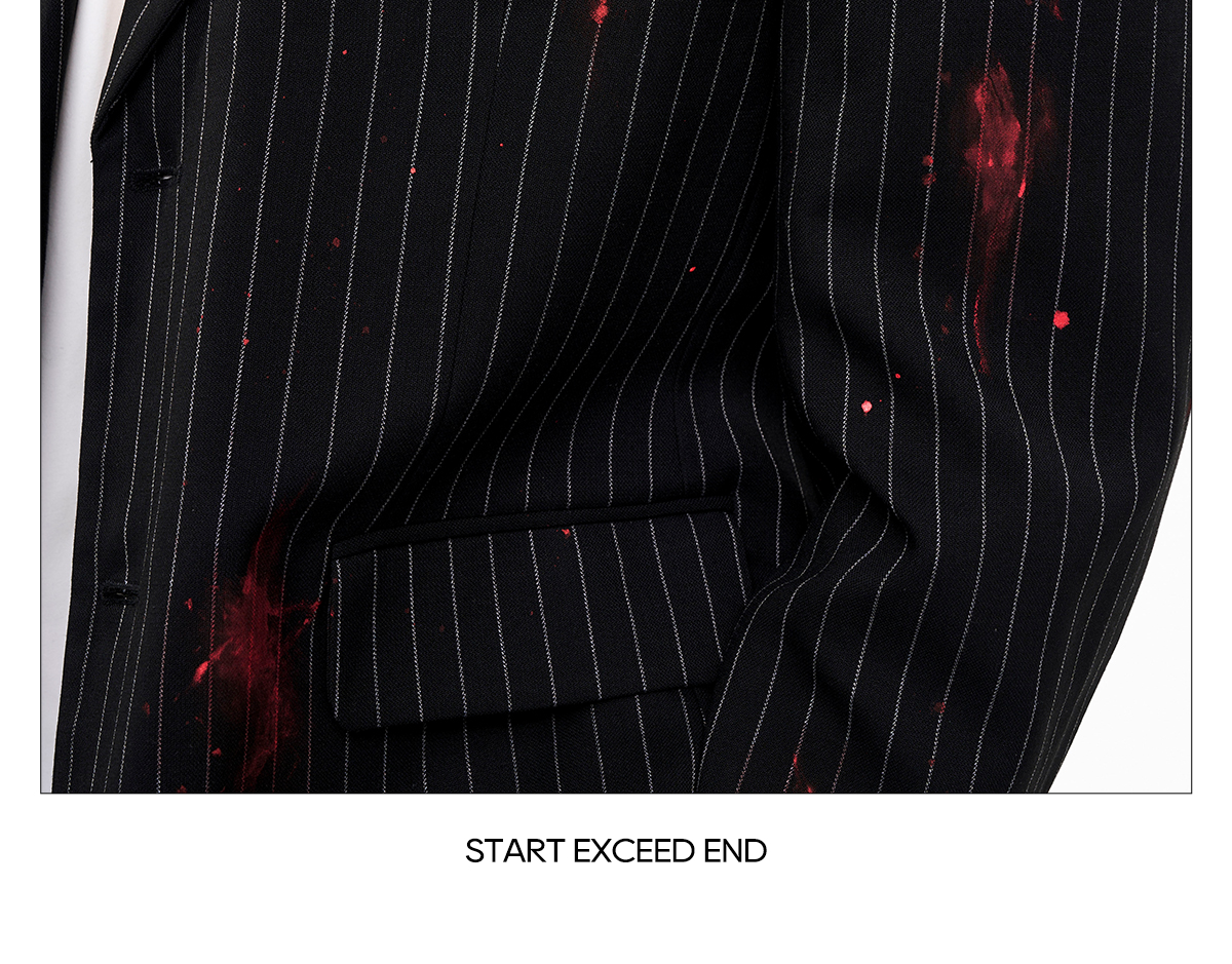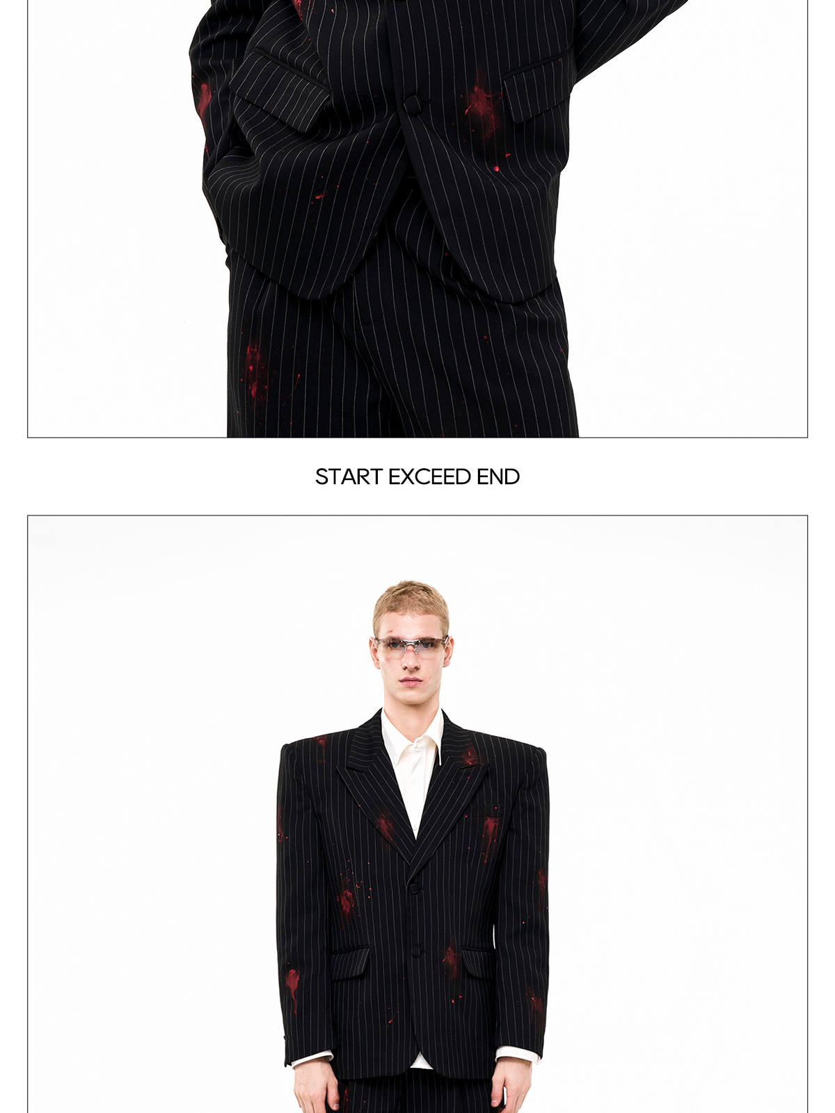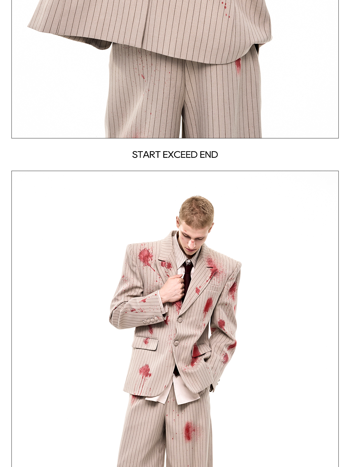 Striped Shoulder-Pad Fake Bloodstain Tailored Jacket & Trousers Setup WN21805