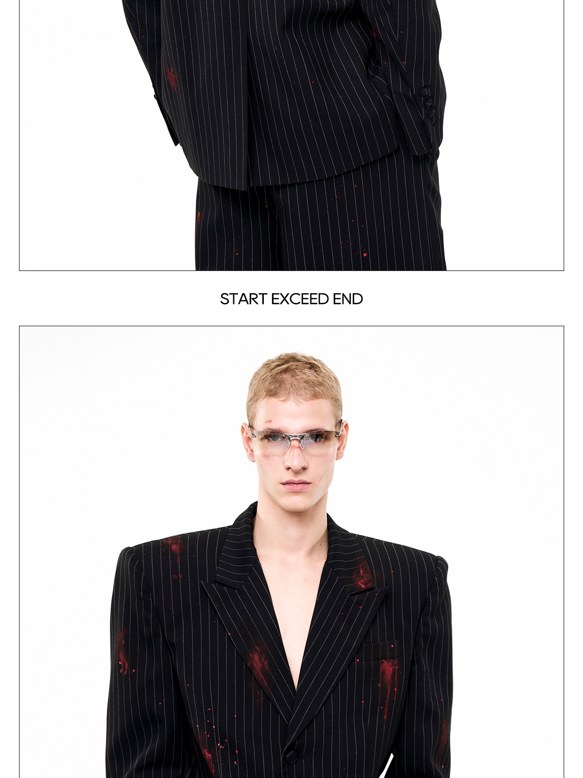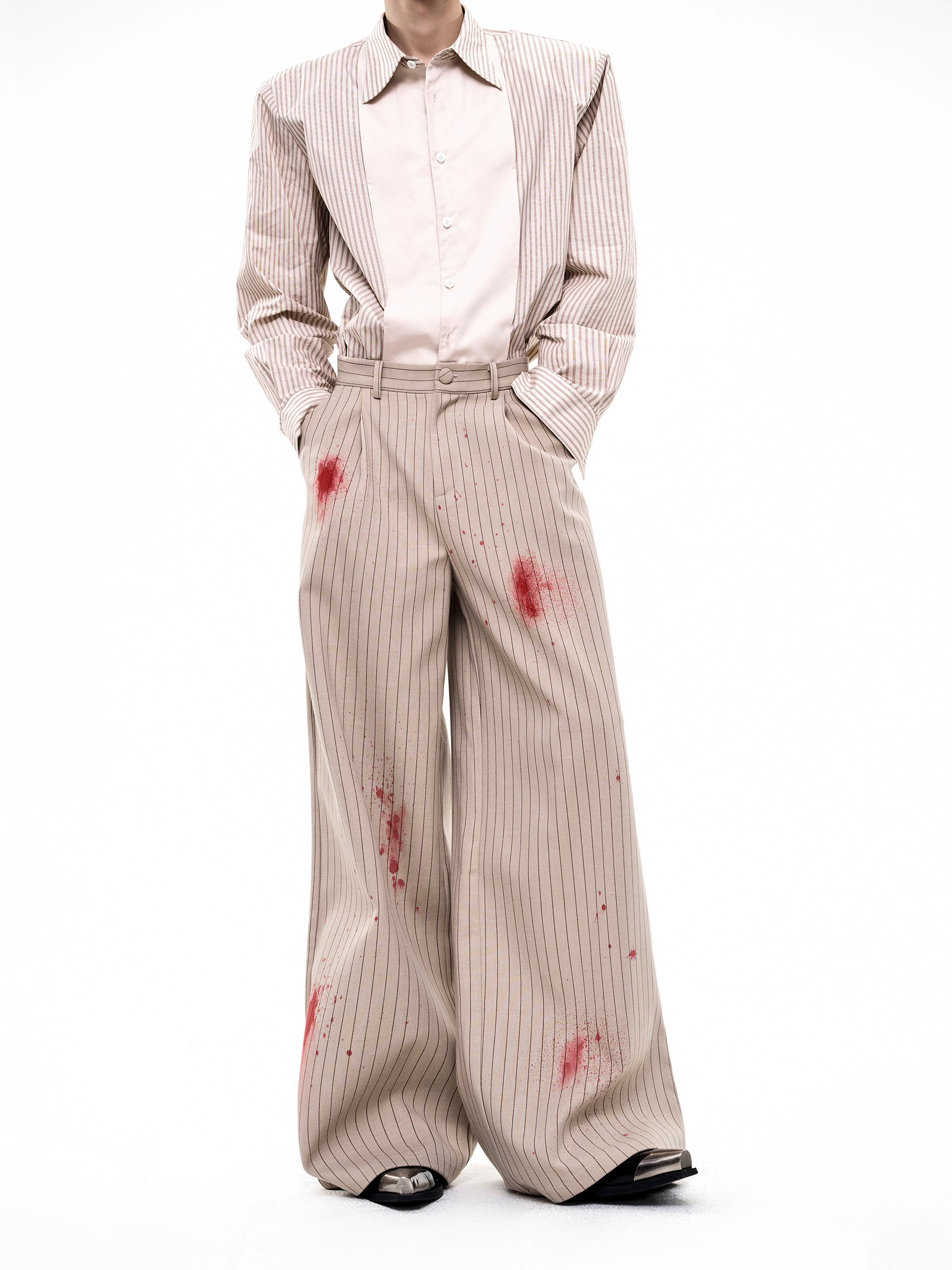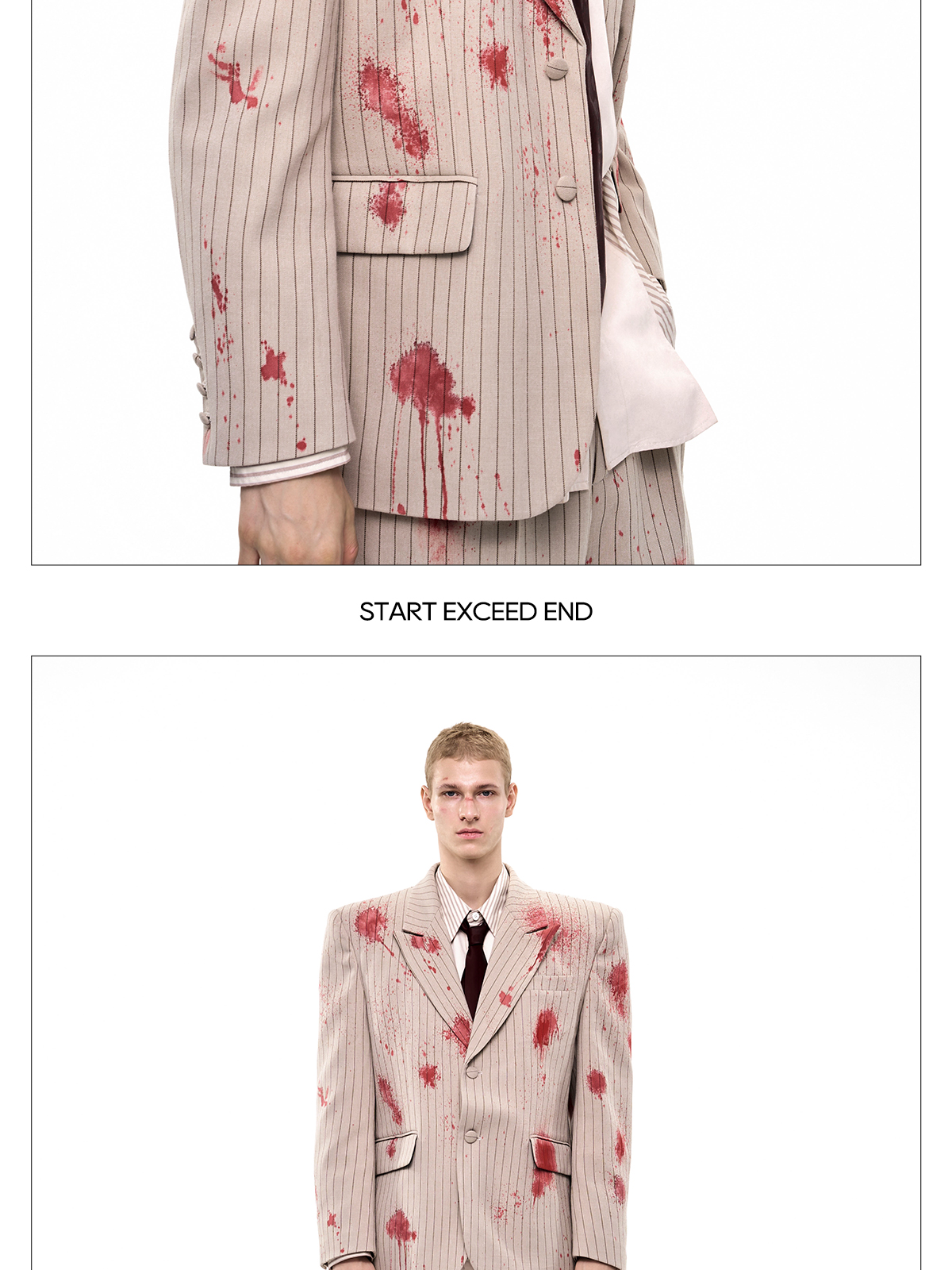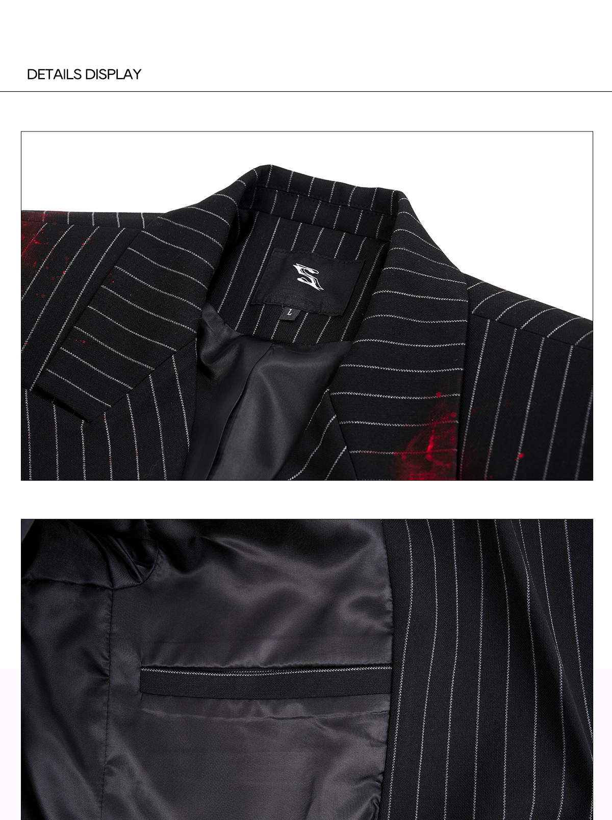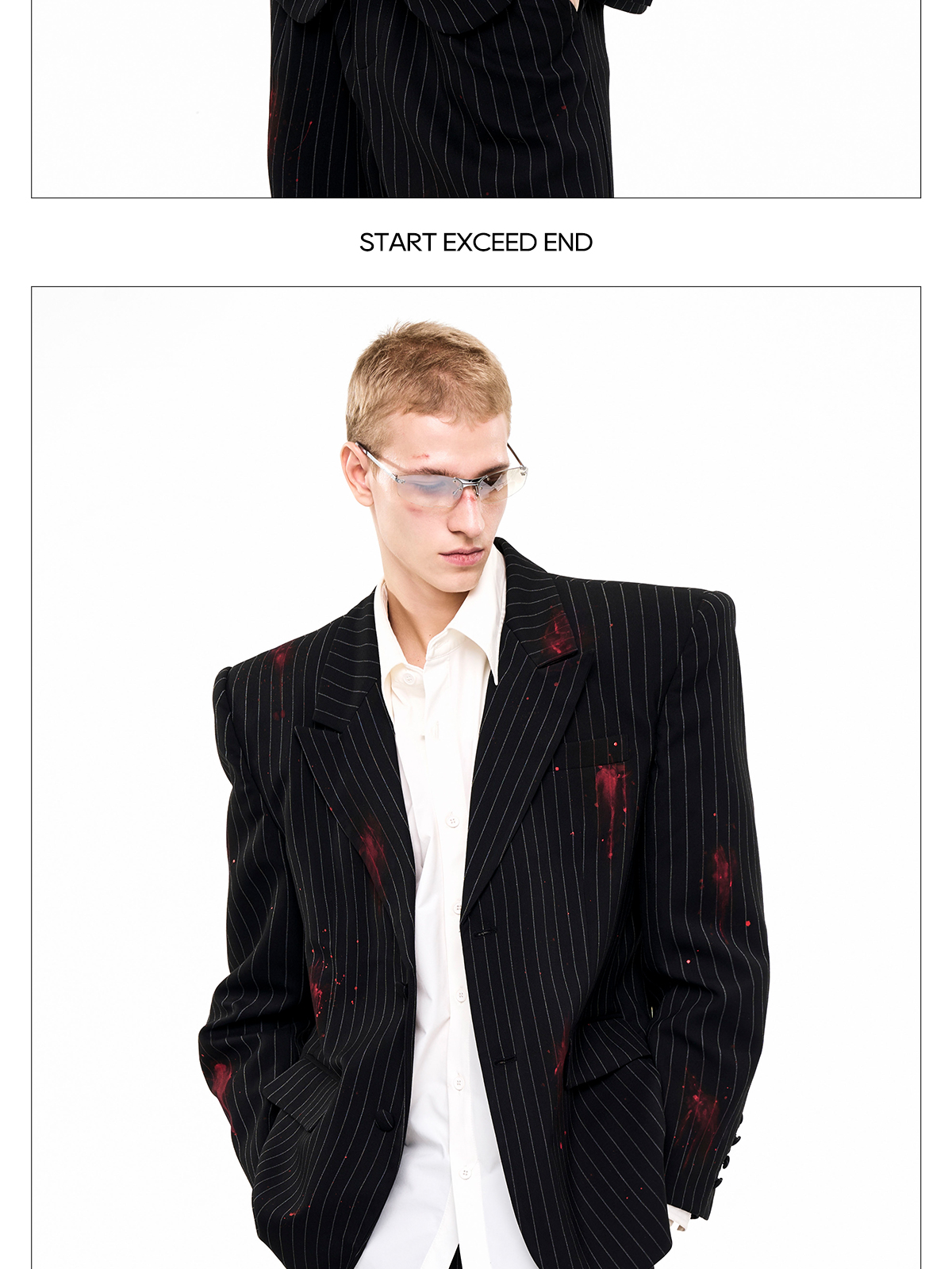 Striped Shoulder-Pad Fake Bloodstain Tailored Jacket & Trousers Setup WN21805