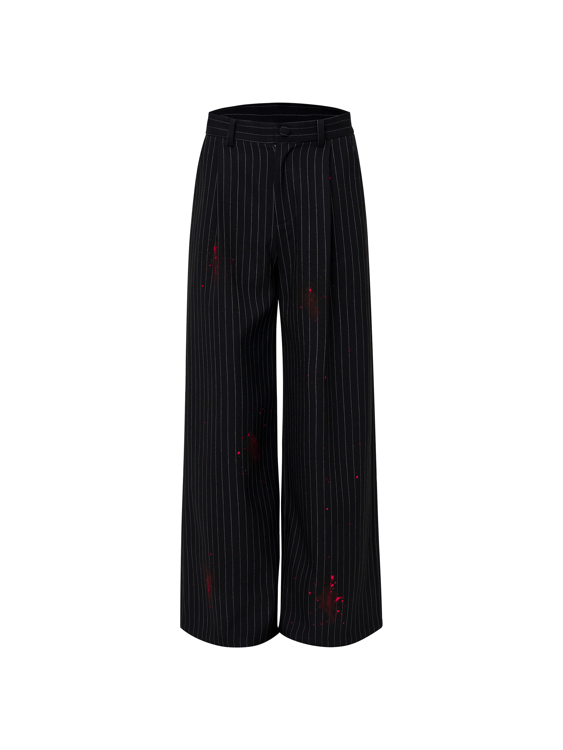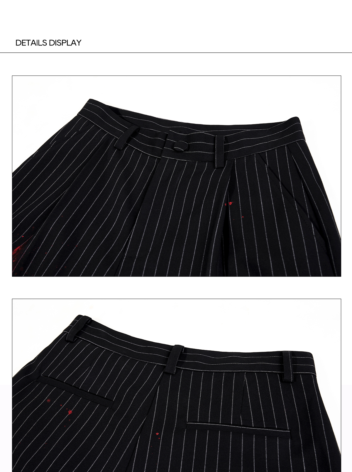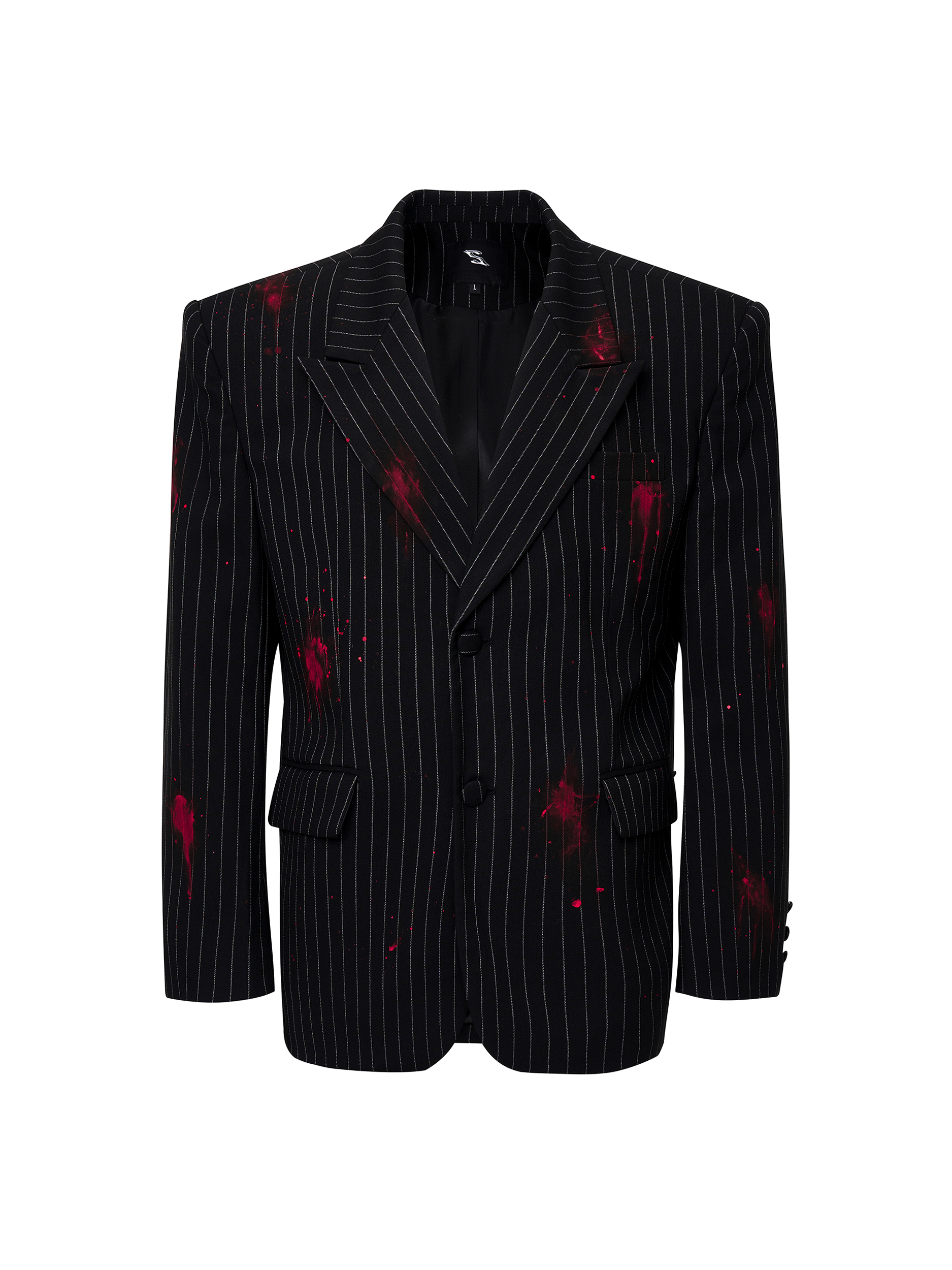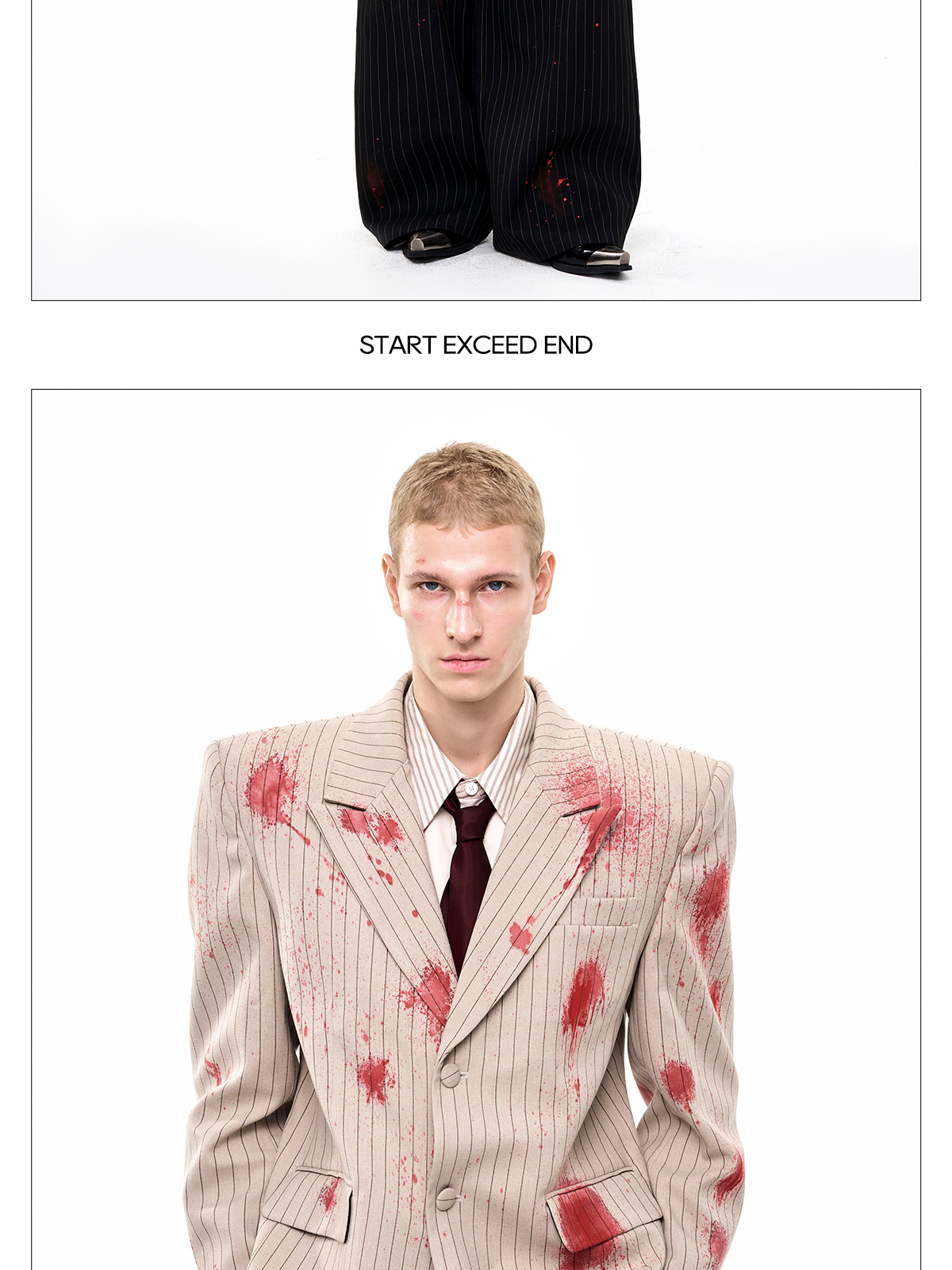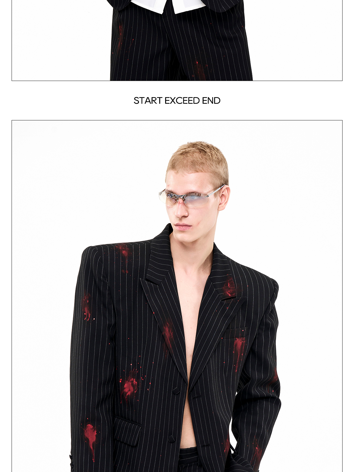 Striped Shoulder-Pad Fake Bloodstain Tailored Jacket & Trousers Setup WN21805
