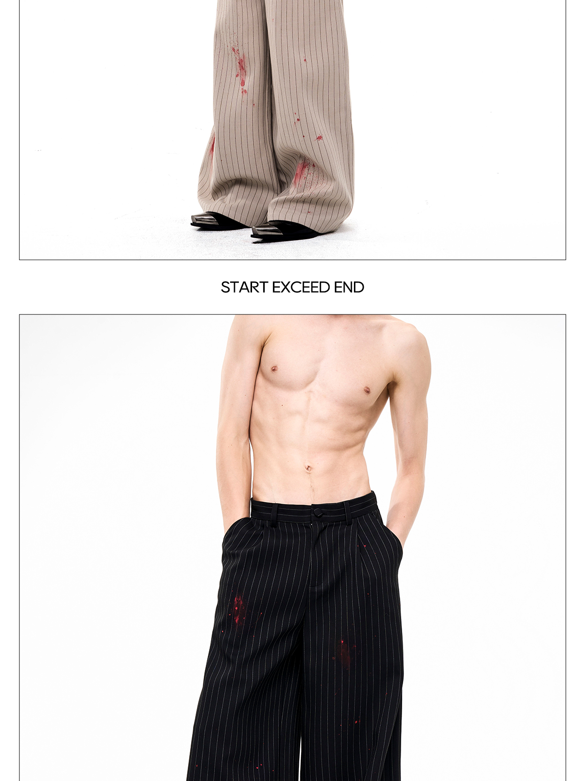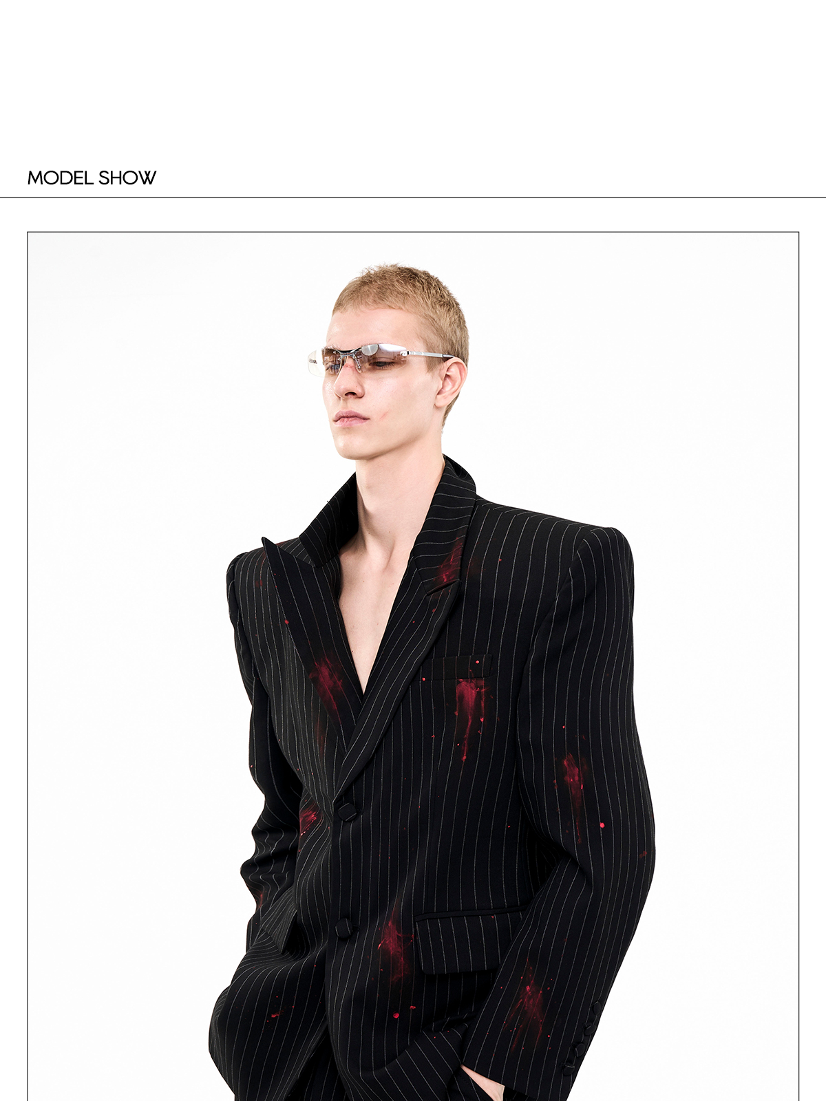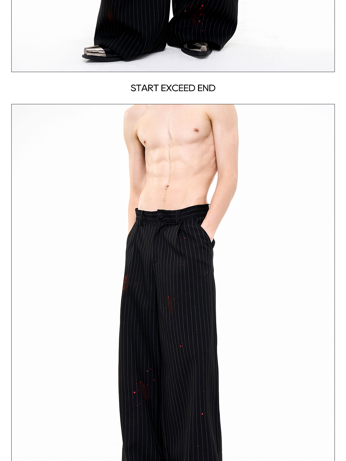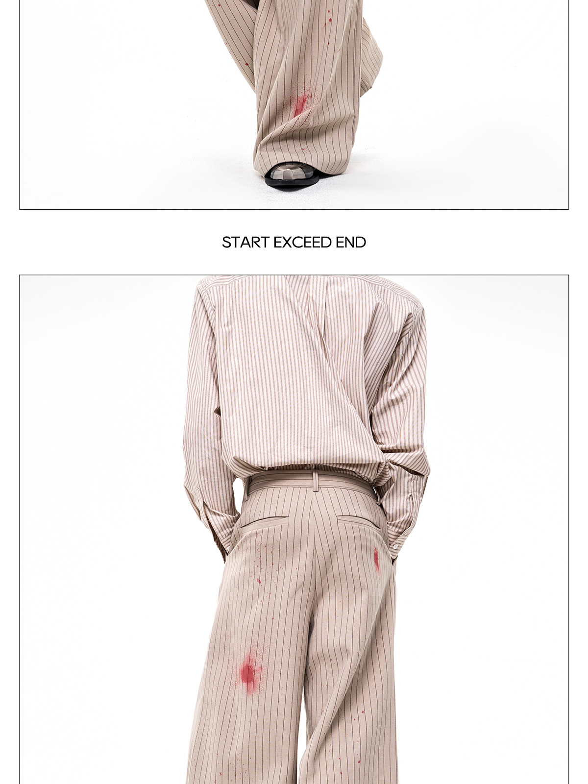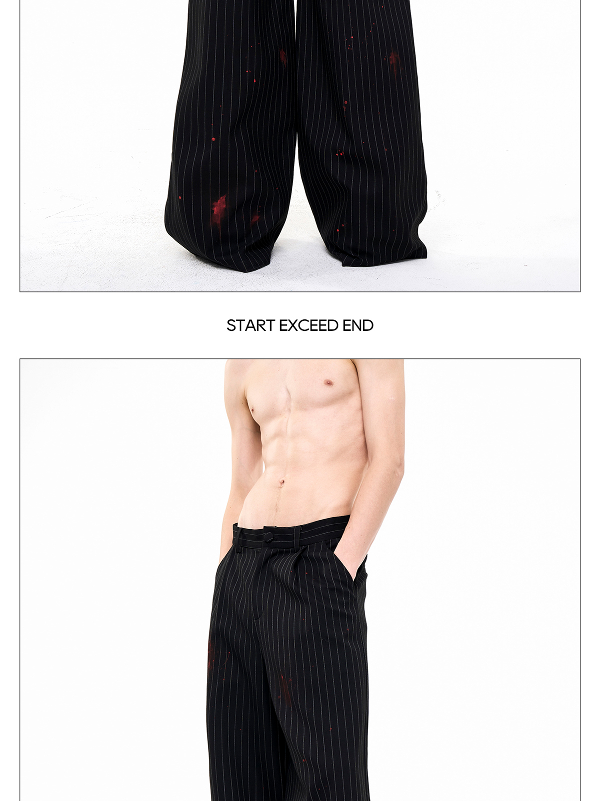 Striped Shoulder-Pad Fake Bloodstain Tailored Jacket & Trousers Setup WN21805