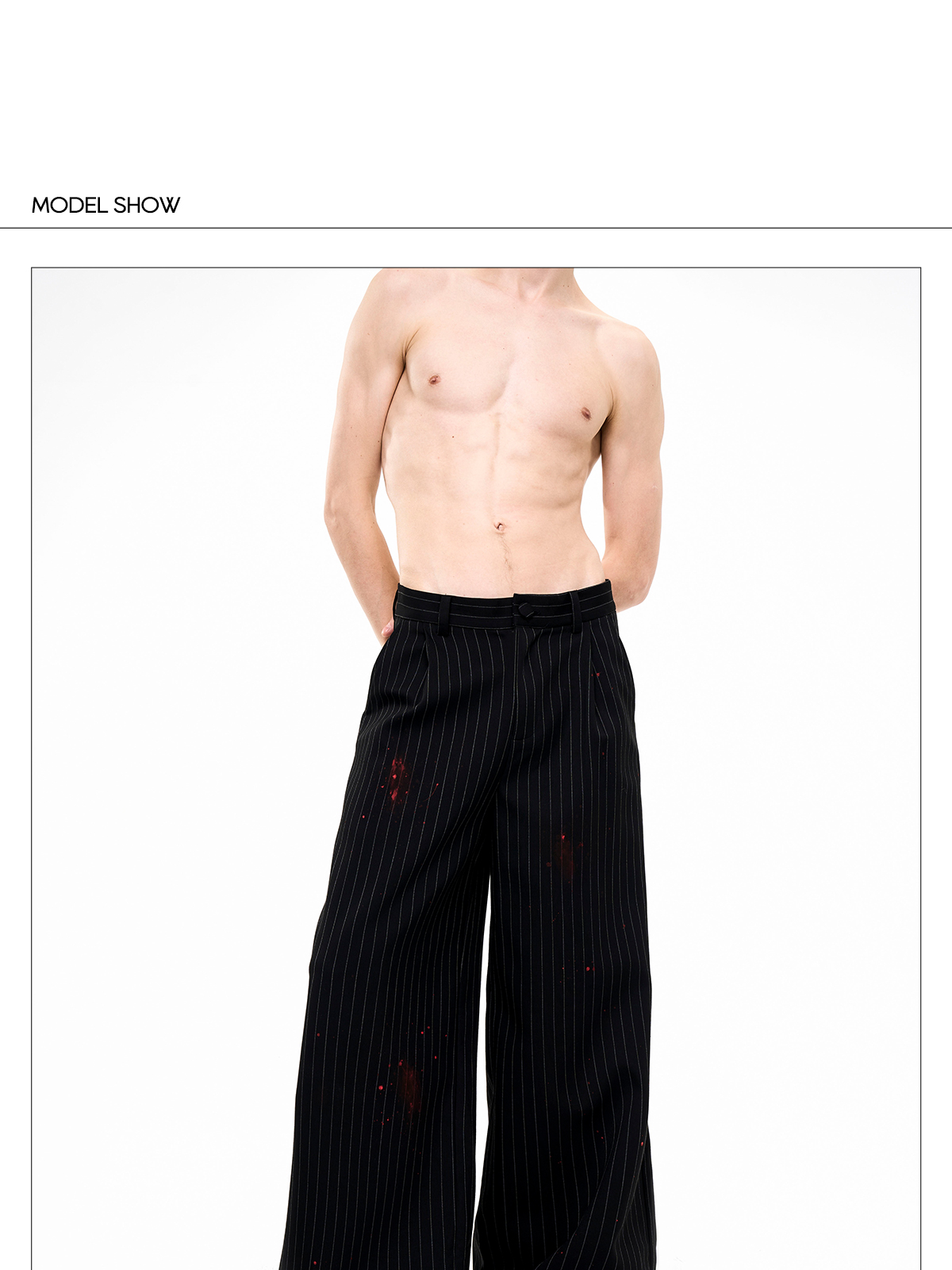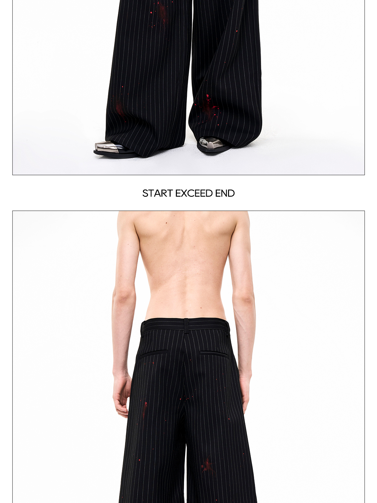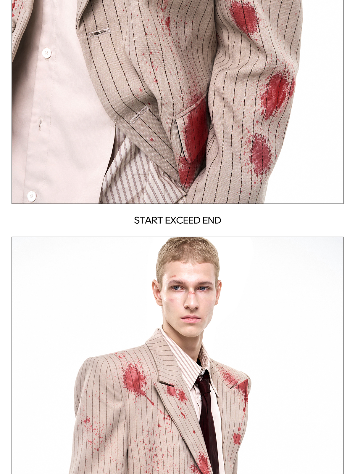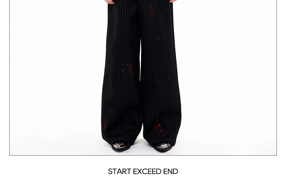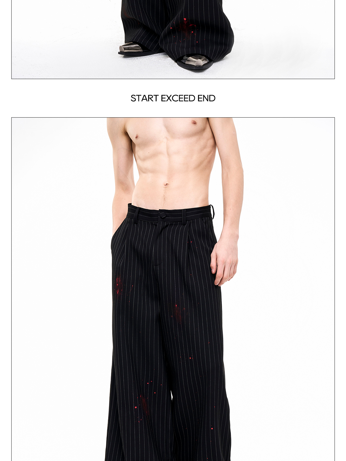 Striped Shoulder-Pad Fake Bloodstain Tailored Jacket & Trousers Setup WN21805