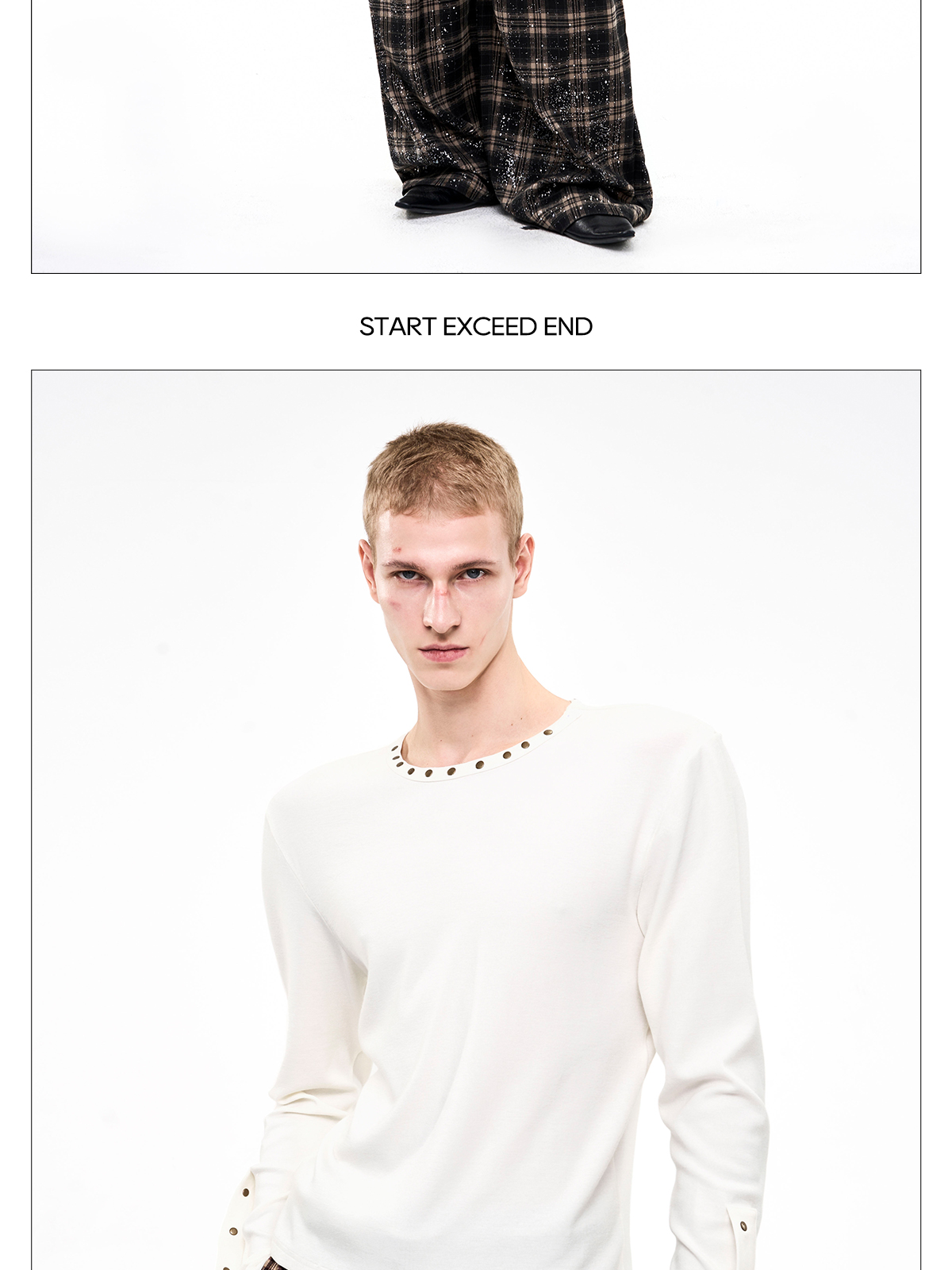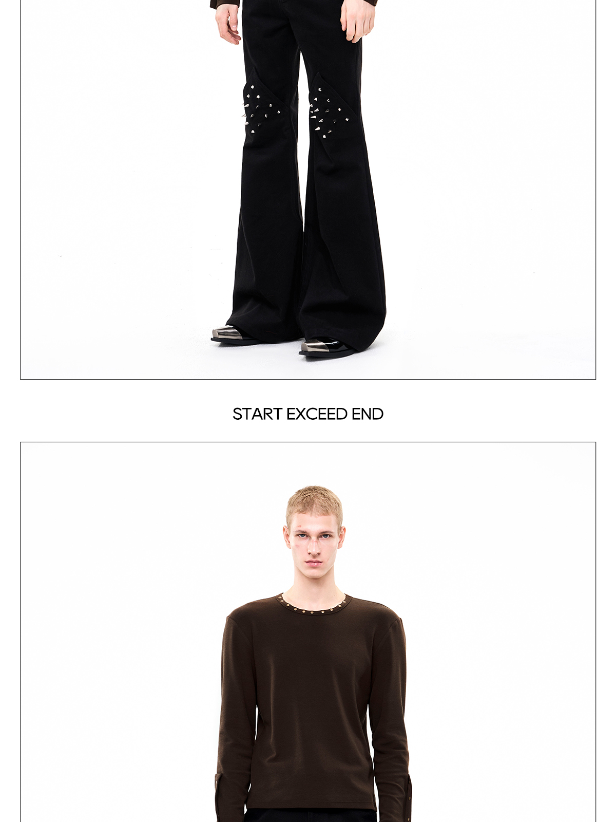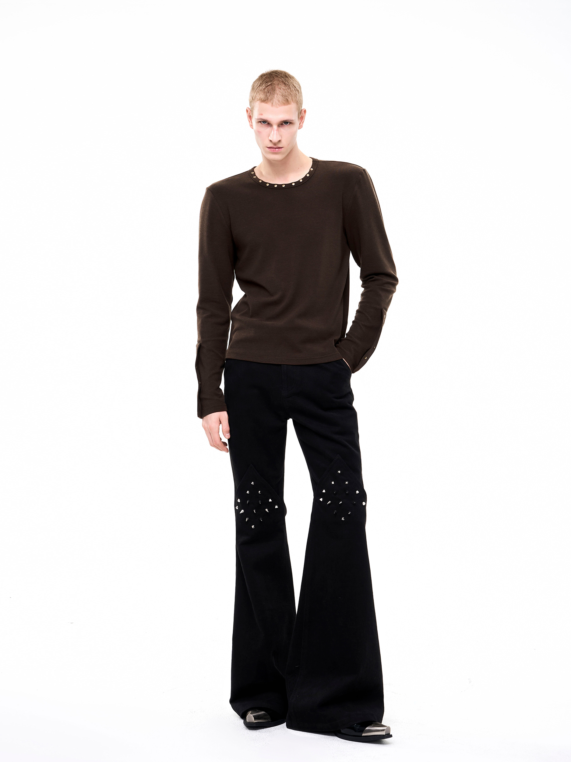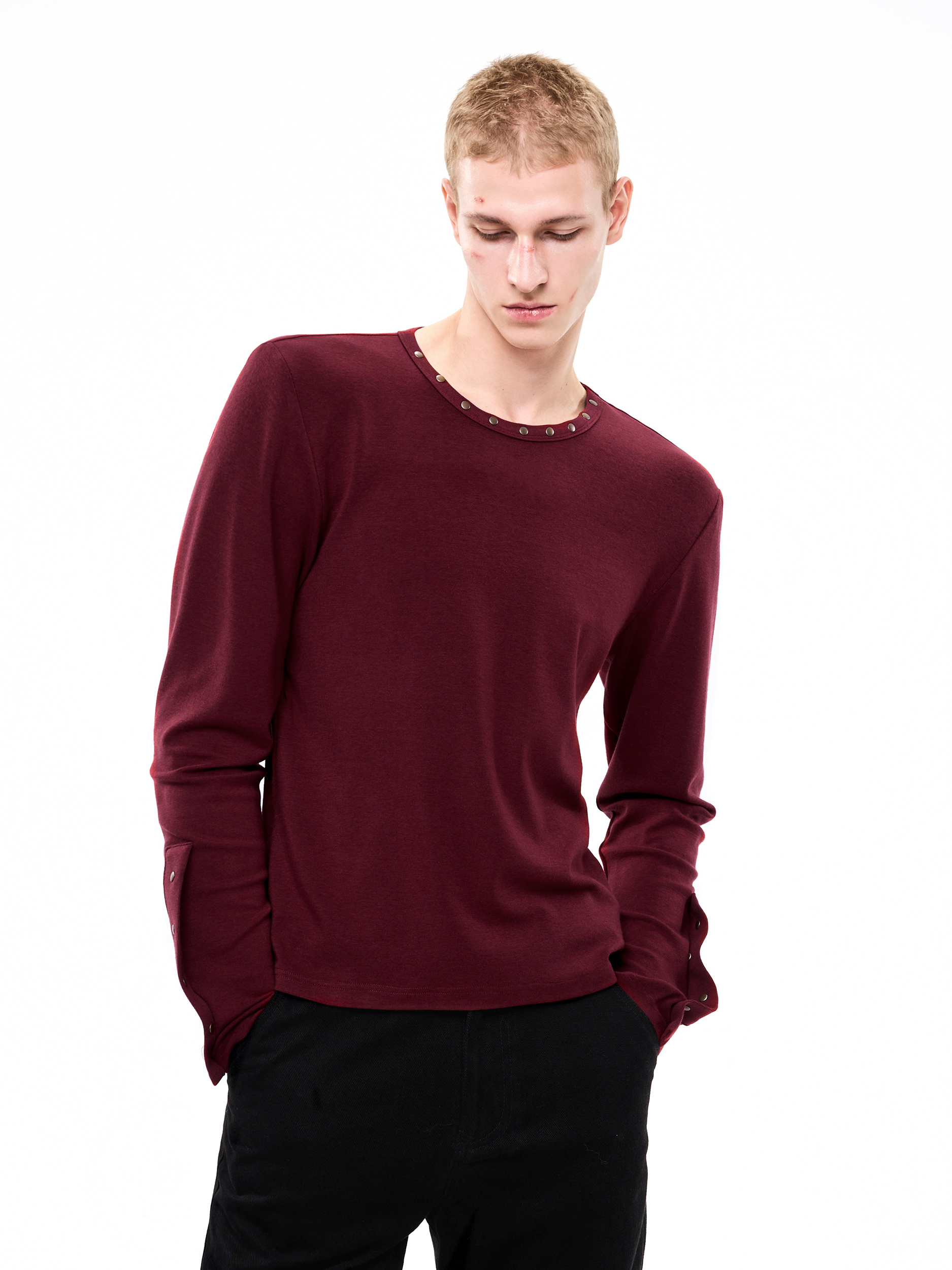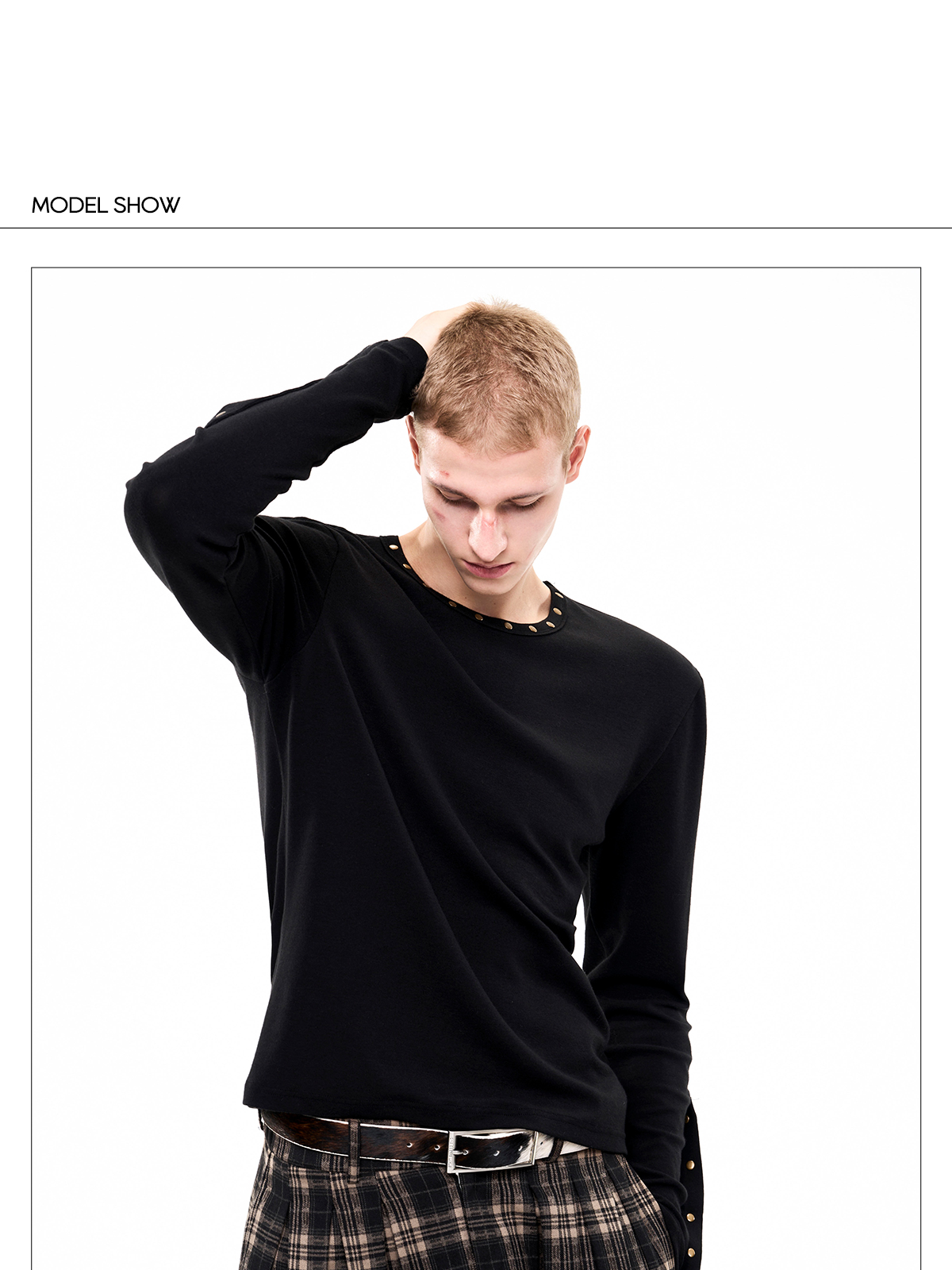 Metal Stud Design Long Sleeve T-Shirt WN21816