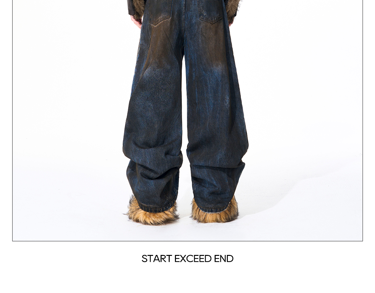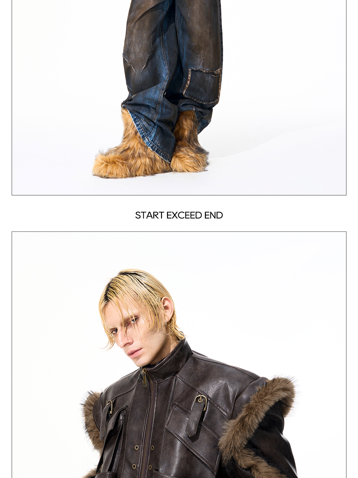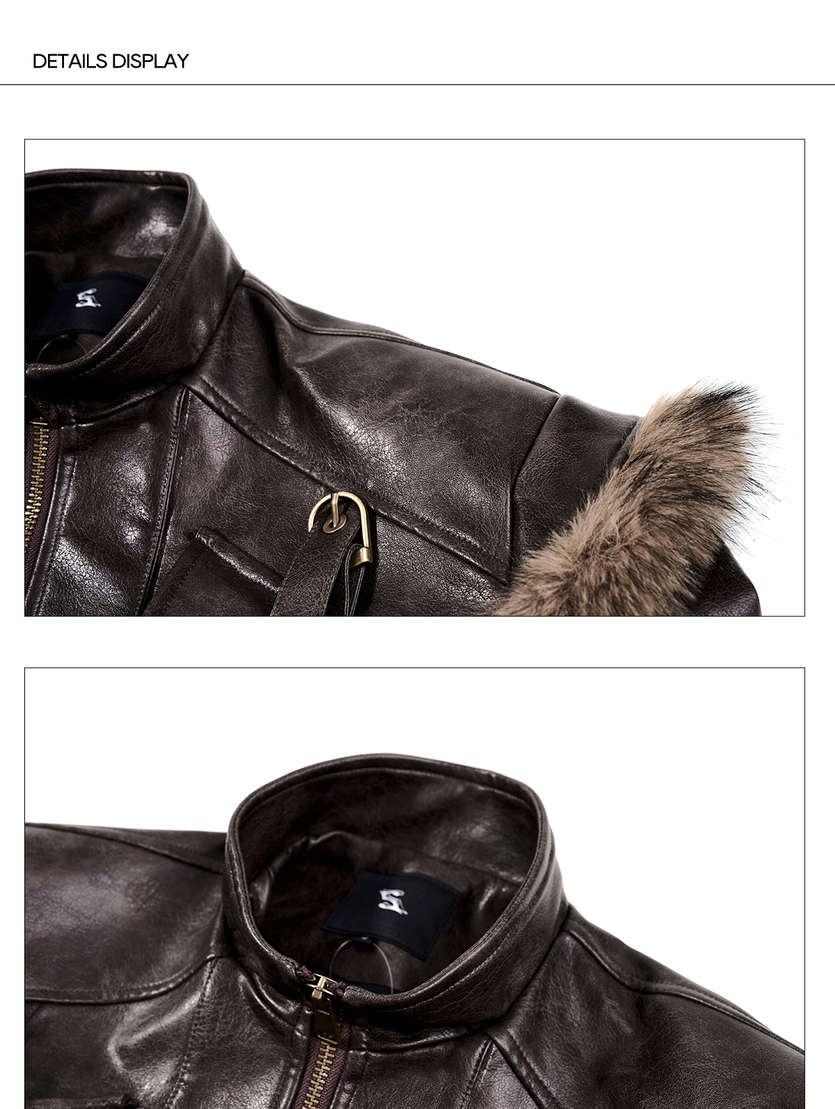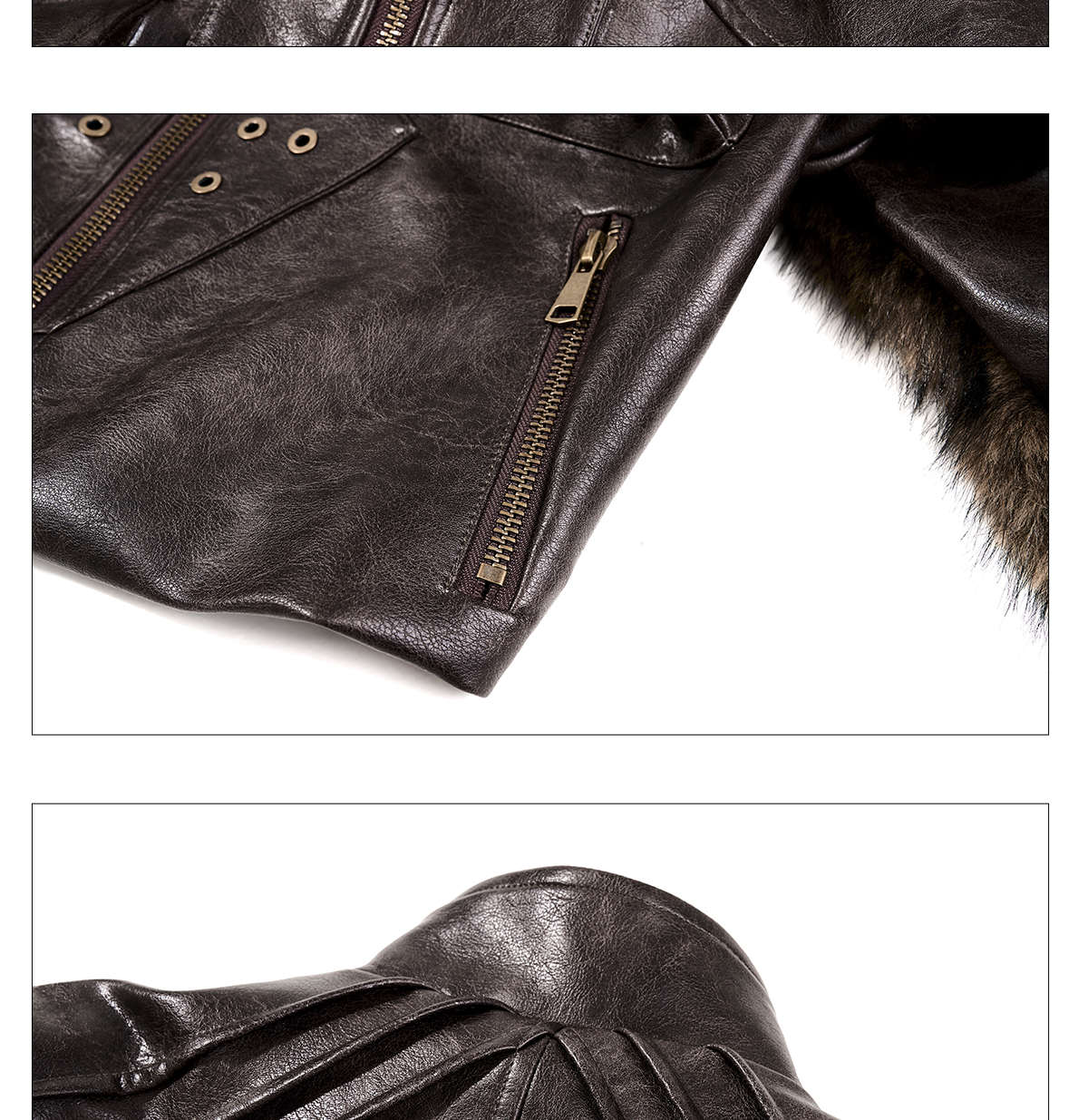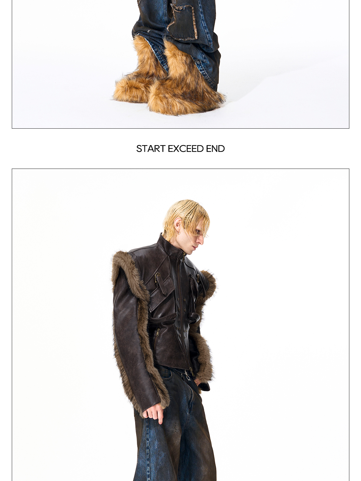 Washed Zipper Fake Fur Patchwork PU Leather Short Jacket WN21825