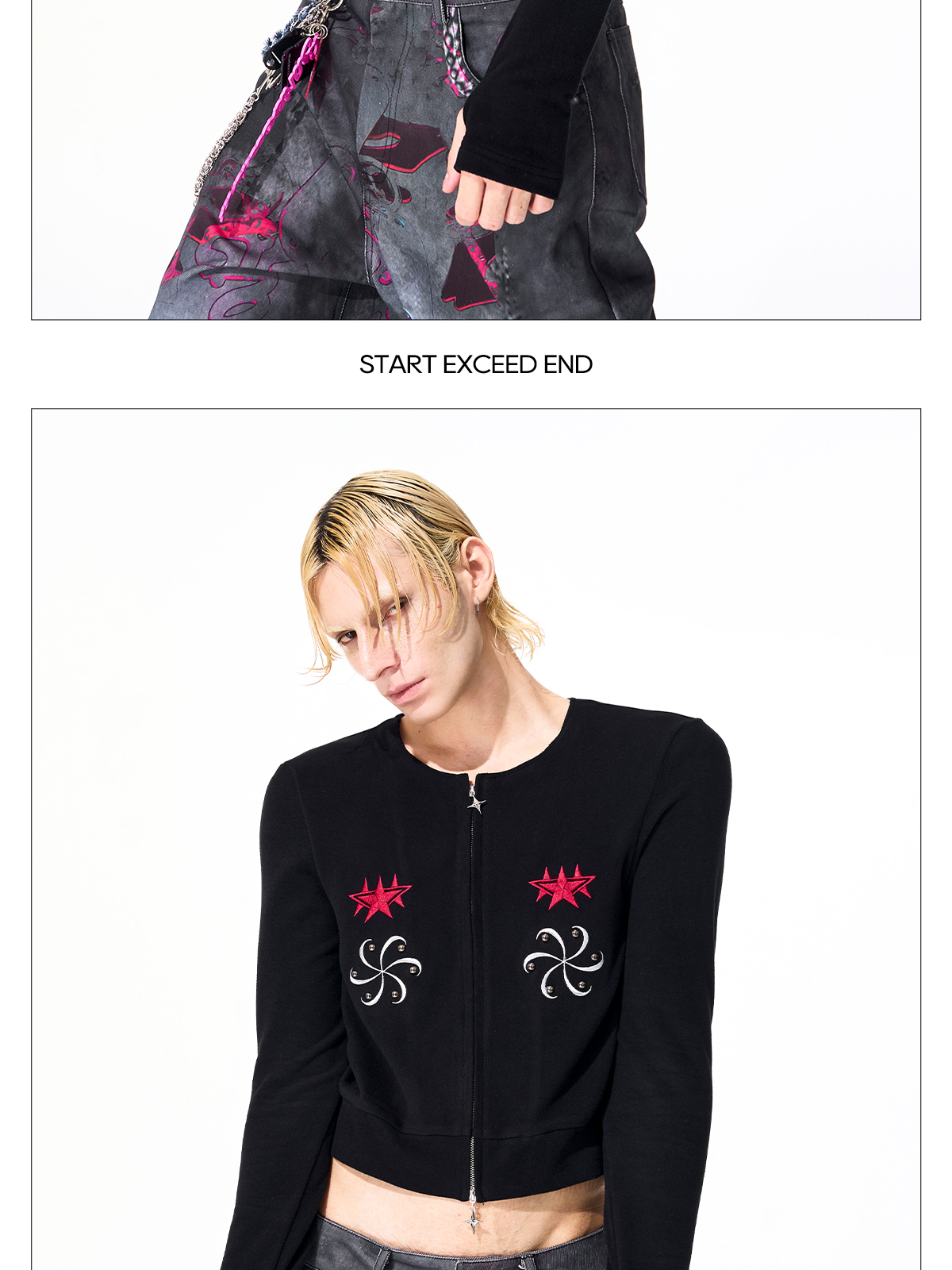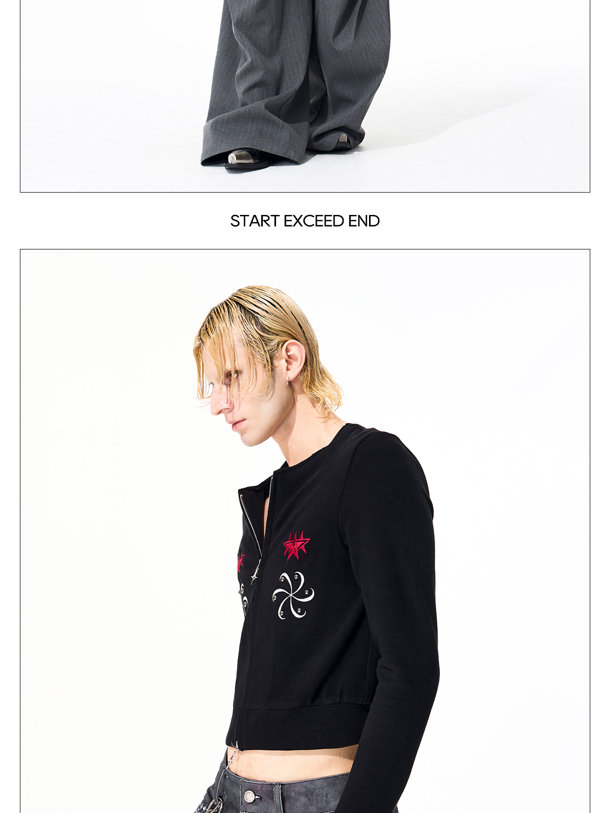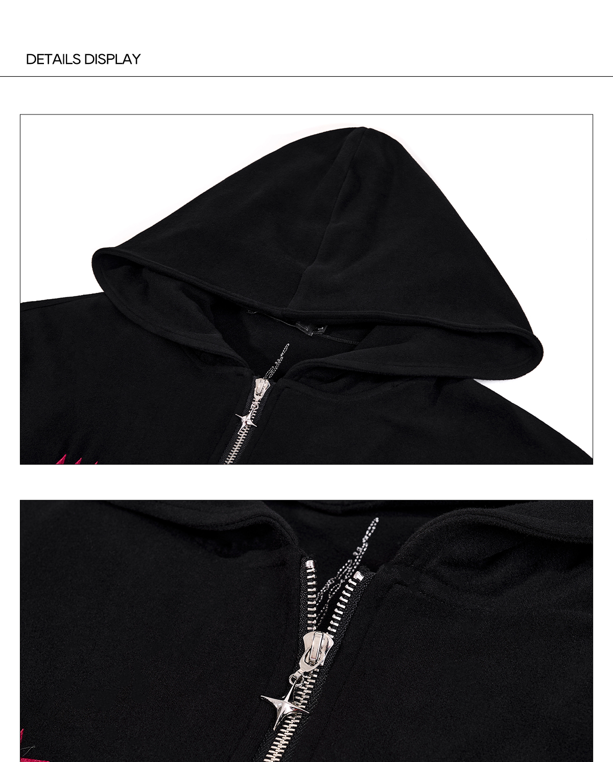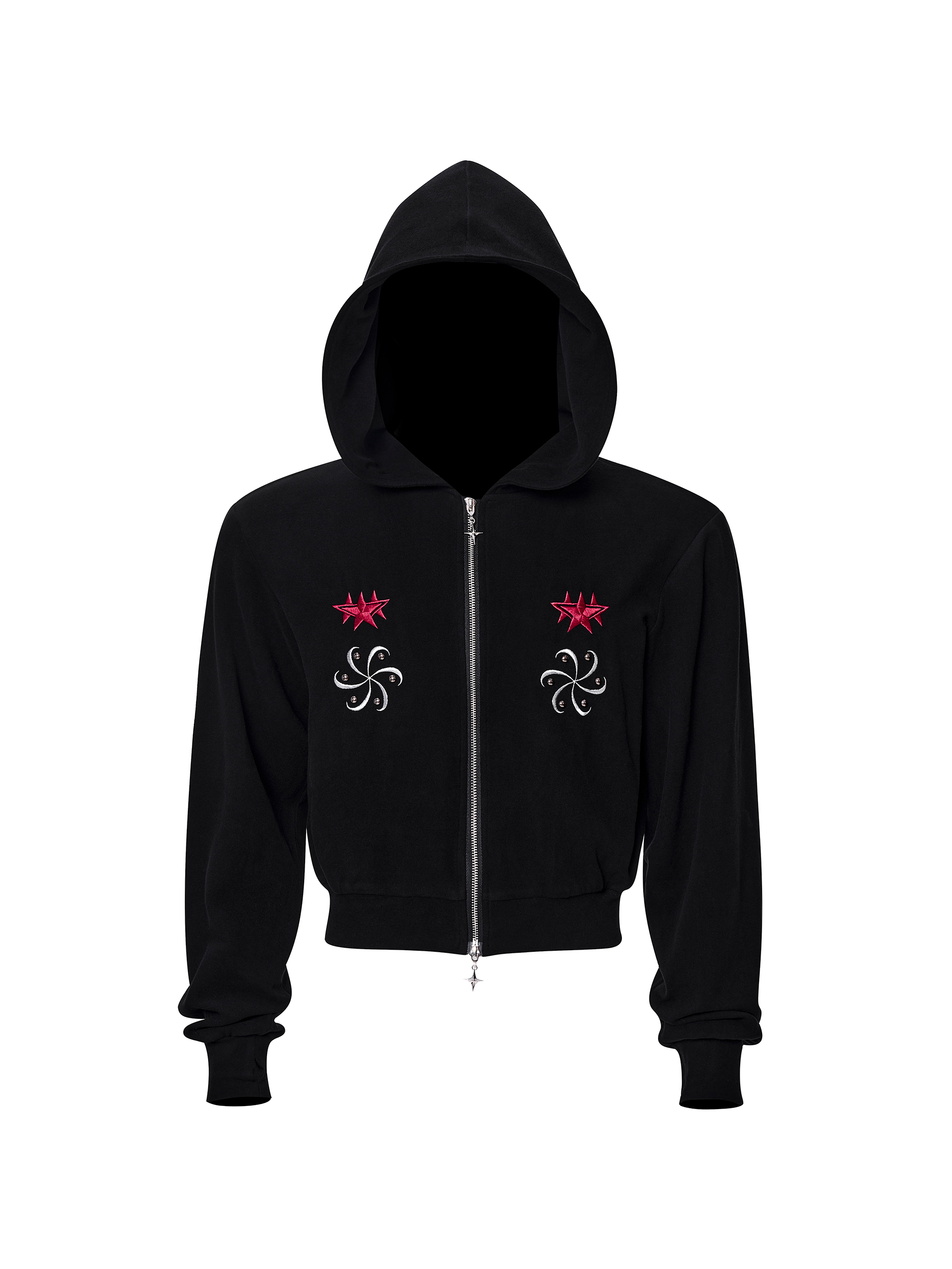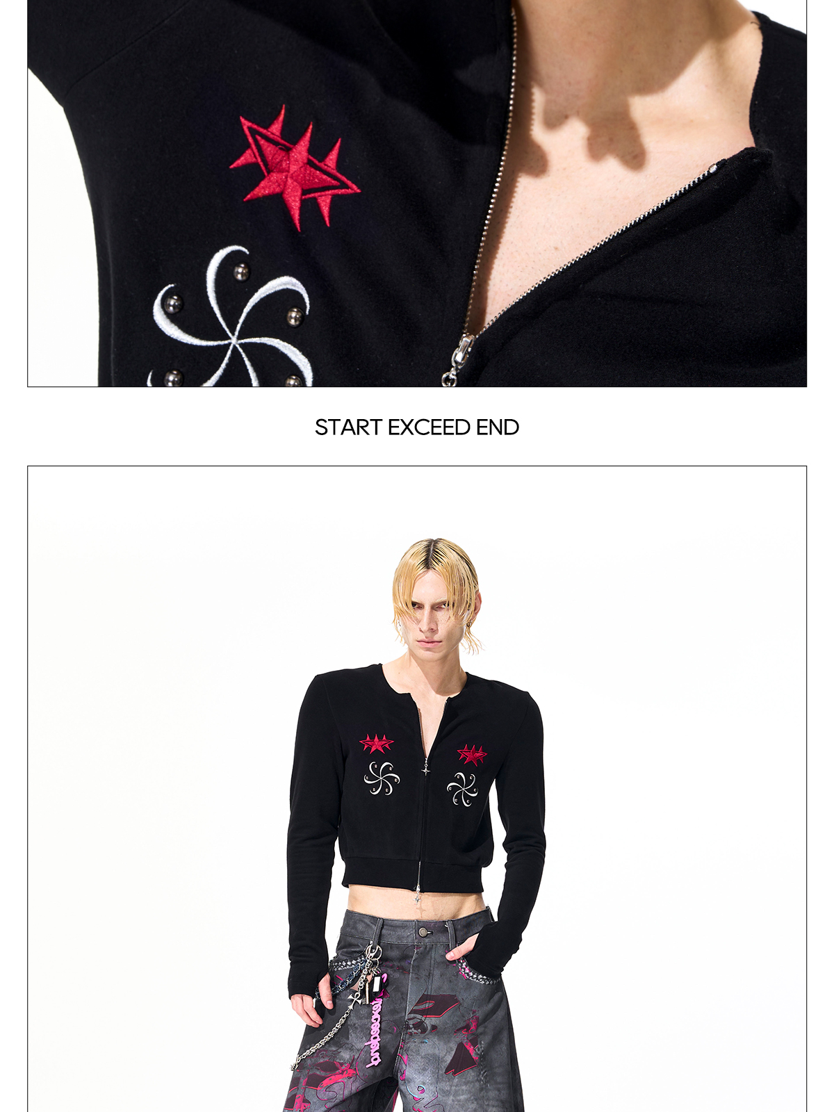 Warm Velour Hand Embroidery Short Zipper Hoodie & Cardigan WN21831