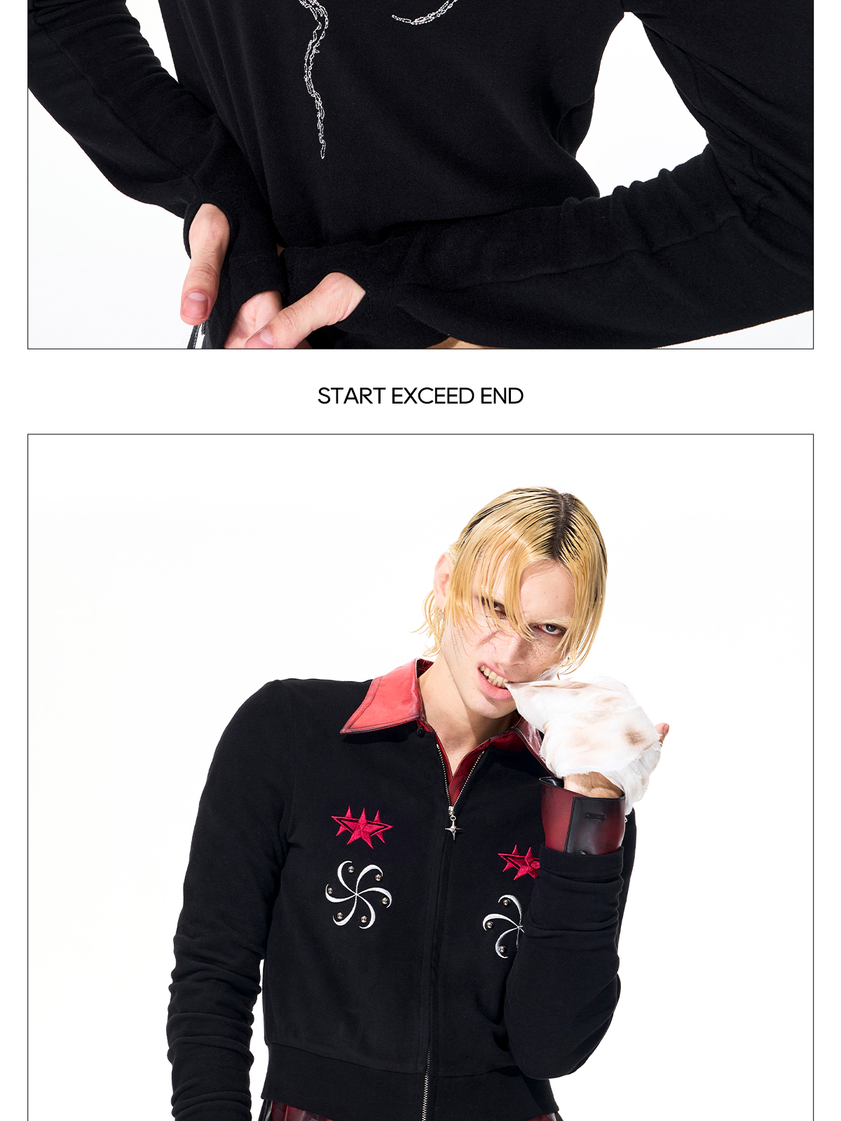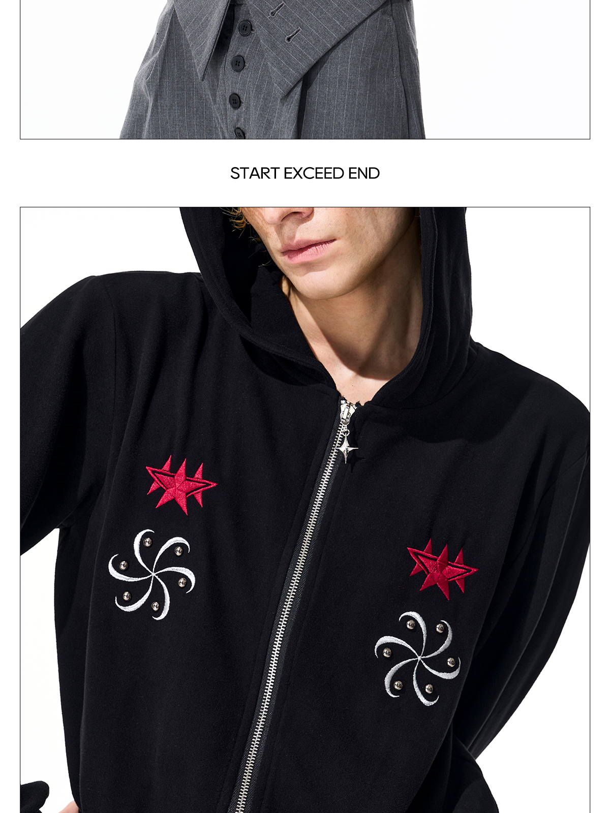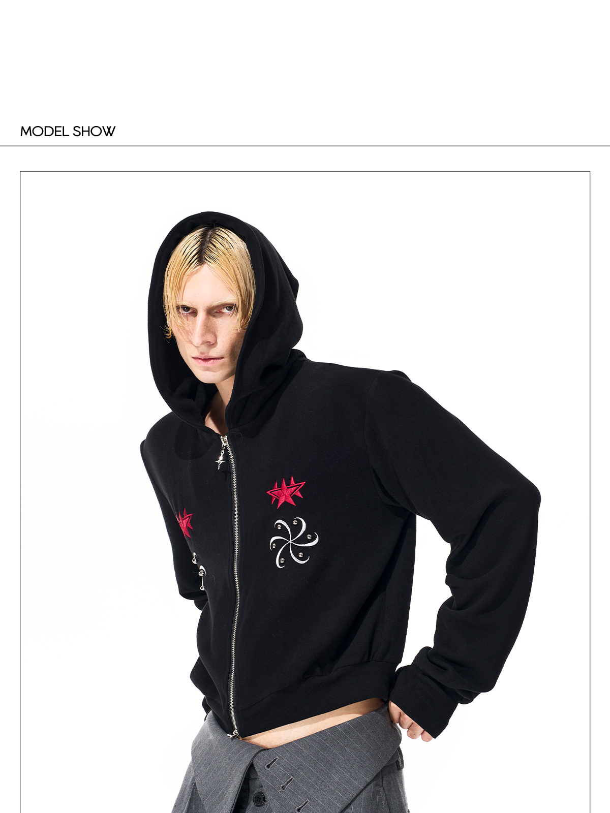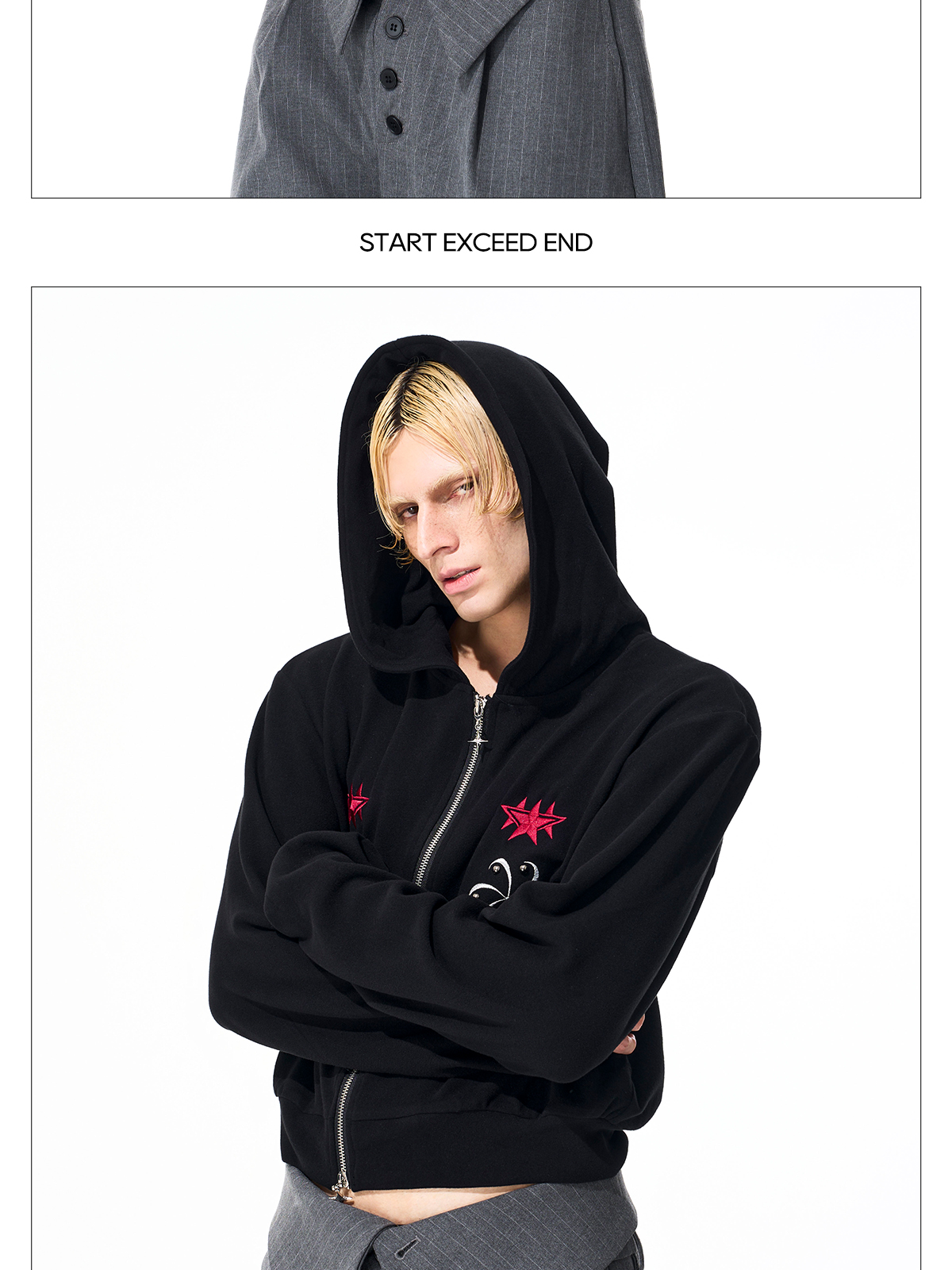 Warm Velour Hand Embroidery Short Zipper Hoodie & Cardigan WN21831