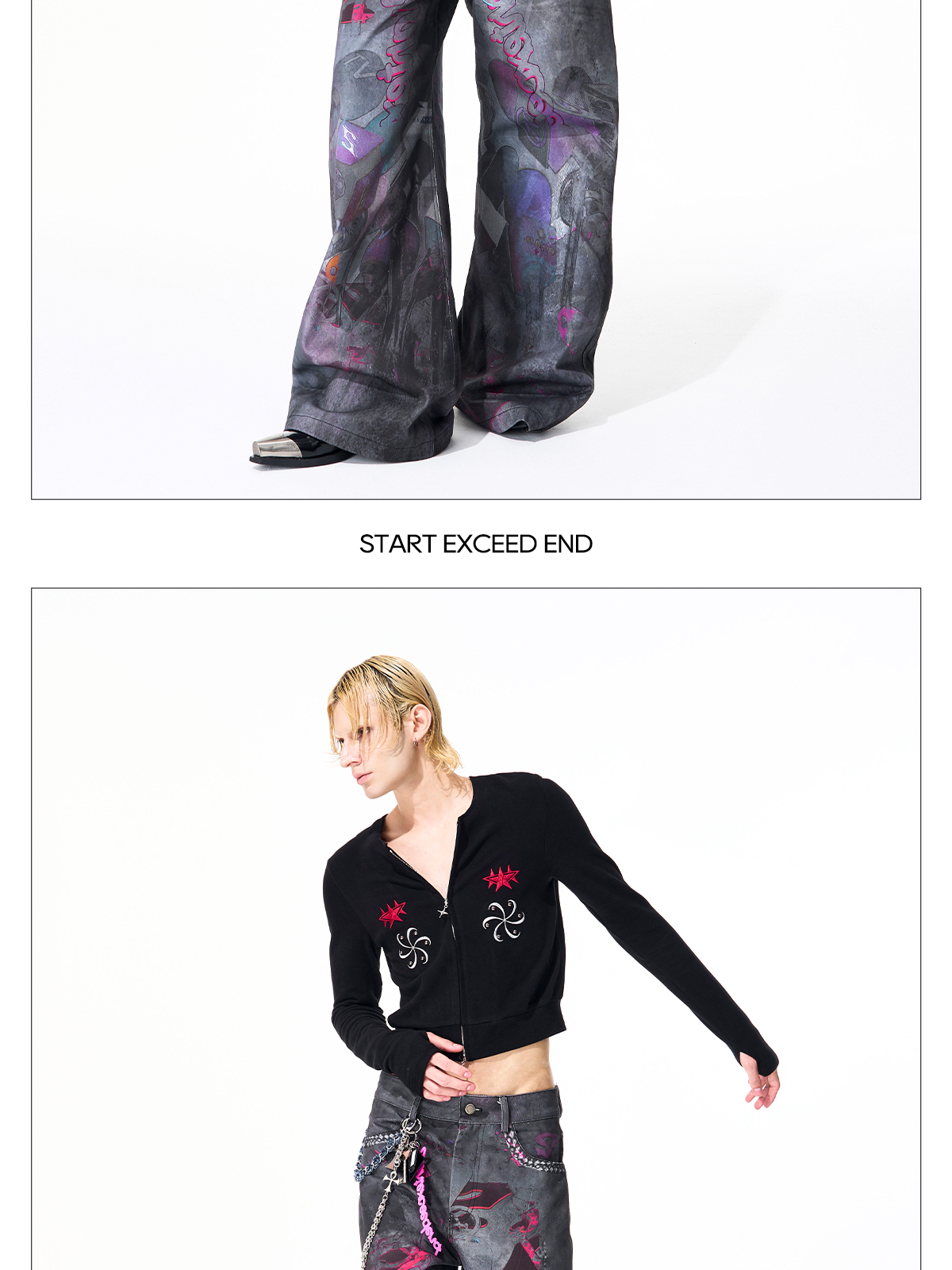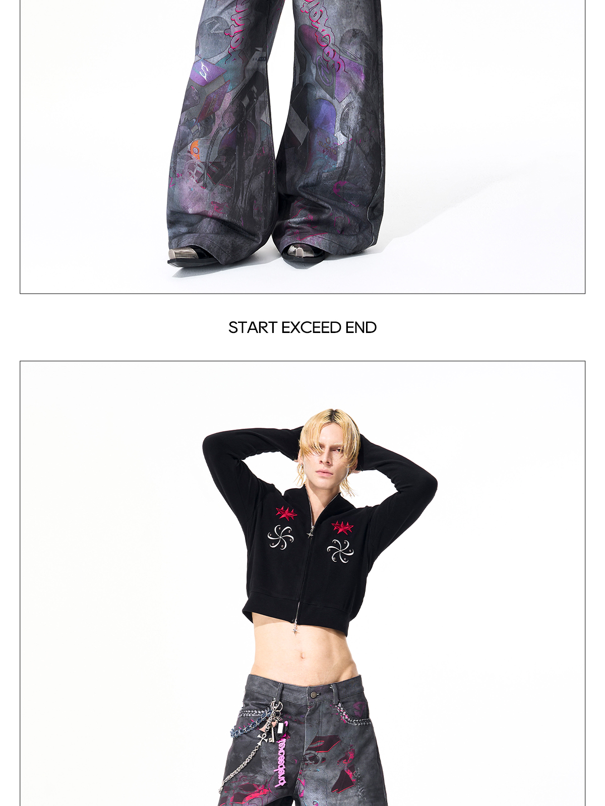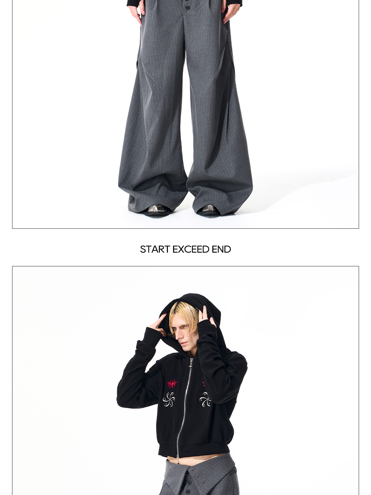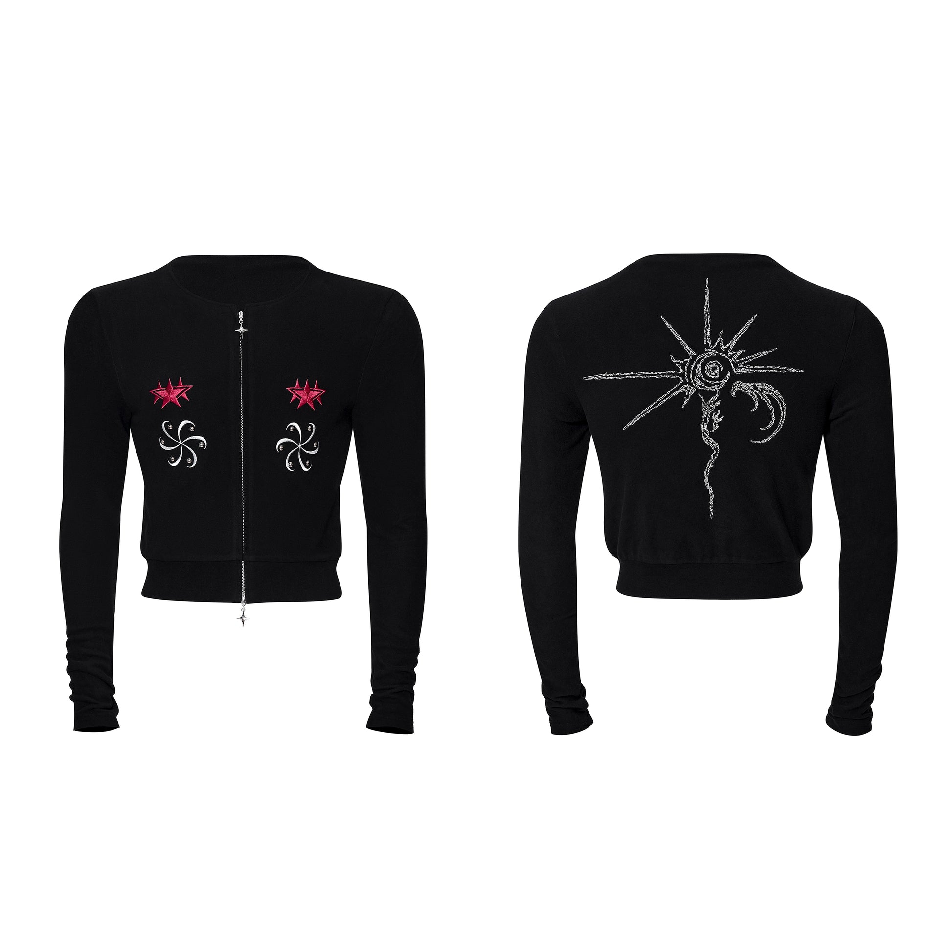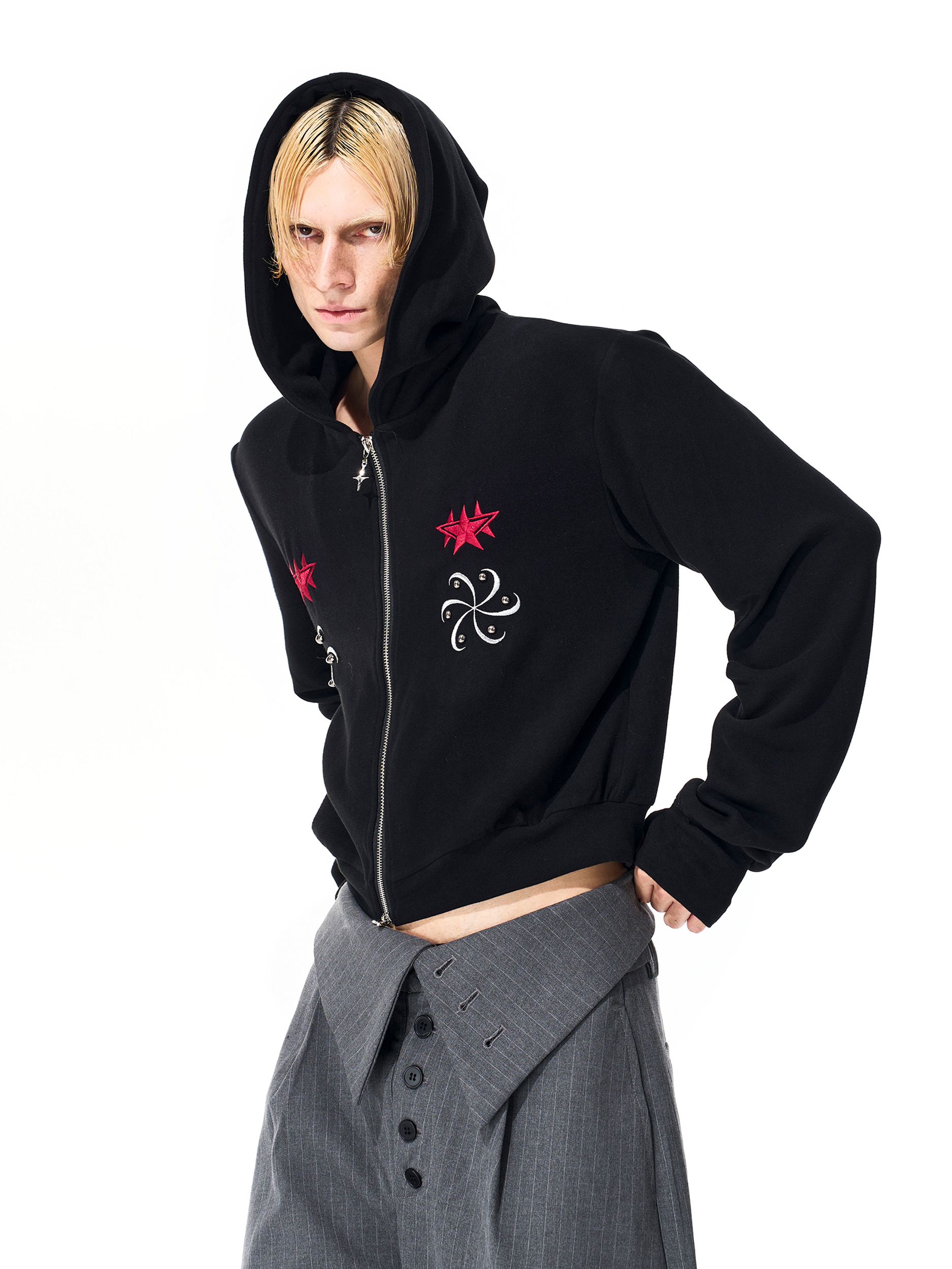 Warm Velour Hand Embroidery Short Zipper Hoodie & Cardigan WN21831