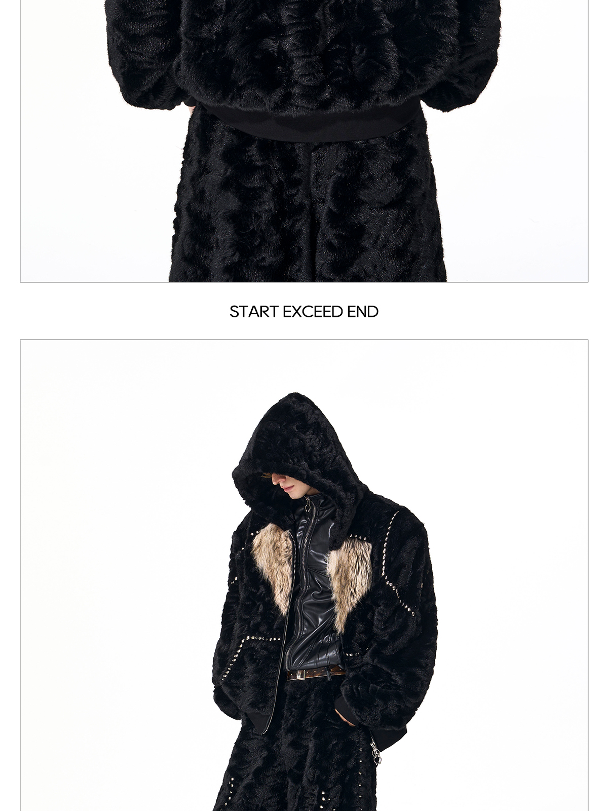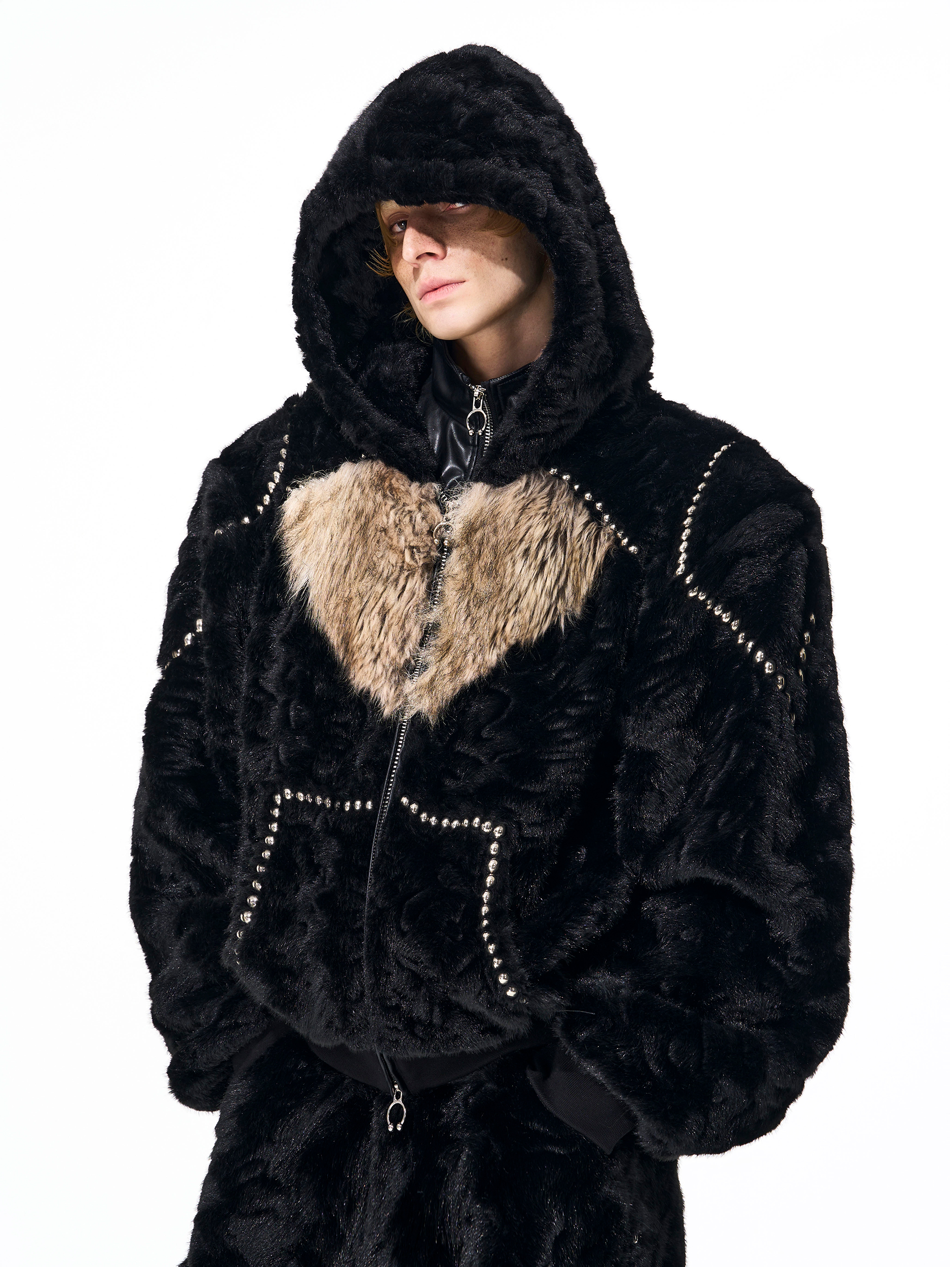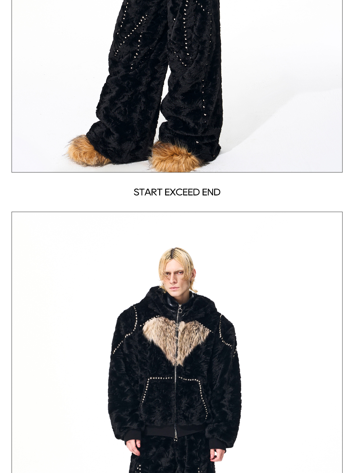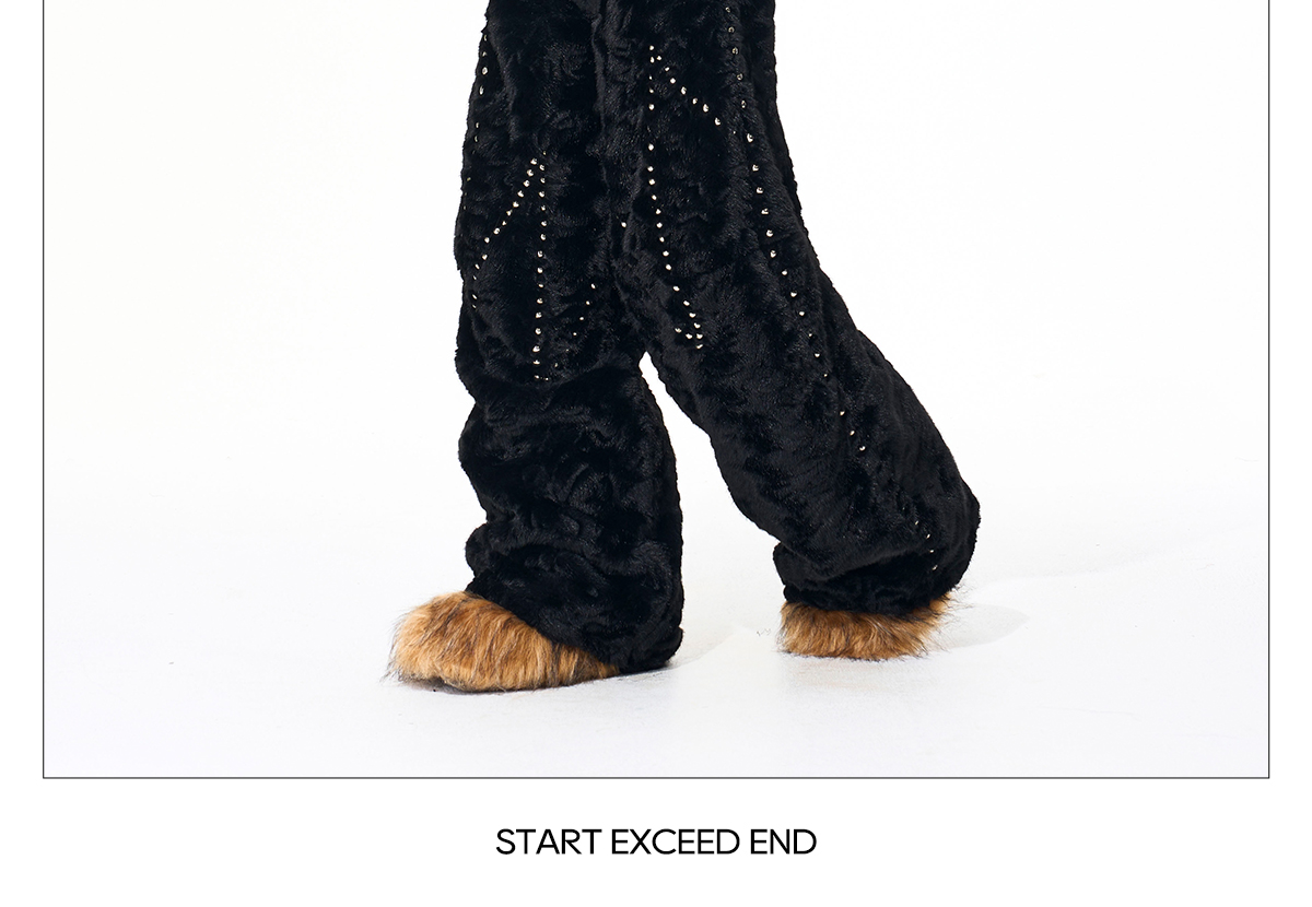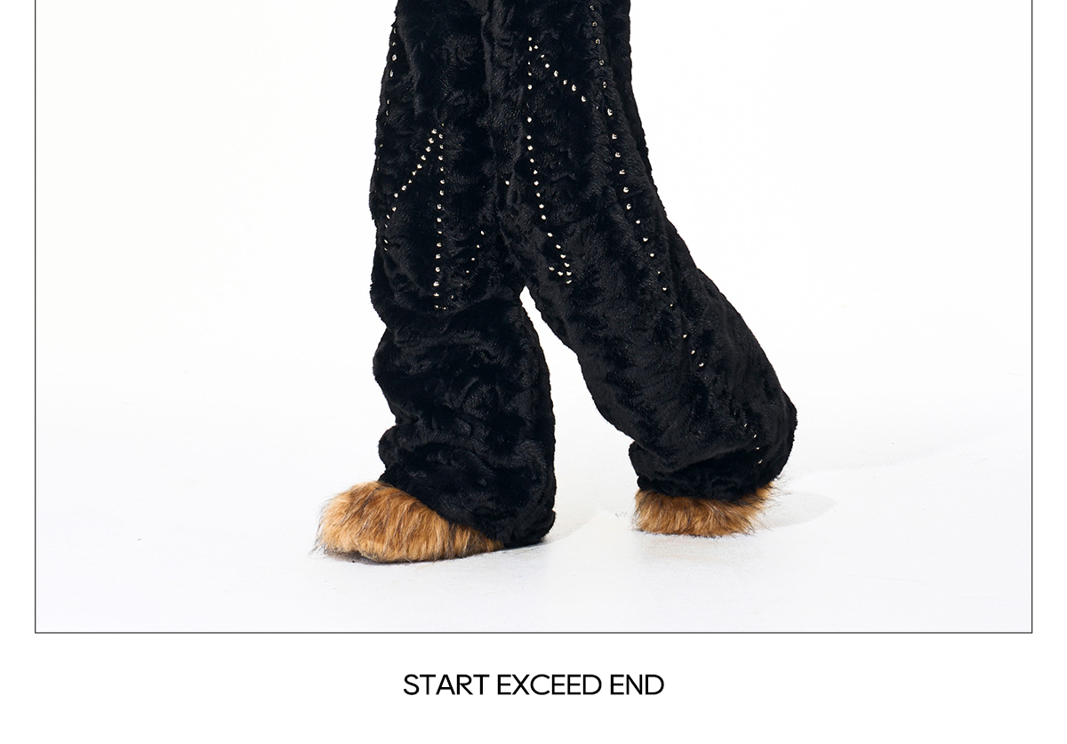 Colorblock Heart Thick Fake Mink Fur Hooded Jacket & Straight Wide Leg Pants Setup WN21838