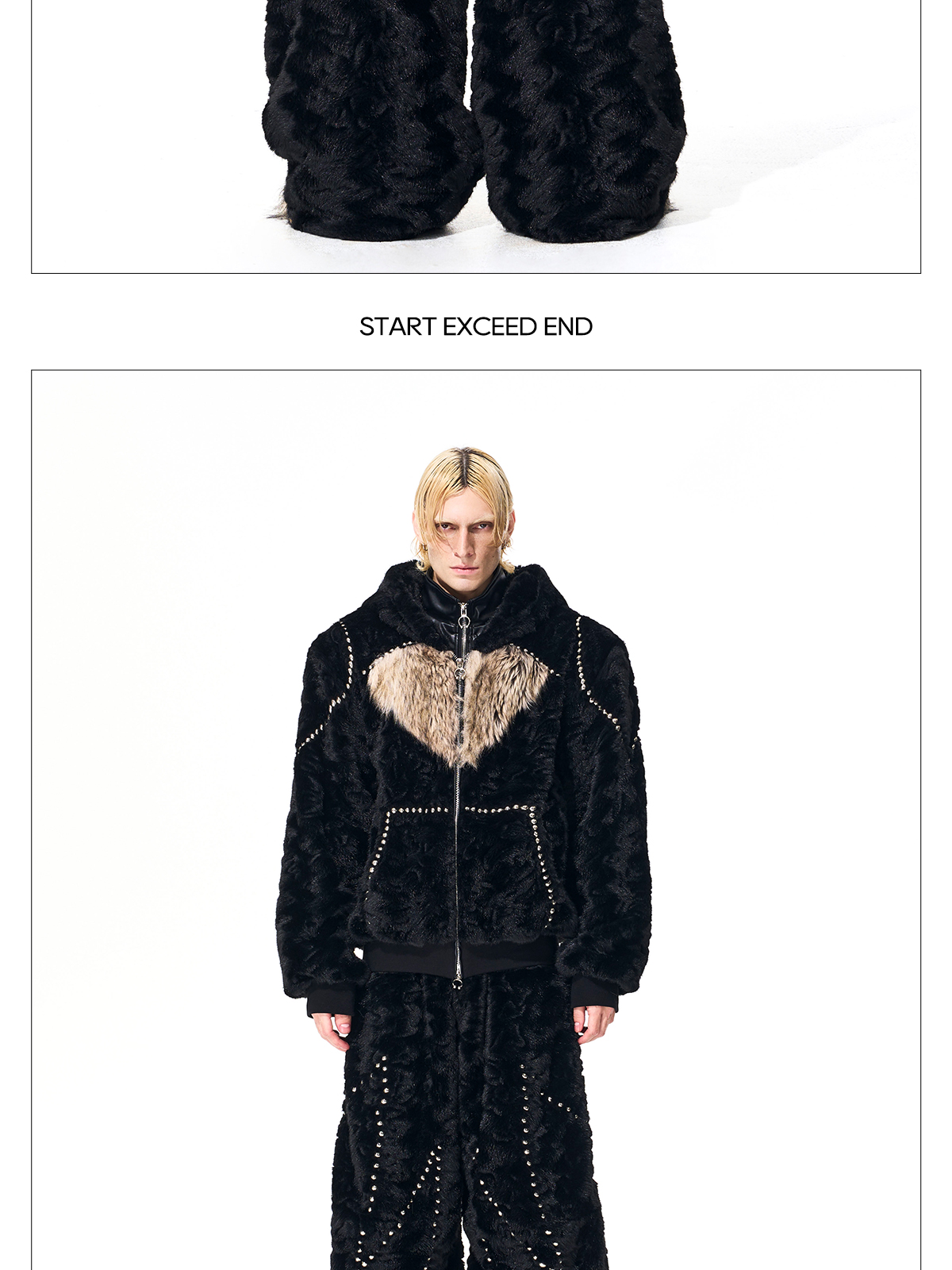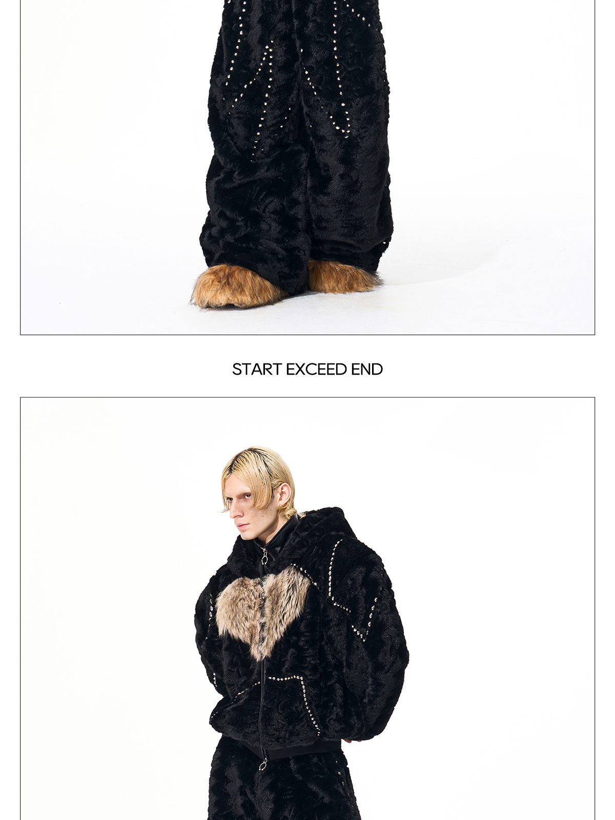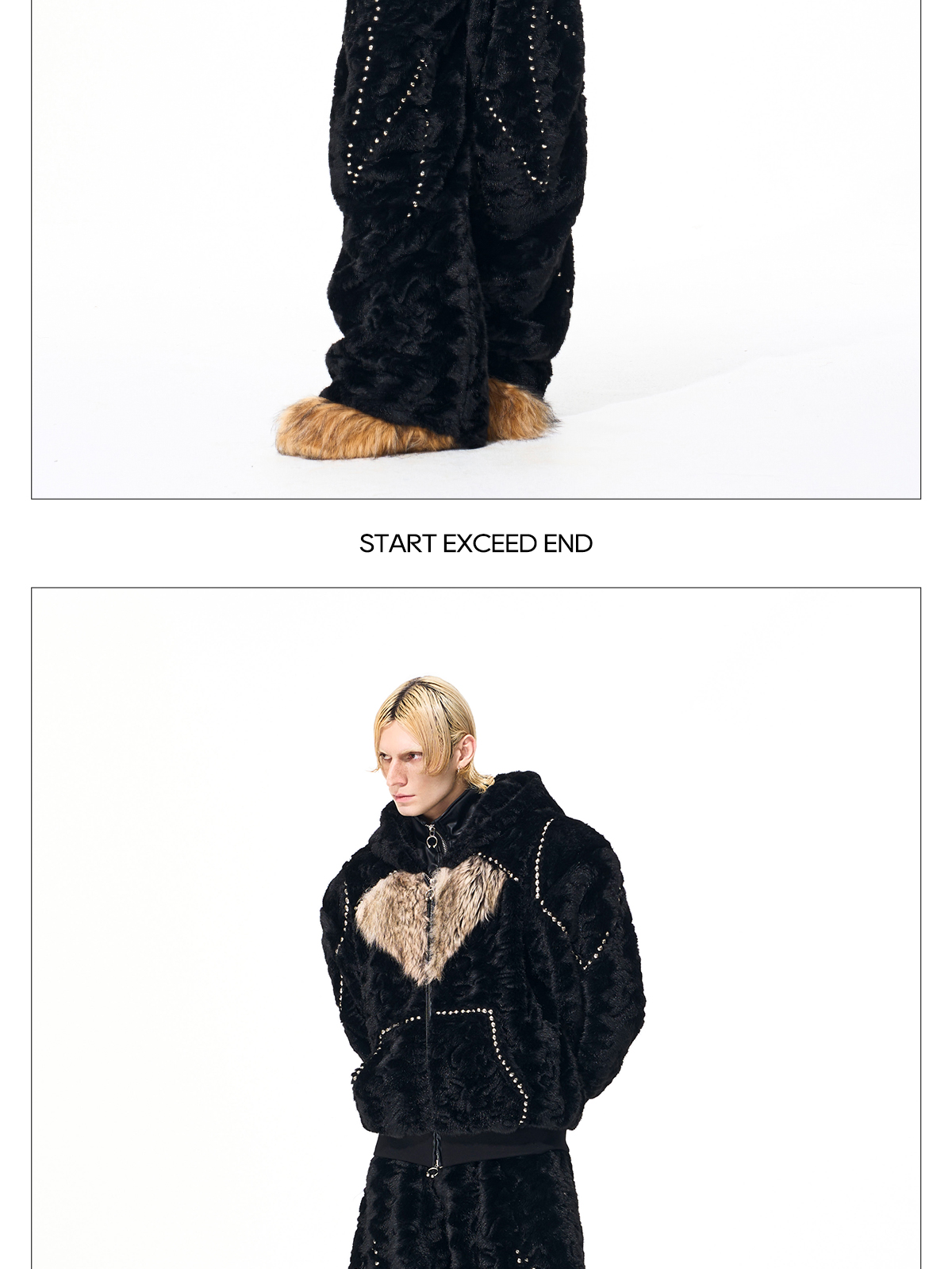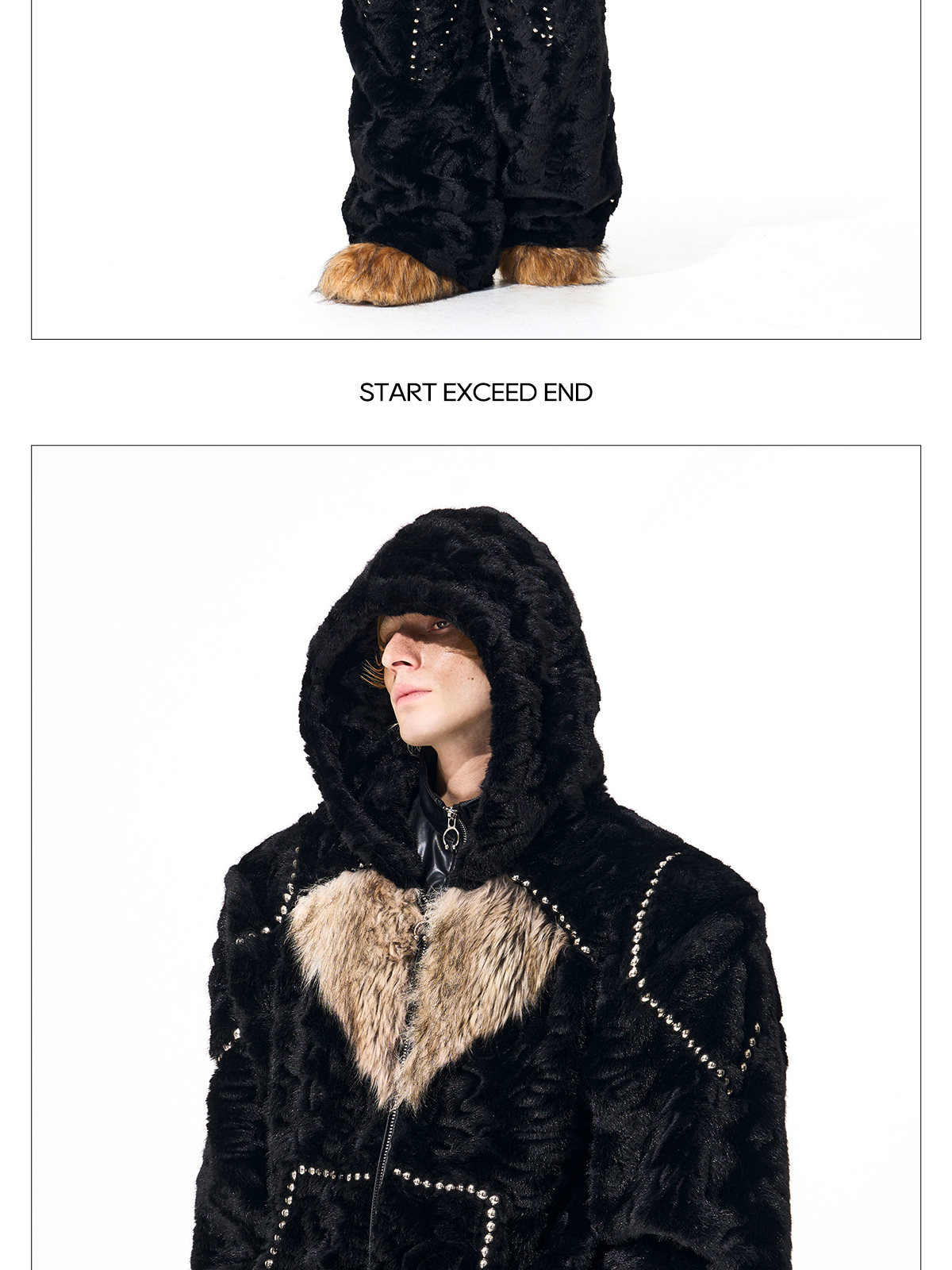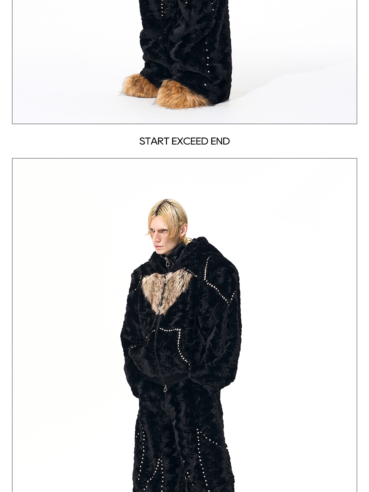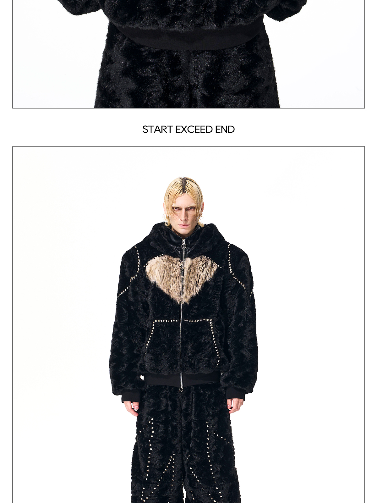 Colorblock Heart Thick Fake Mink Fur Hooded Jacket & Straight Wide Leg Pants Setup WN21838