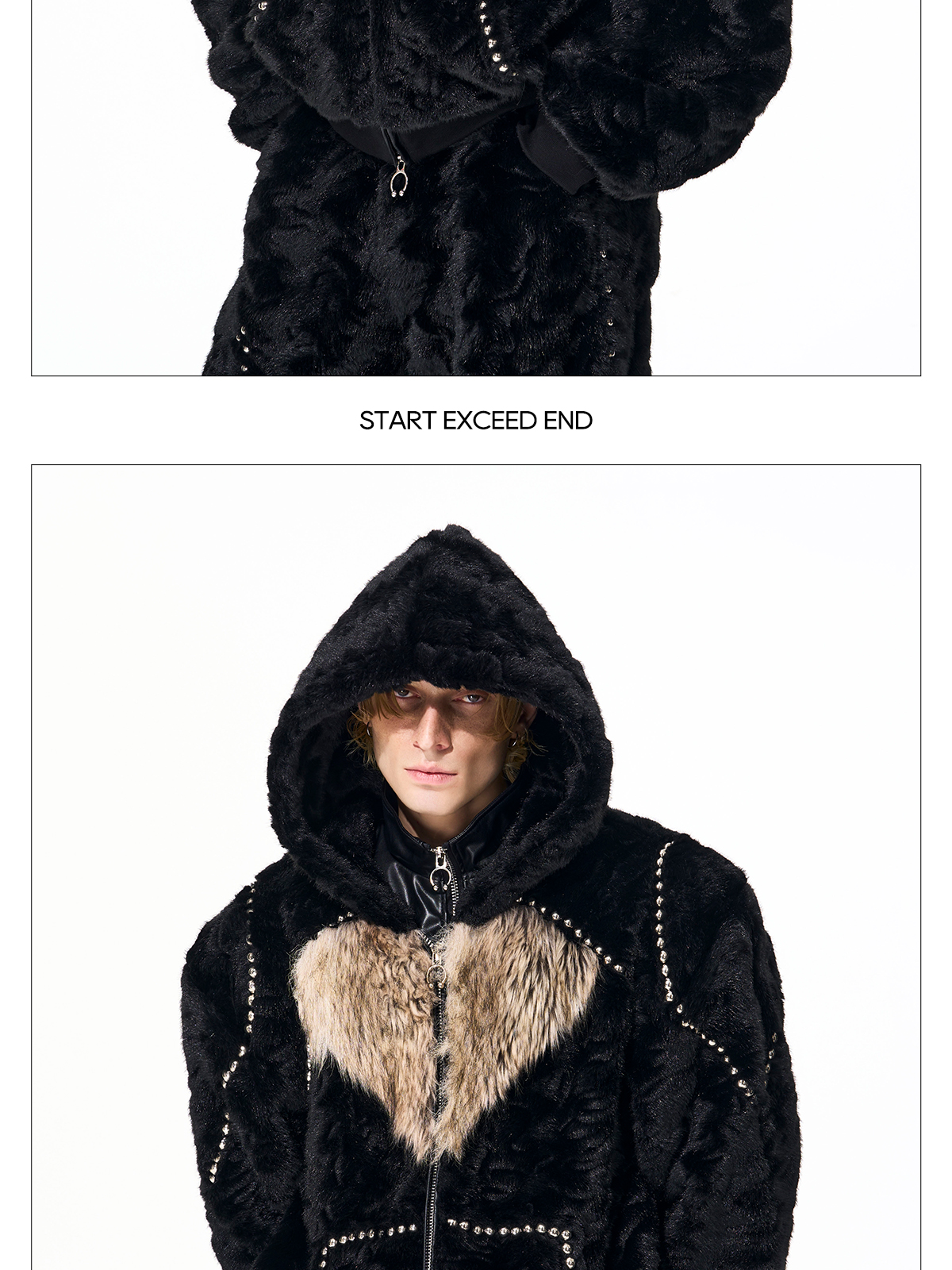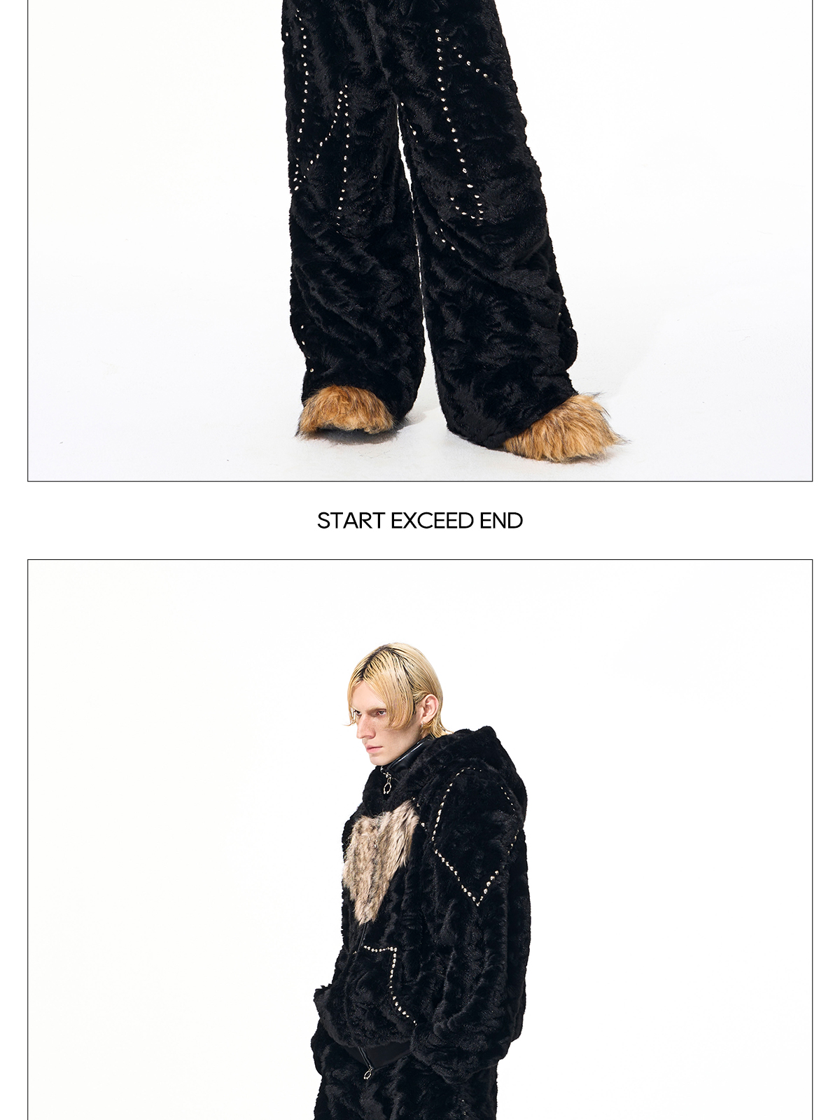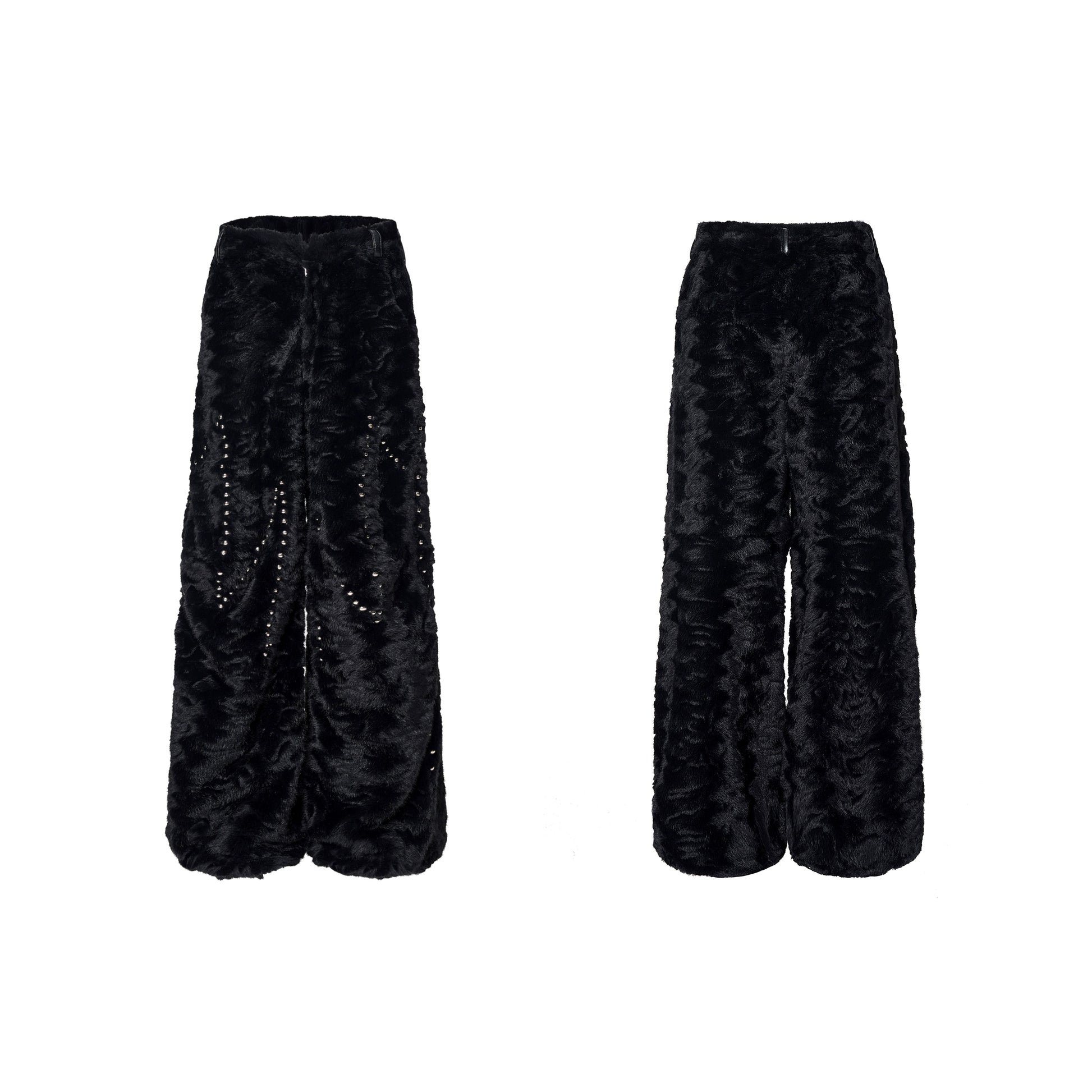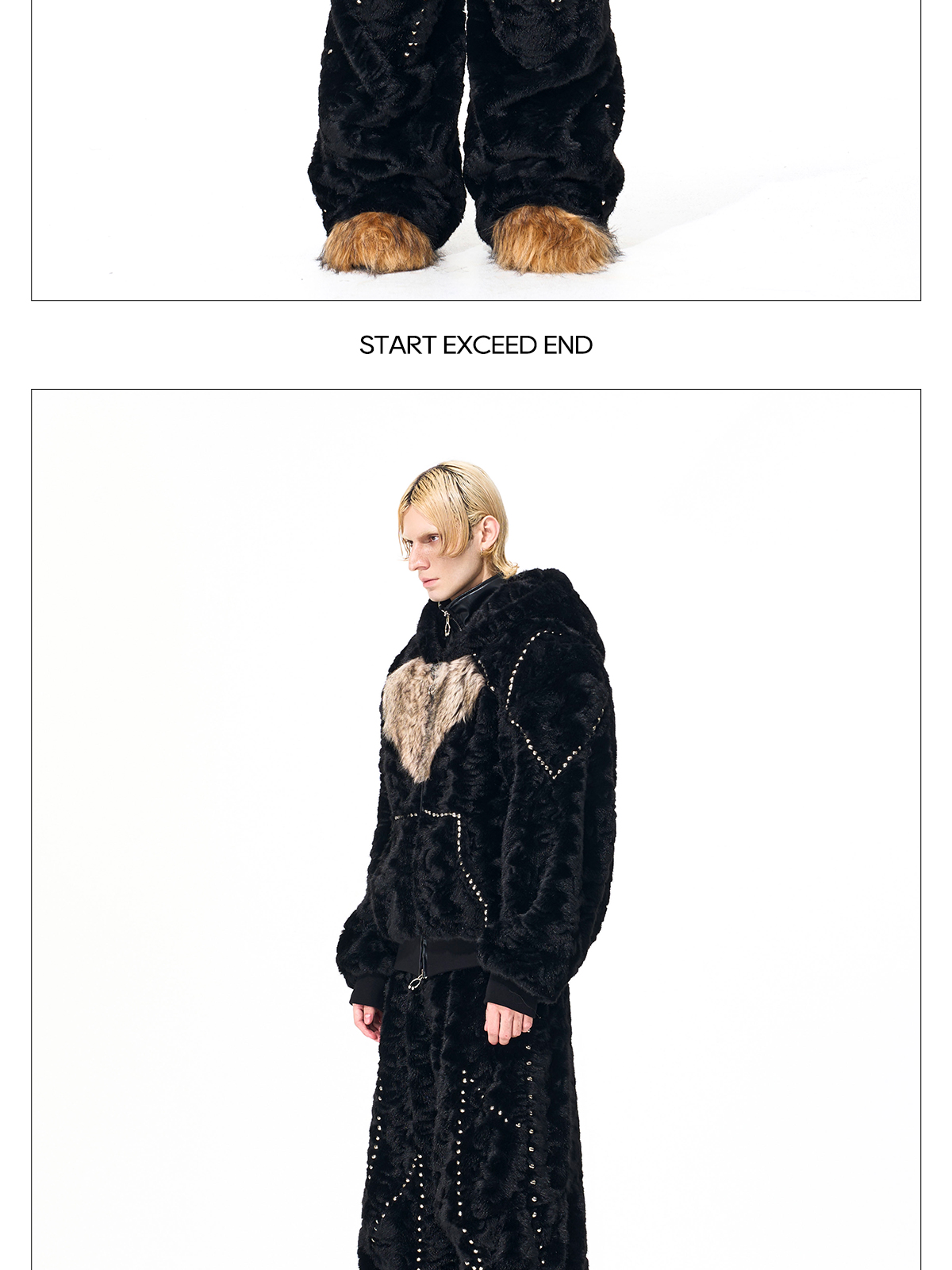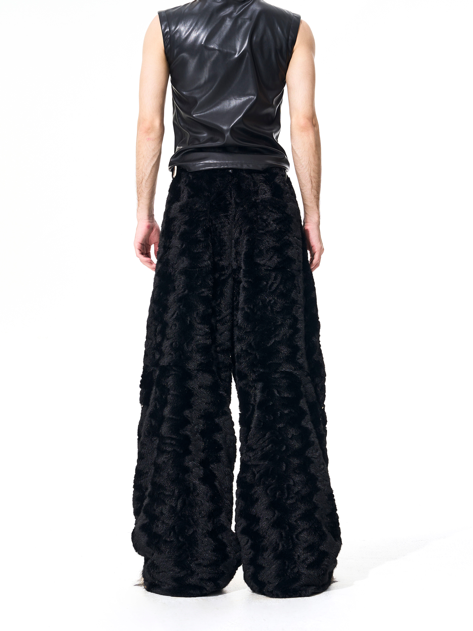Colorblock Heart Thick Fake Mink Fur Hooded Jacket & Straight Wide Leg Pants Setup WN21838