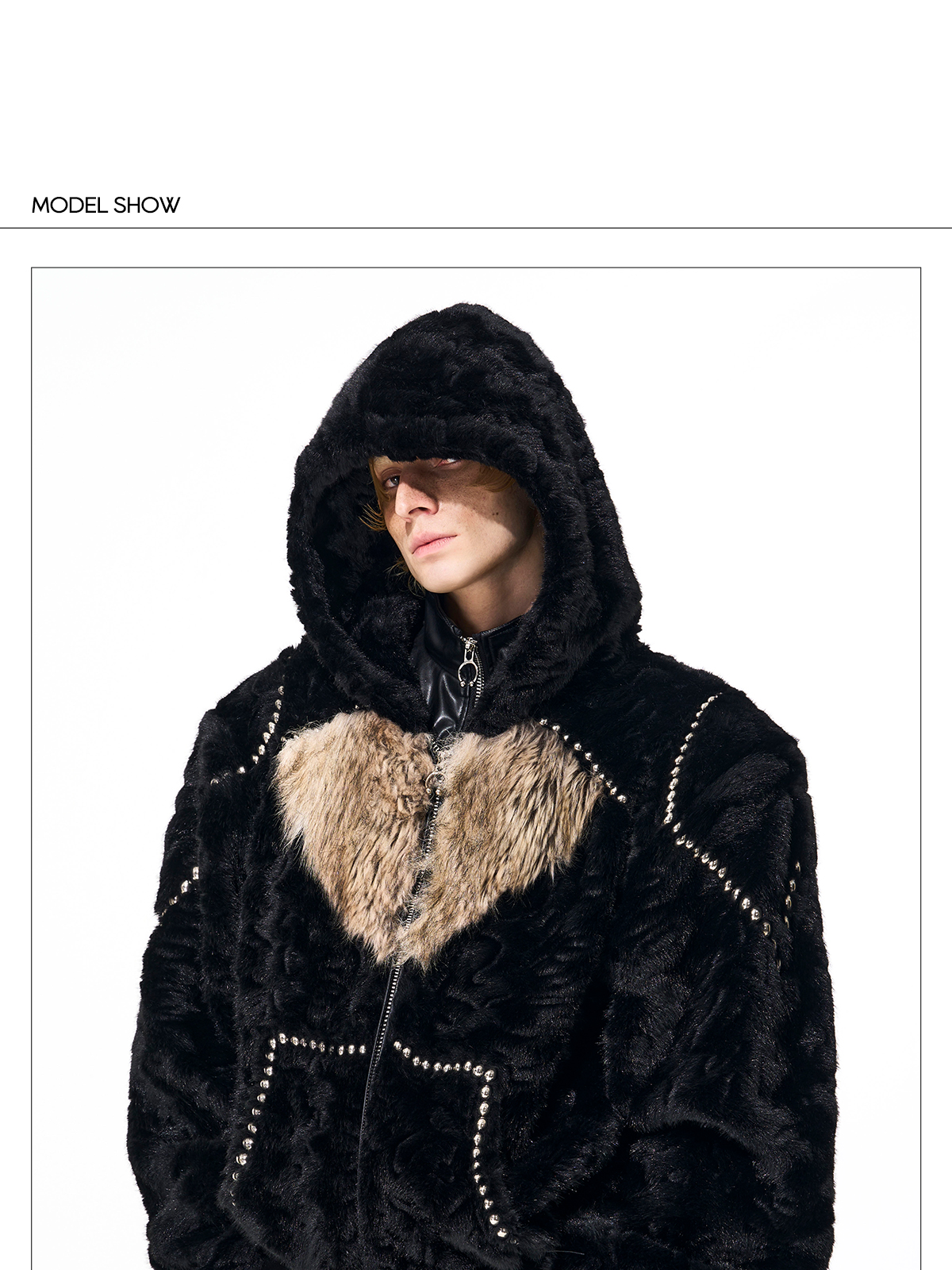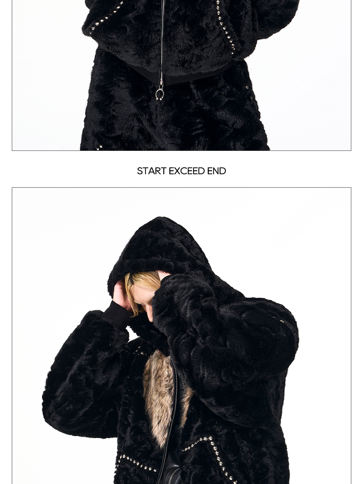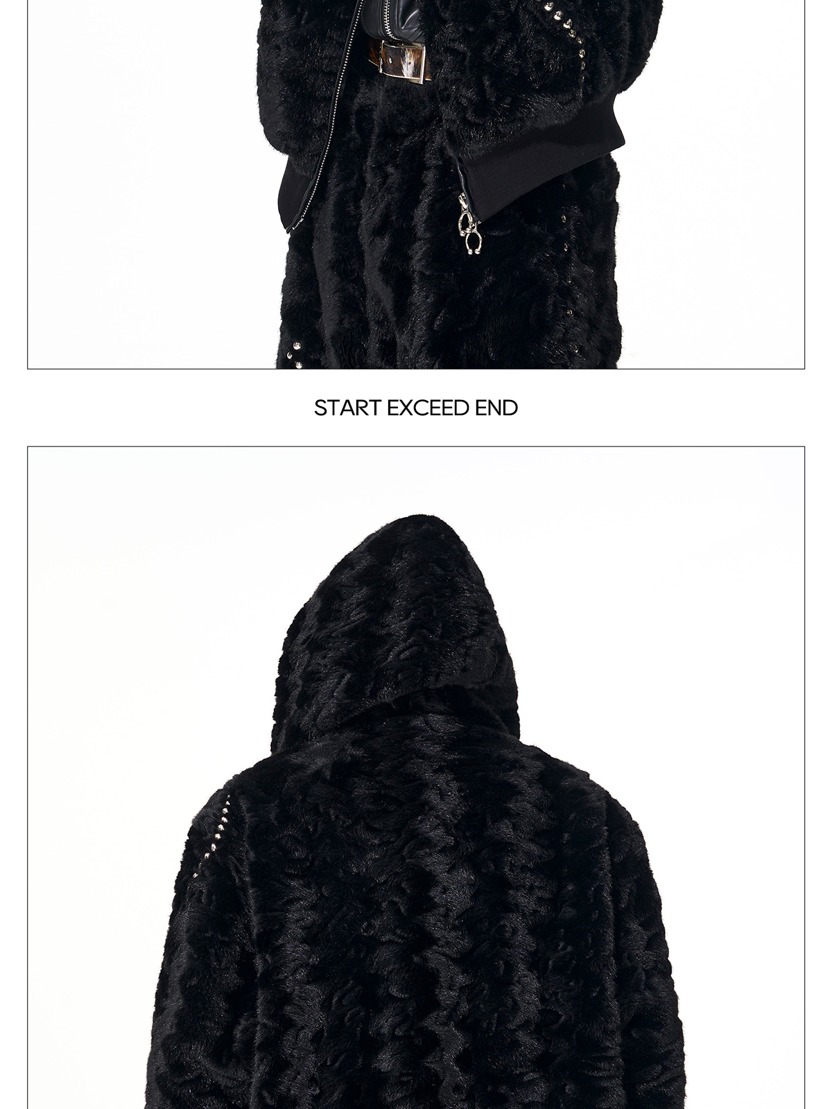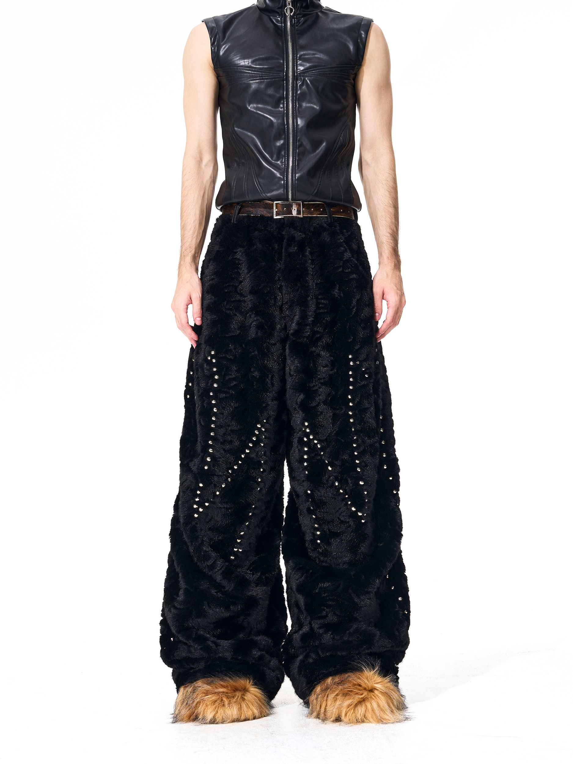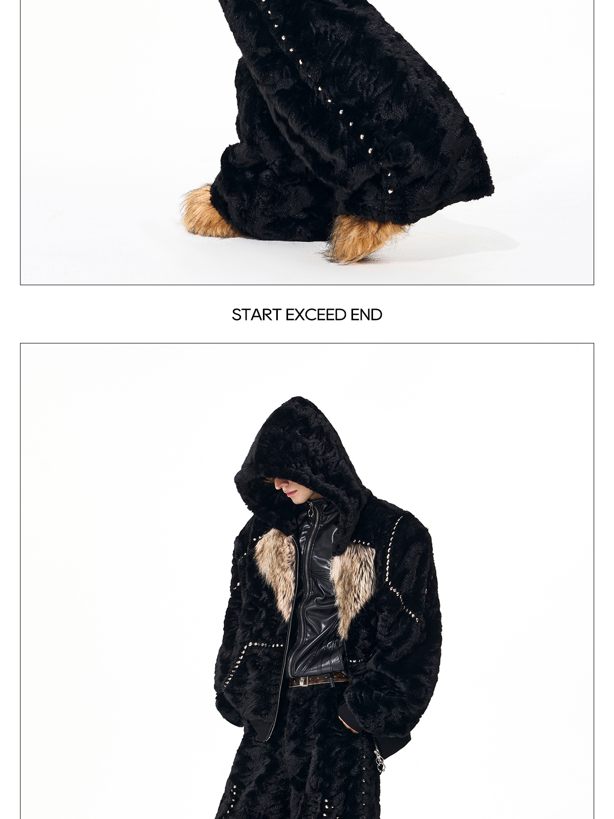 Colorblock Heart Thick Fake Mink Fur Hooded Jacket & Straight Wide Leg Pants Setup WN21838